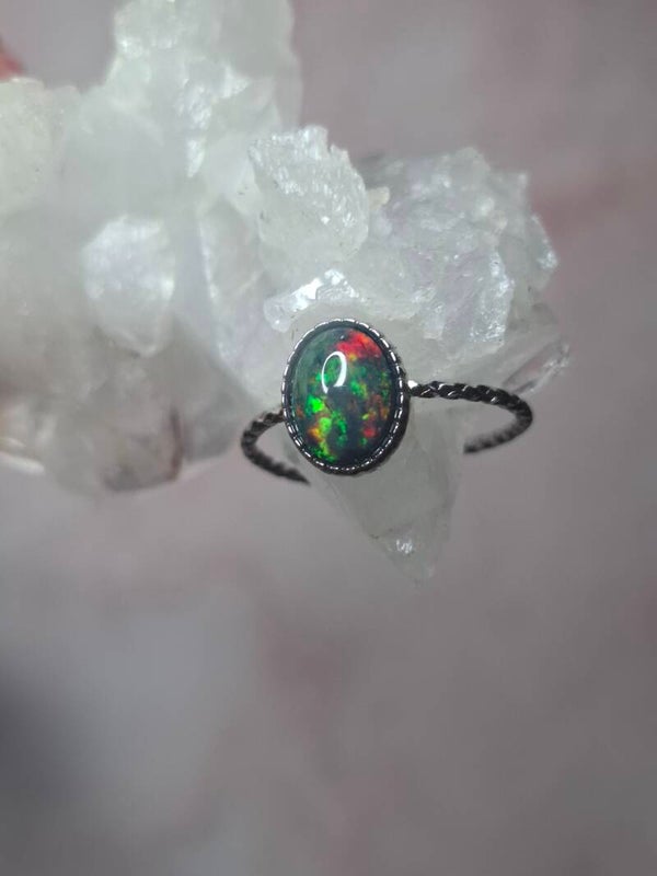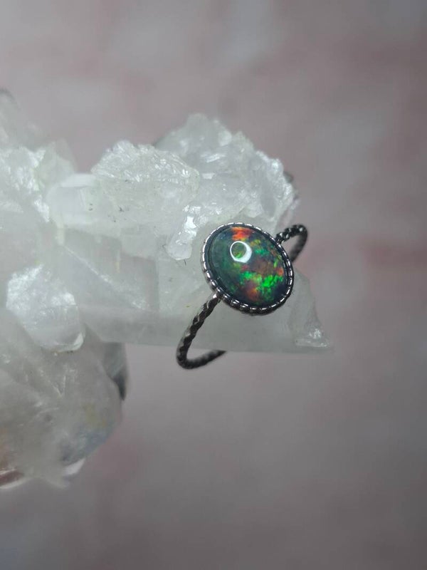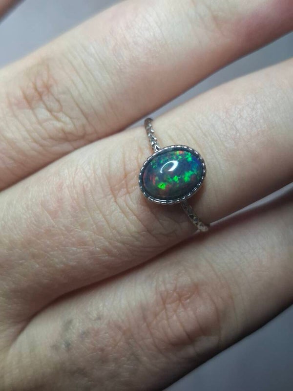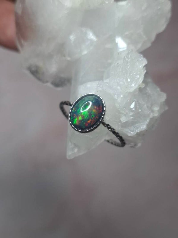 Bague opale 8x6mm éthiopienne