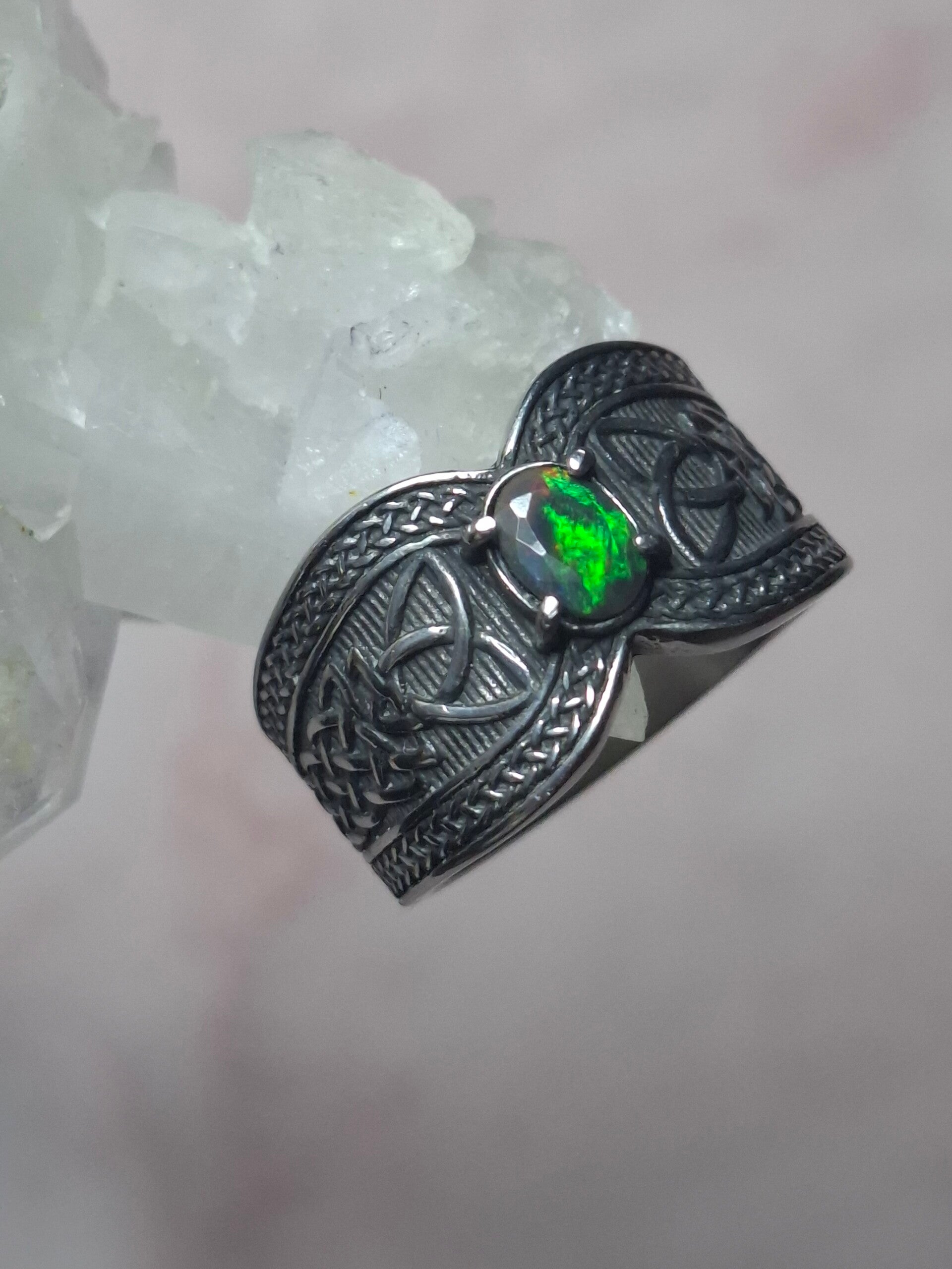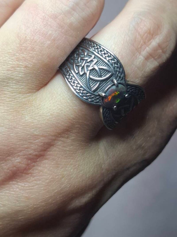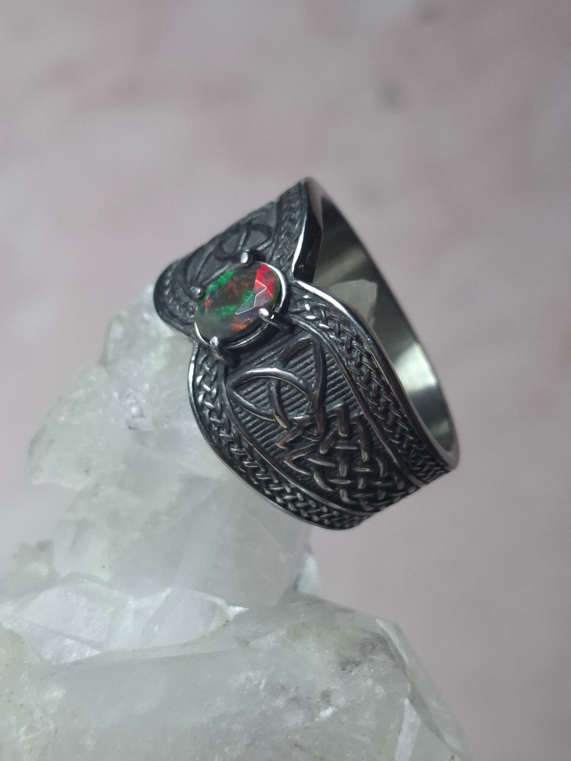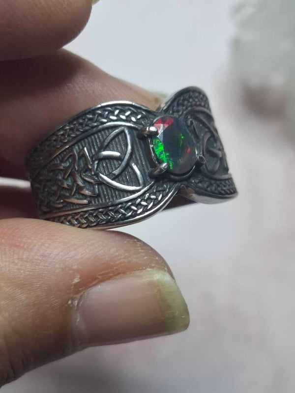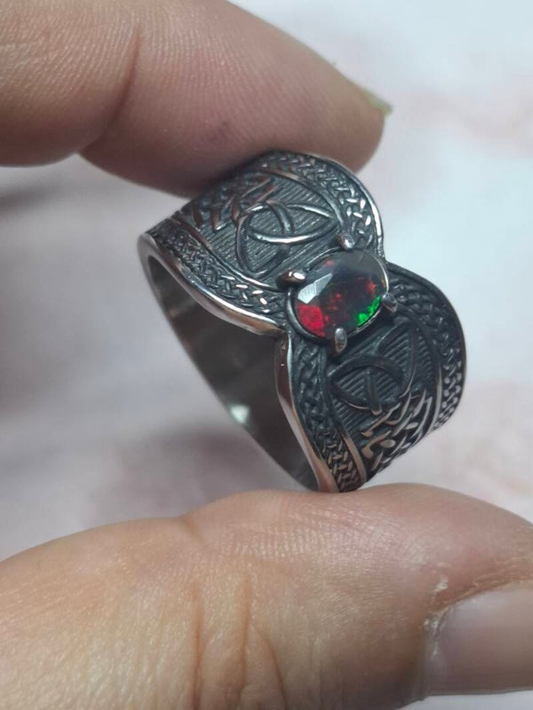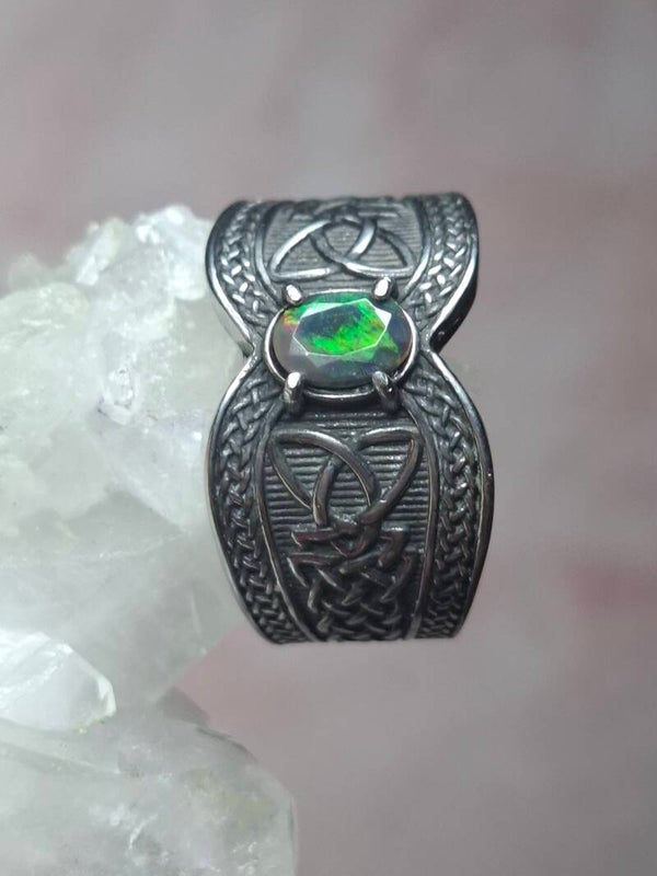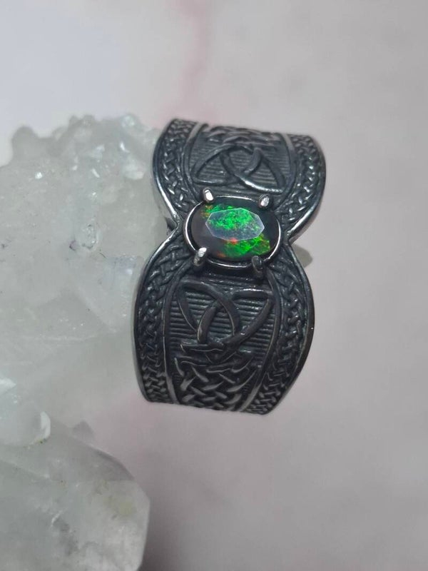 Bague viking taille 22mm opale éthiopienne facettée