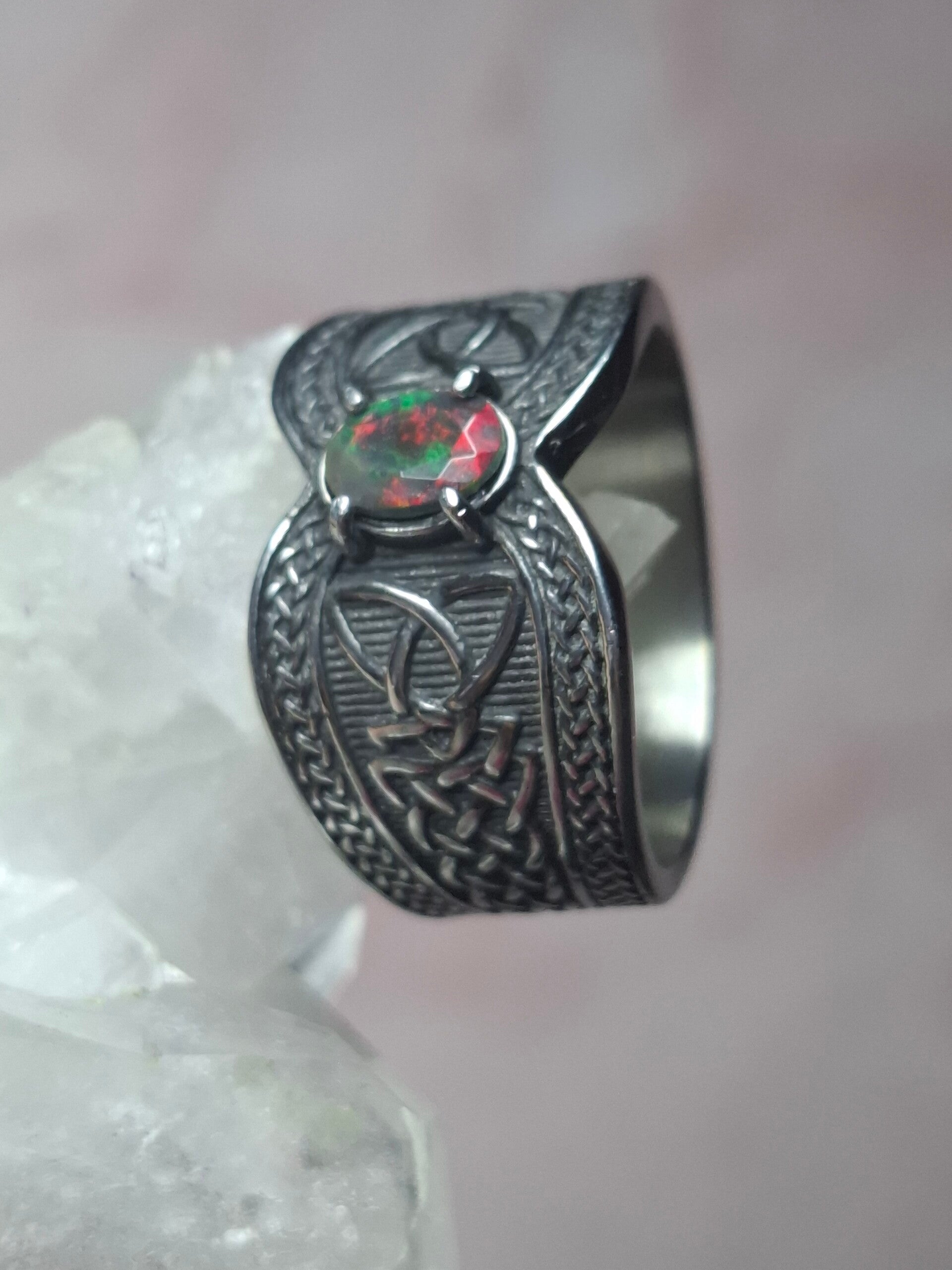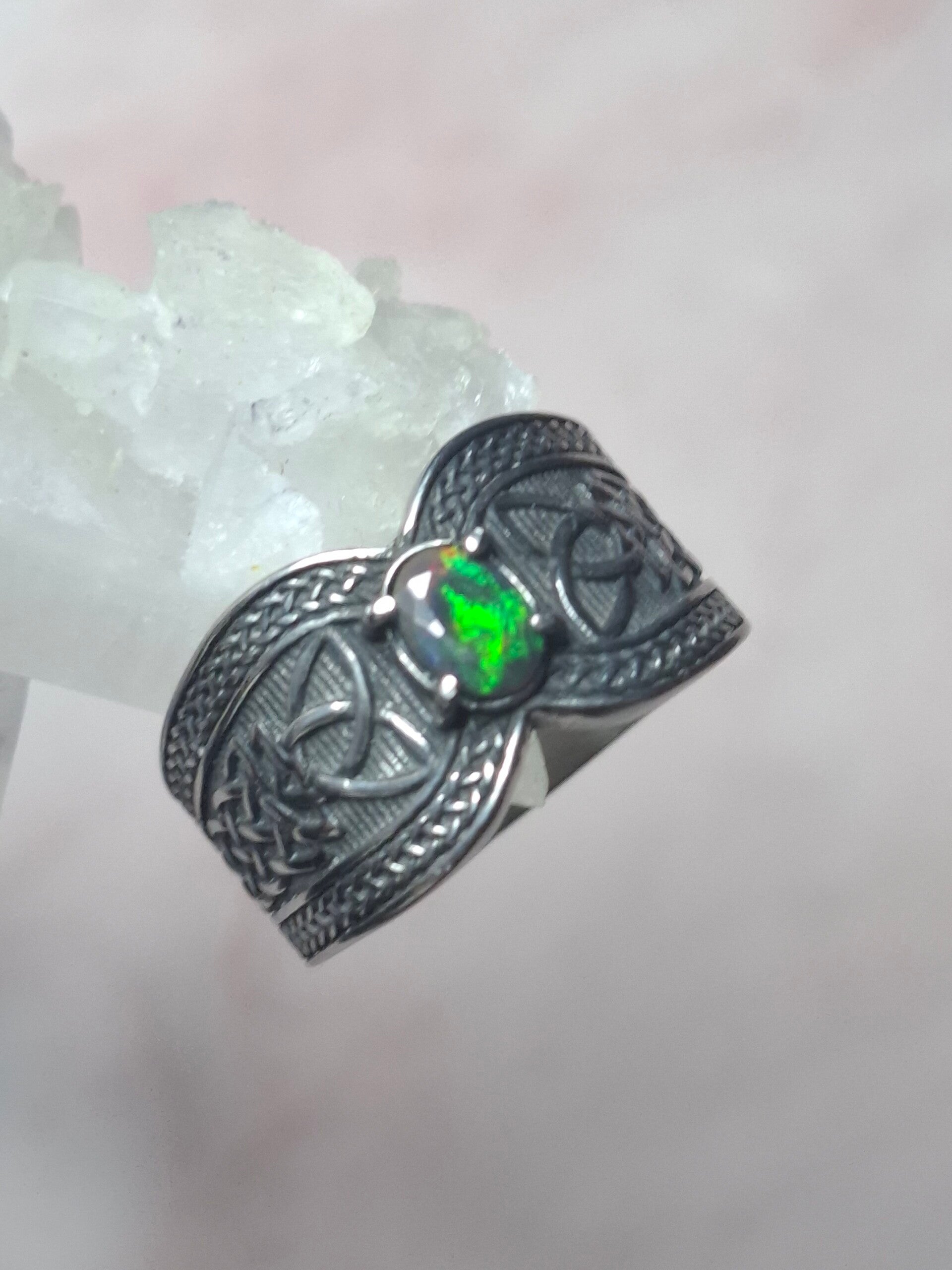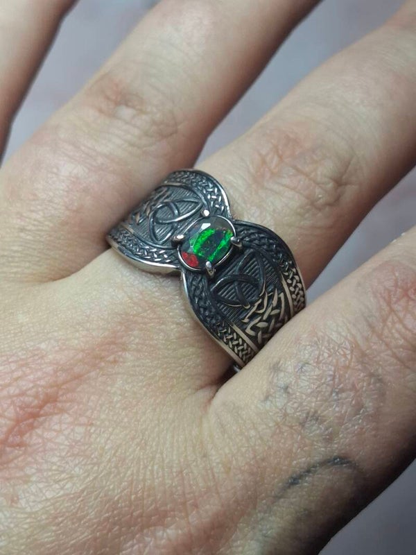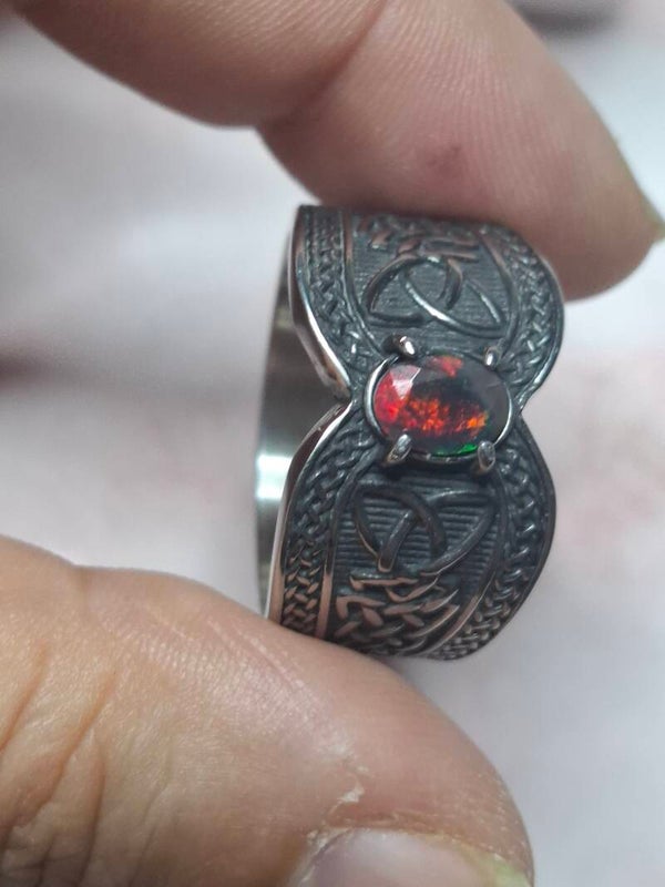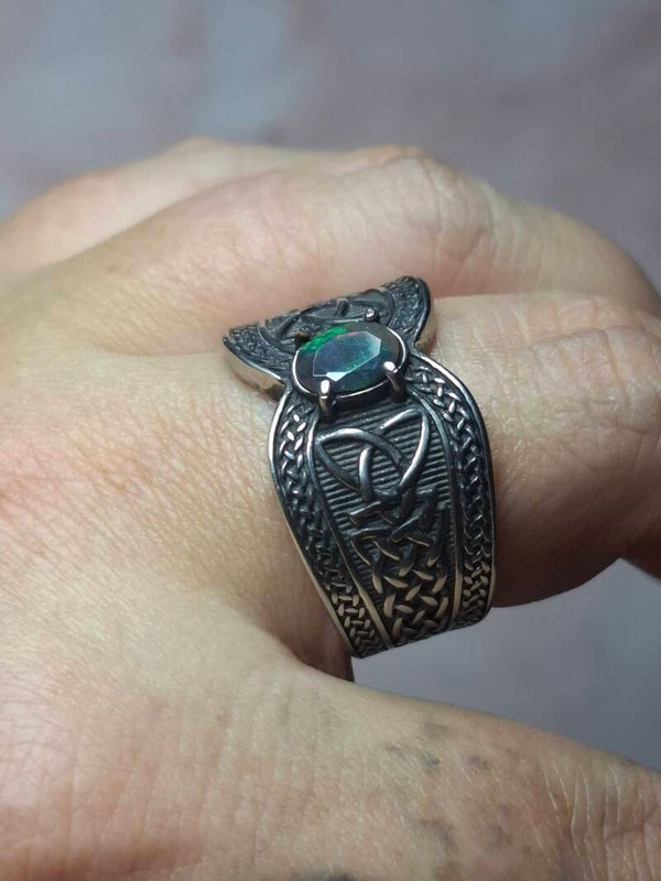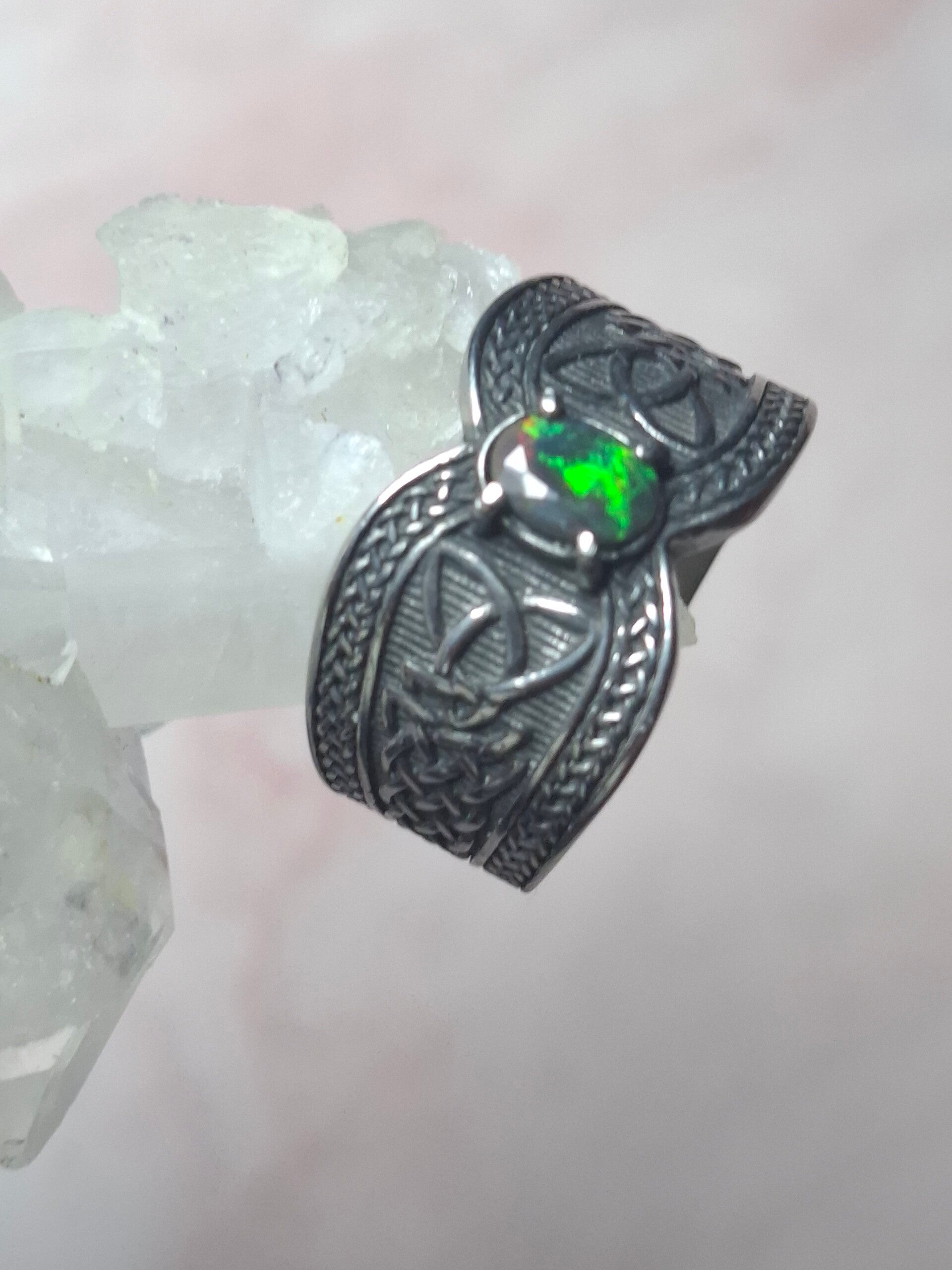 Bague viking taille 22mm opale éthiopienne facettée