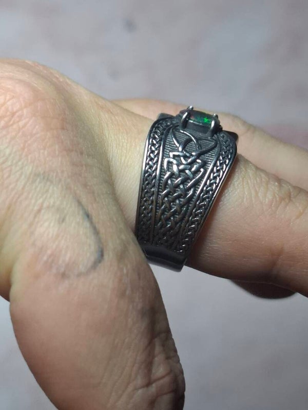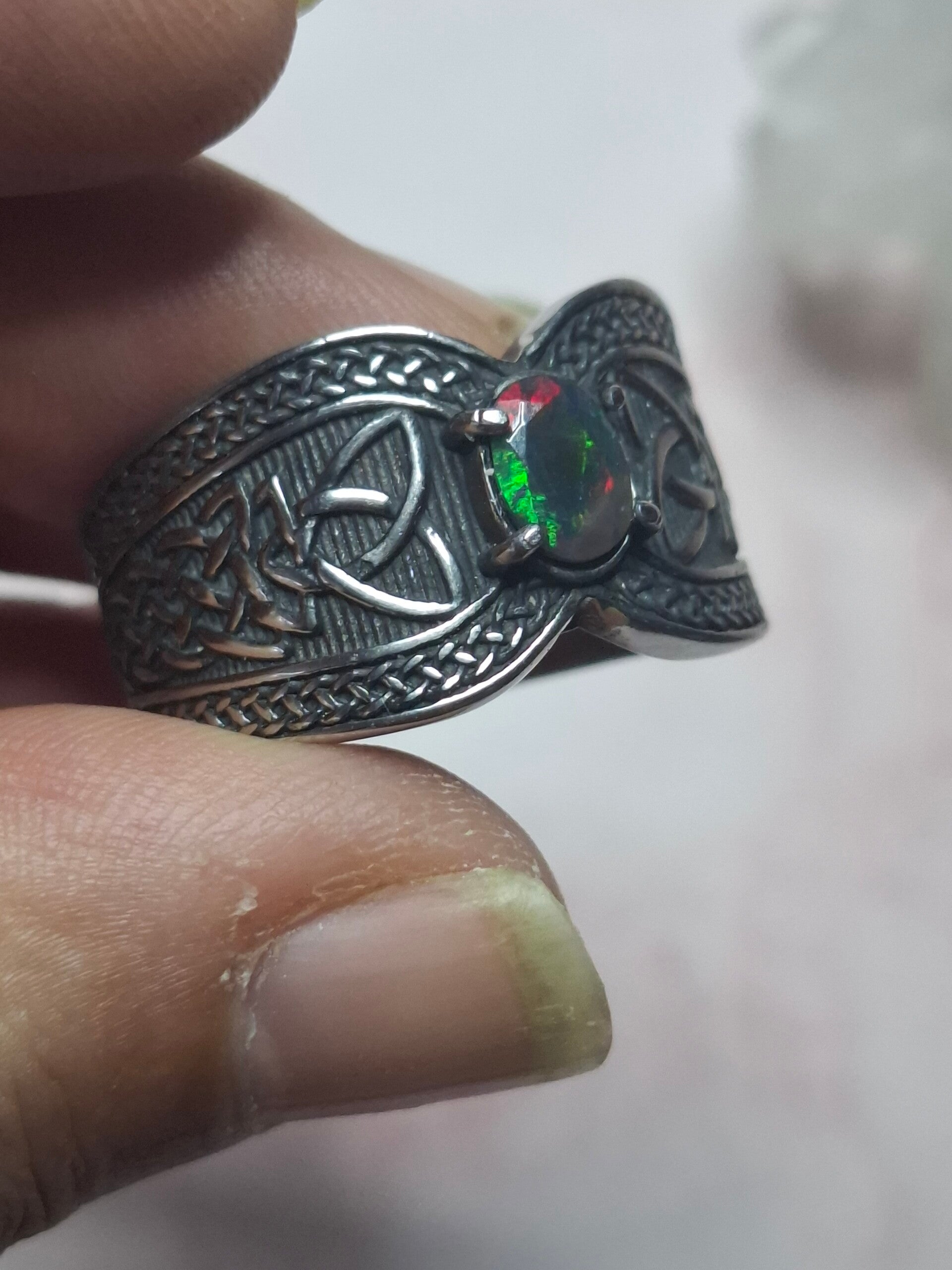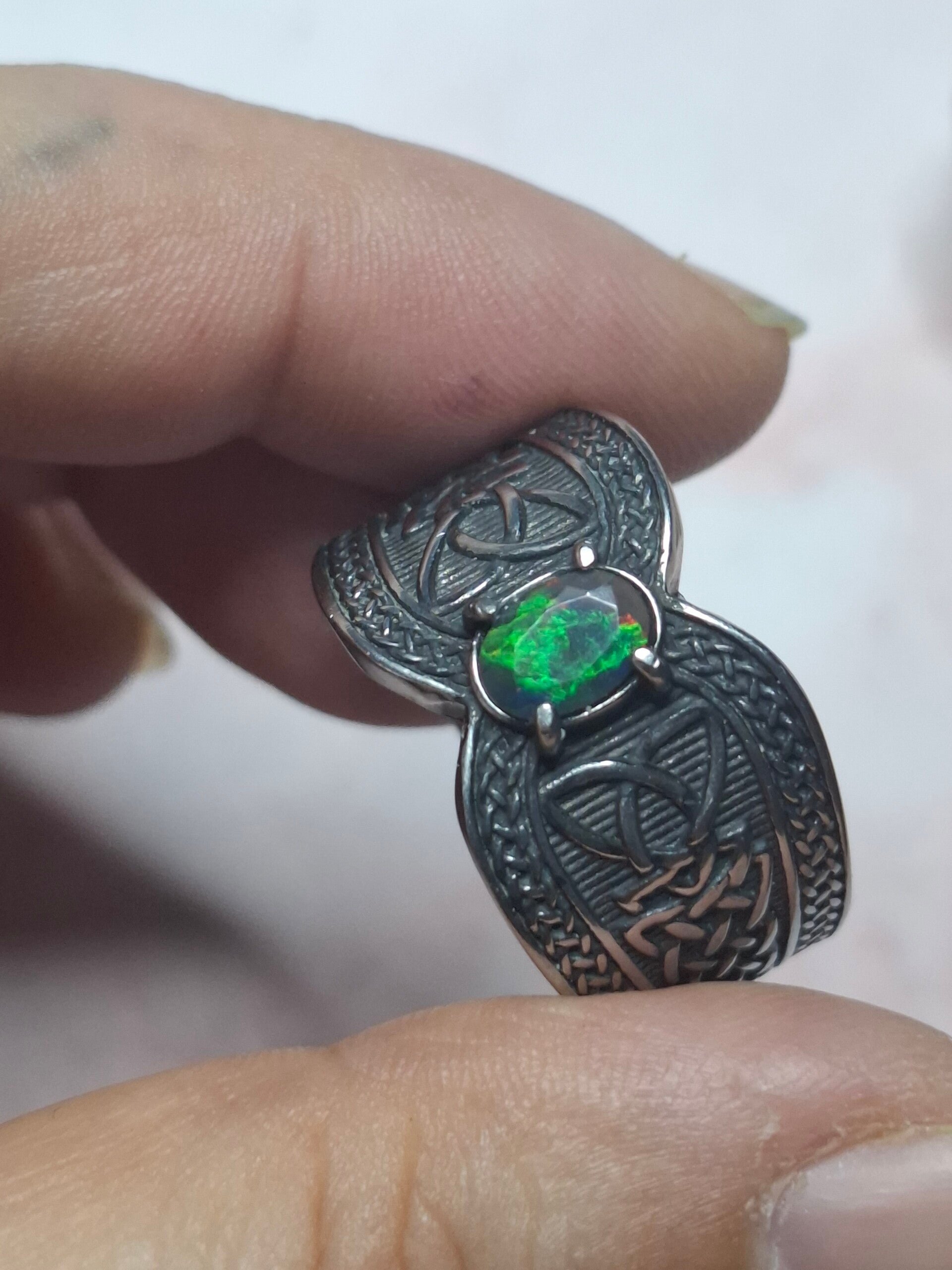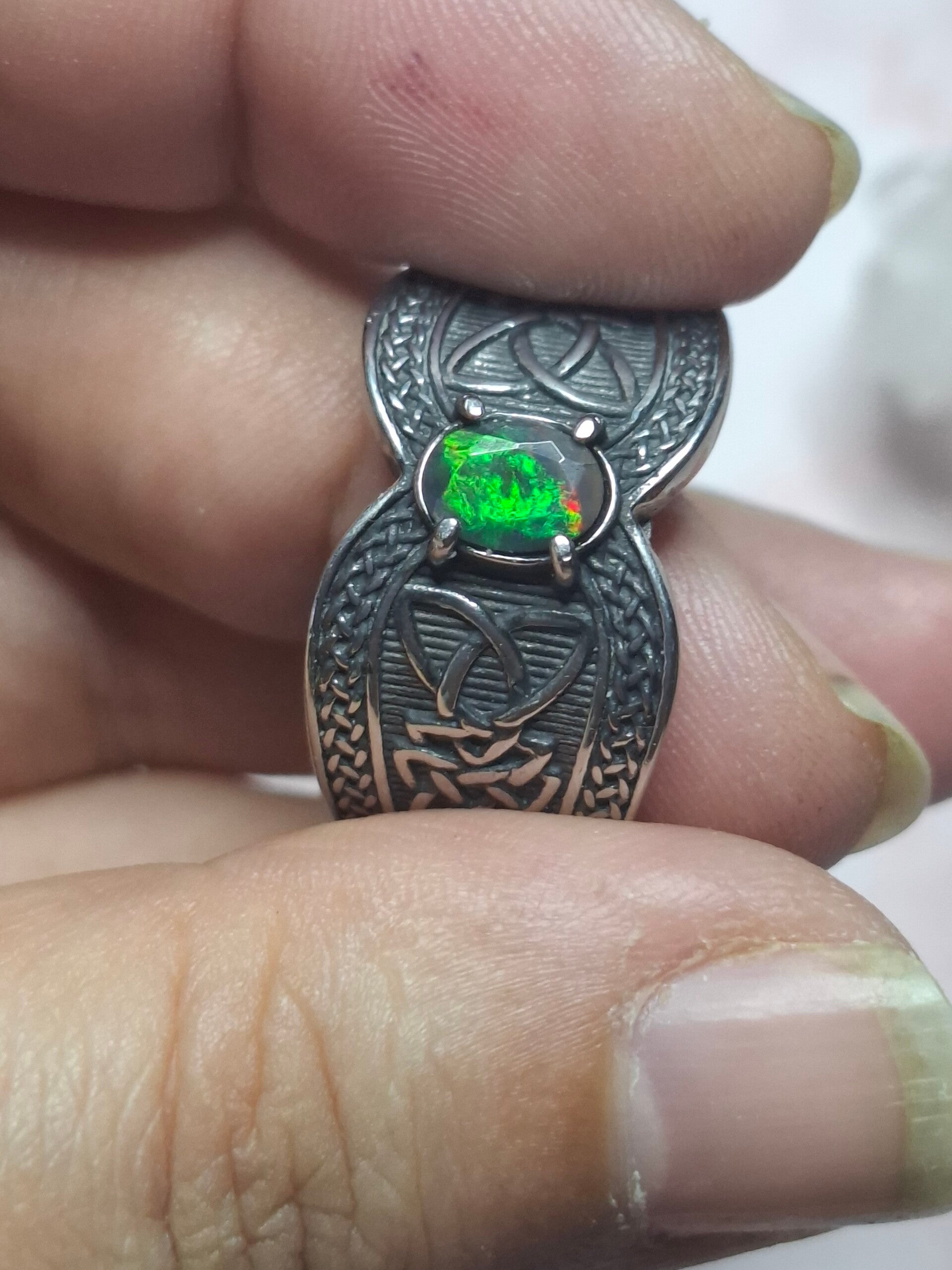 Bague viking taille 22mm opale éthiopienne facettée