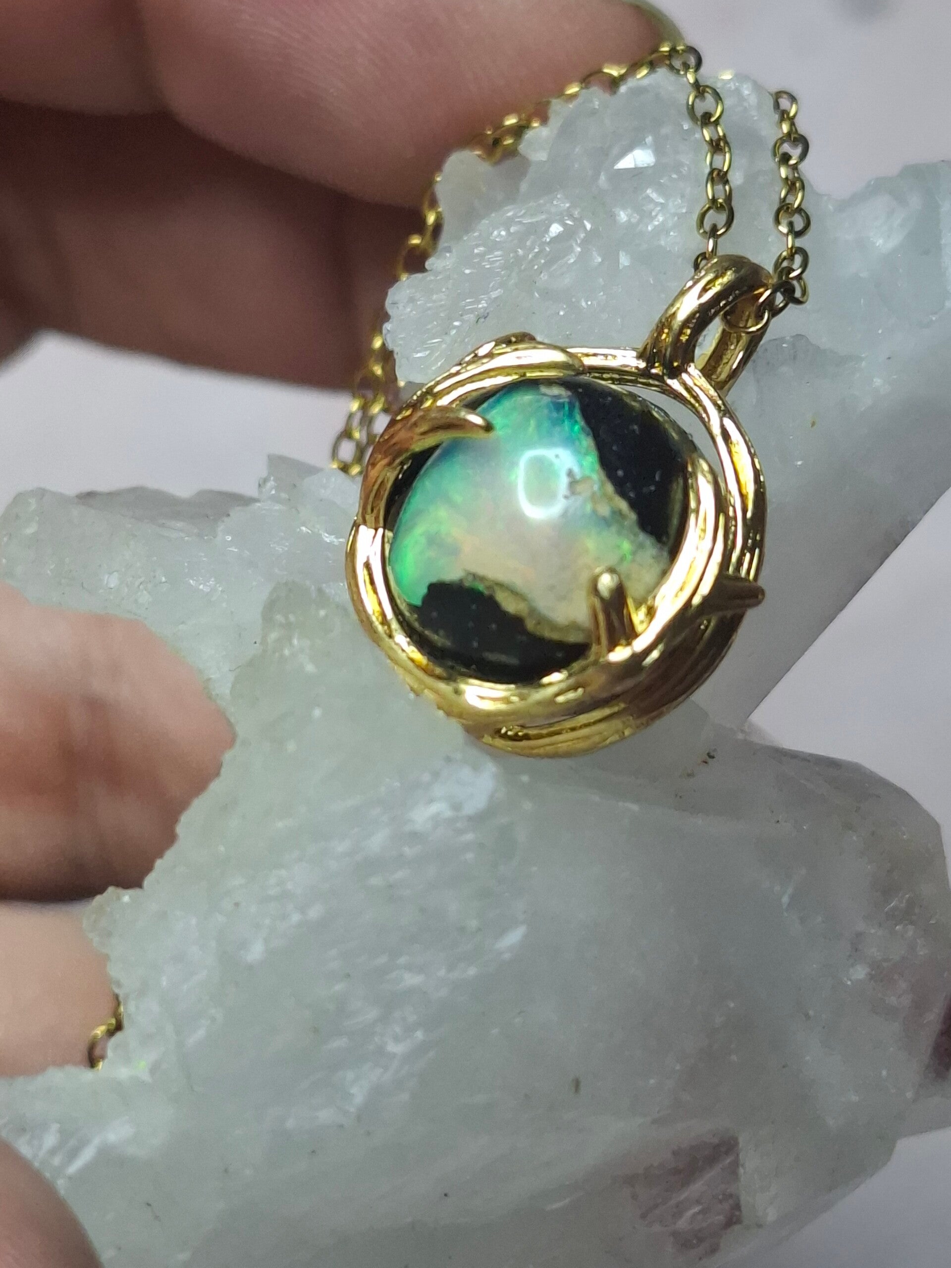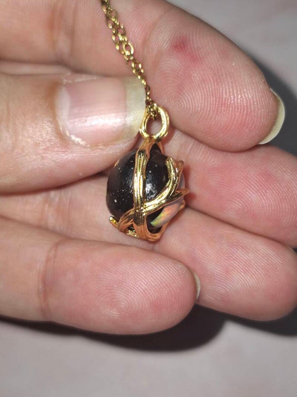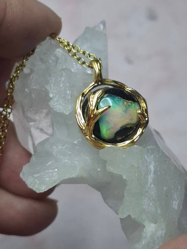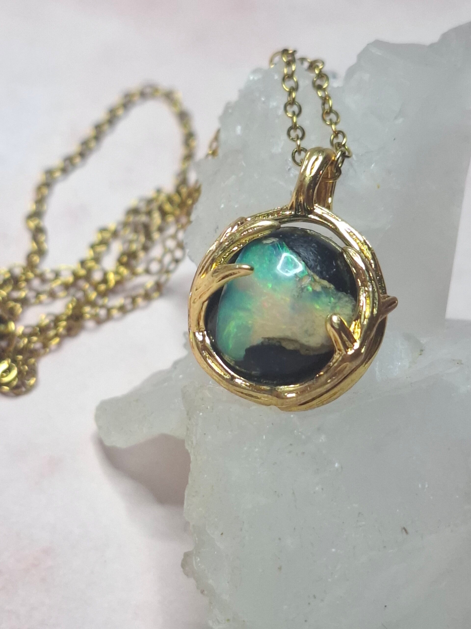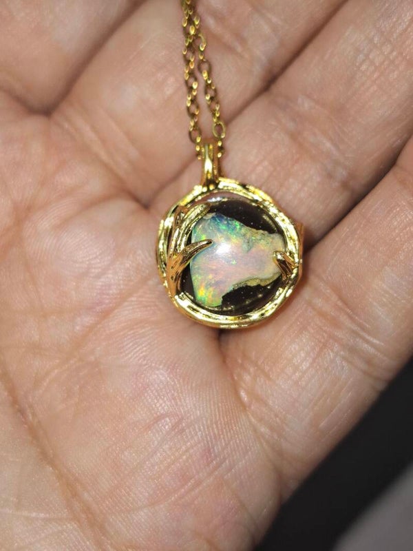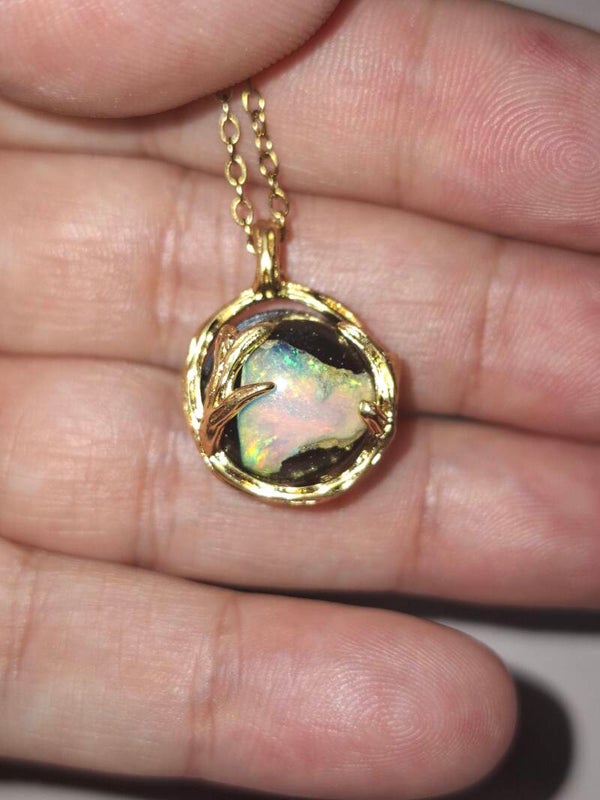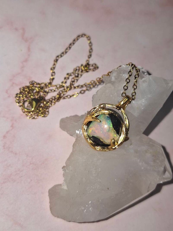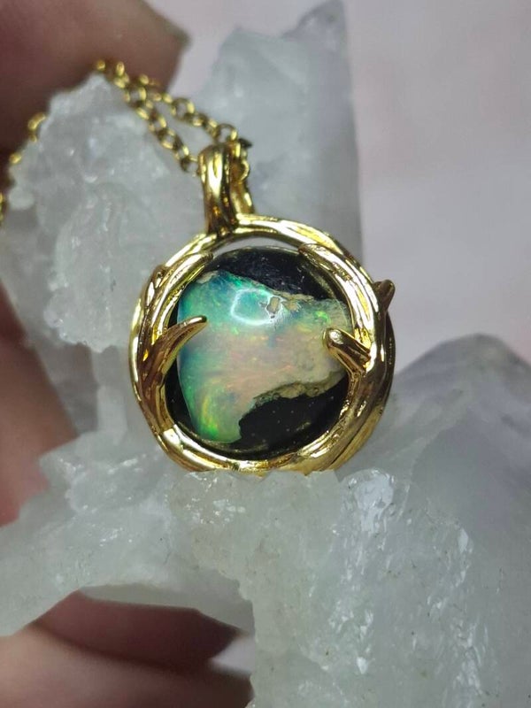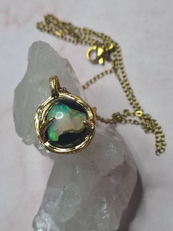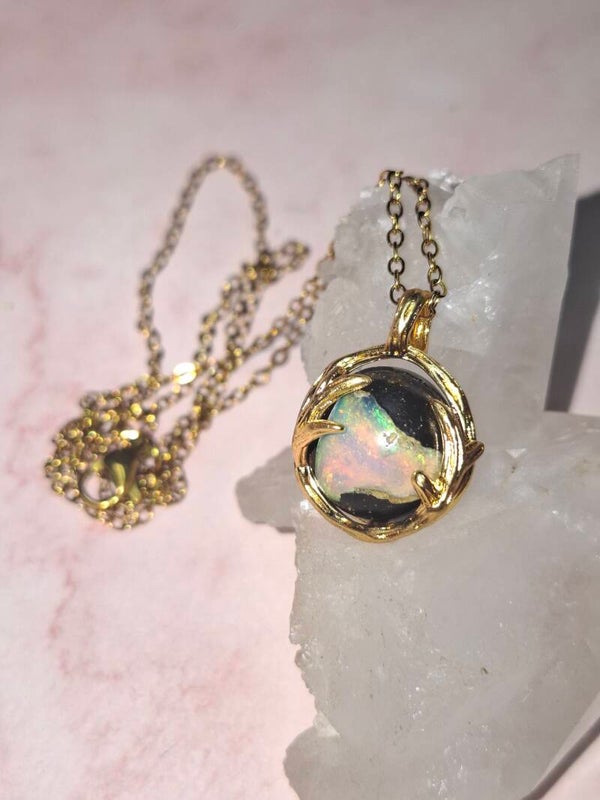 Pendentif sphere 12mm opale éthiopienne matrice volcanique