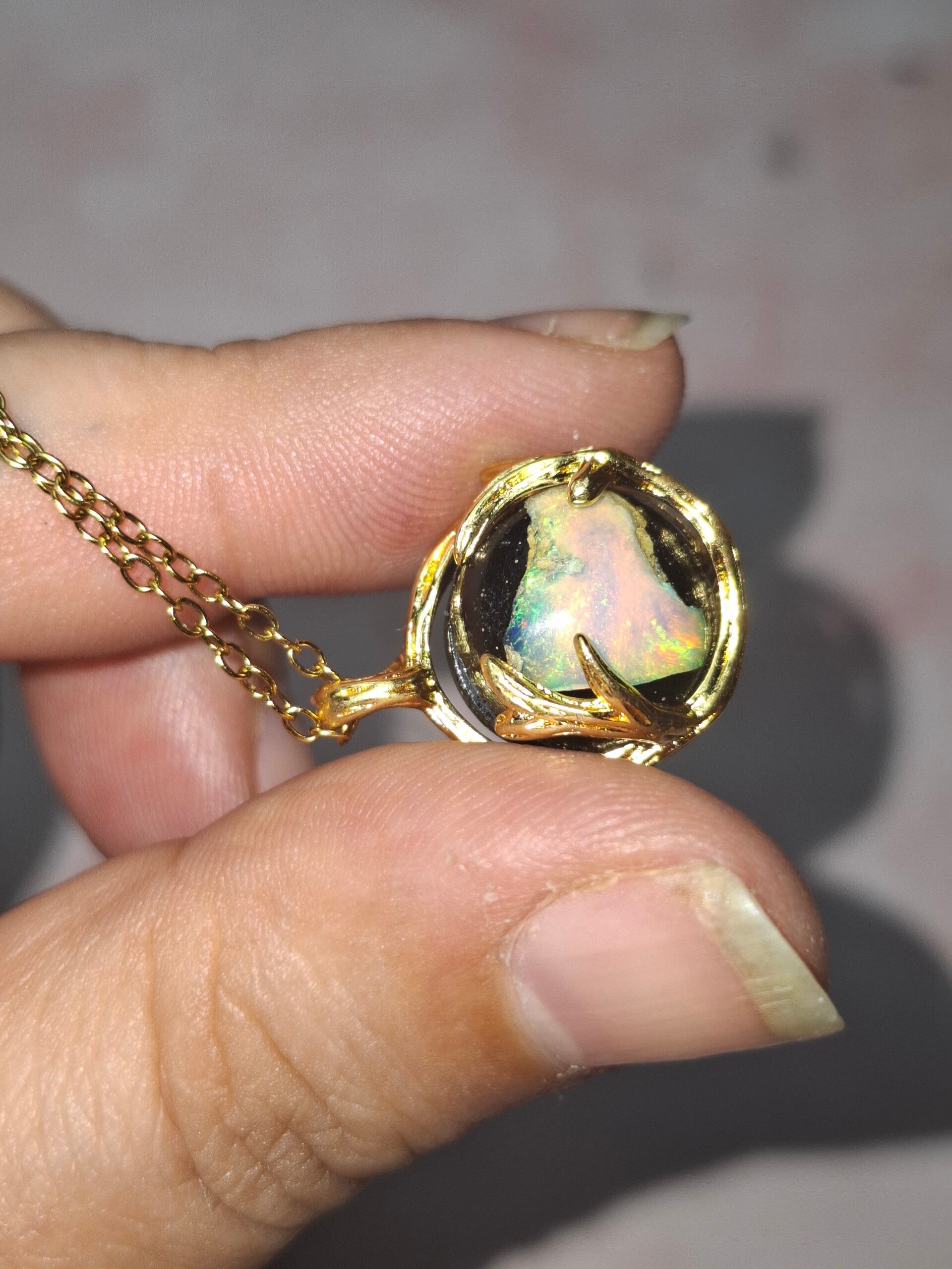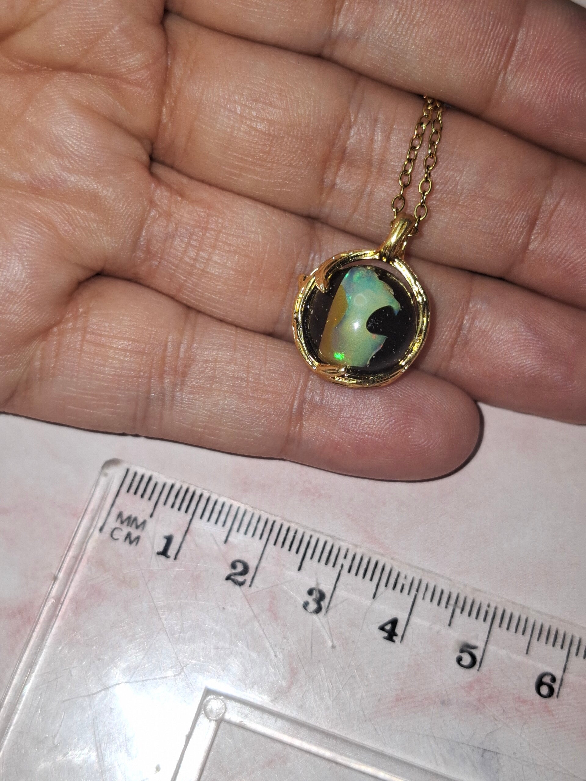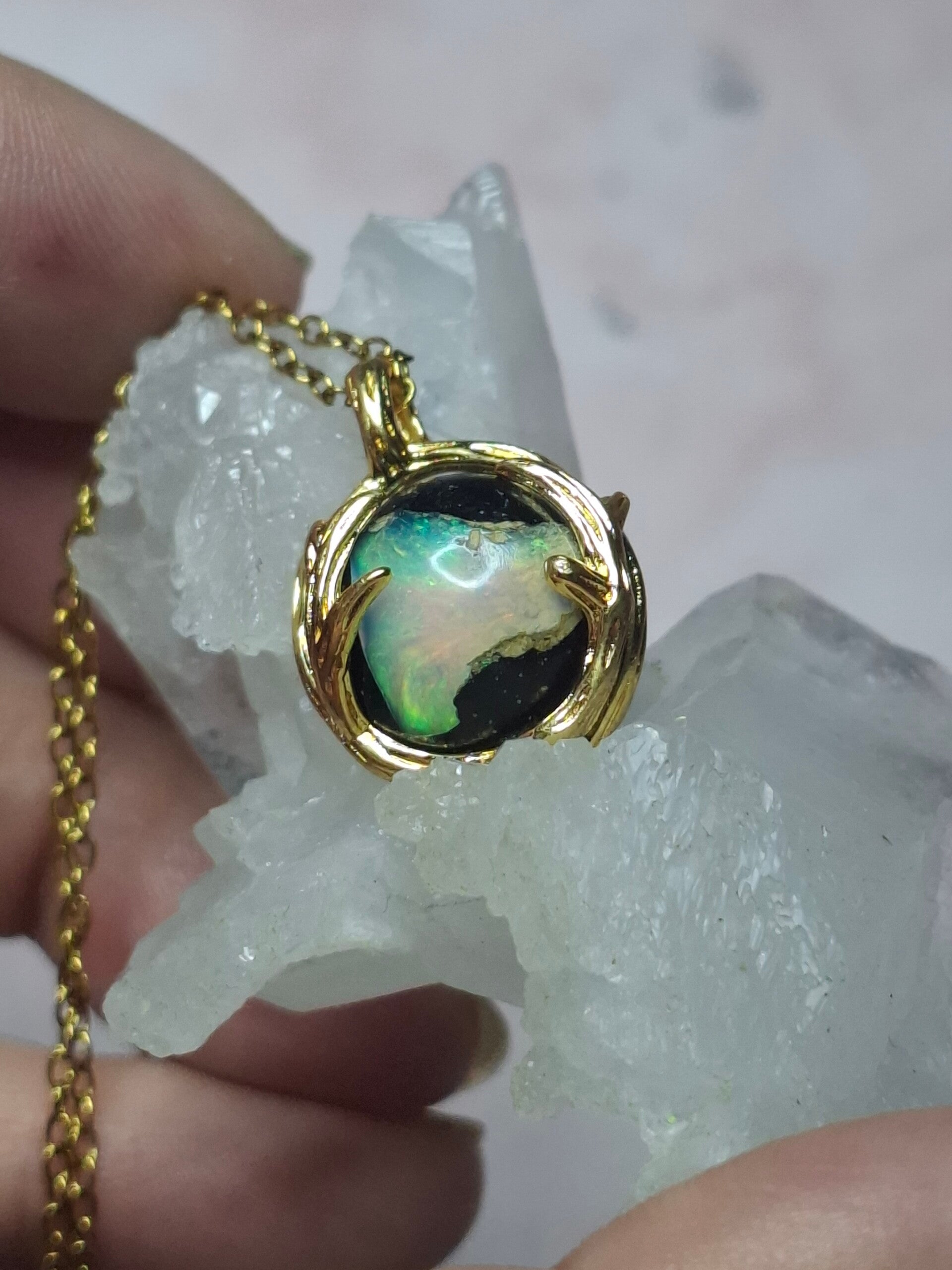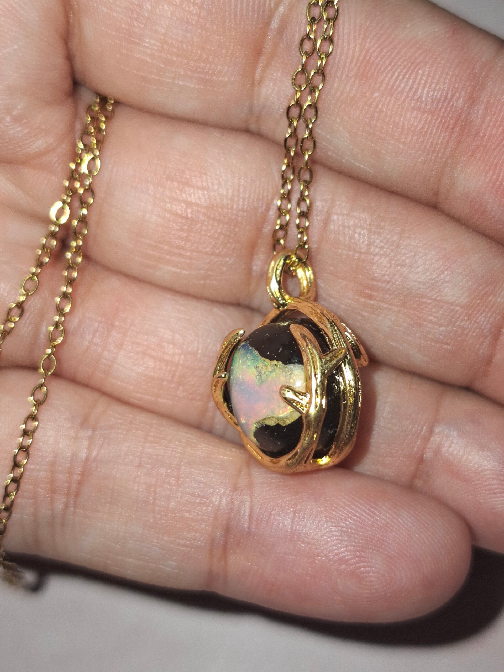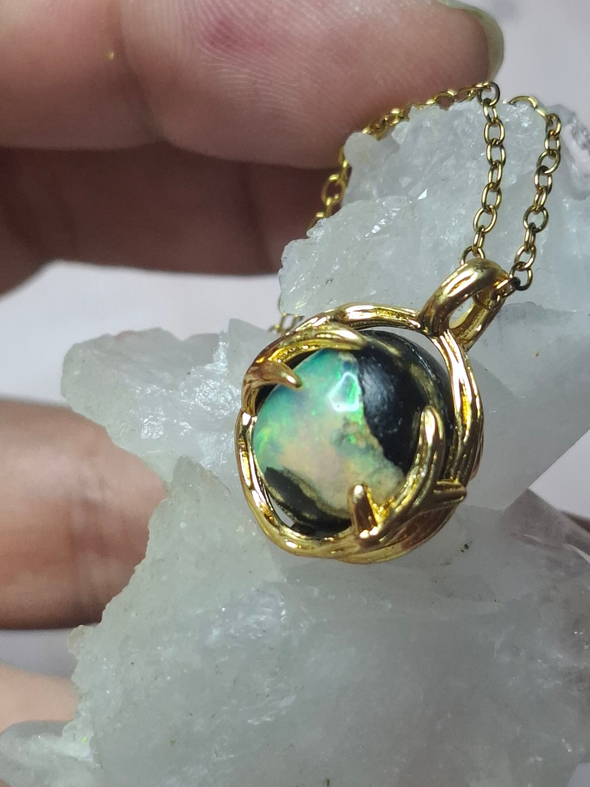 Pendentif sphere 12mm opale éthiopienne matrice volcanique