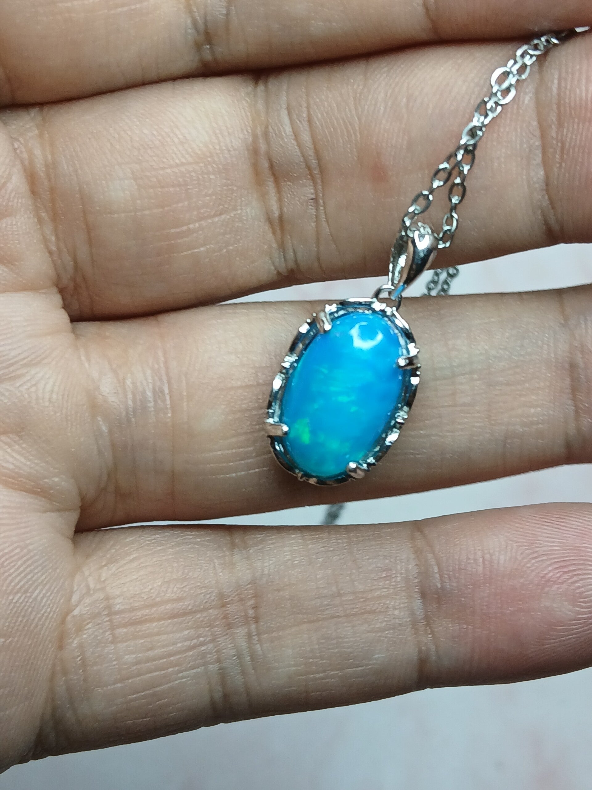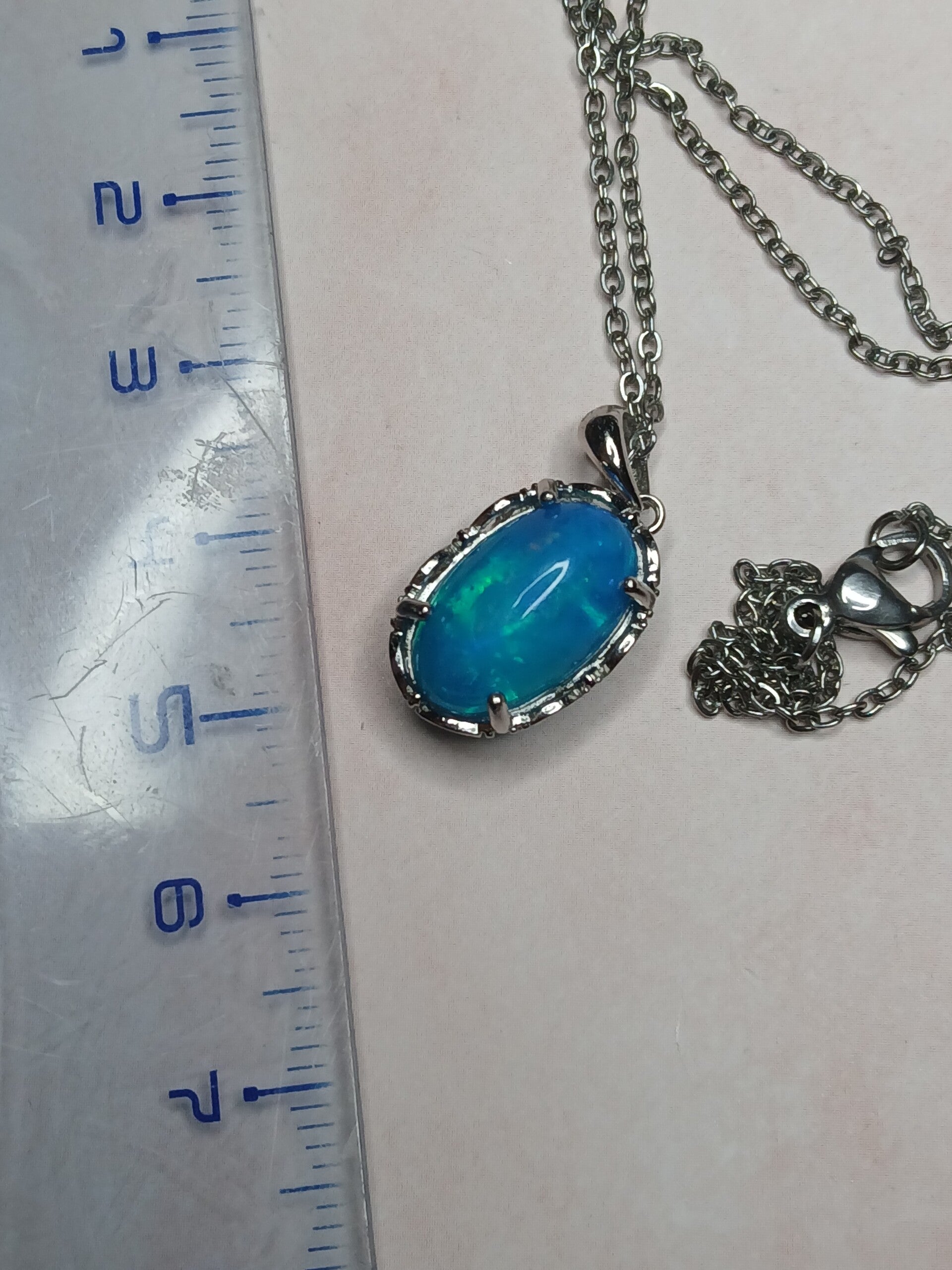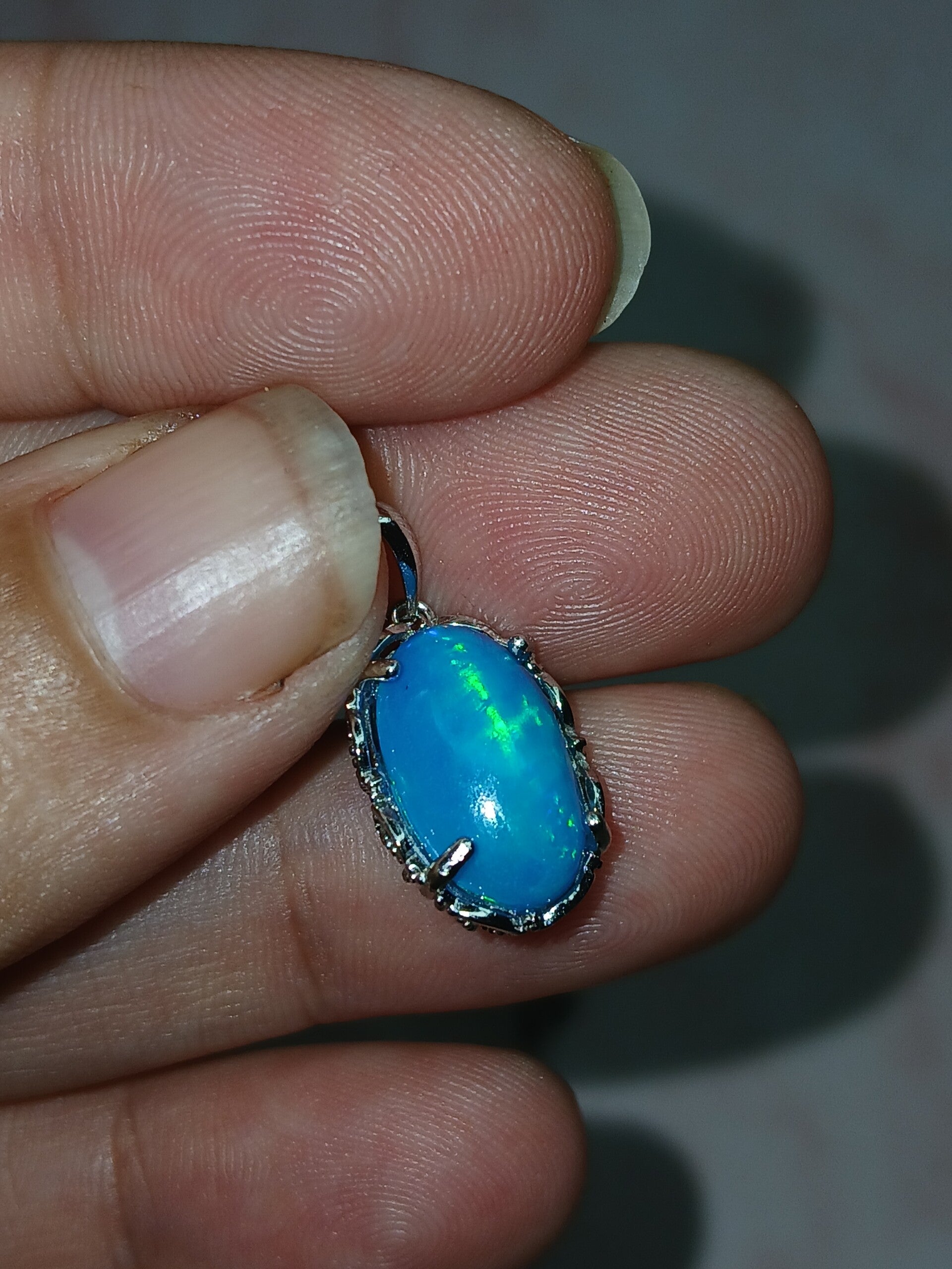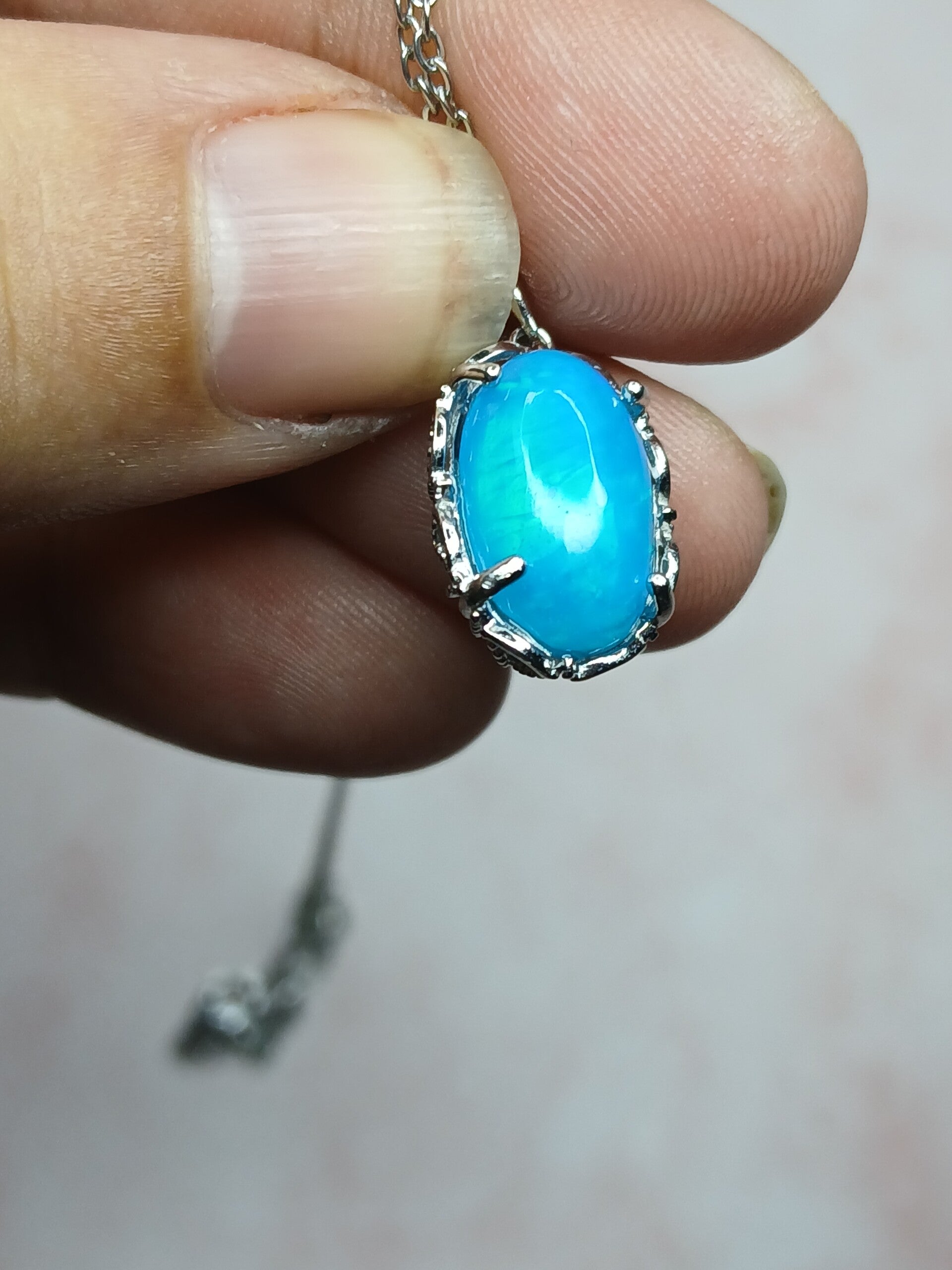 Pendentif s925 opale paraiba 14x10mm éthiopienne
