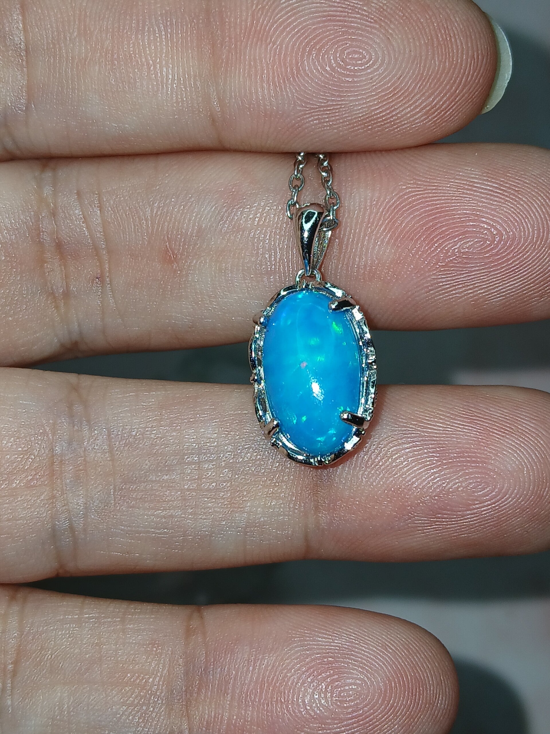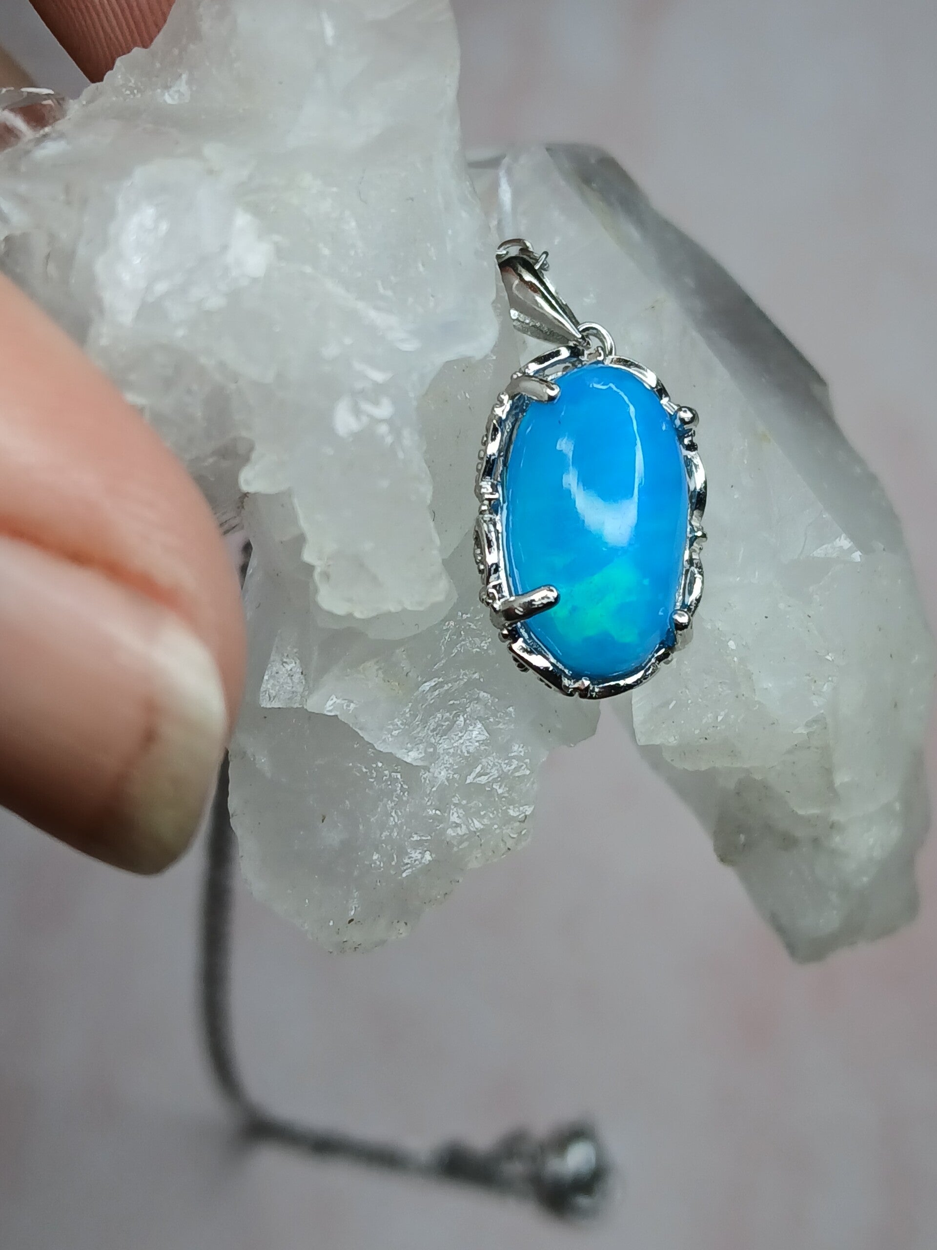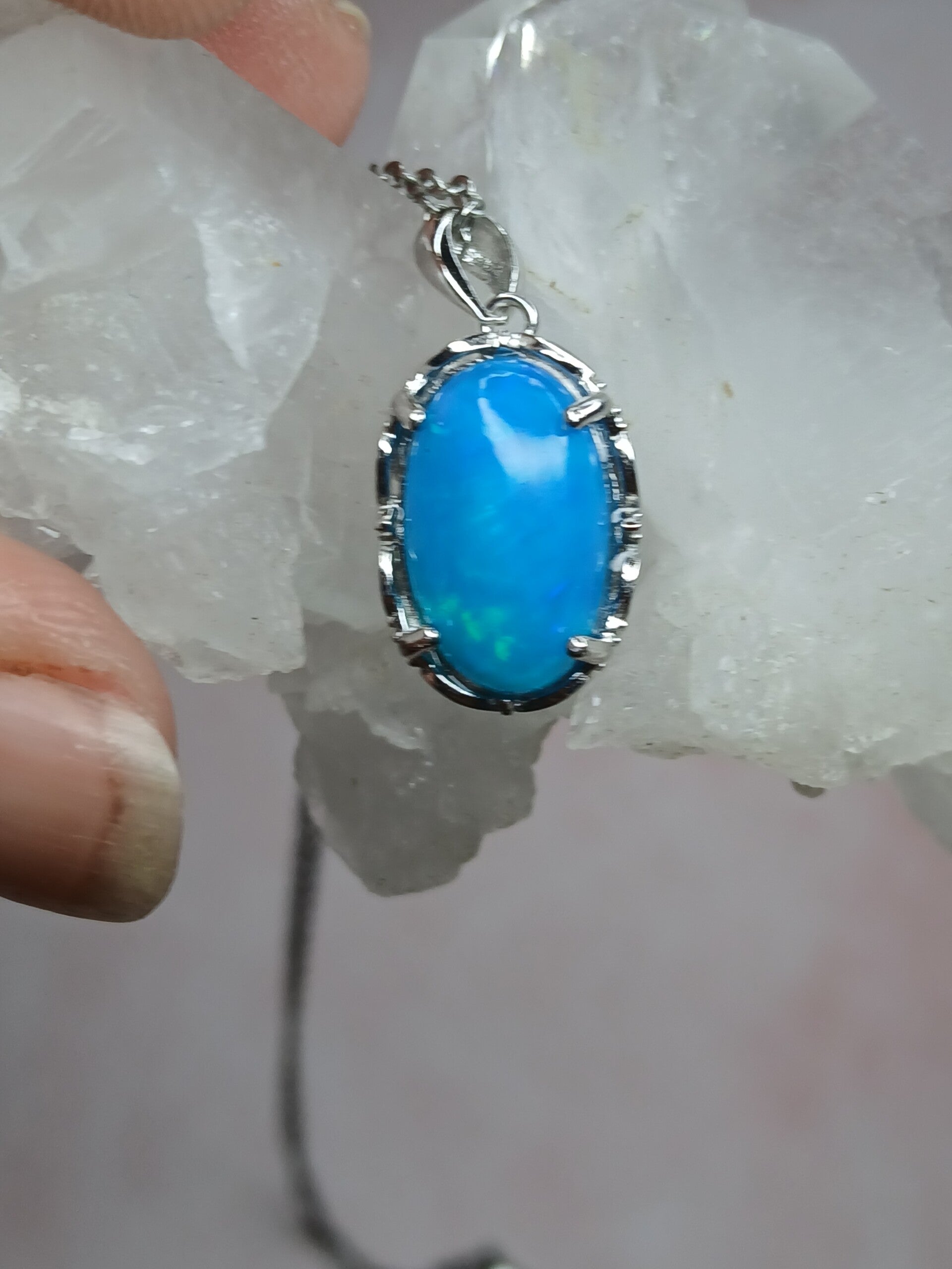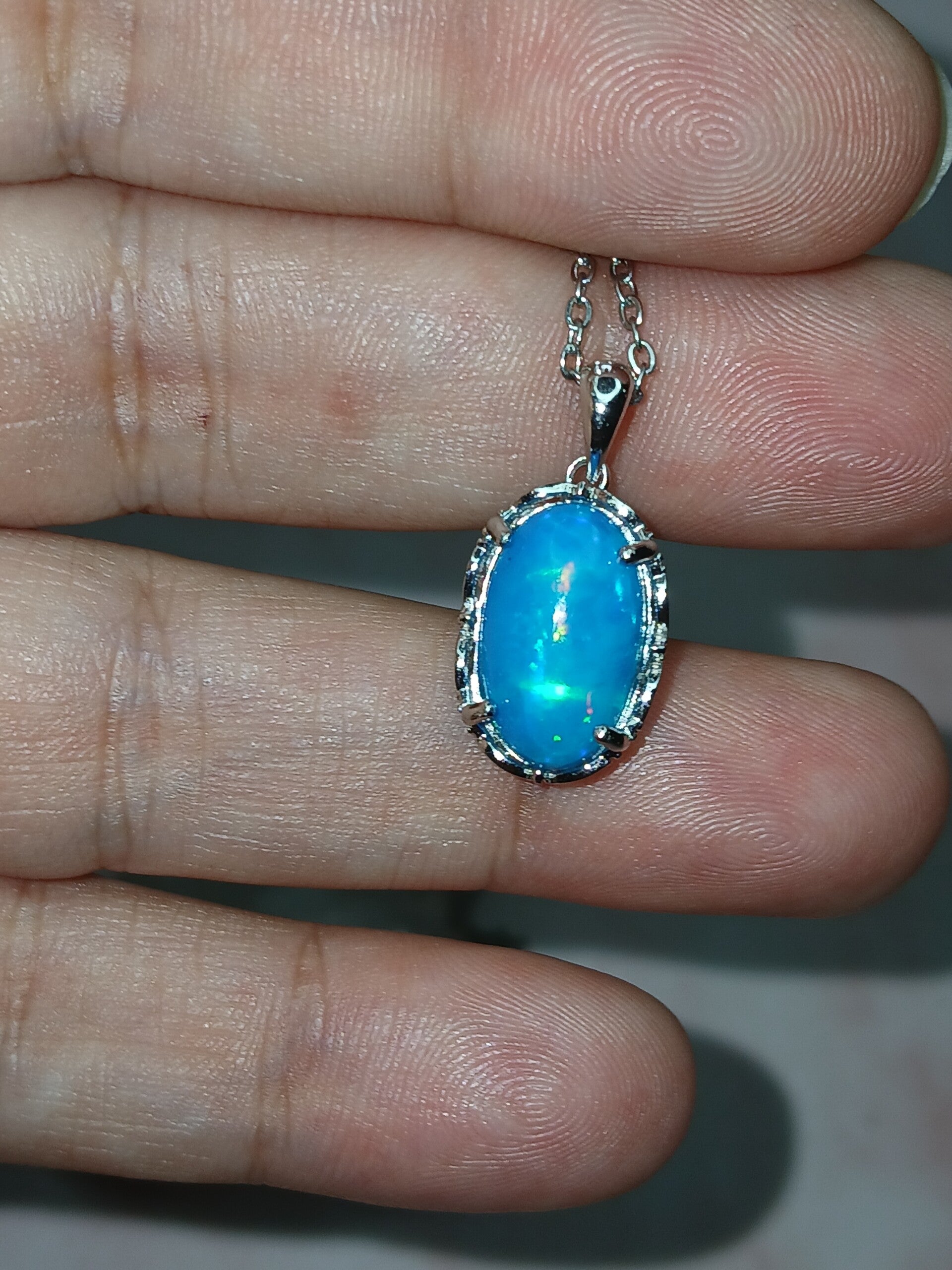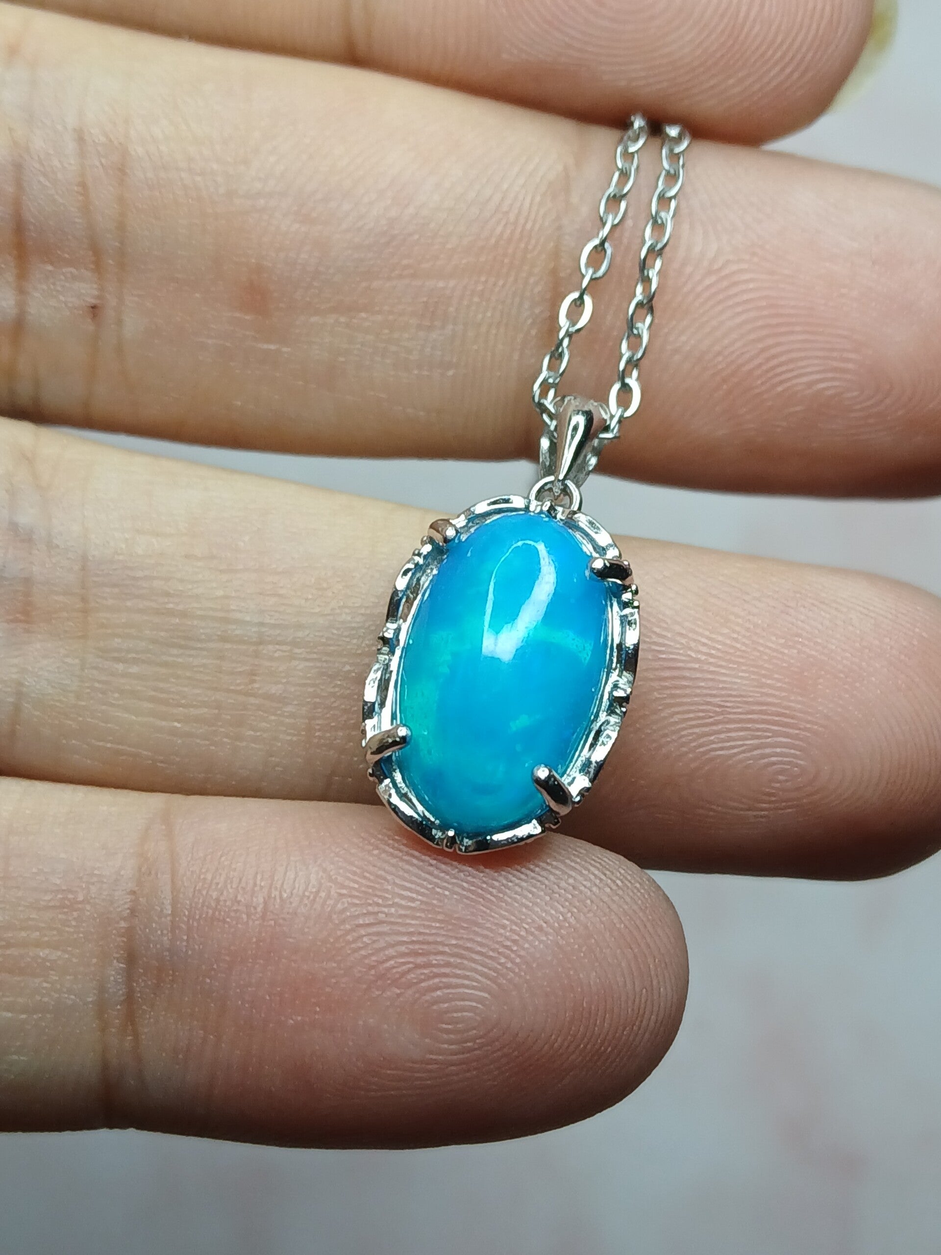 Pendentif s925 opale paraiba 14x10mm éthiopienne