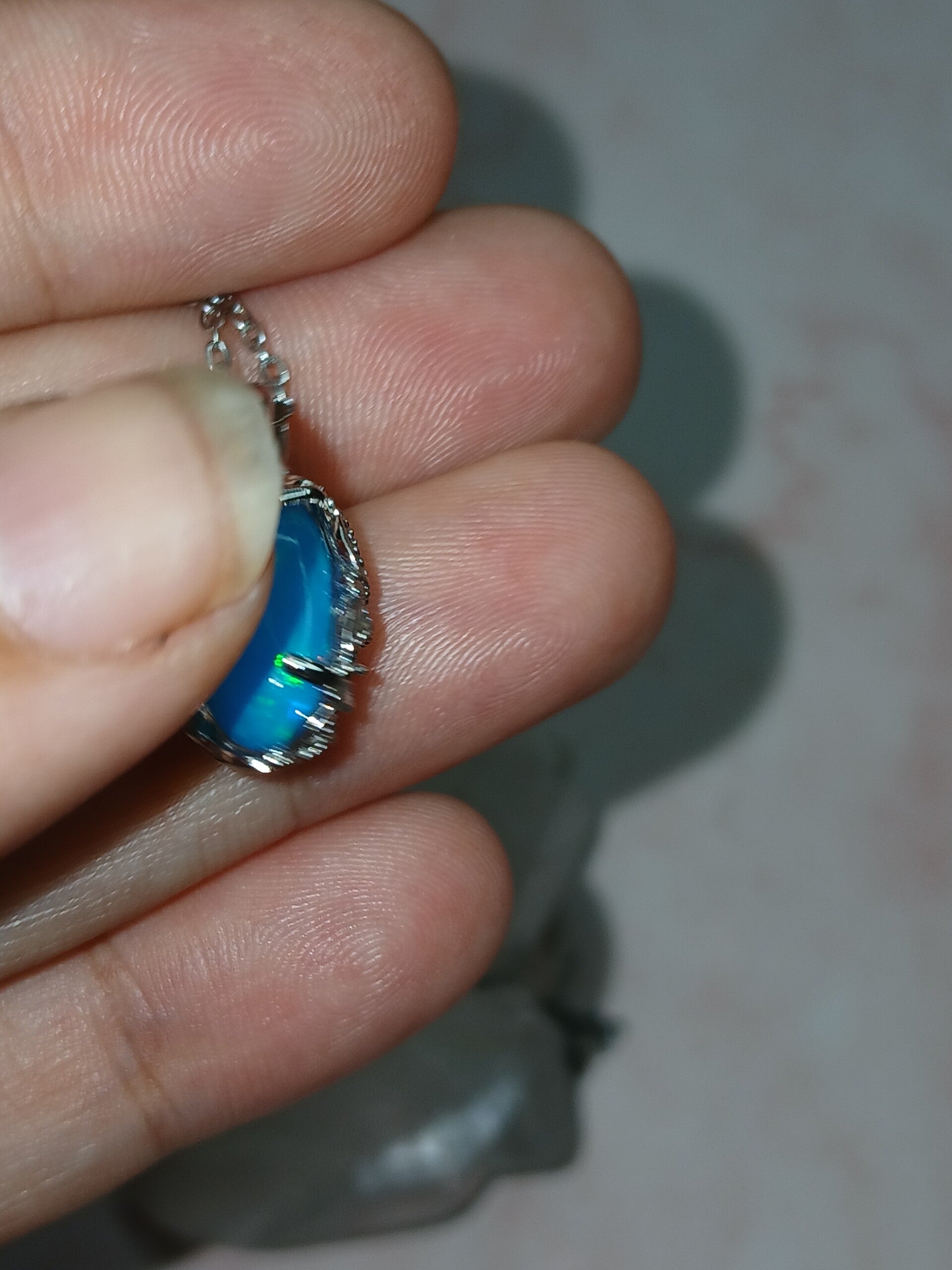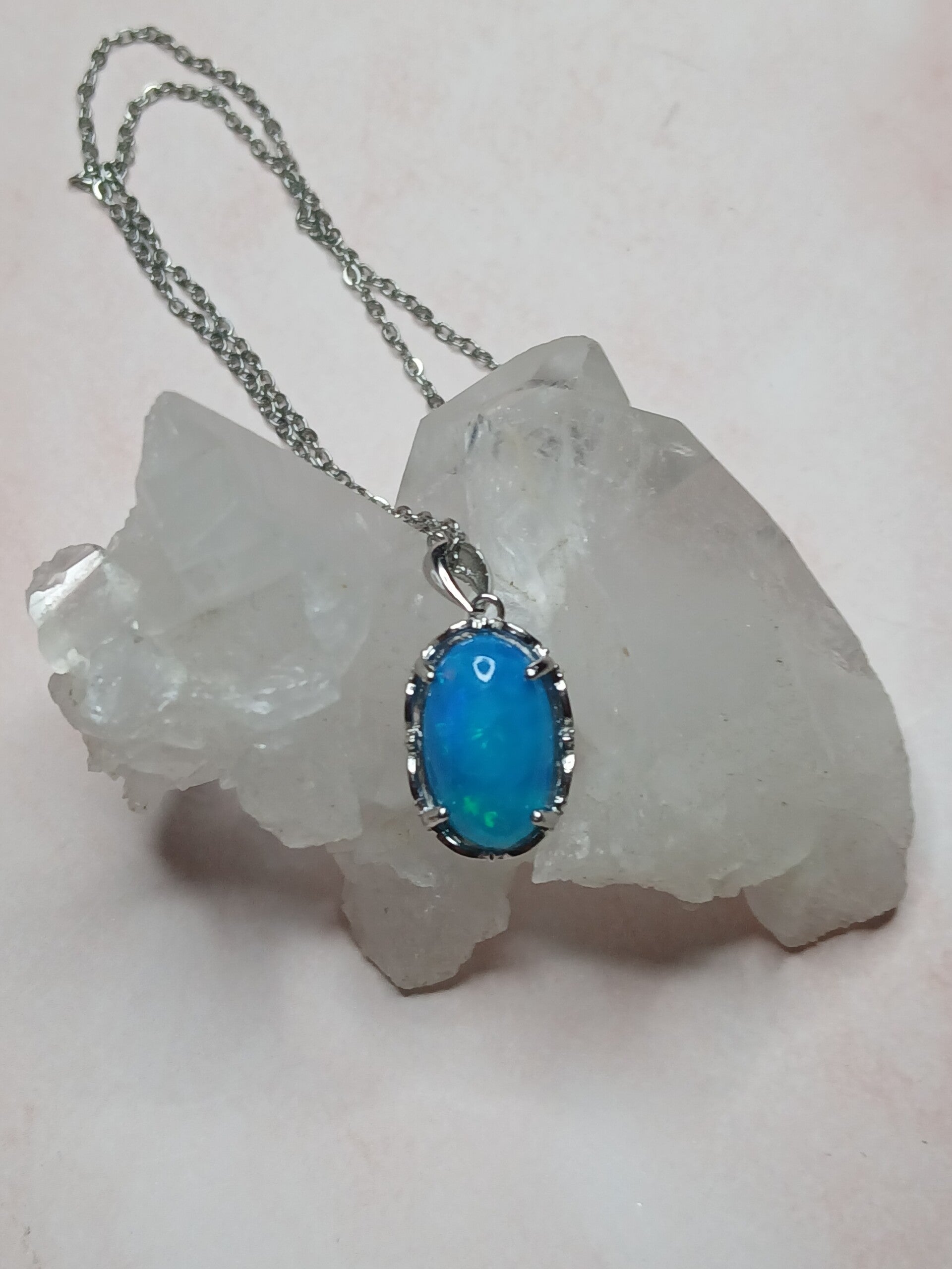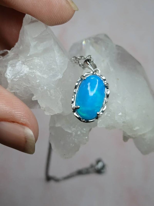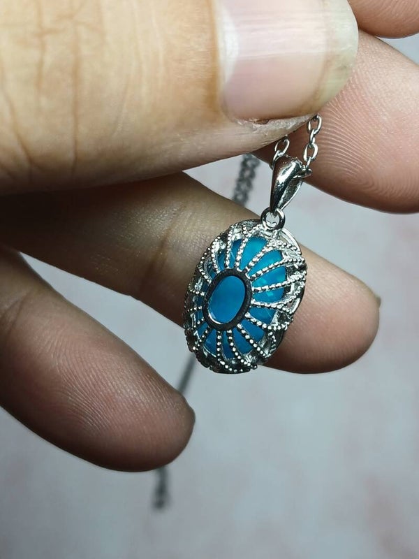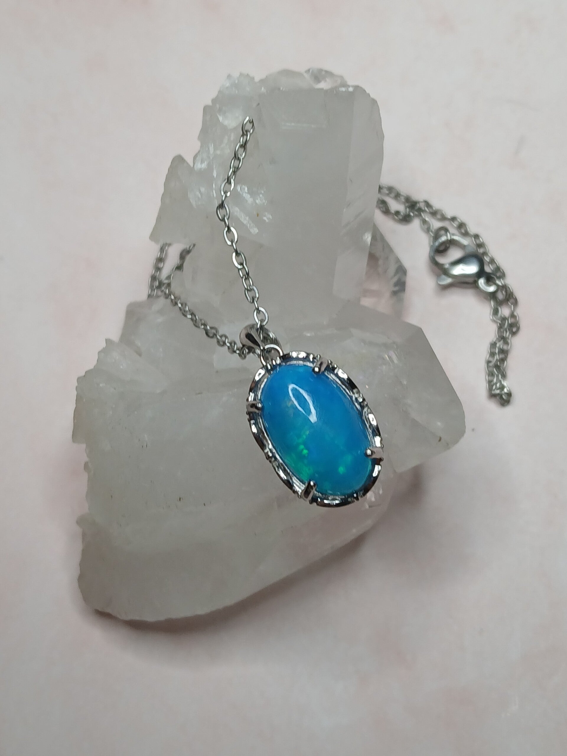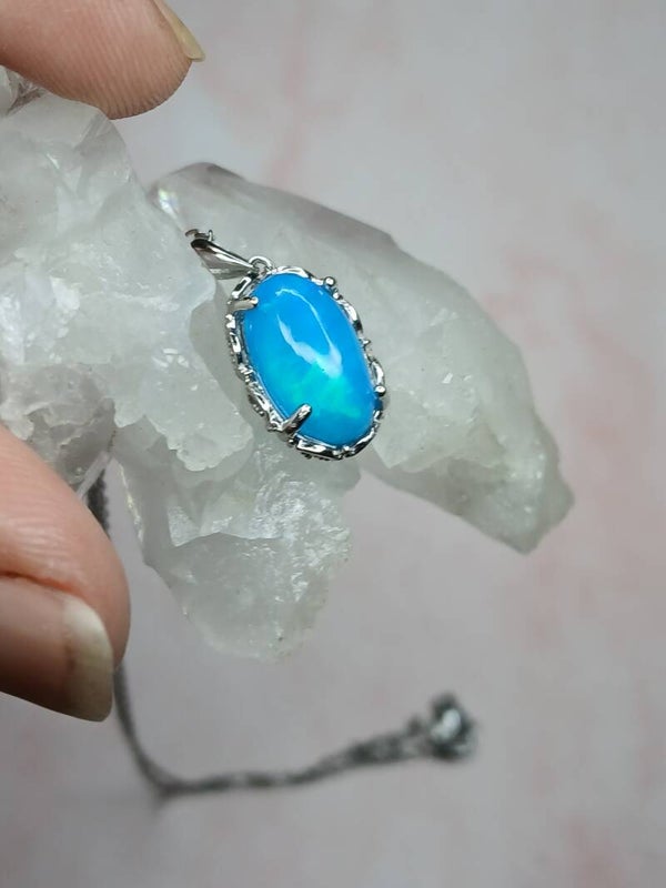 Pendentif s925 opale paraiba 14x10mm éthiopienne
