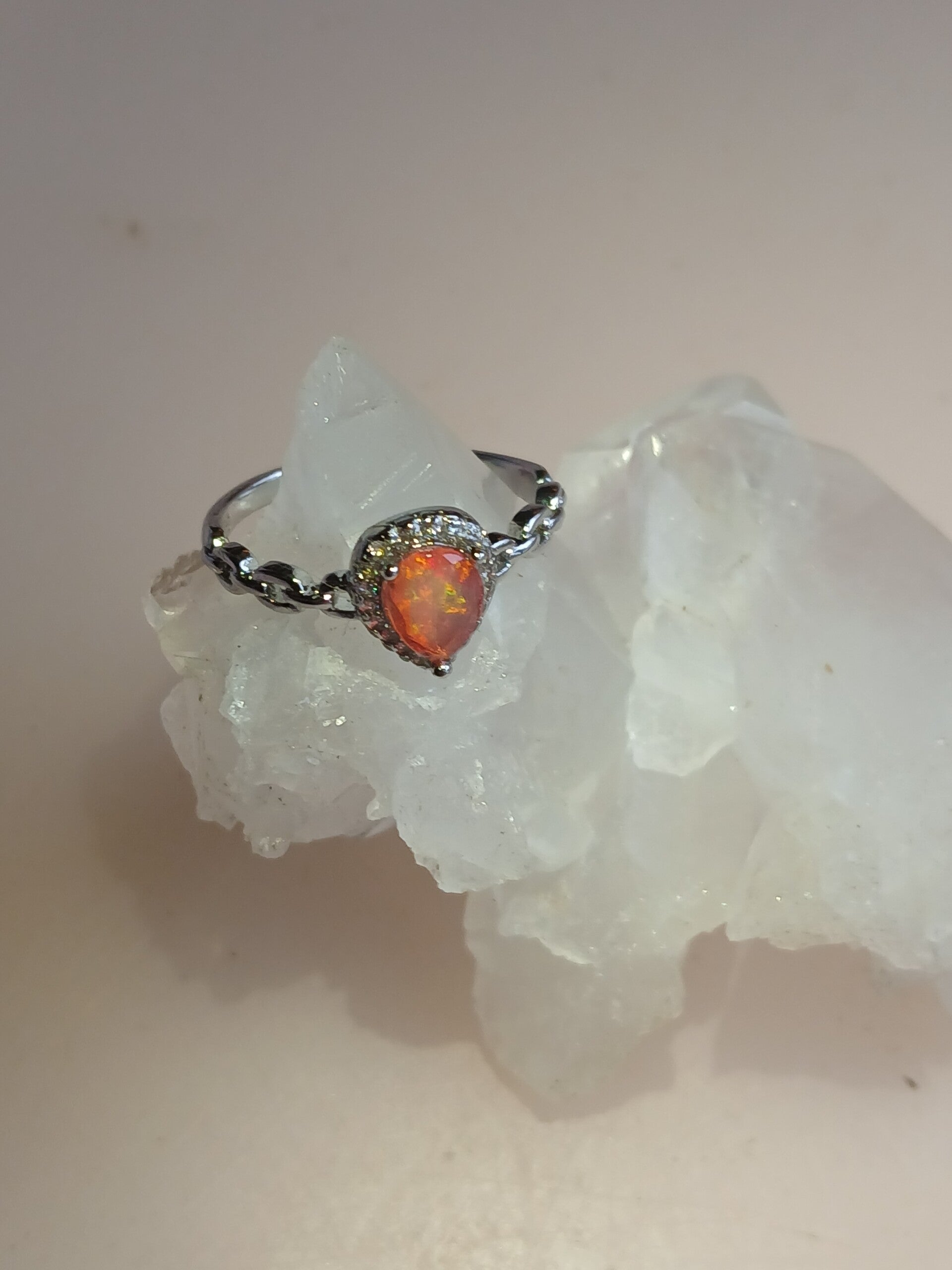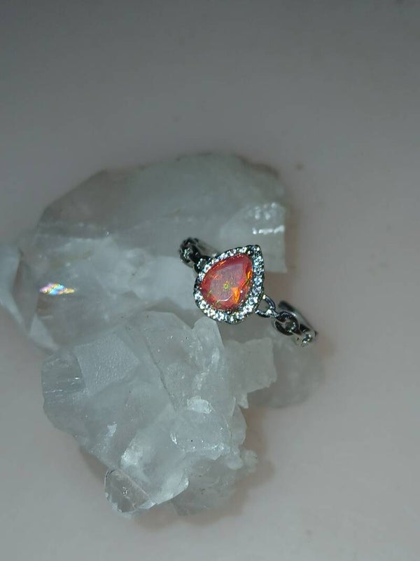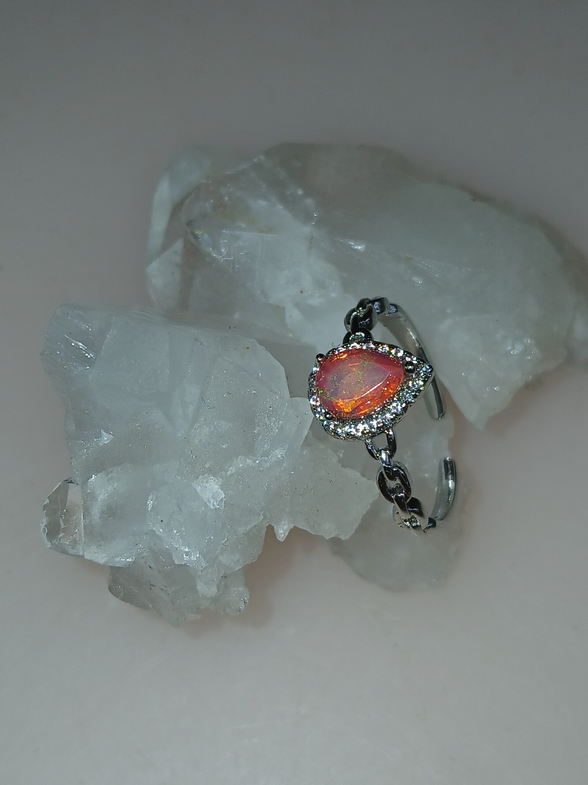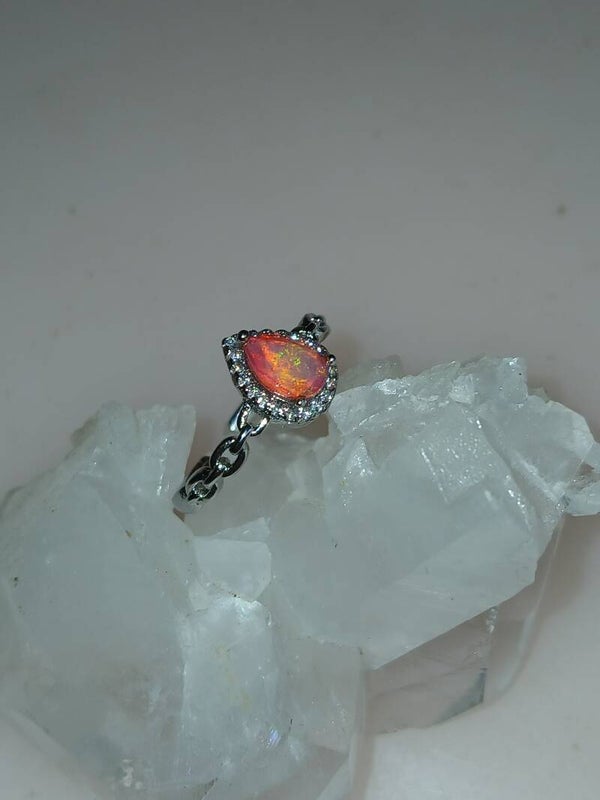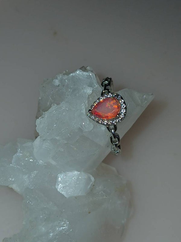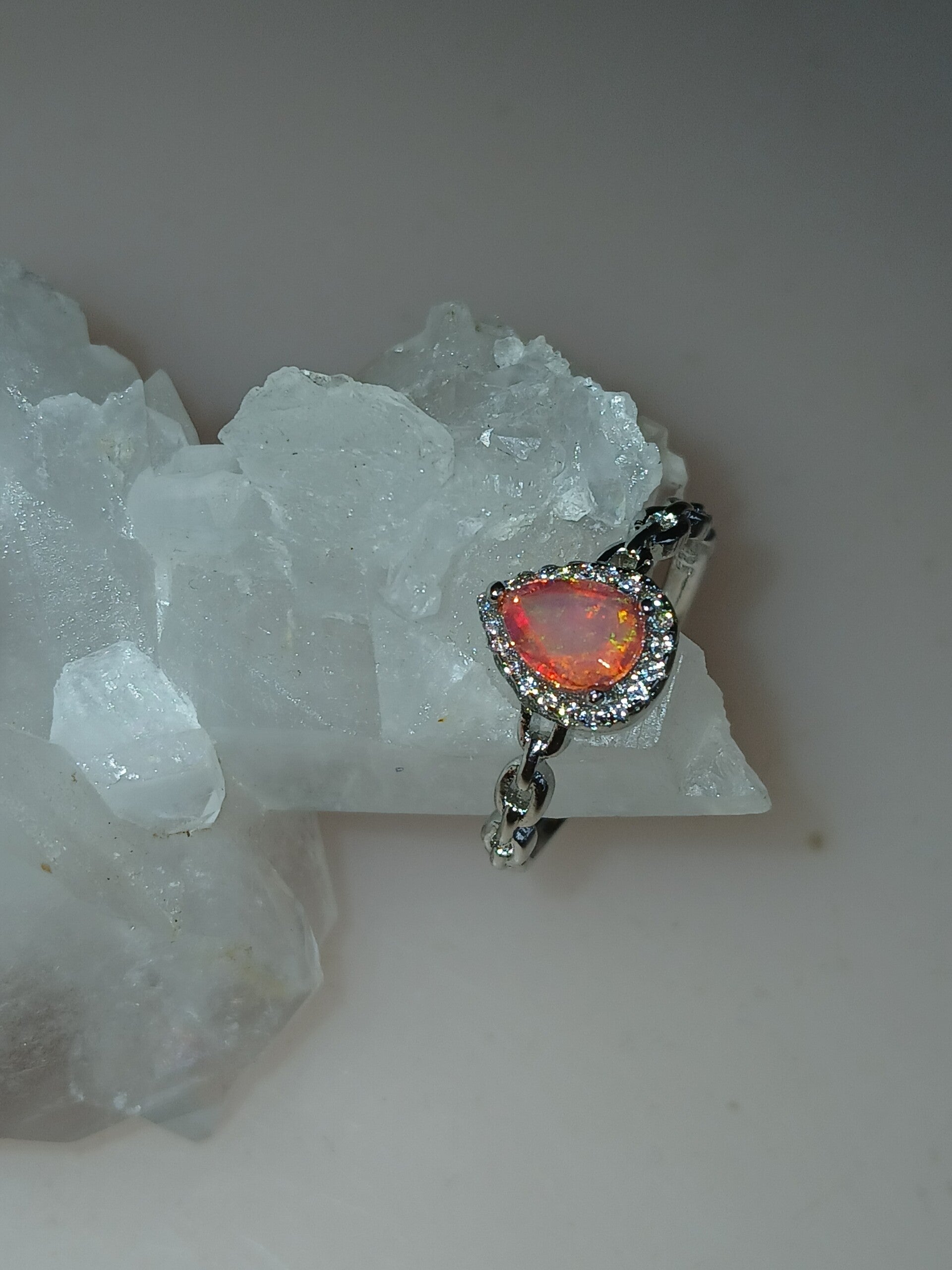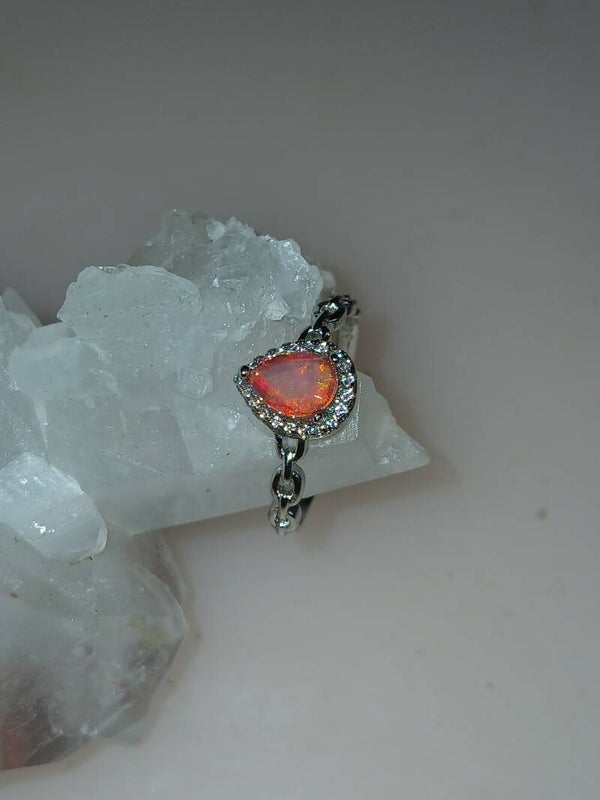 Bague ajustable opale goutte 7x5mm éthiopienne