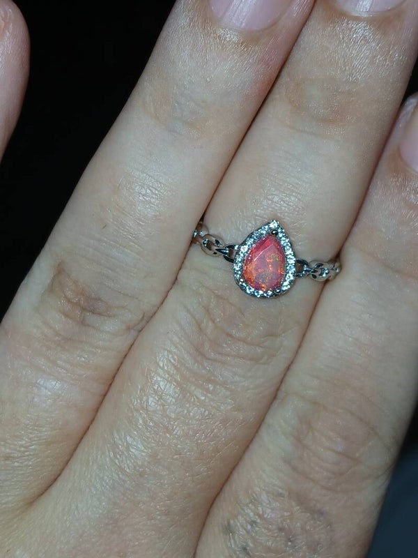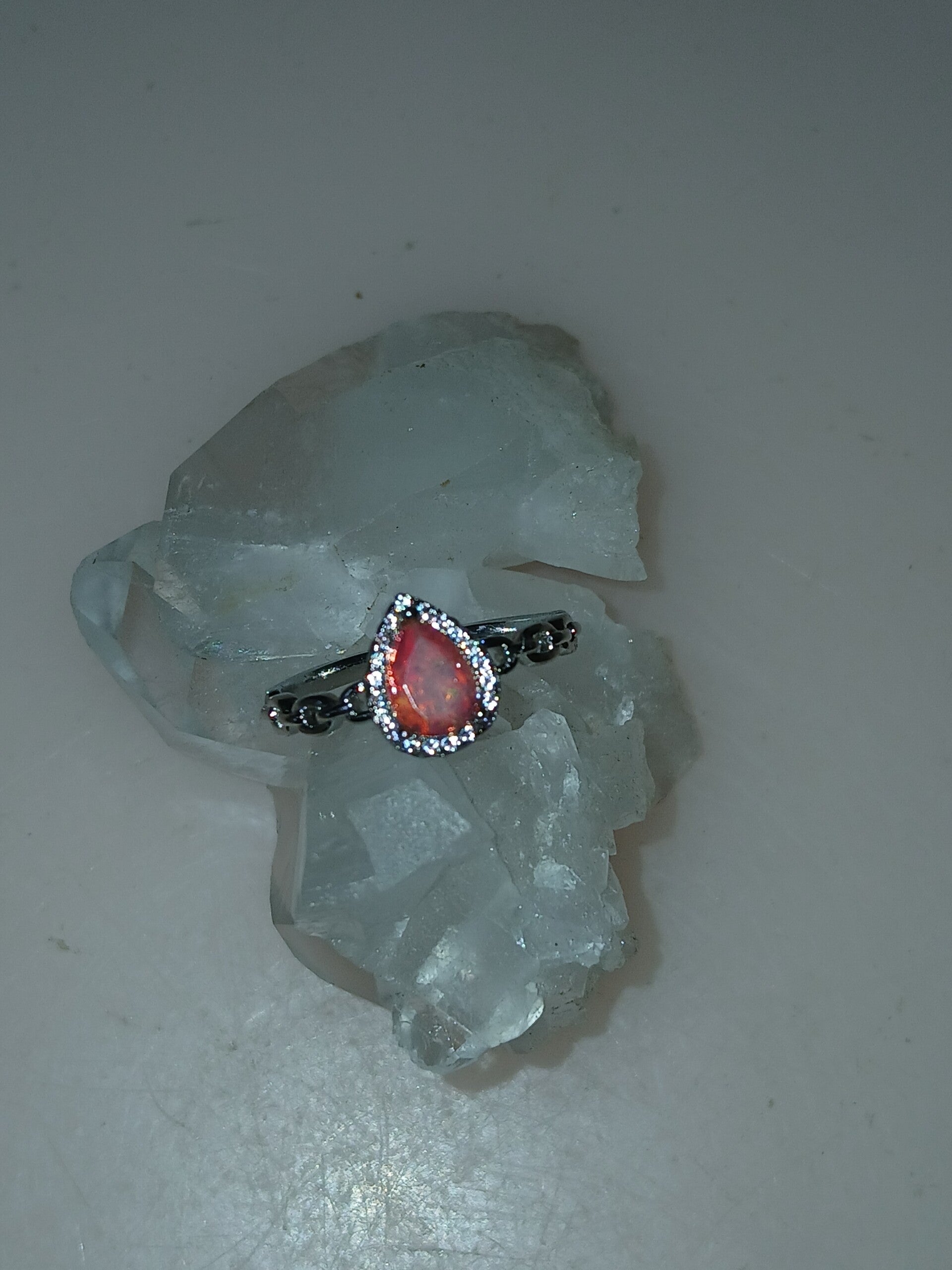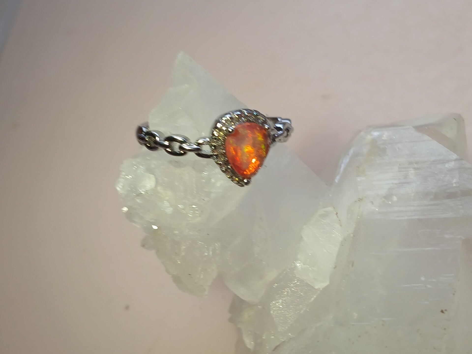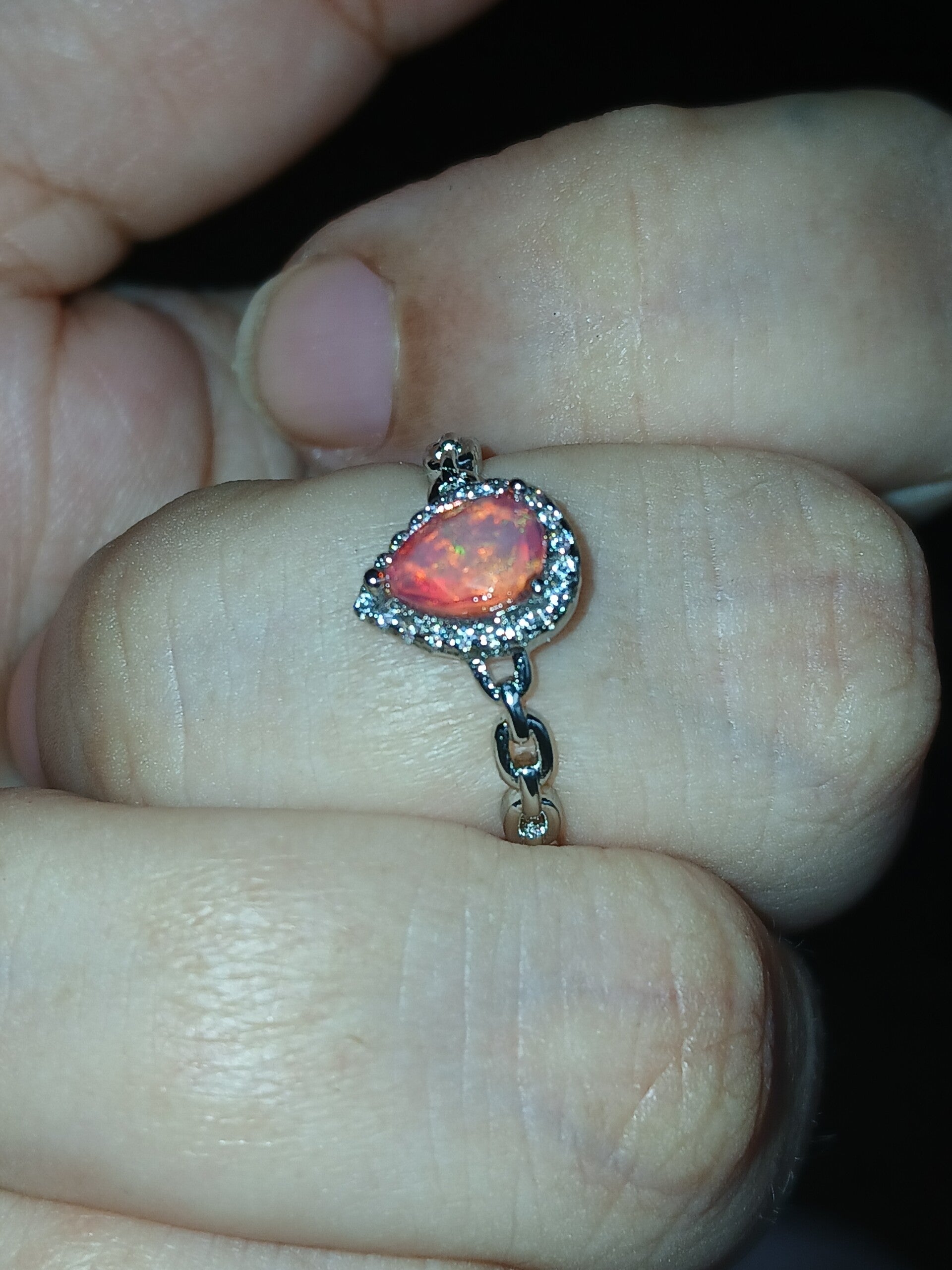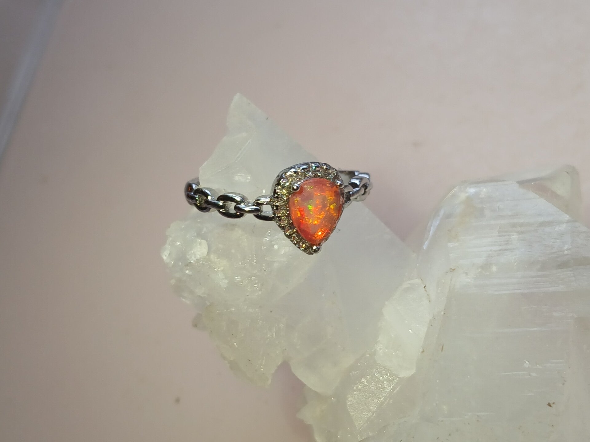 Bague ajustable opale goutte 7x5mm éthiopienne