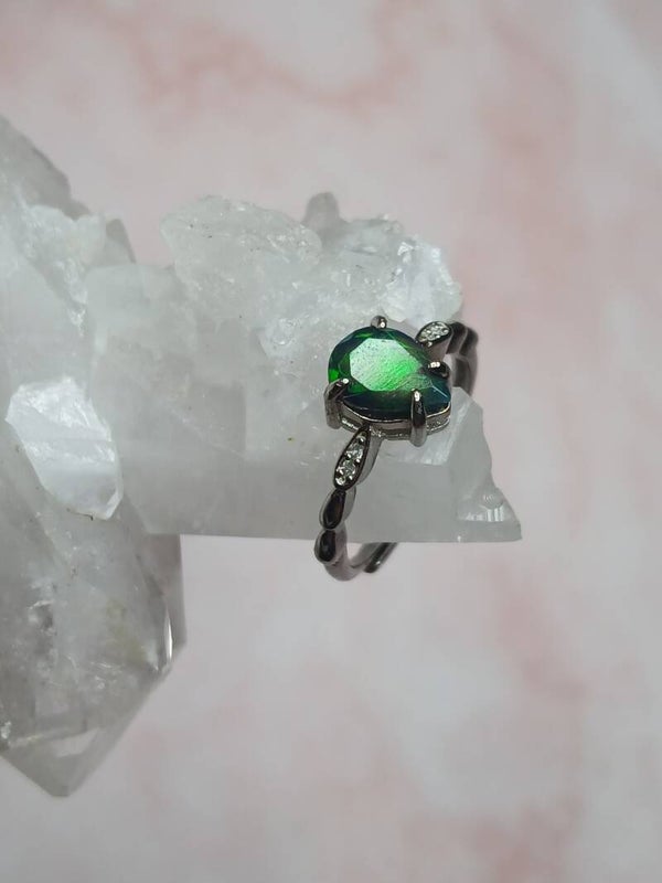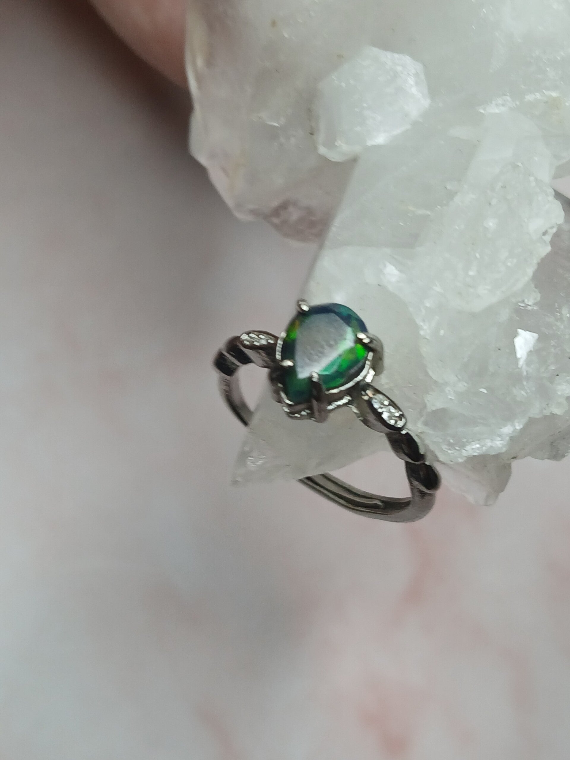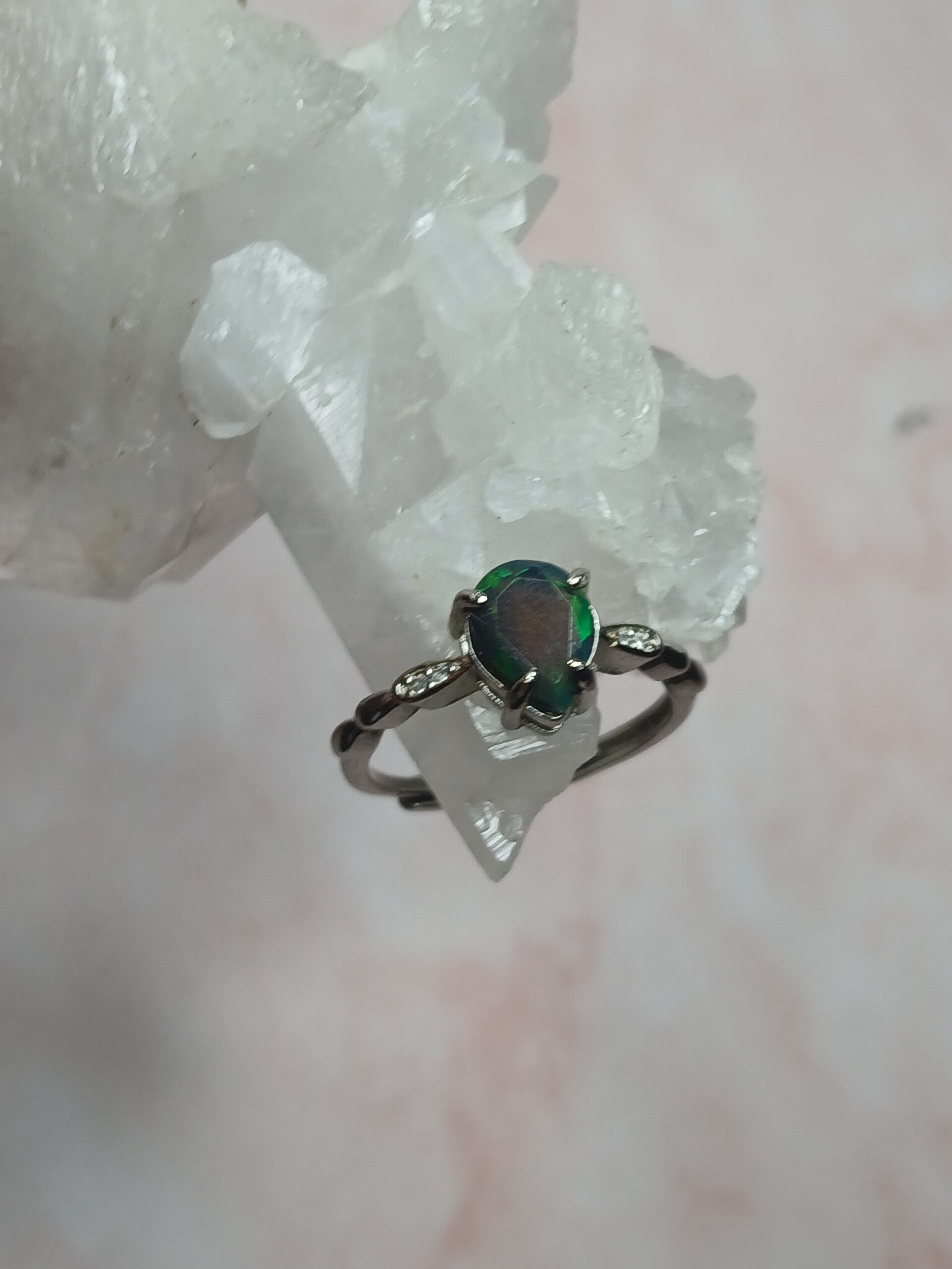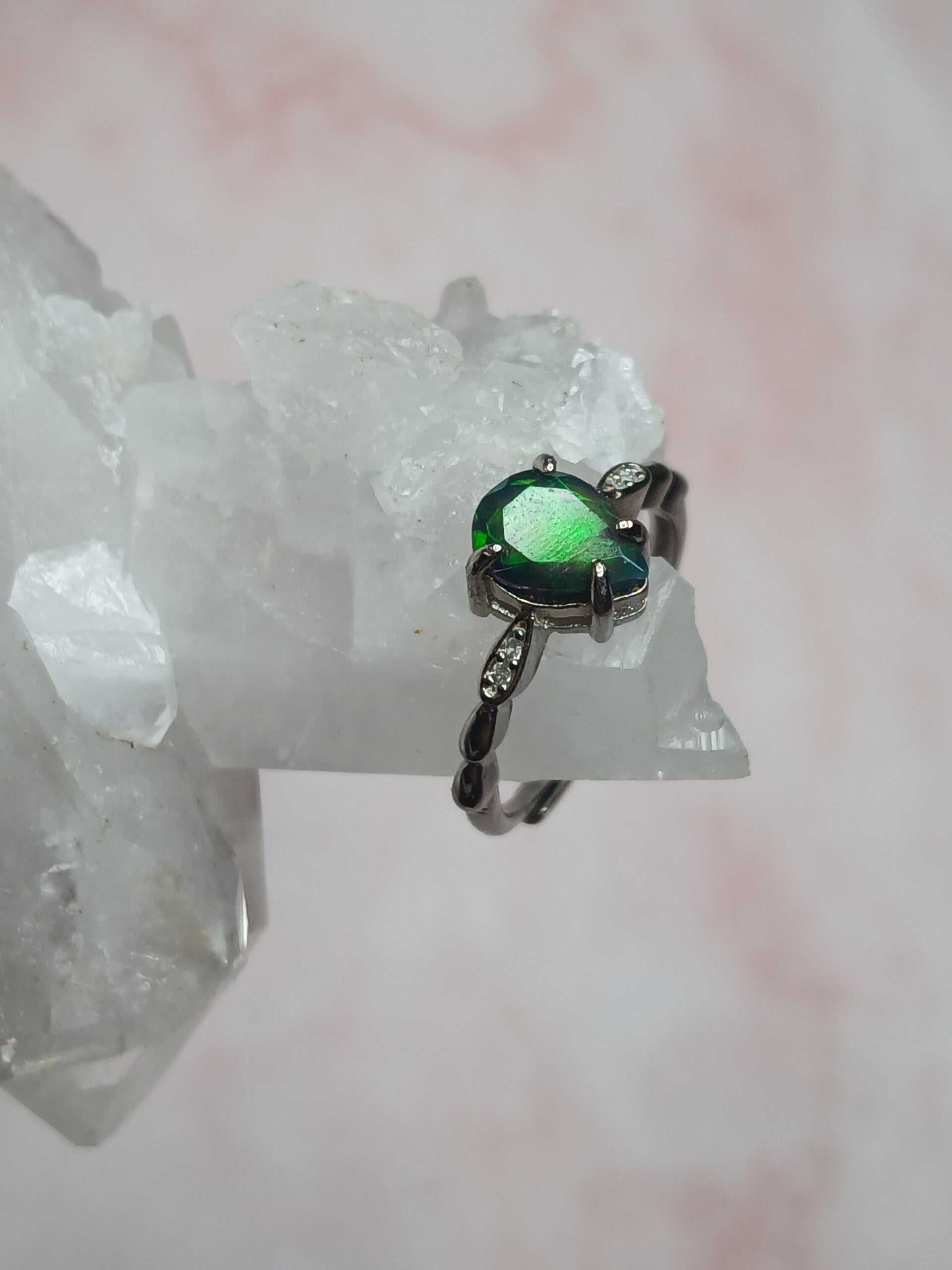 *** Plaqué argent rodhié de moyenne qualité. Possible selon le type de peau et de pH que la bague noircisse le doigt ou fasse une marque verte.