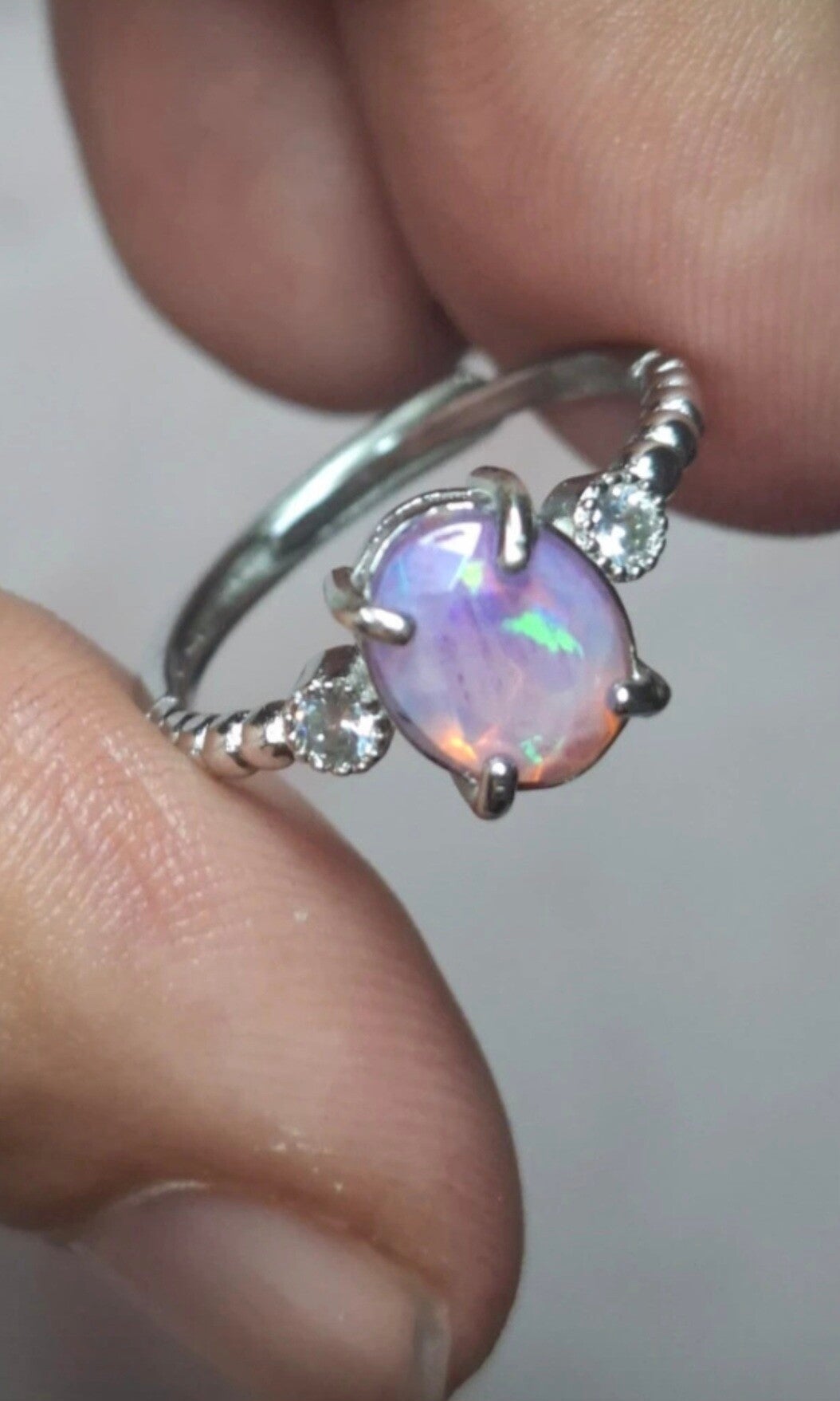 Pierre opale véritable ( beaux reflets mais defaut sur la facette, des petites strilles, ce n'est pas rayé)