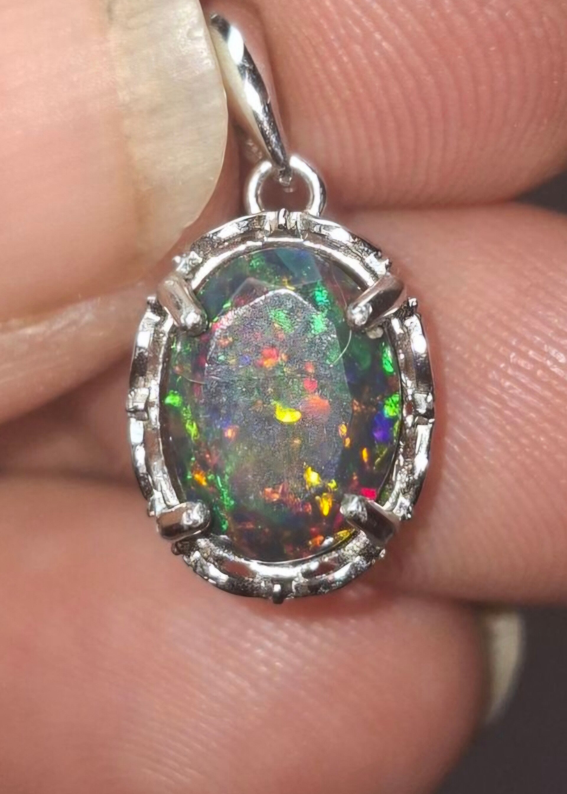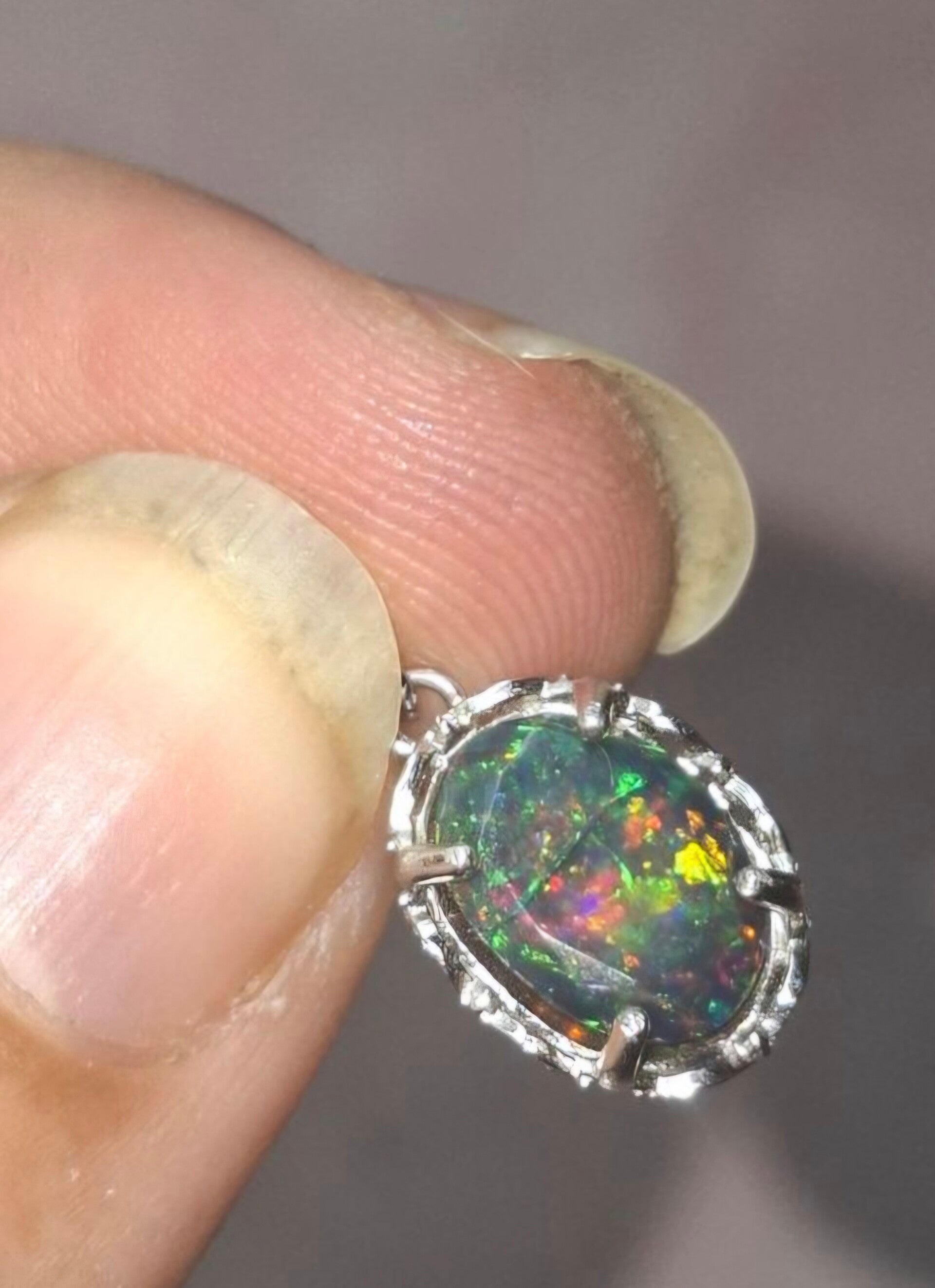 Pendentif s925 opale noire 9x7mm multicolore 🔥 éthiopienne