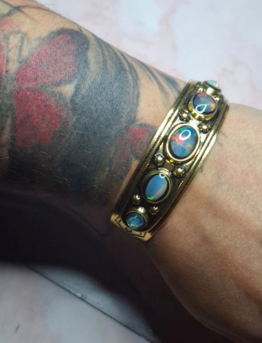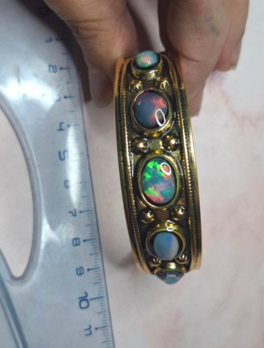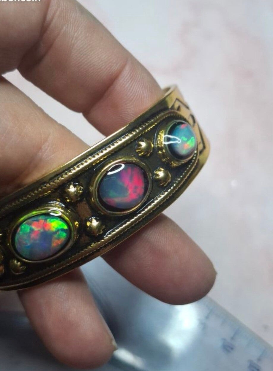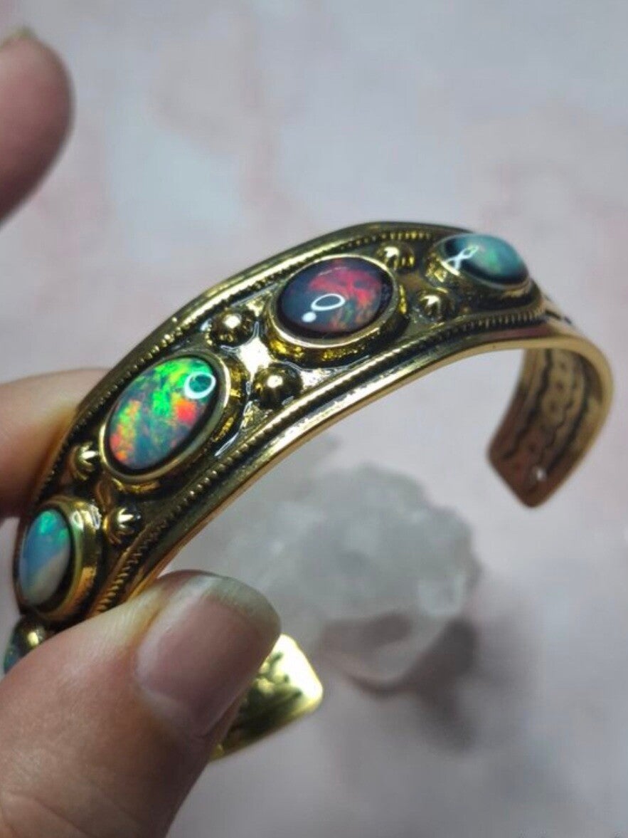 Bracelet ajustable Plaqué or intense opales multicolore éthiopienne
