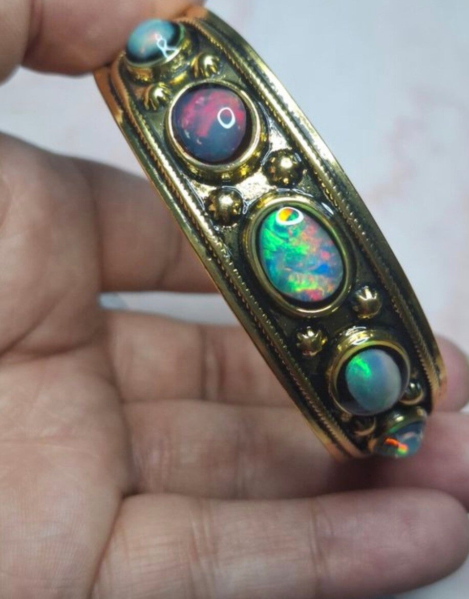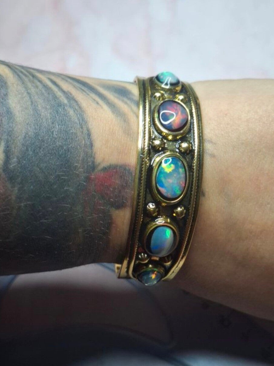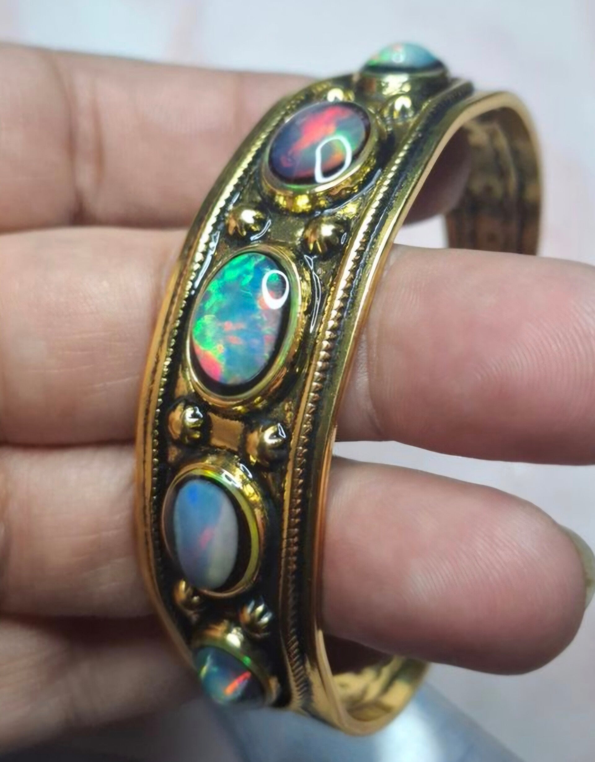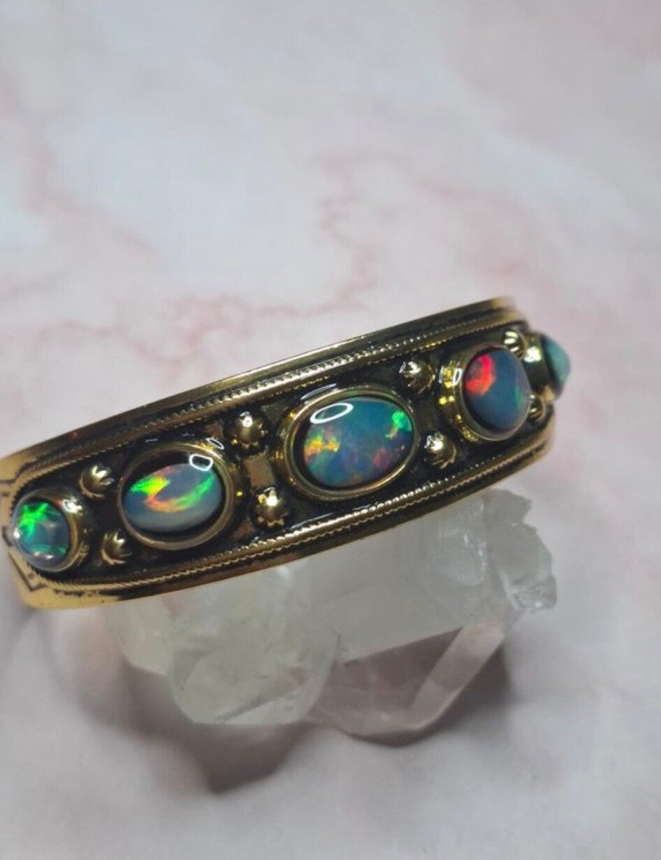 Bracelet ajustable Plaqué or intense opales multicolore éthiopienne
