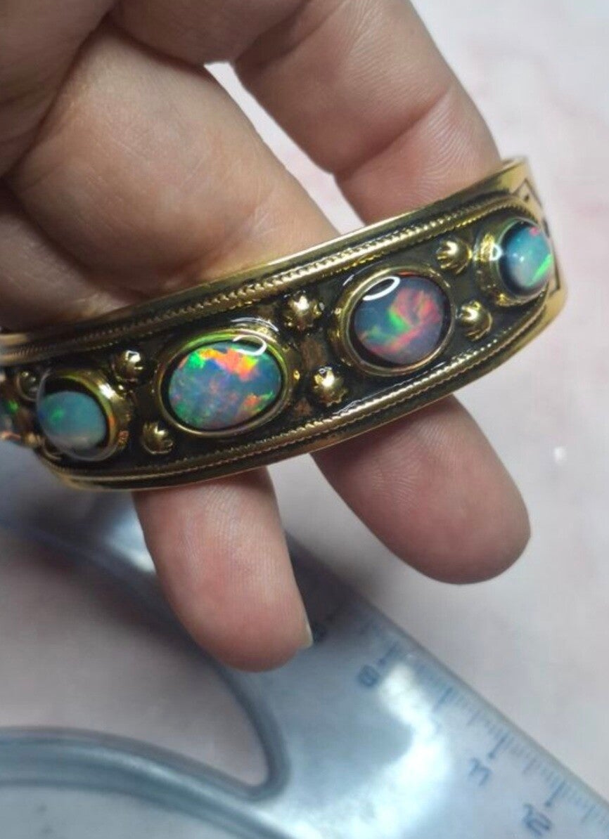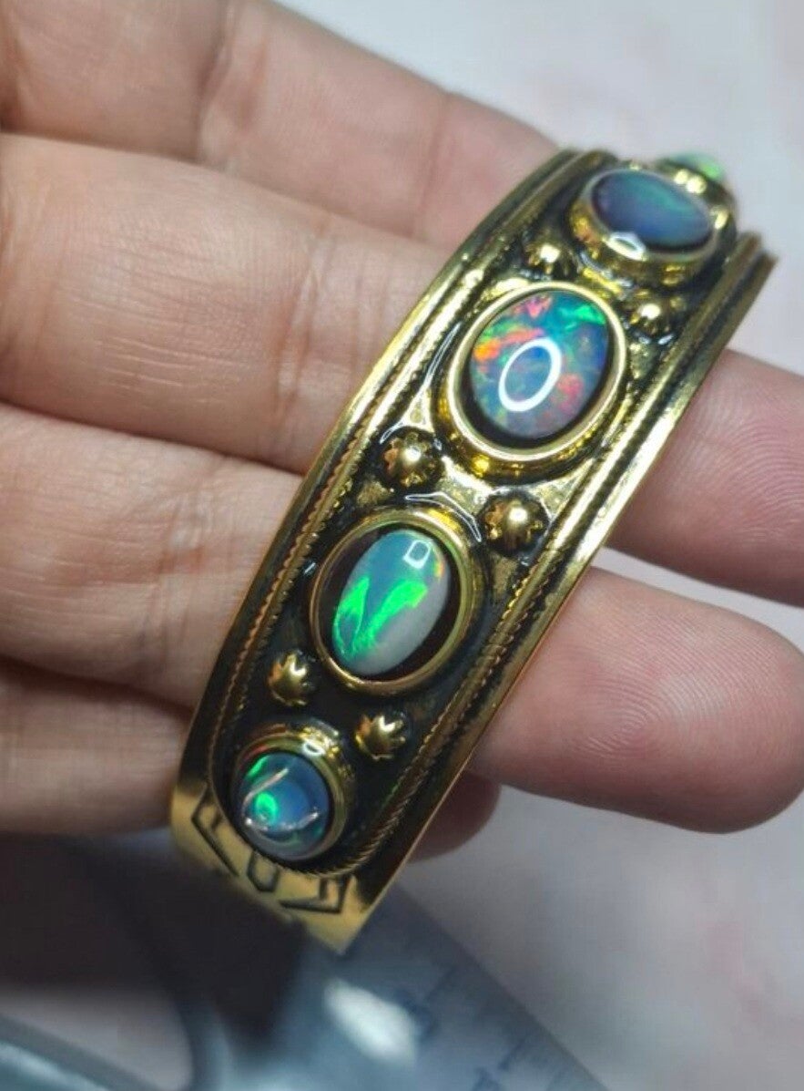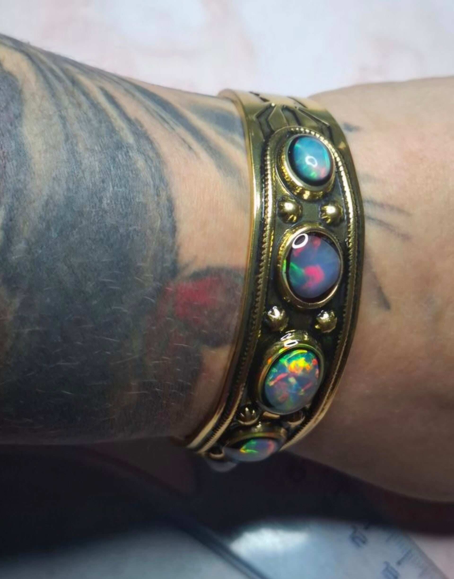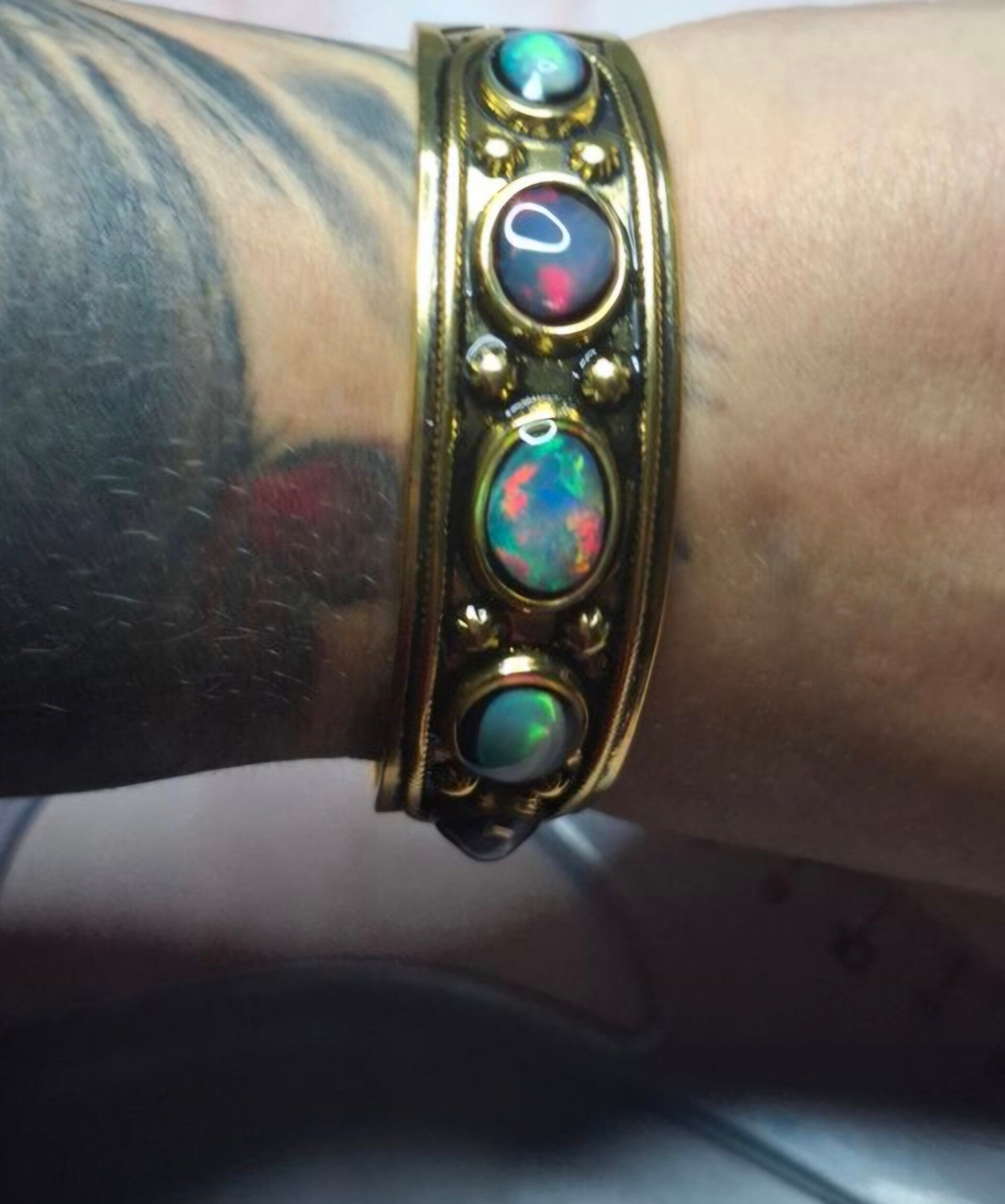 Bracelet ajustable Plaqué or intense opales multicolore éthiopienne