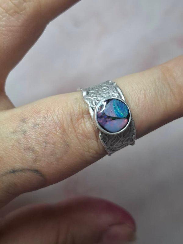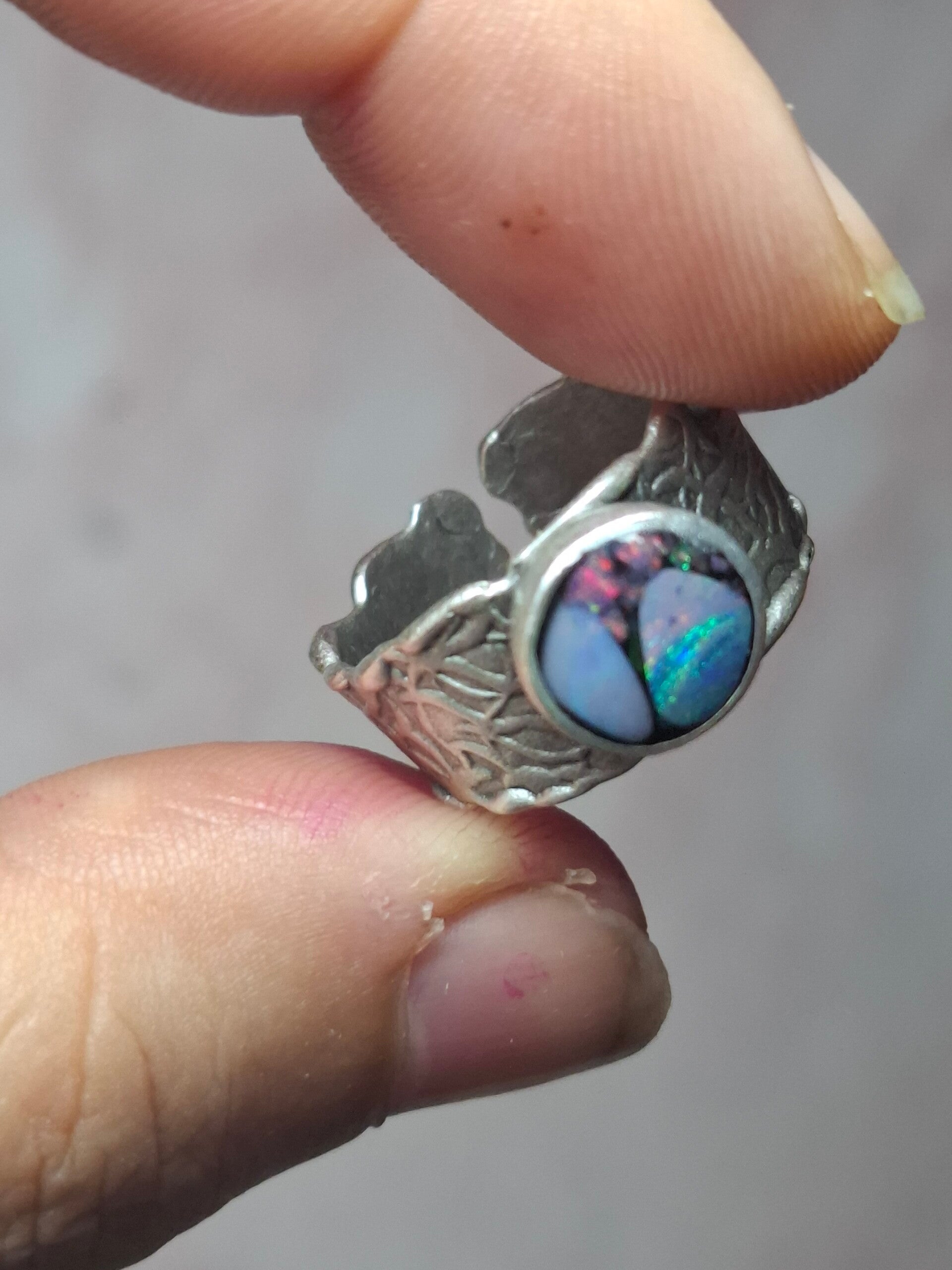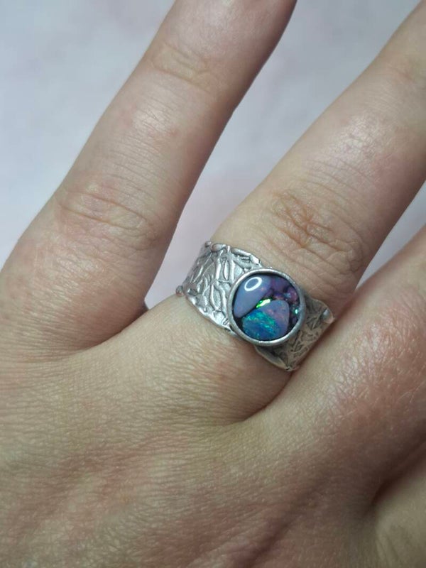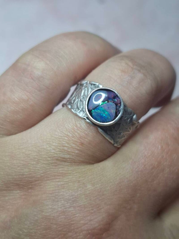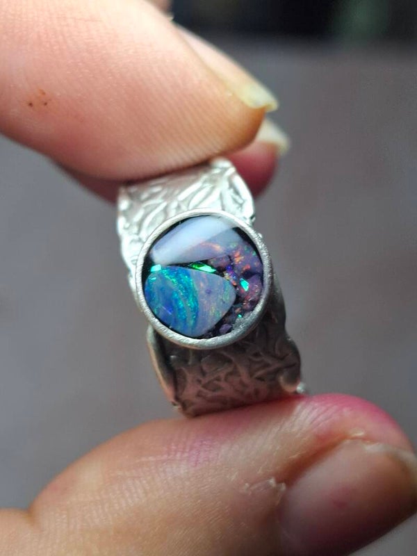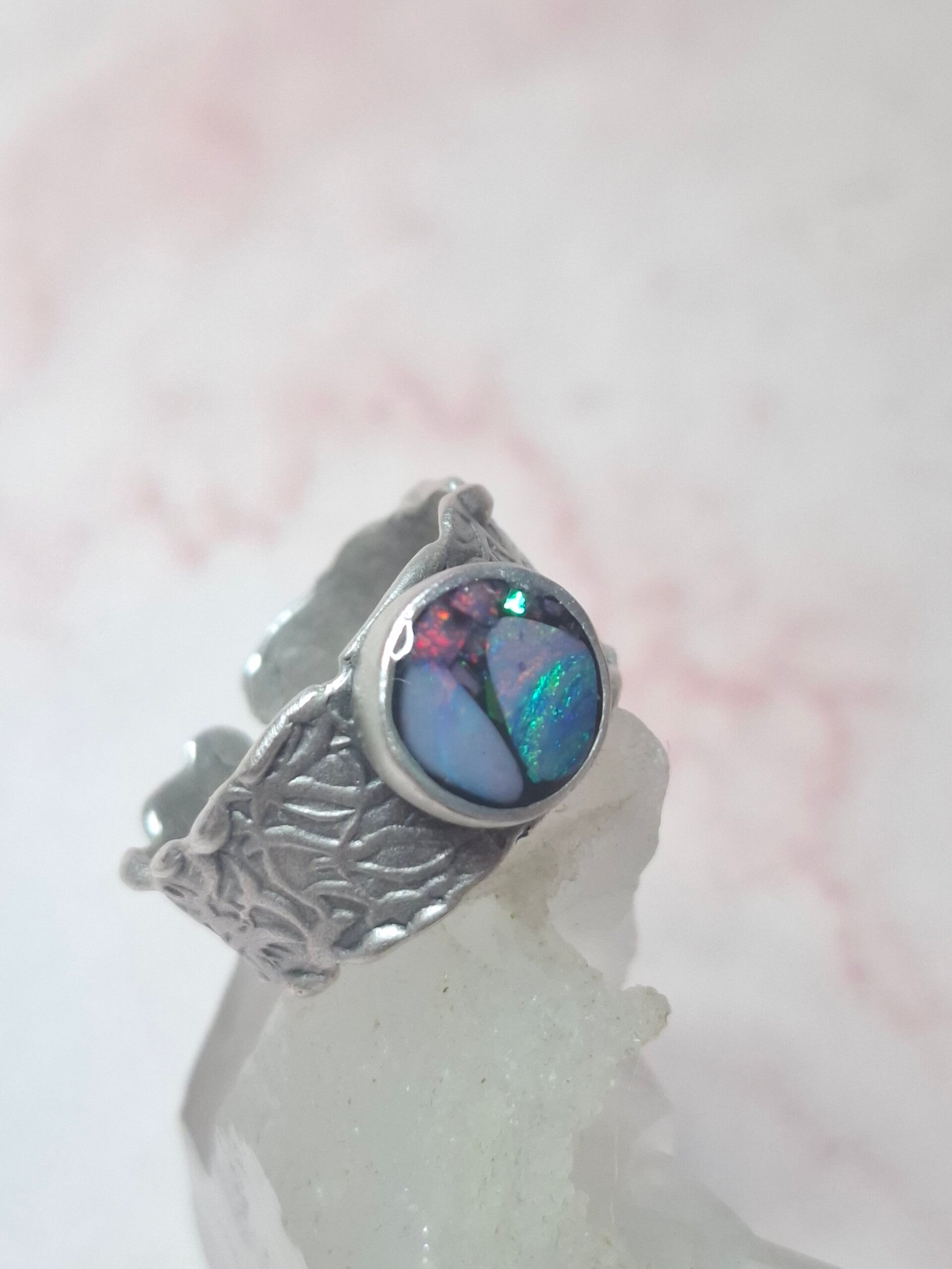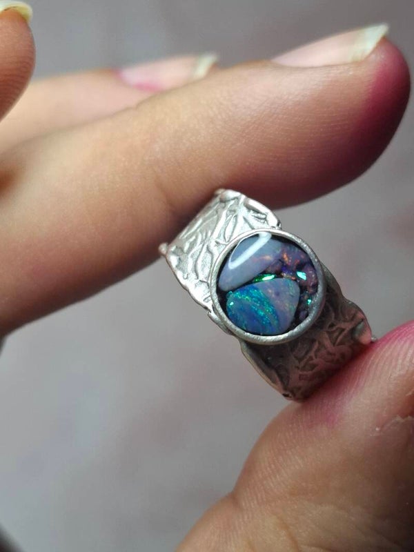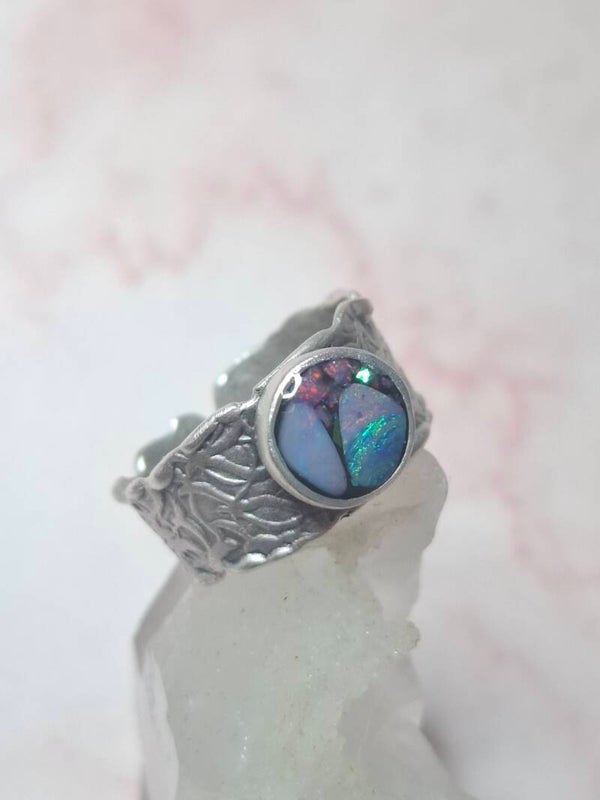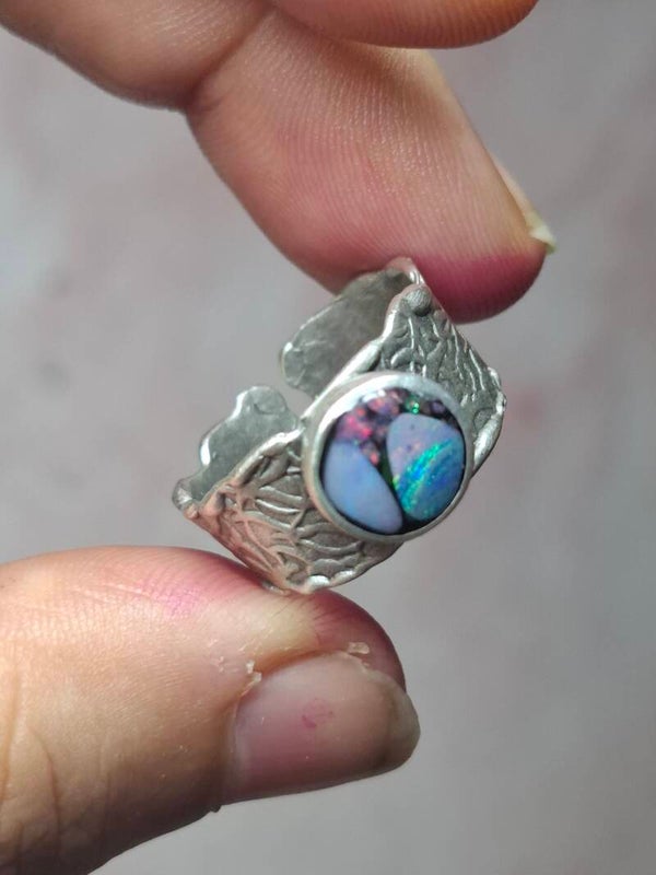 Bague ajustable opale australienne combo forme atypique