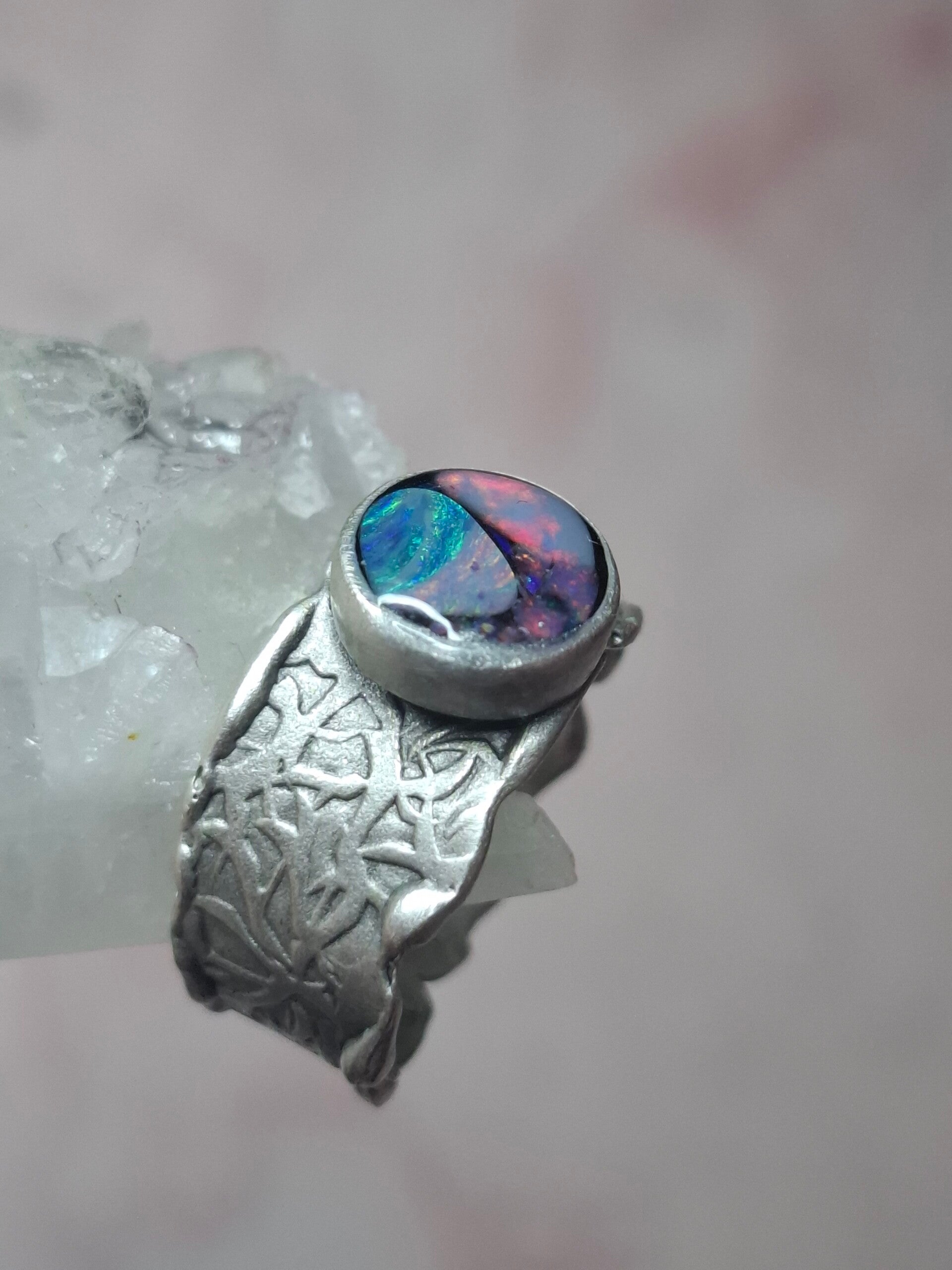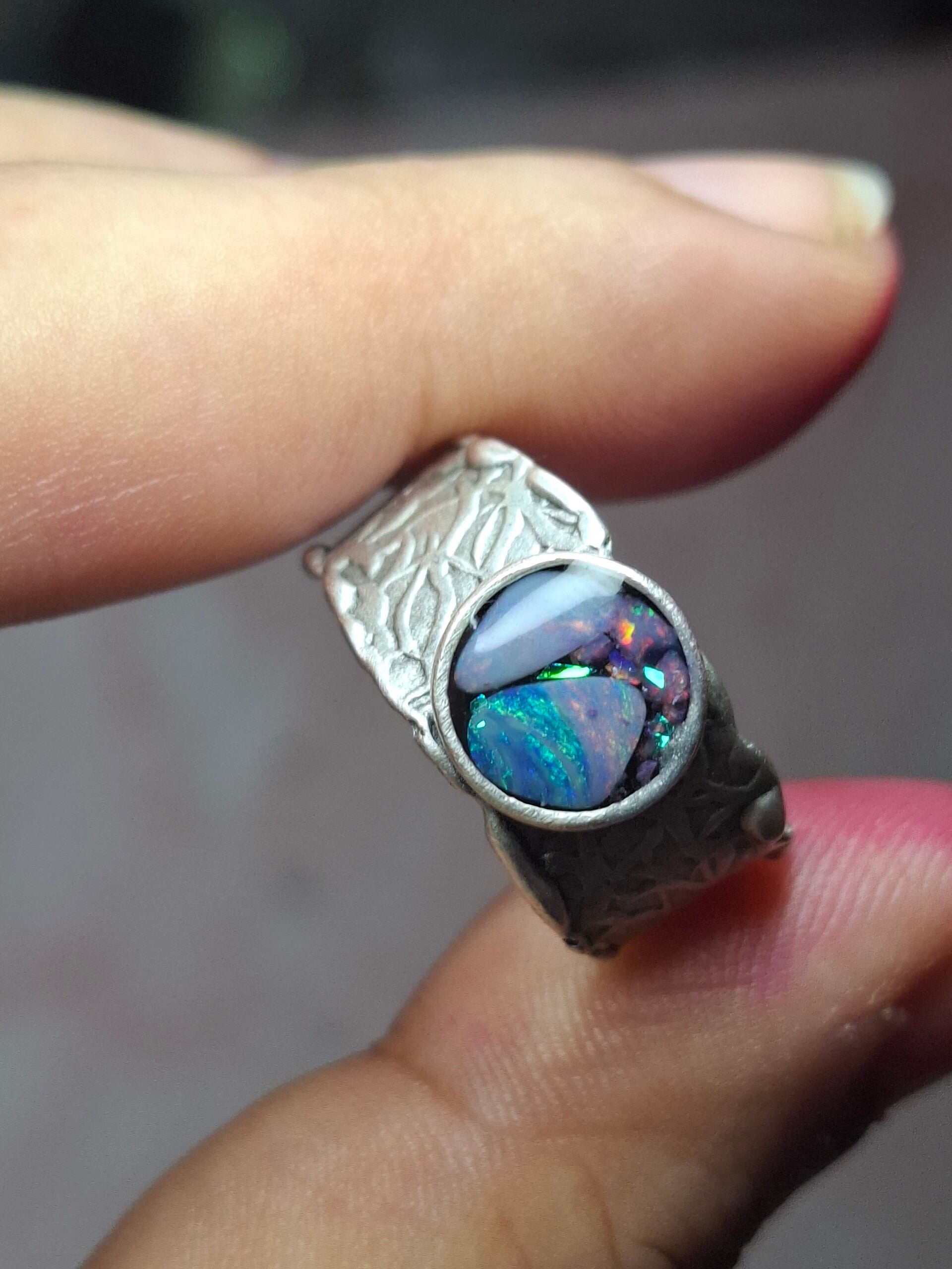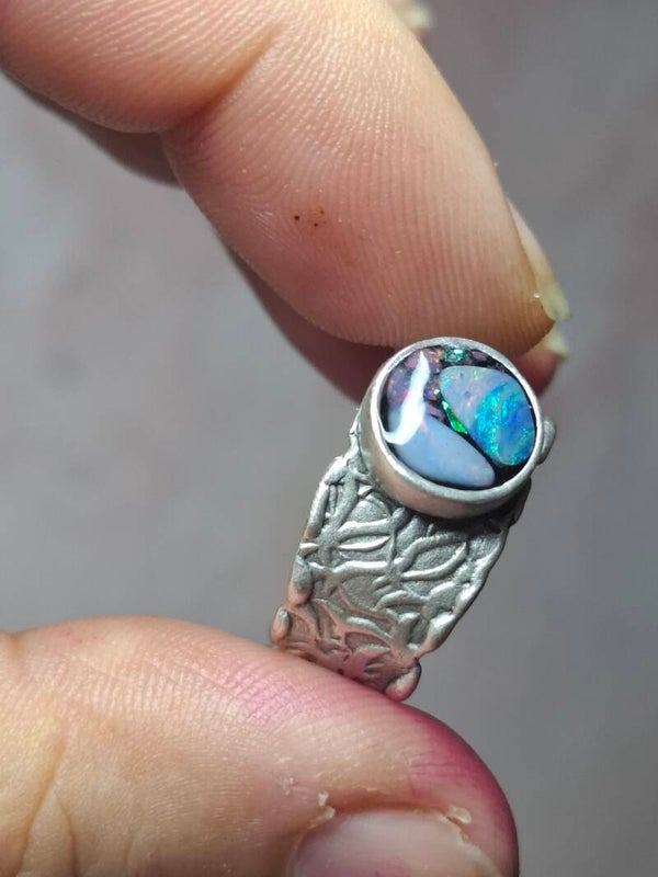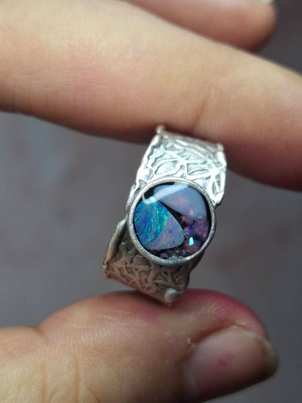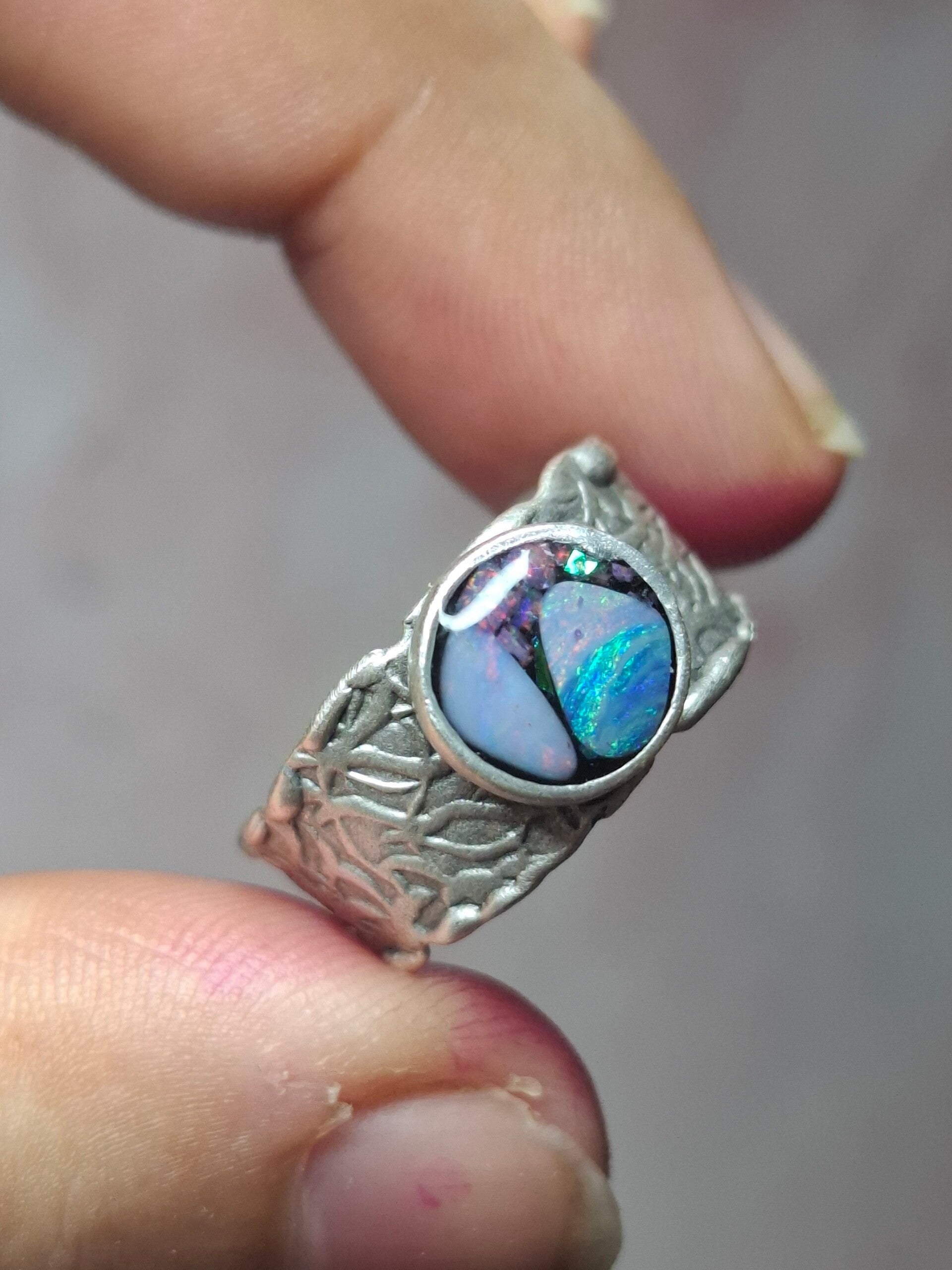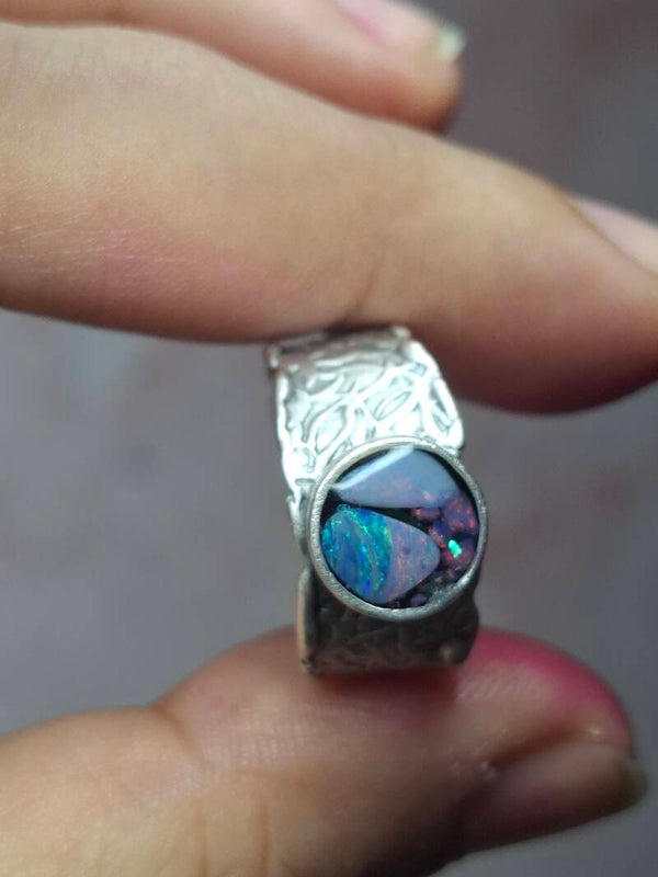 Bague ajustable opale australienne combo forme atypique