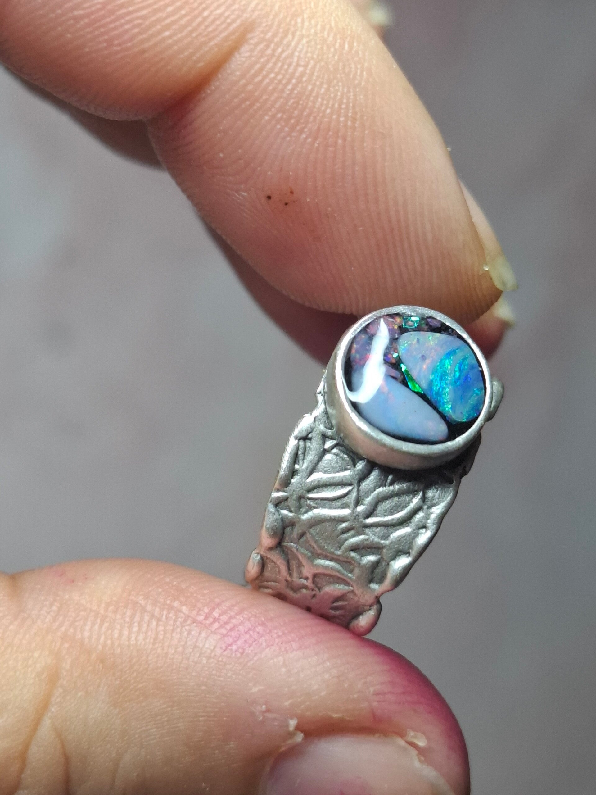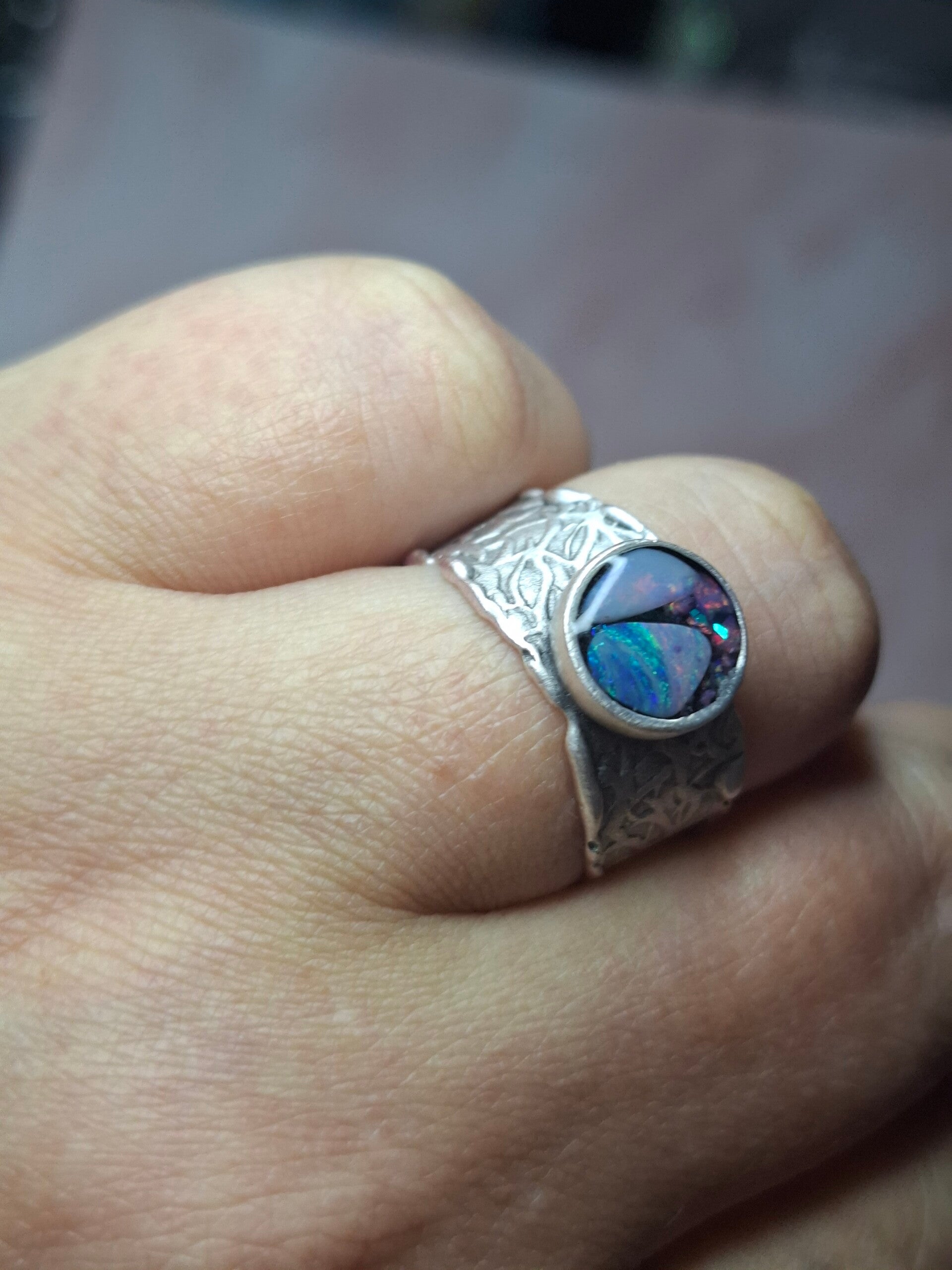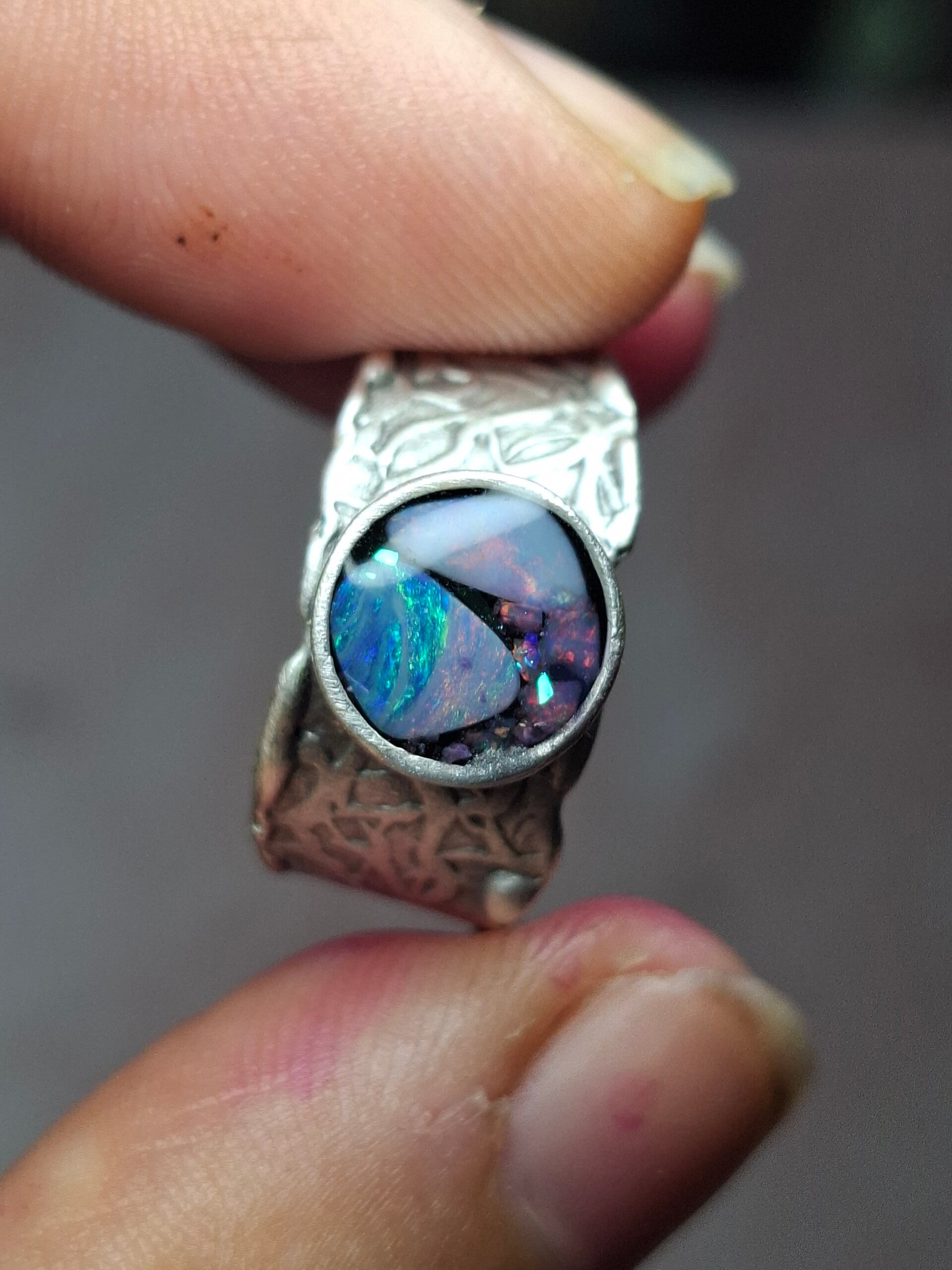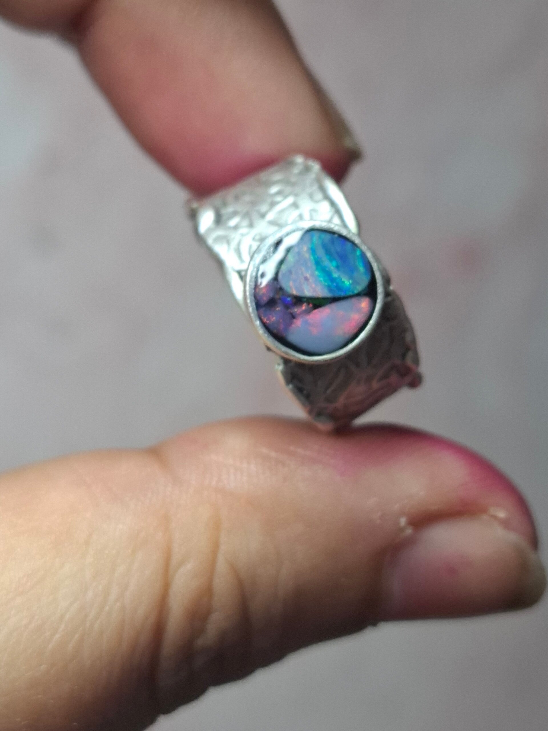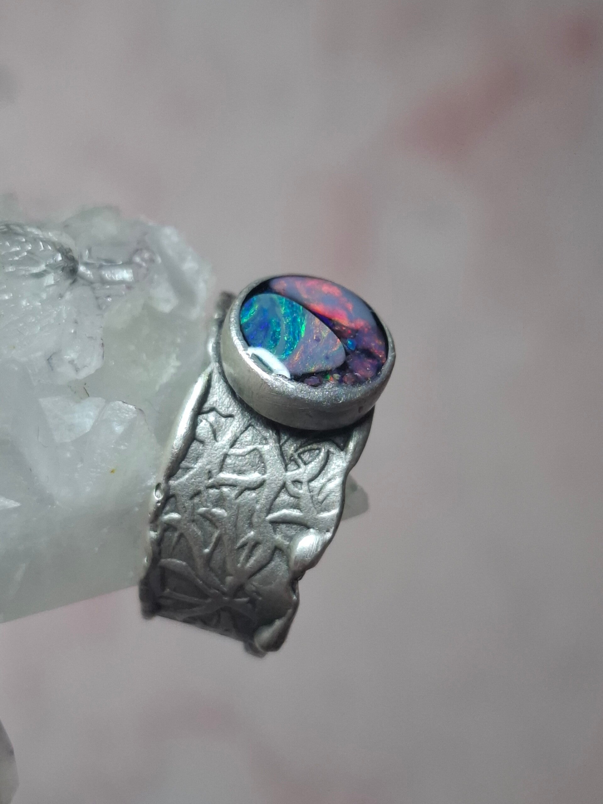 Bague ajustable opale australienne combo forme atypique
