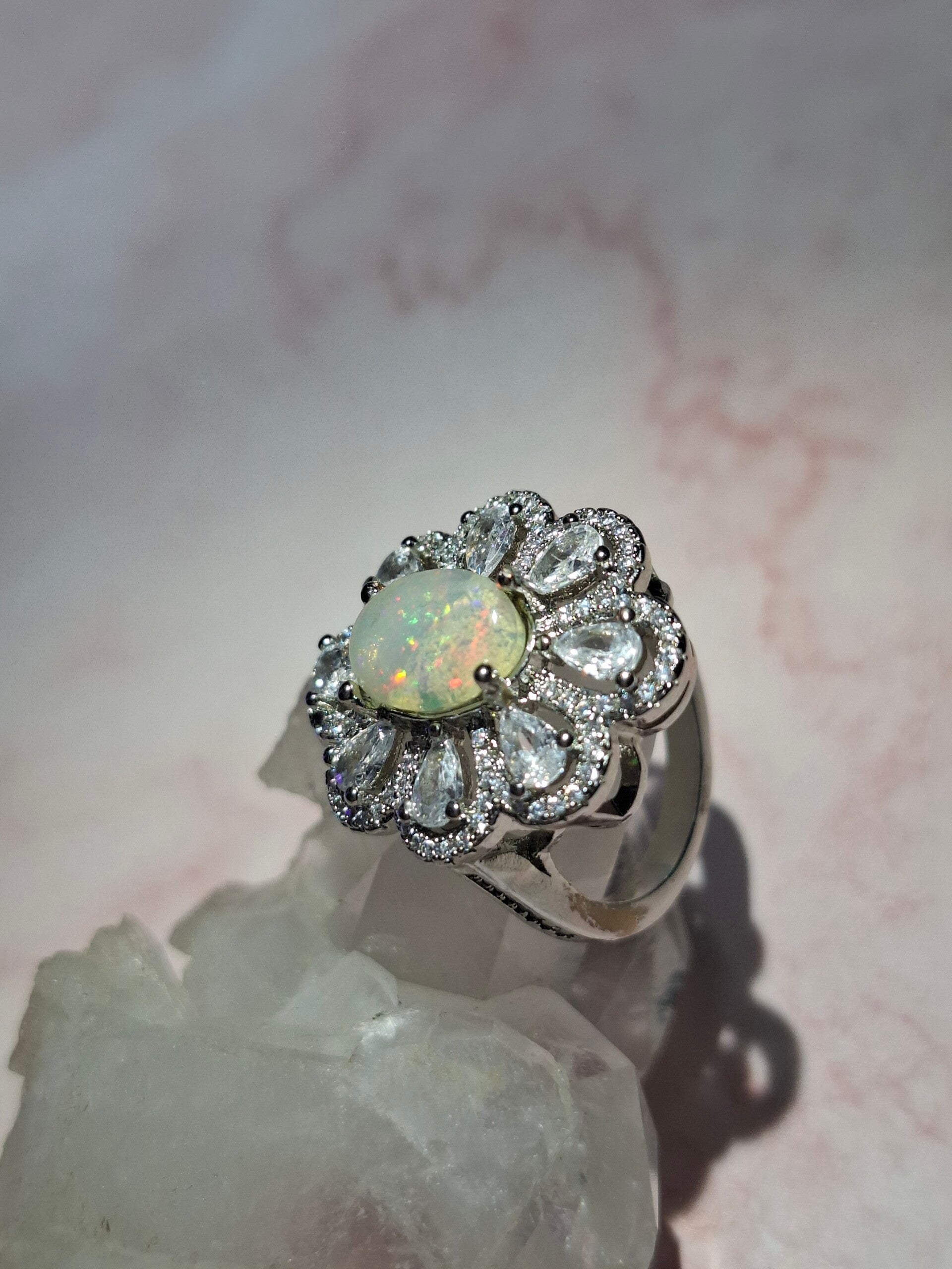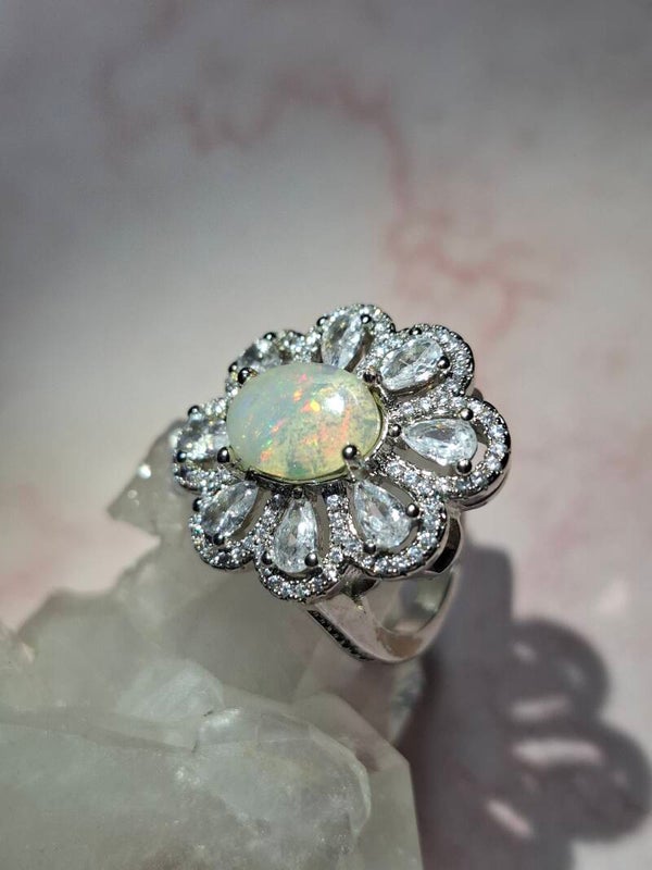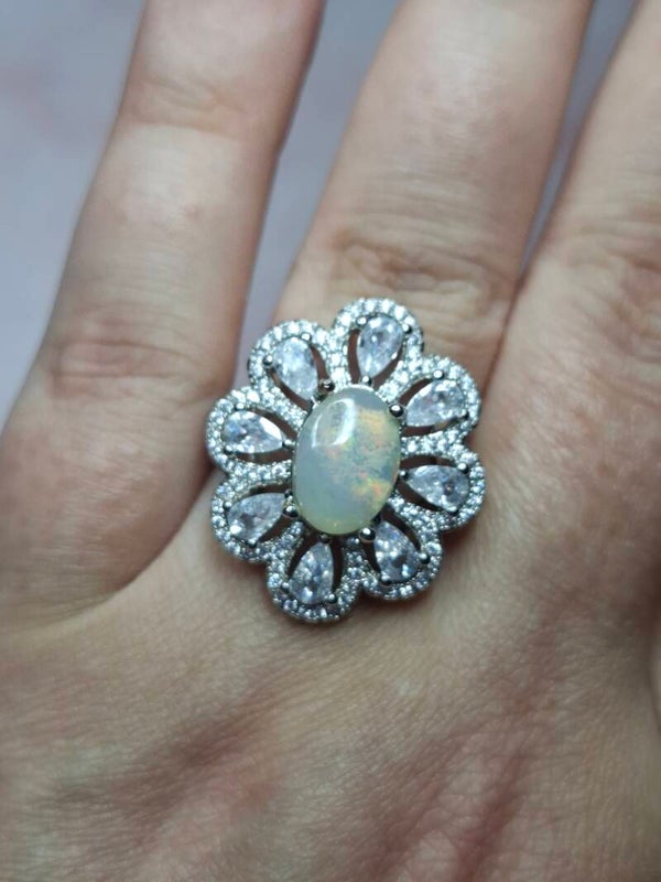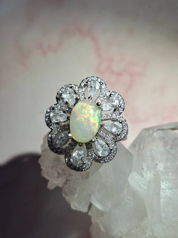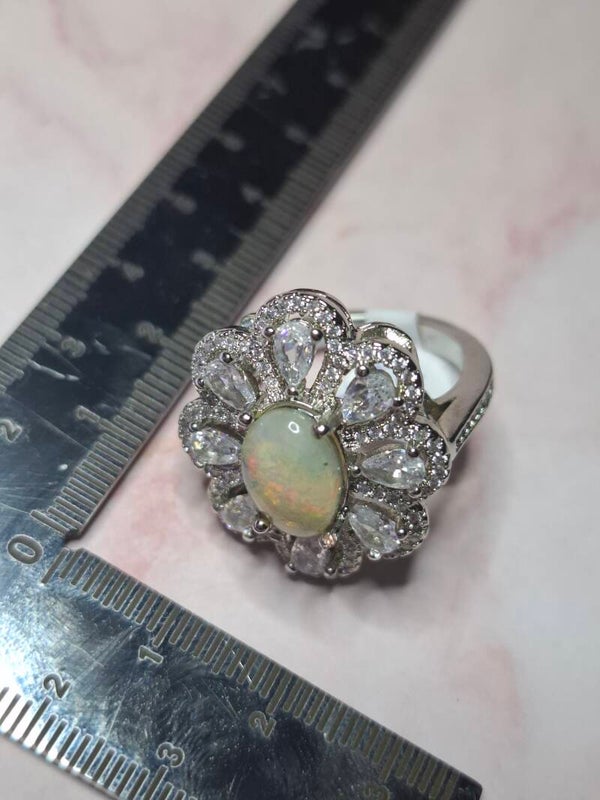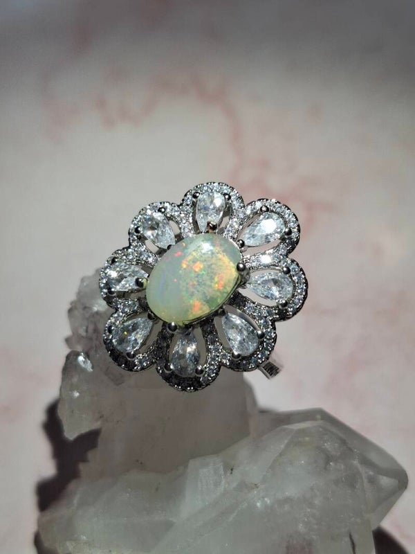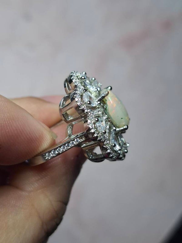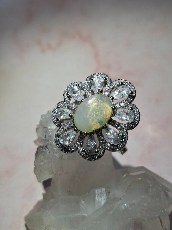 Bague strass et opale 10x7mm éthiopienne