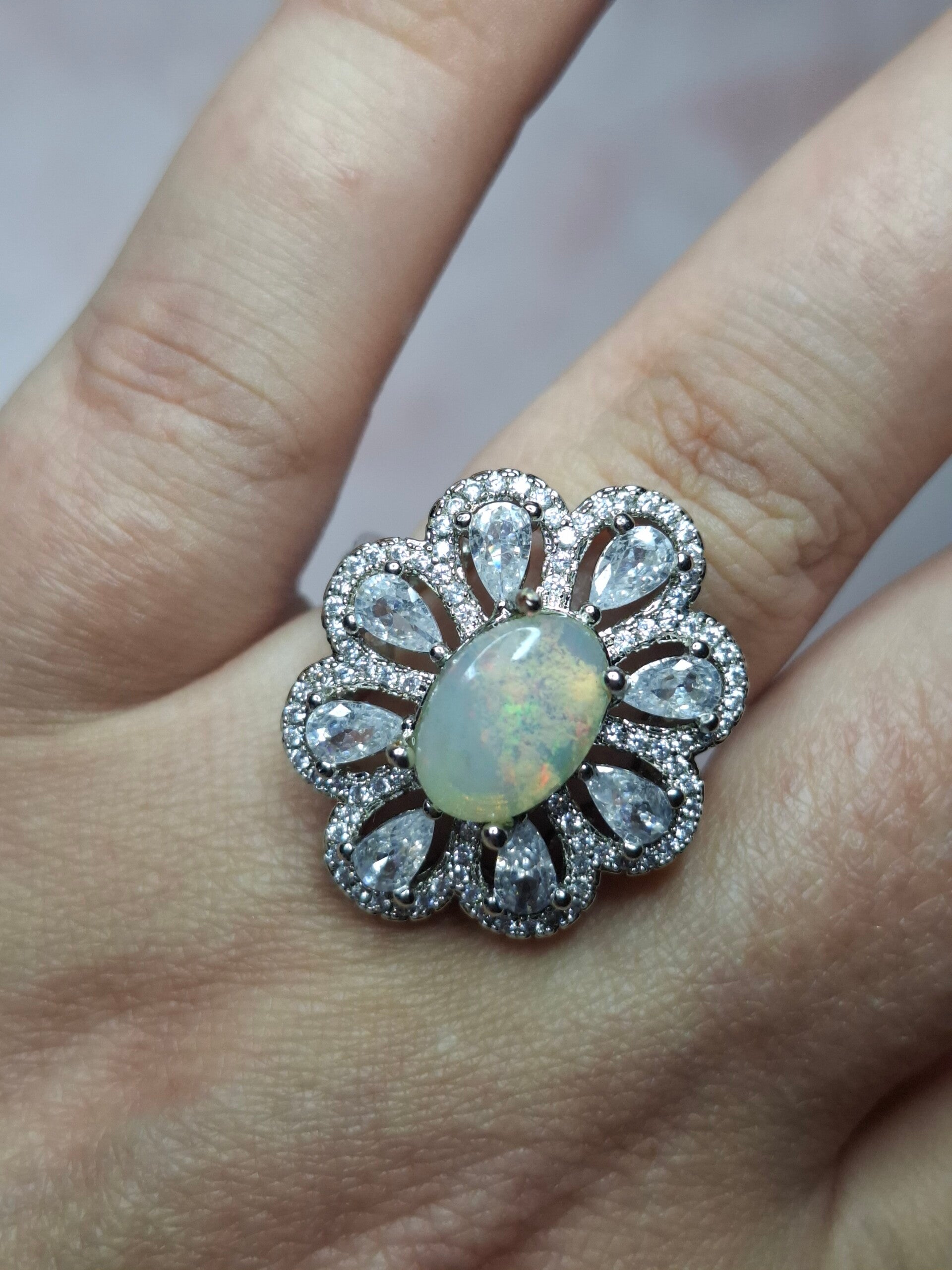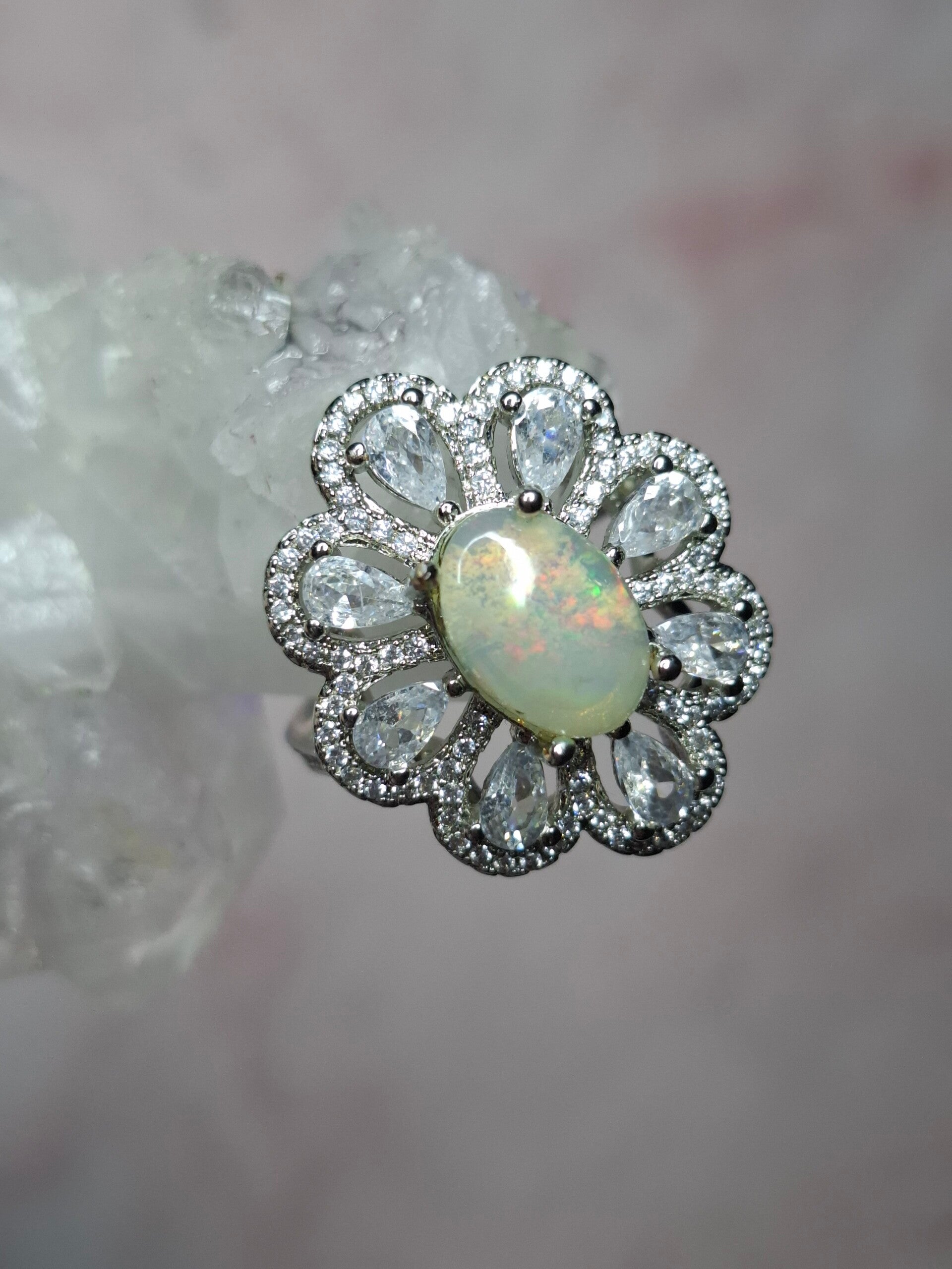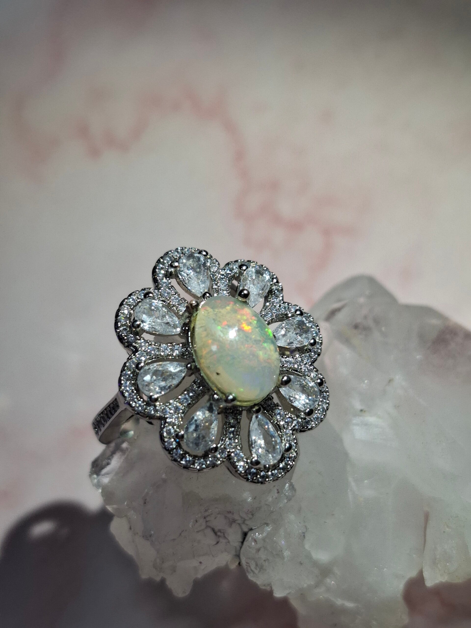 Bague strass et opale 10x7mm éthiopienne