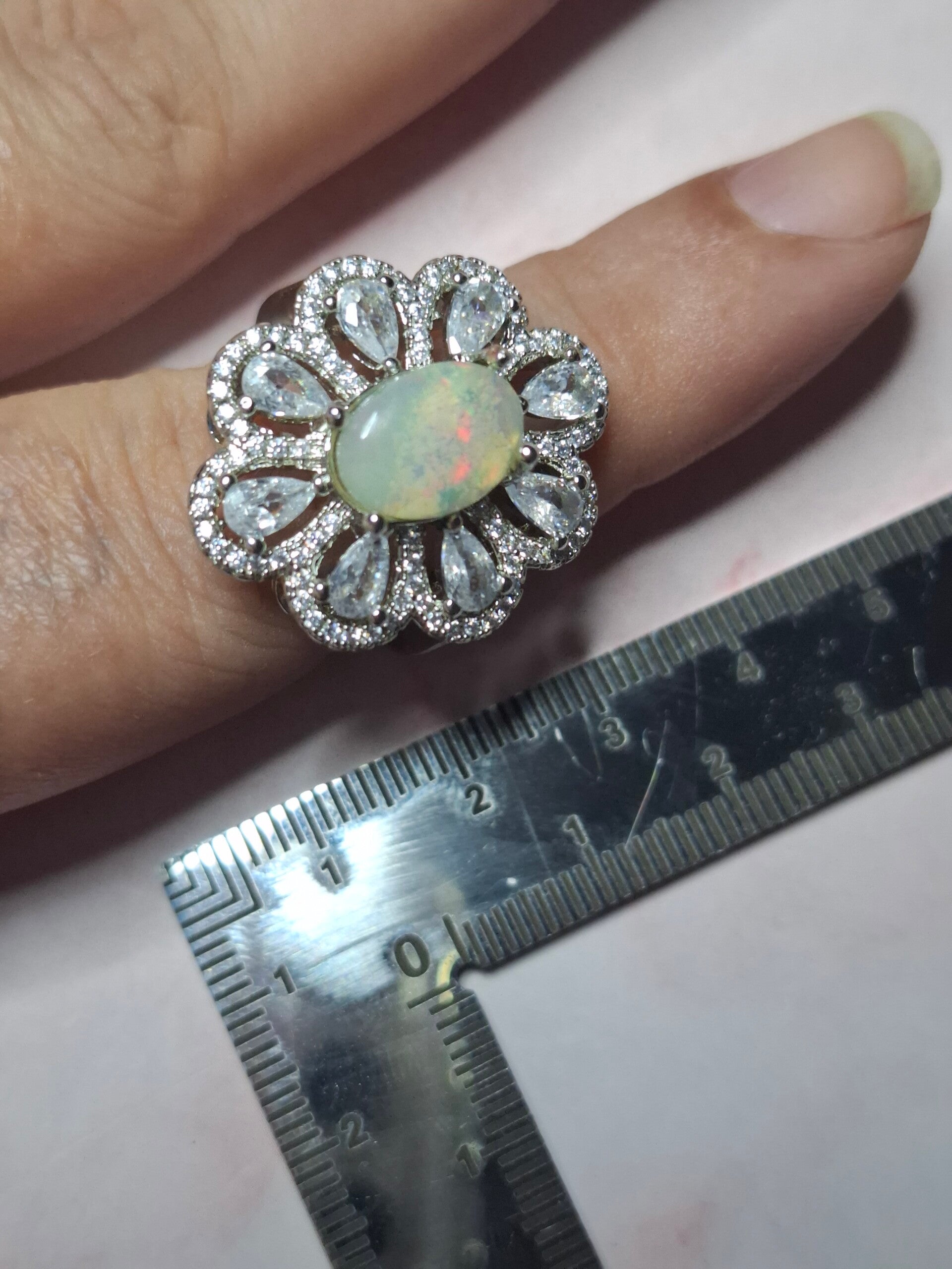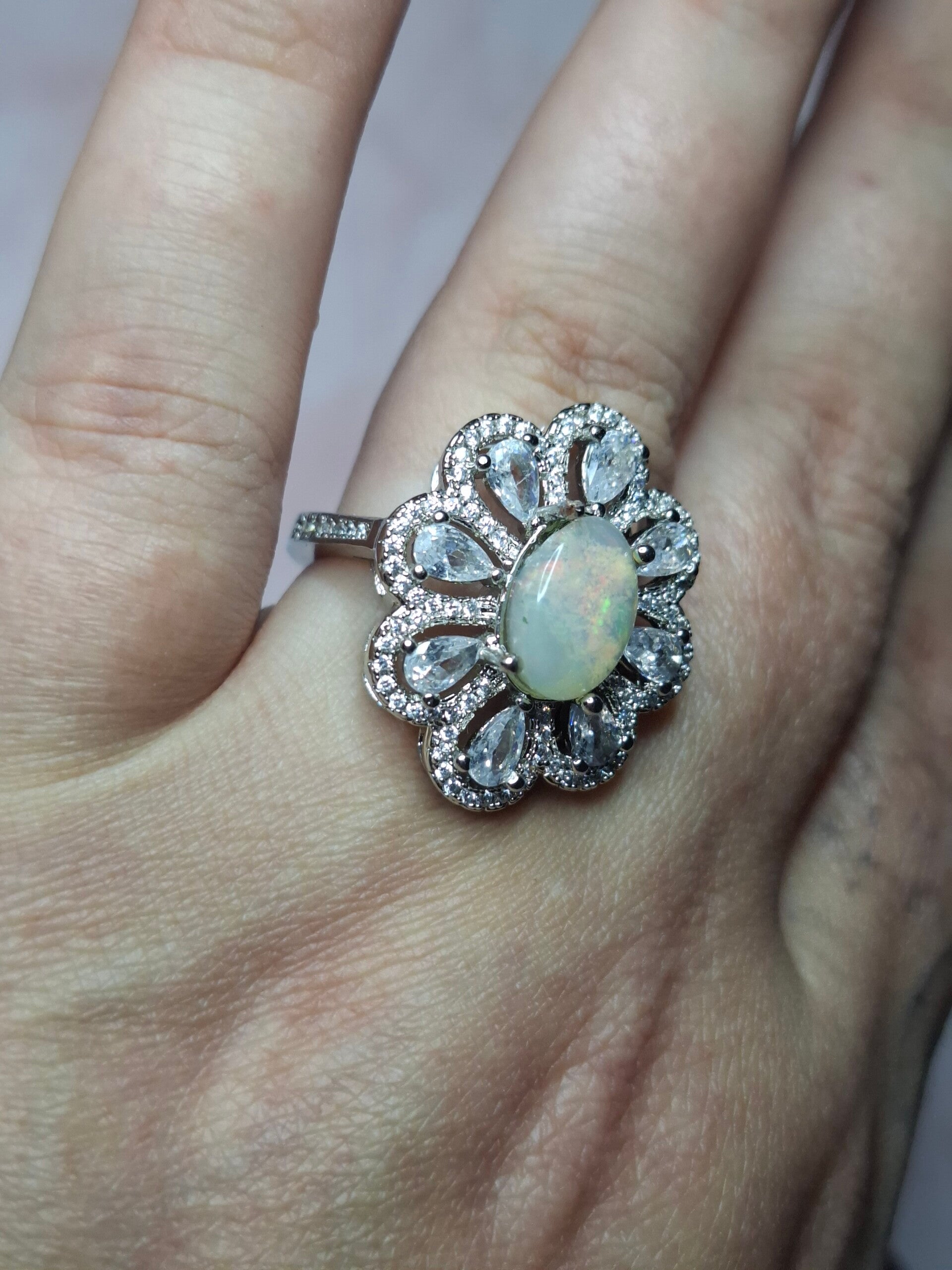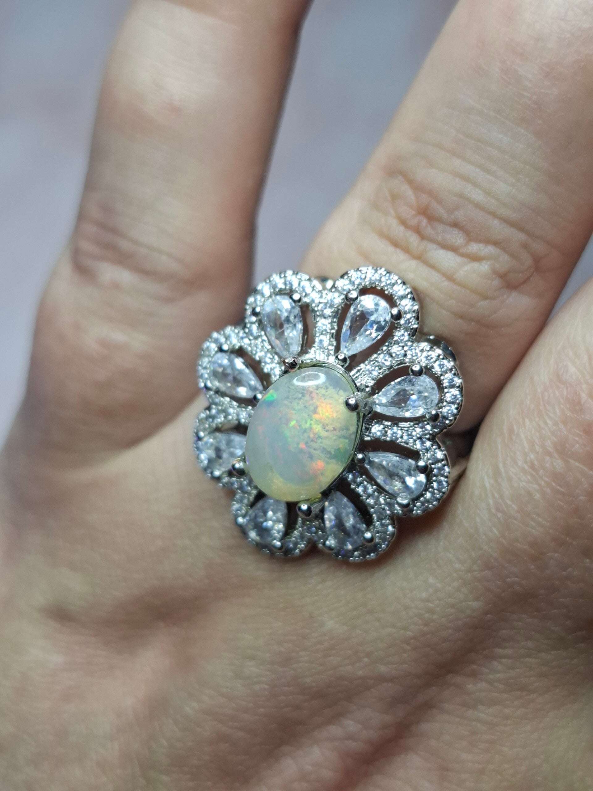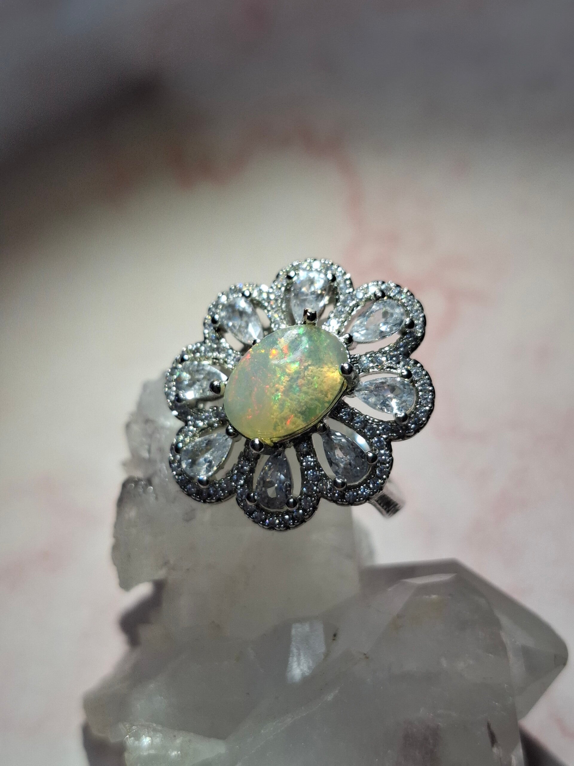 Bague strass et opale 10x7mm éthiopienne