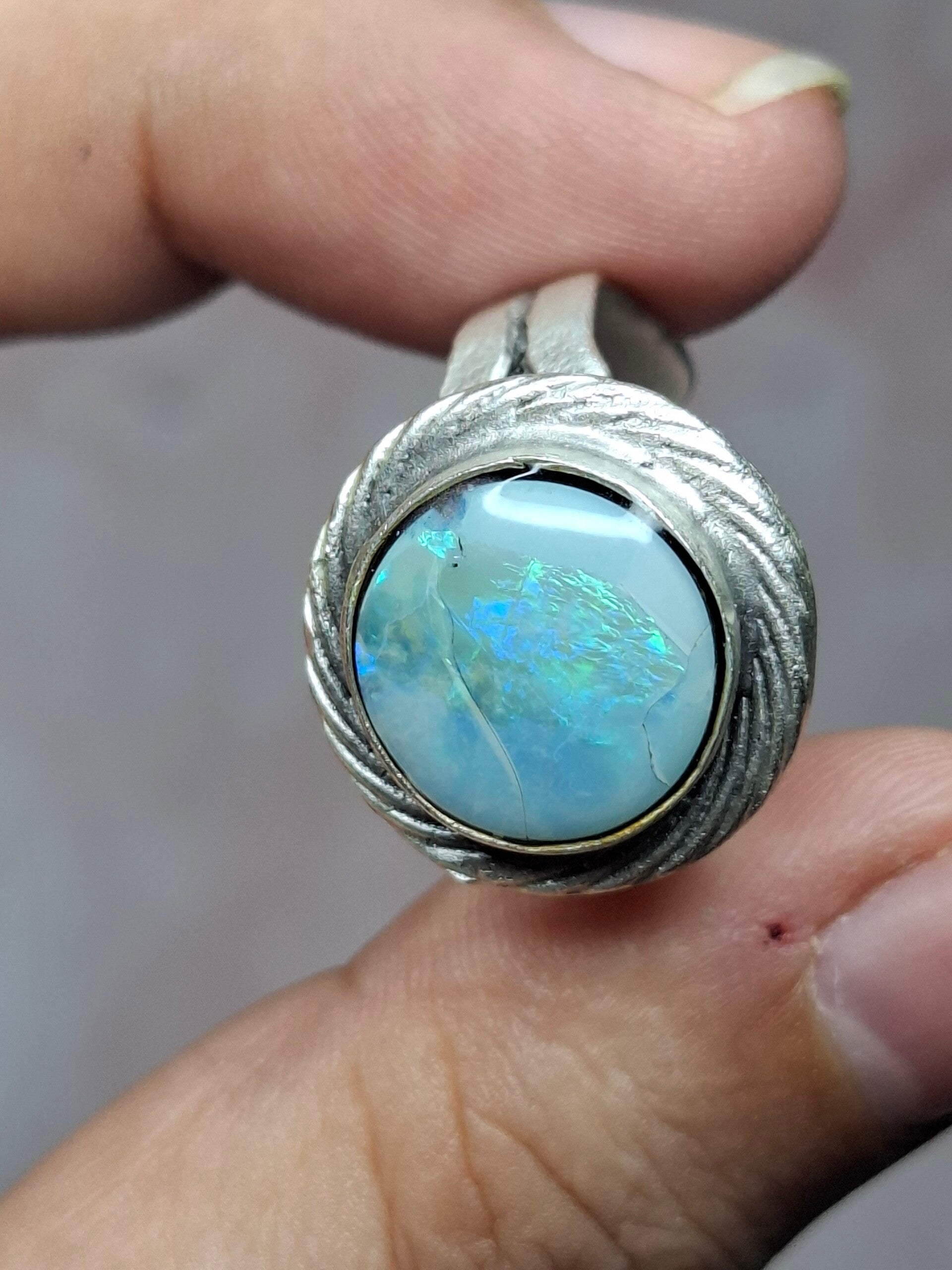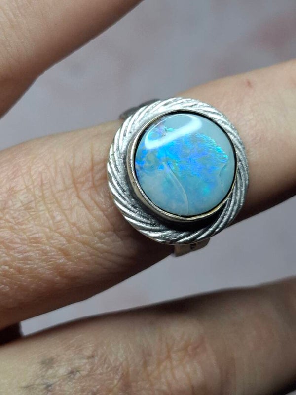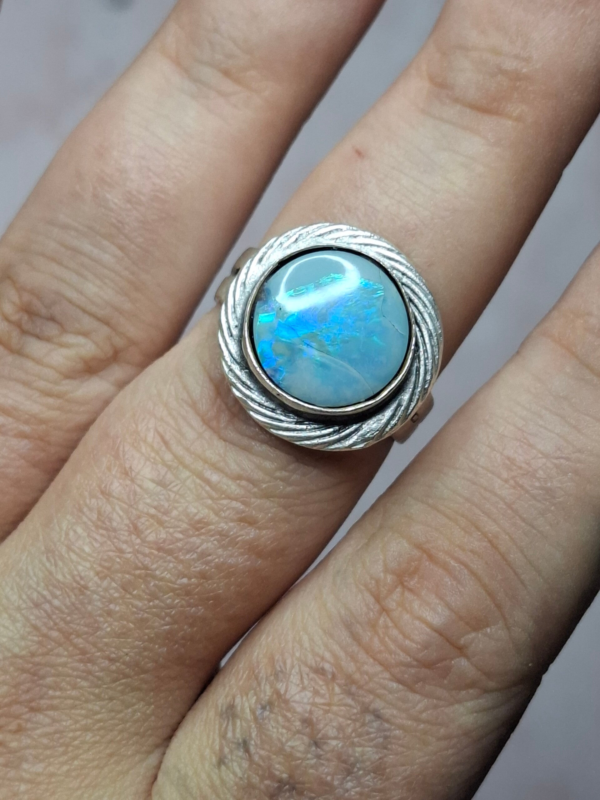 Bague ajustable opale australienne rond 11mm 4,40 carats