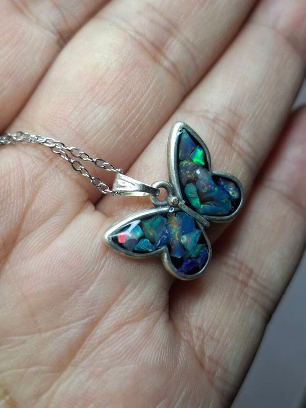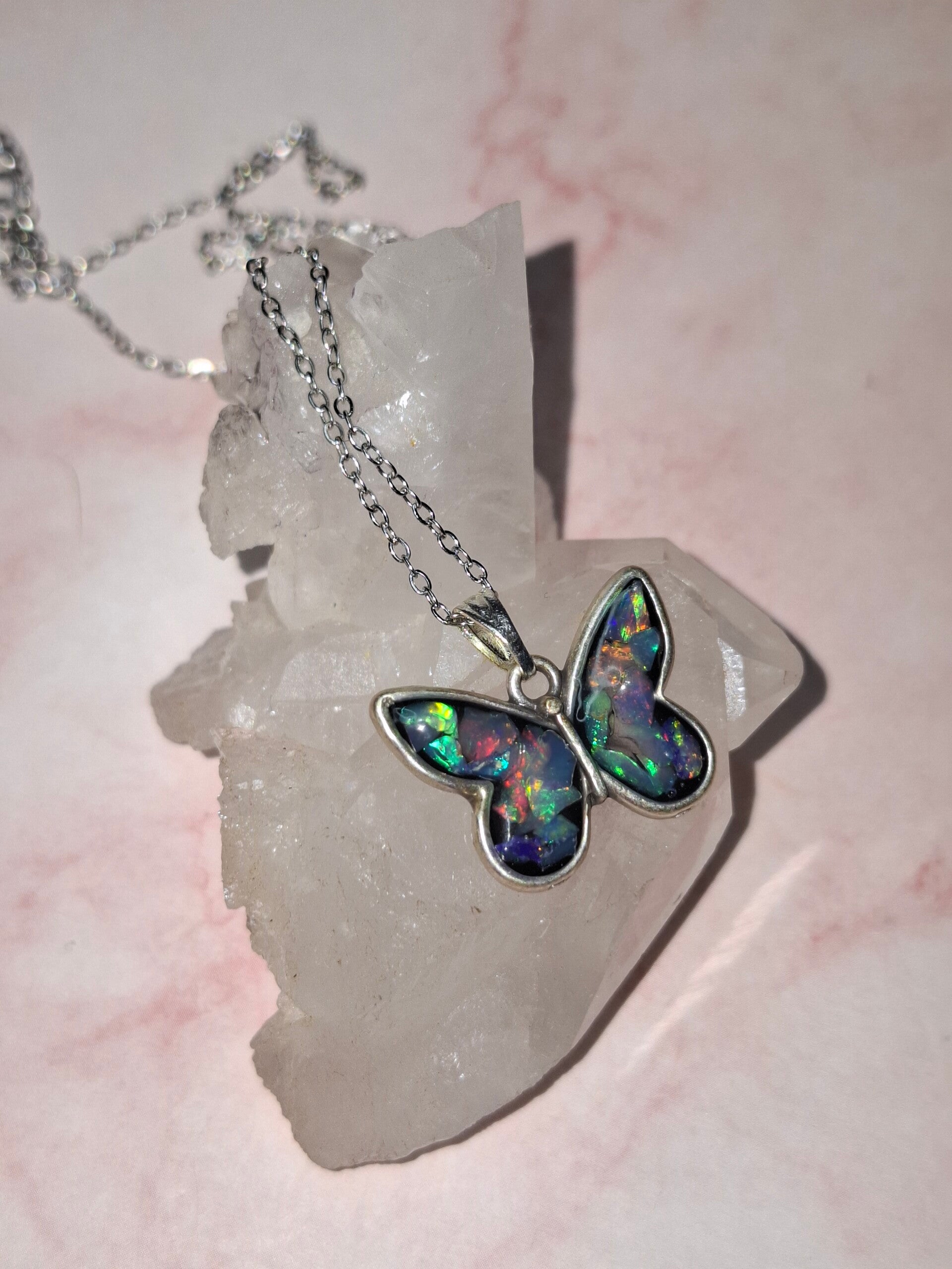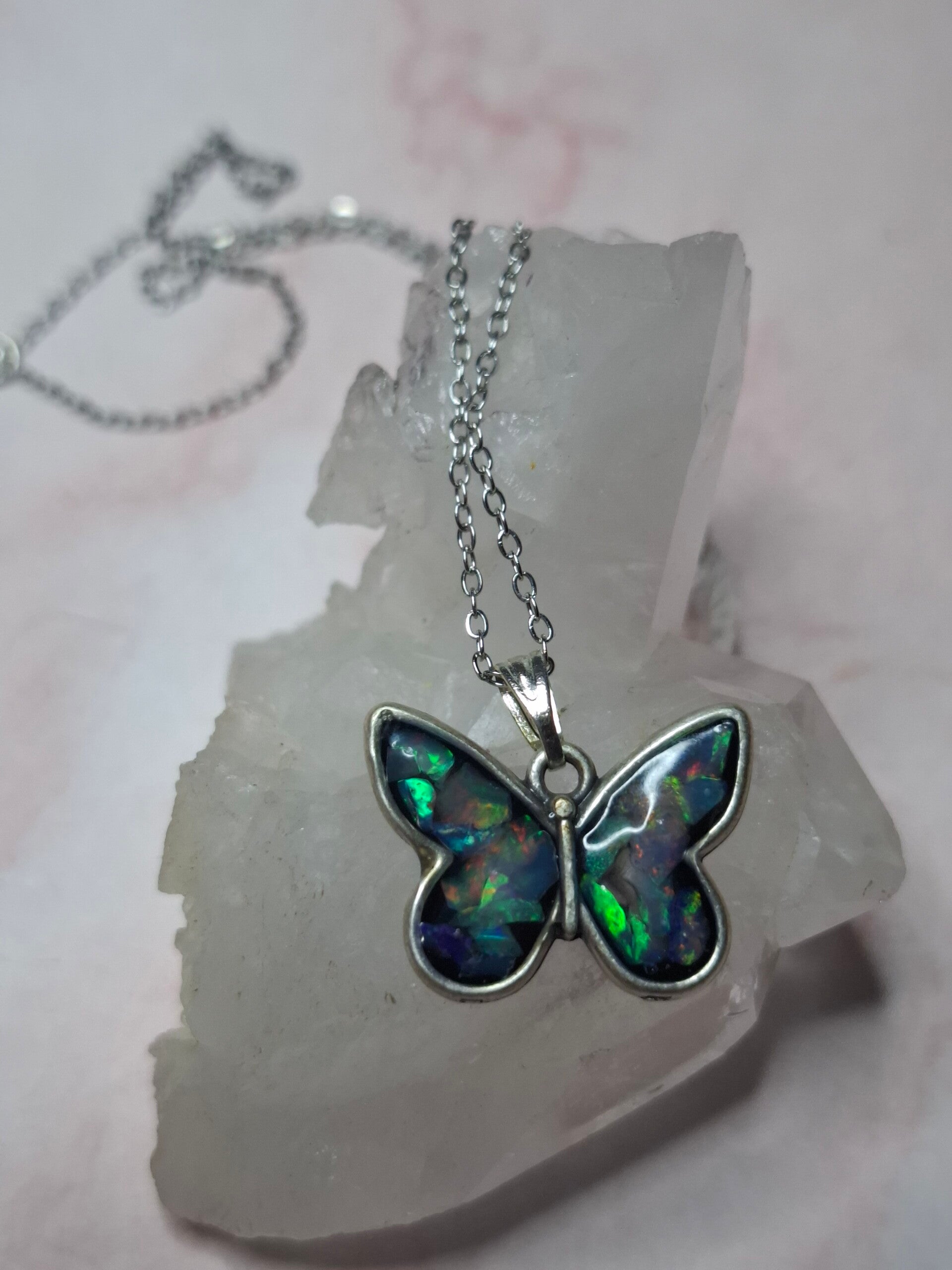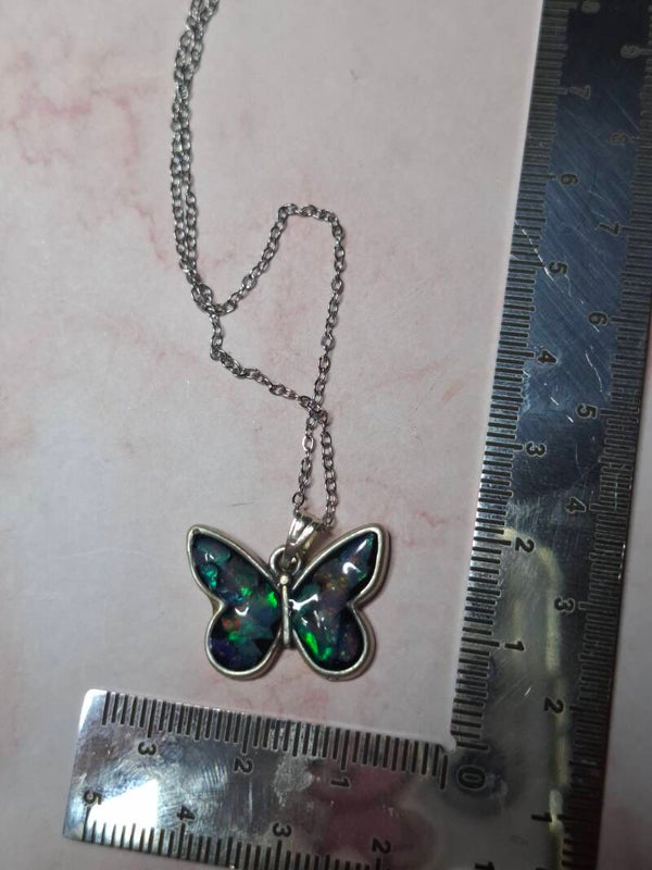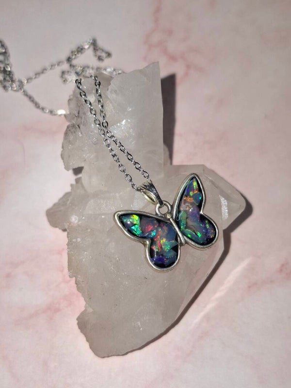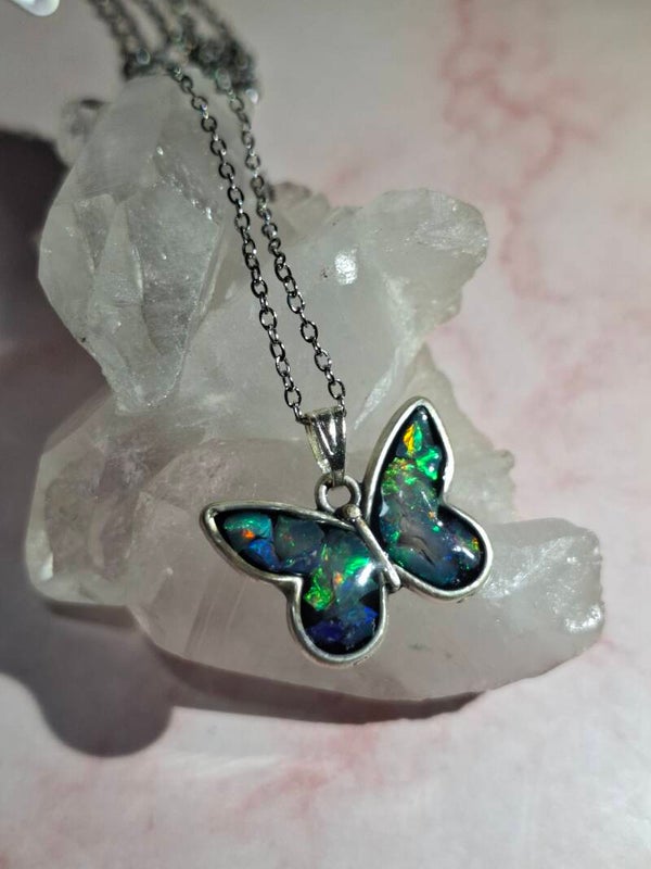 Pendentif papillon eclats opales éthiopiennes