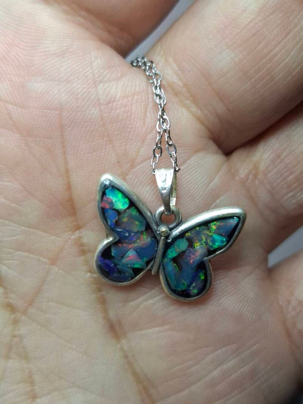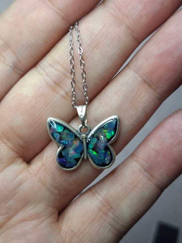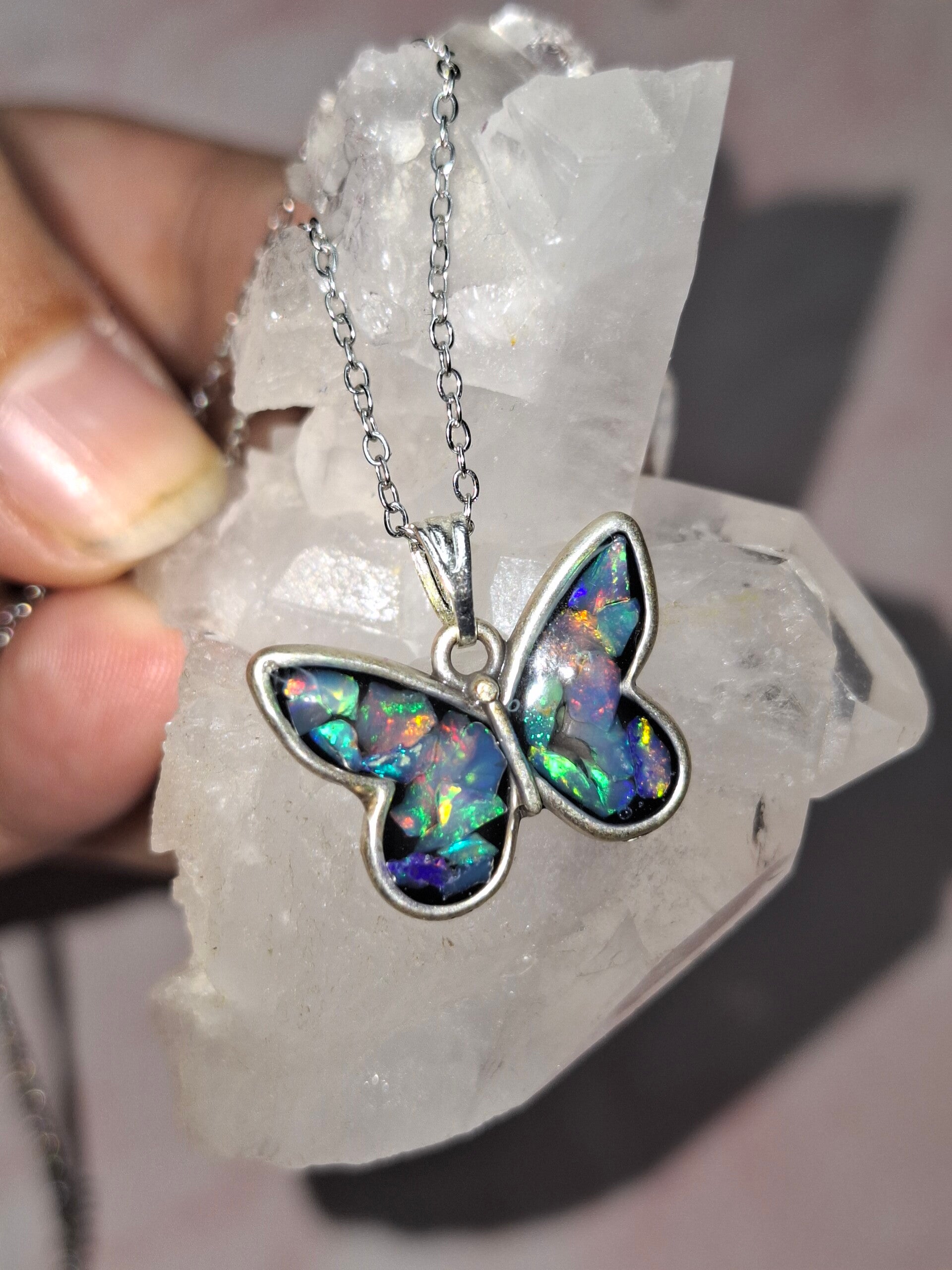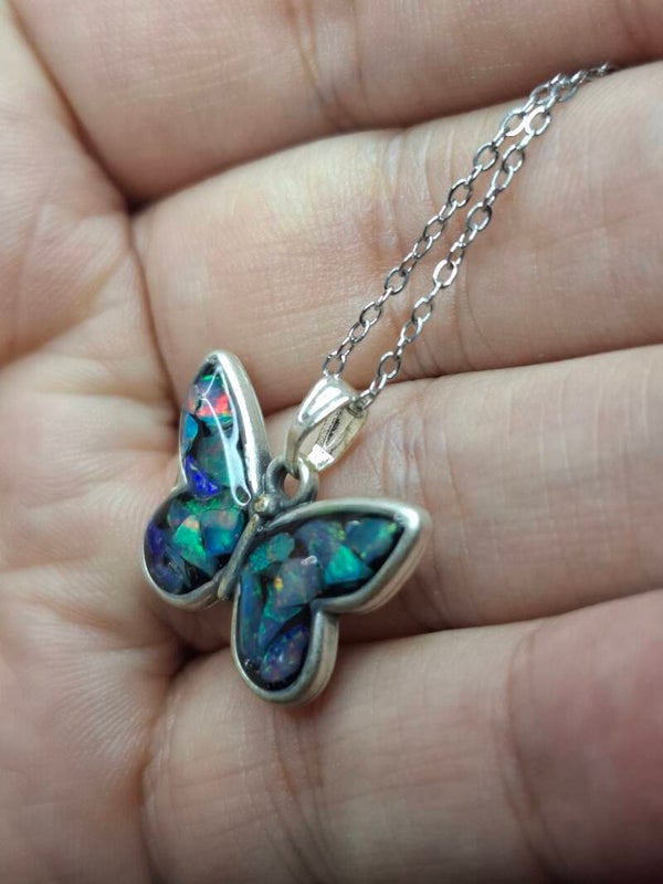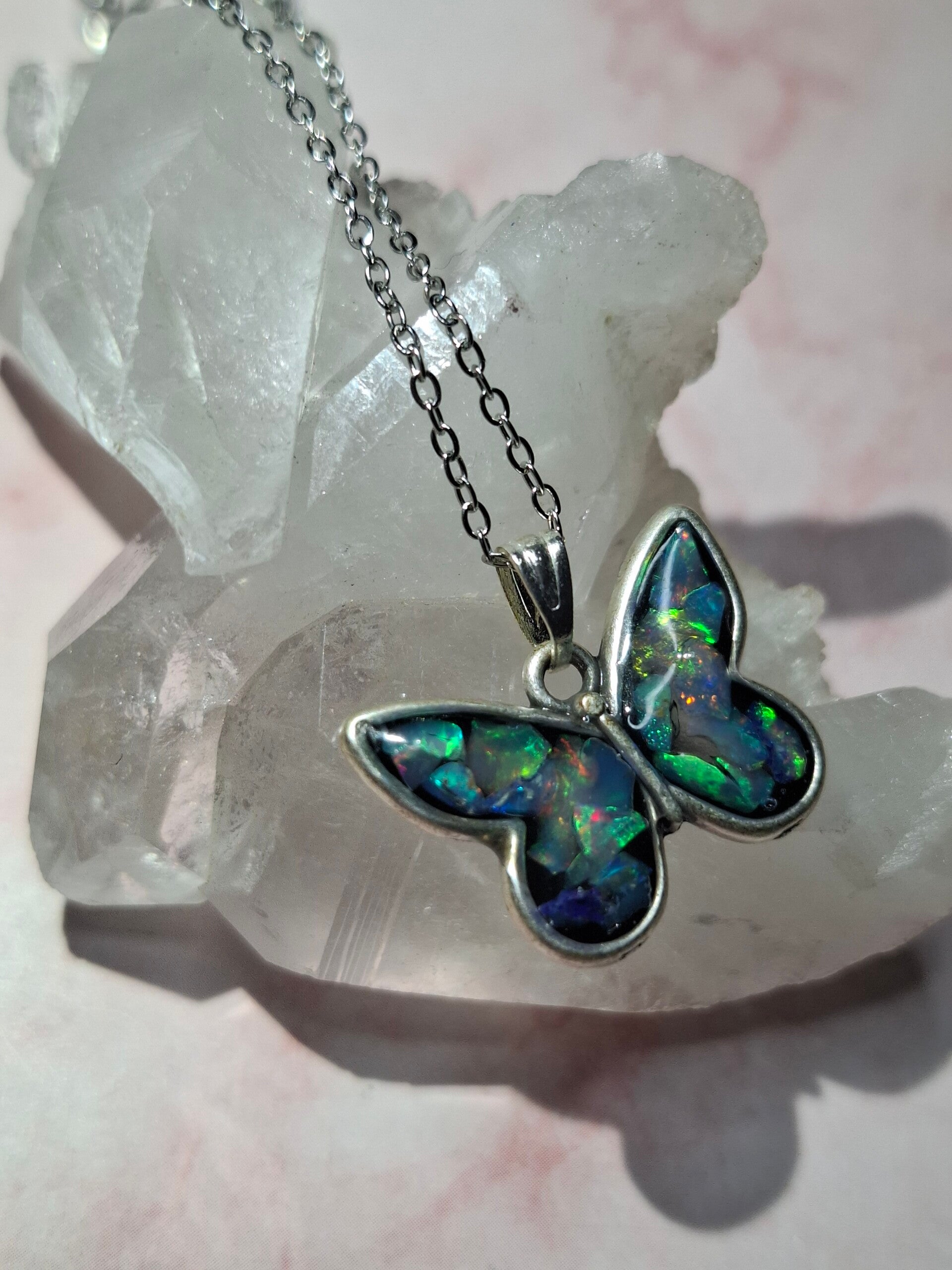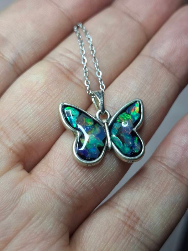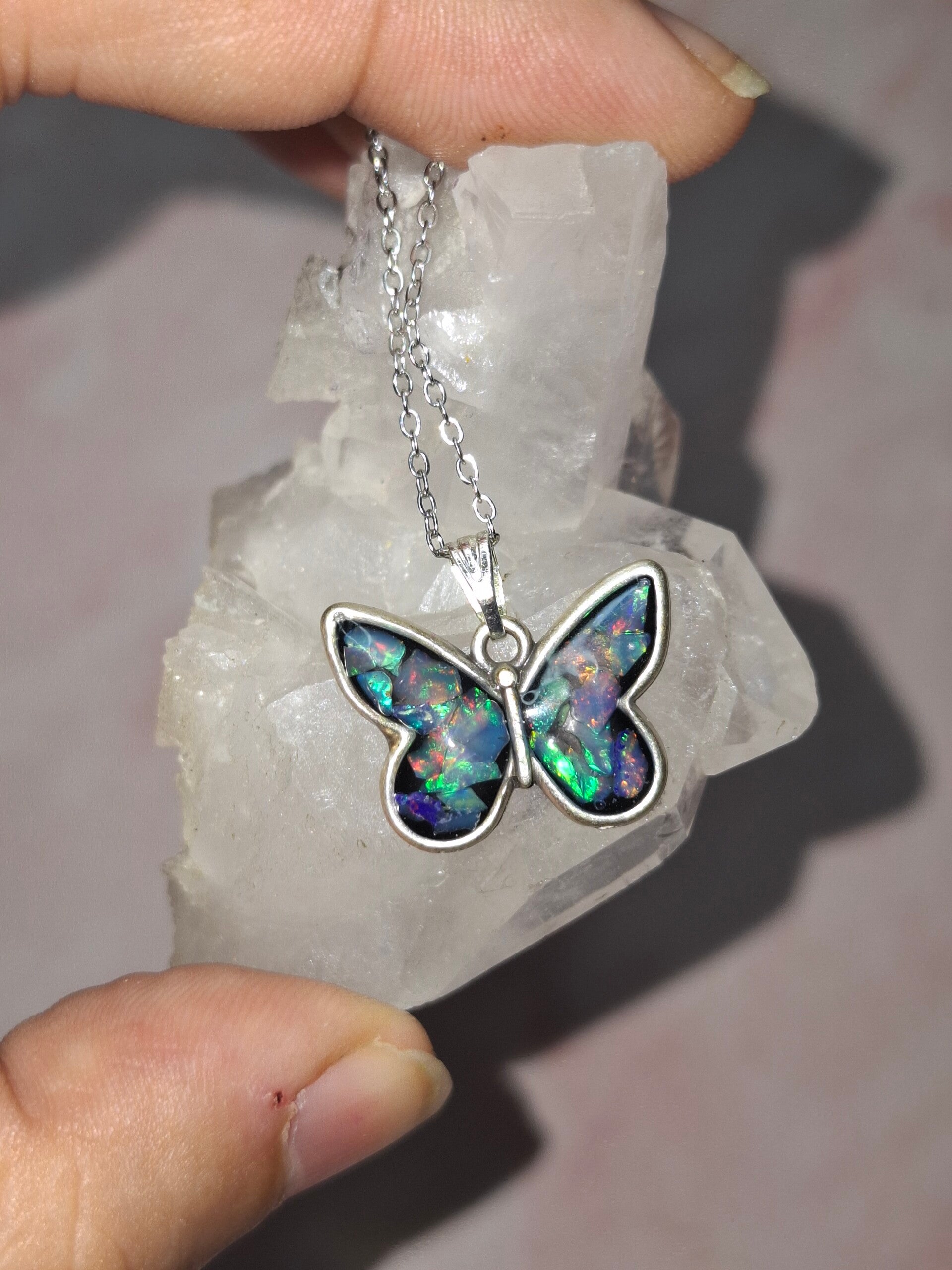 Pendentif papillon eclats opales éthiopiennes