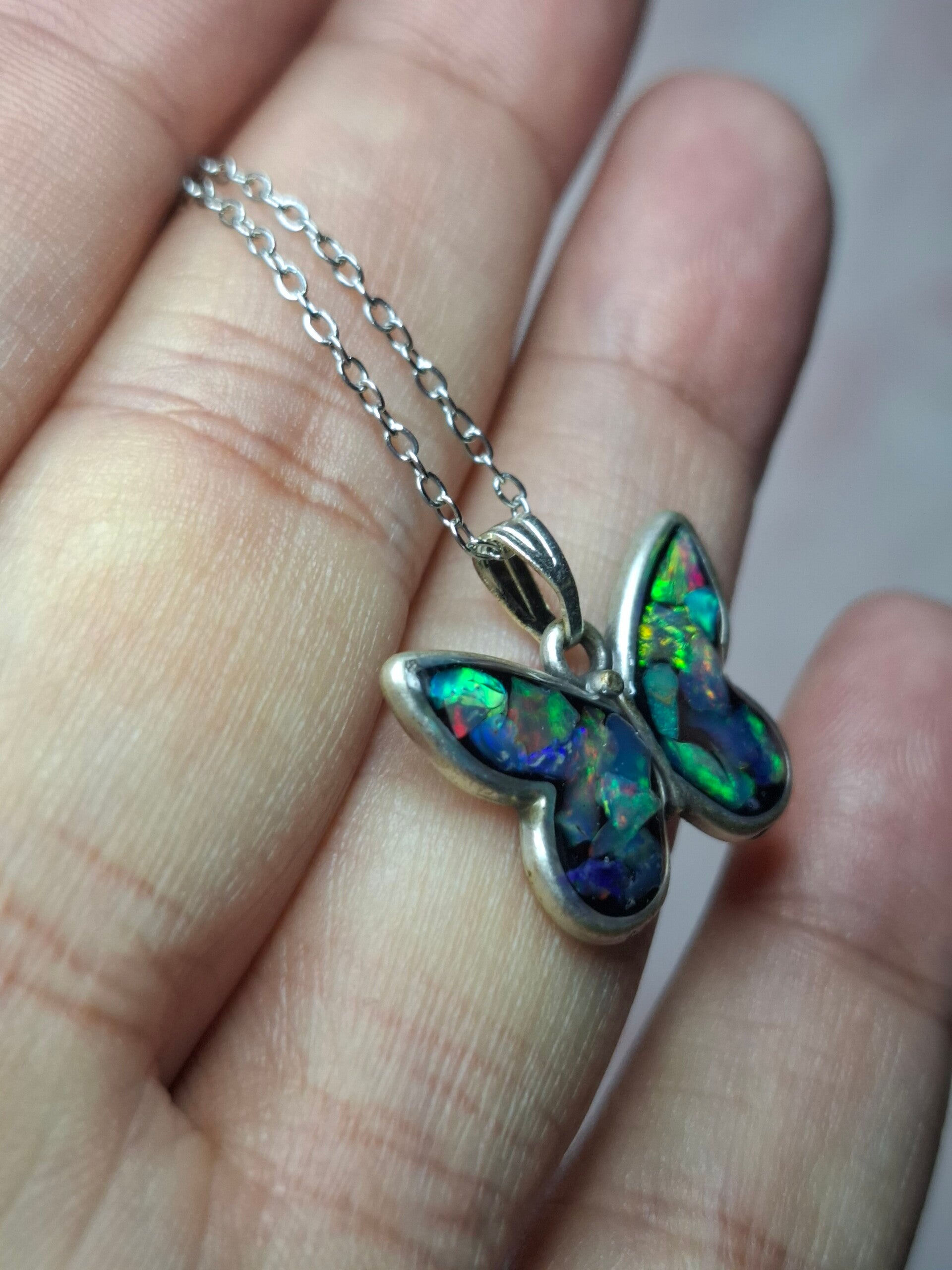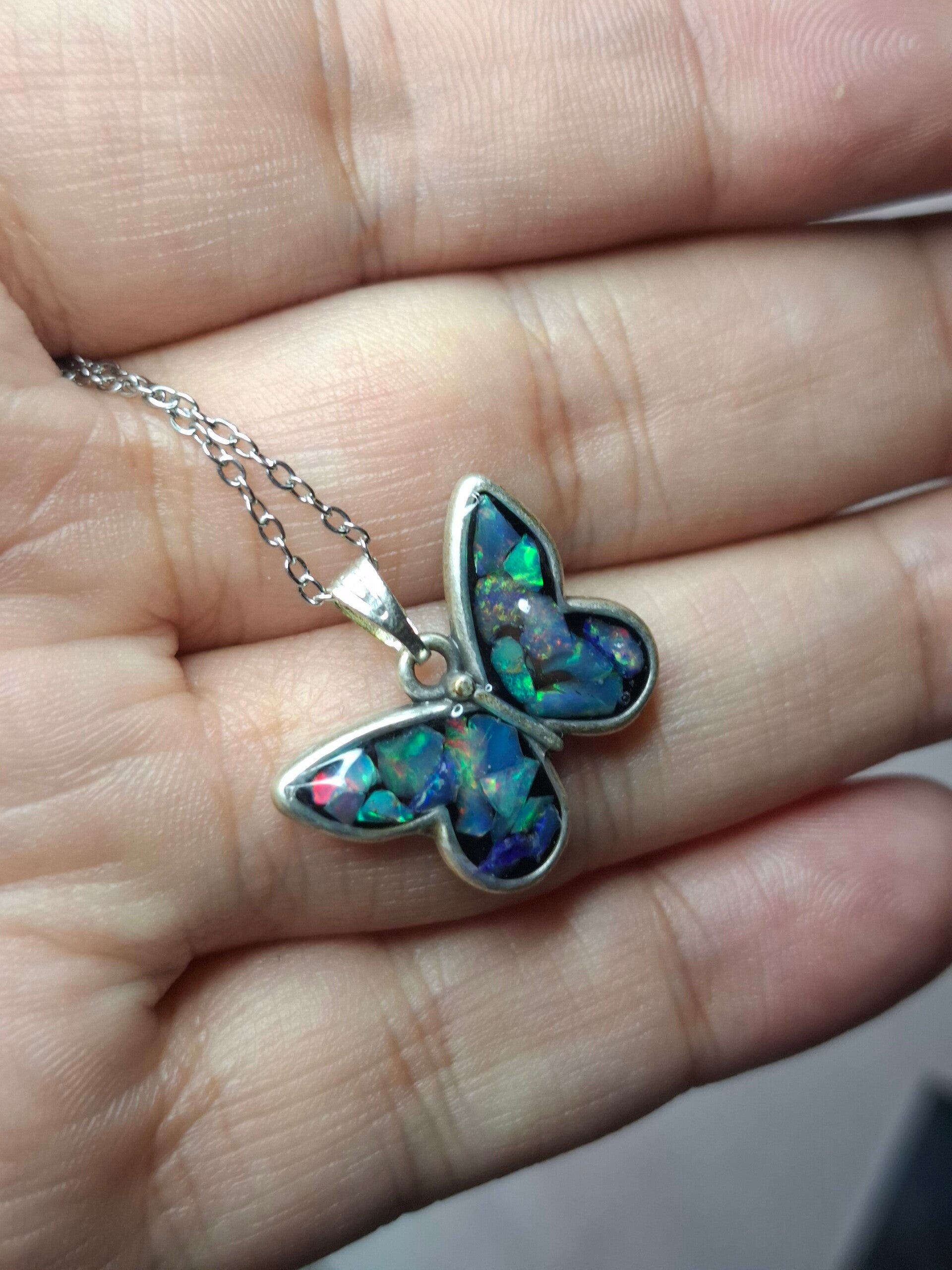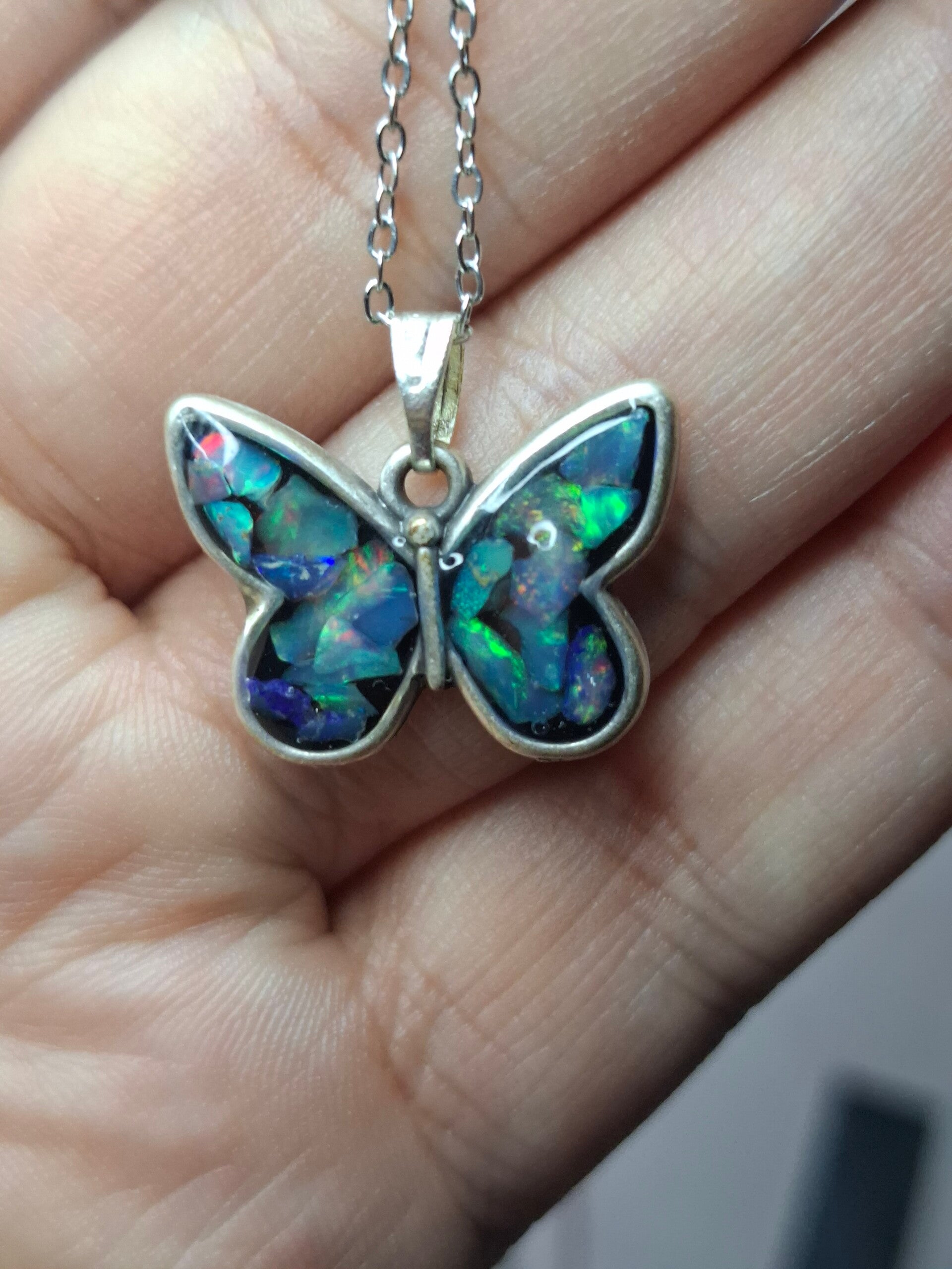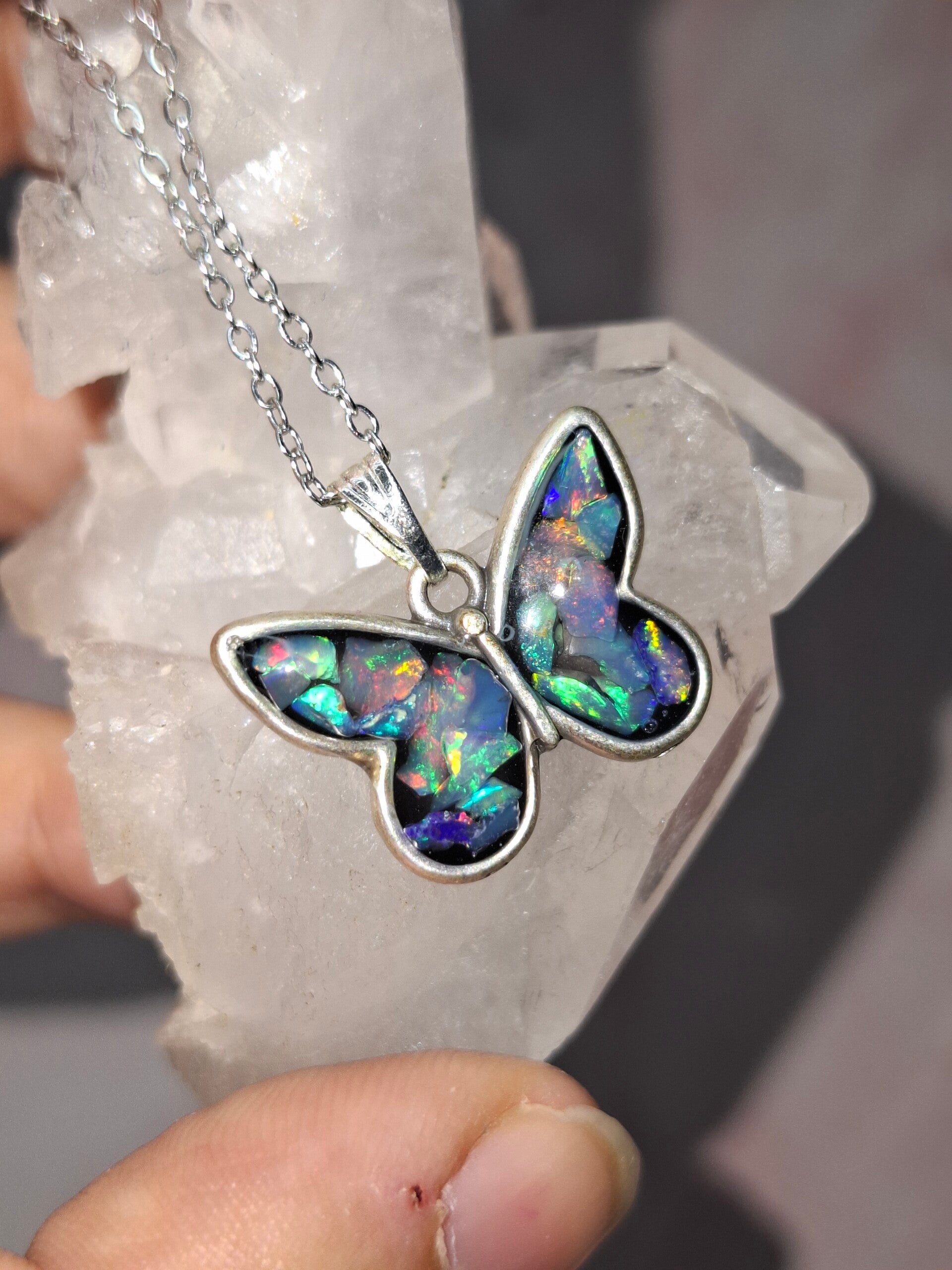 Pendentif papillon eclats opales éthiopiennes
