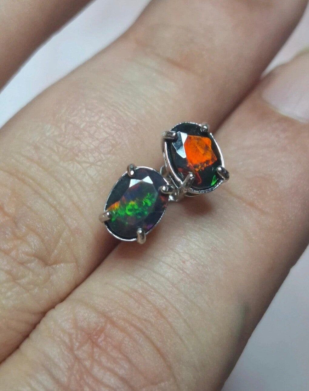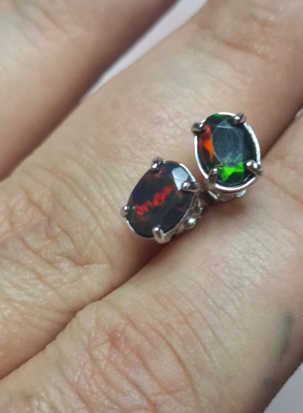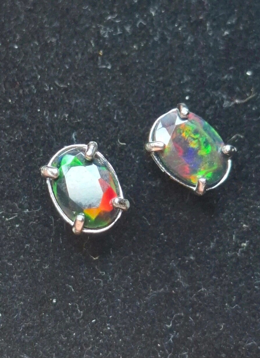 boucle d'oreille argent et opale 7x5 smock flash rouge vert