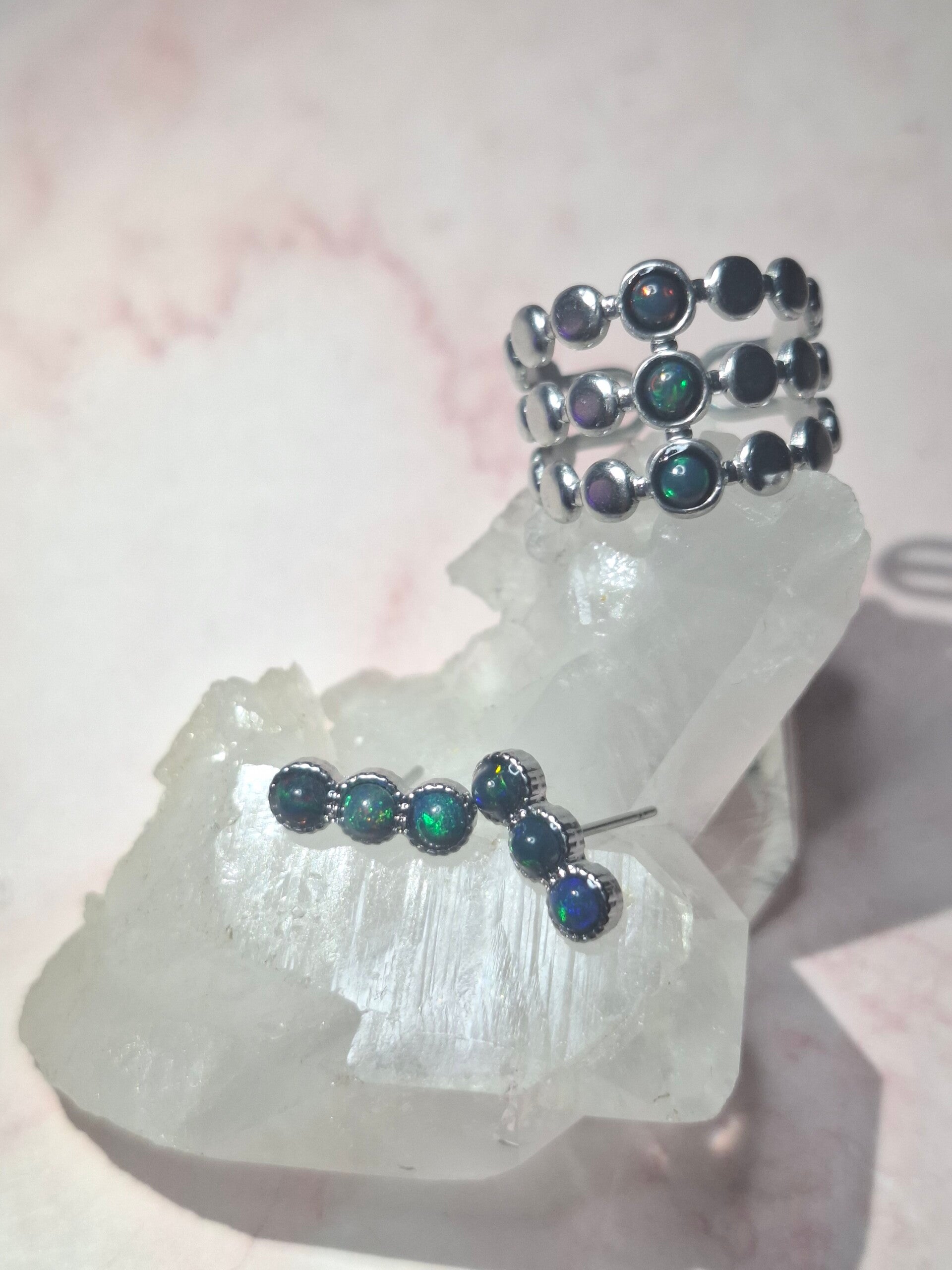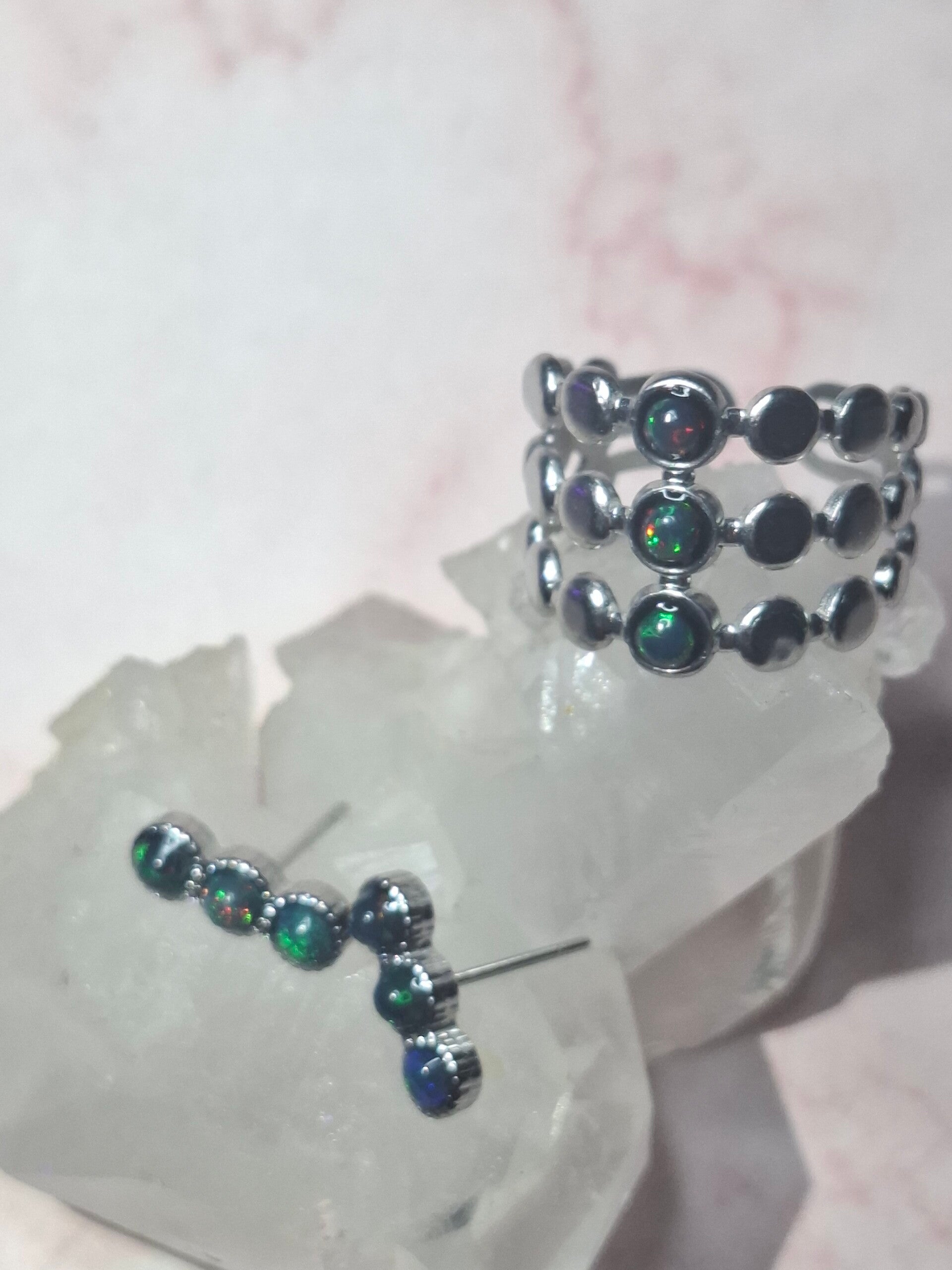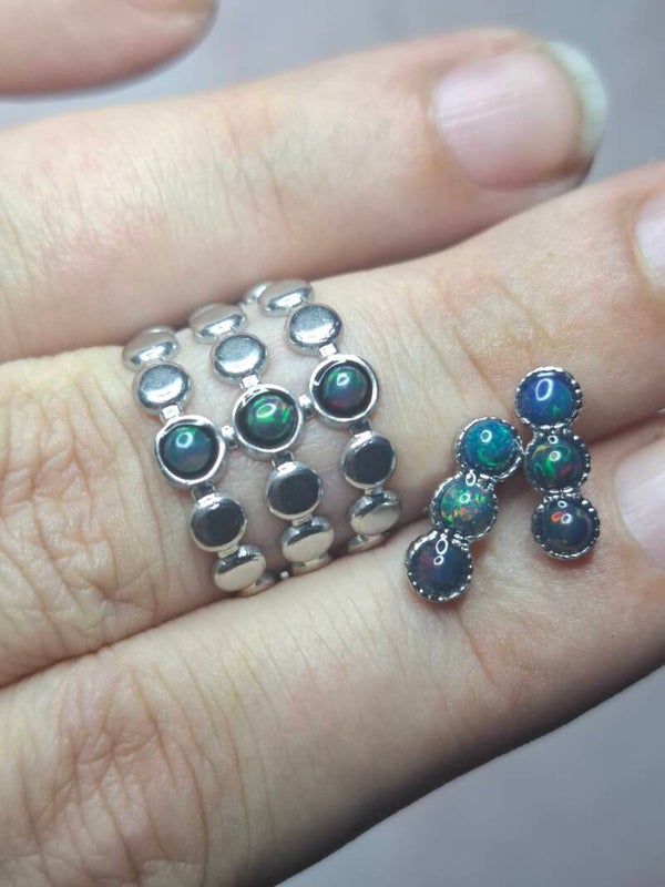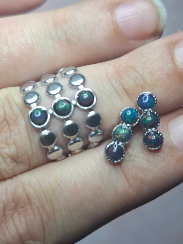 Parure et boucle d'oreilles opales noires Éthiopiennes Véritables