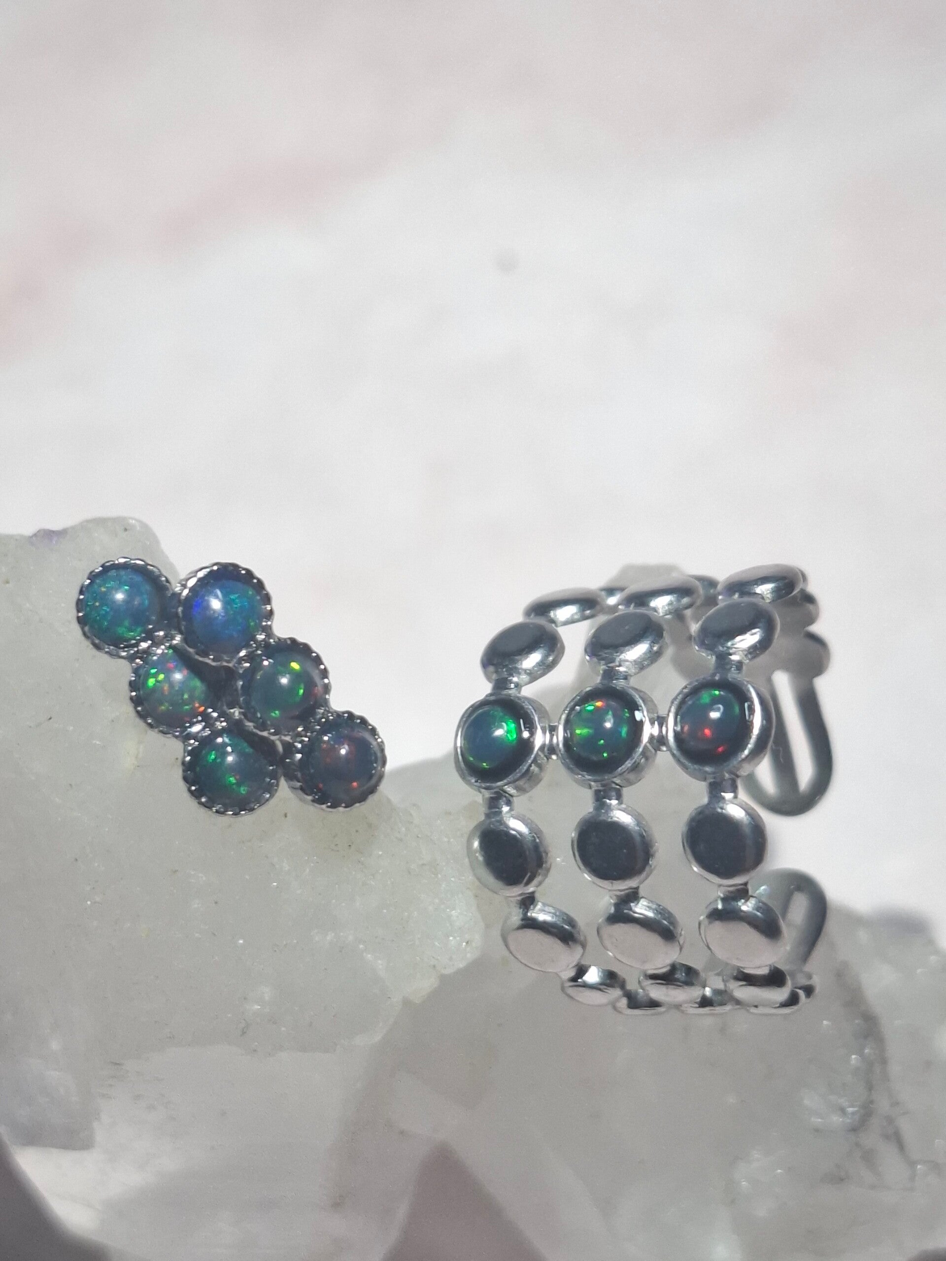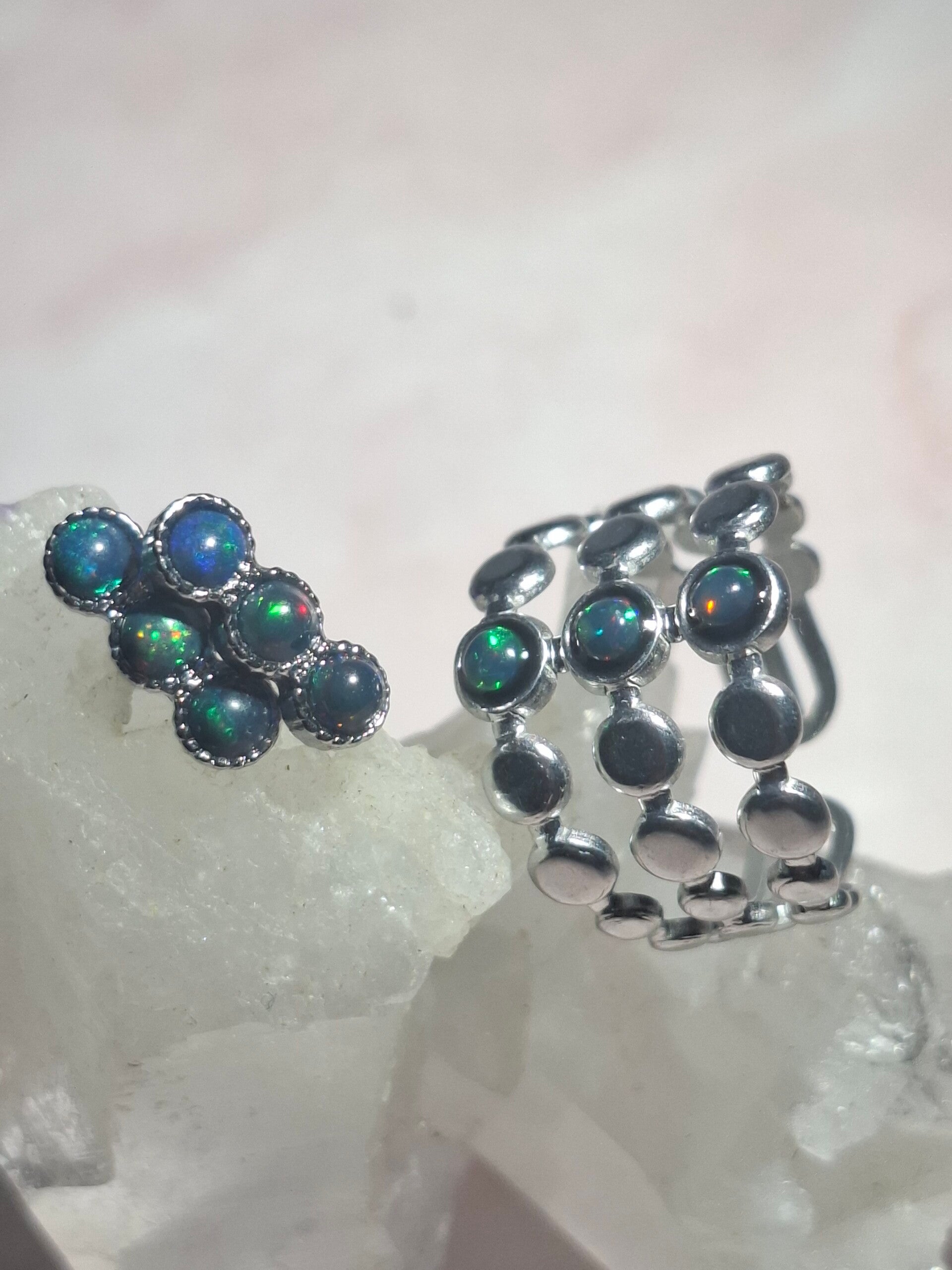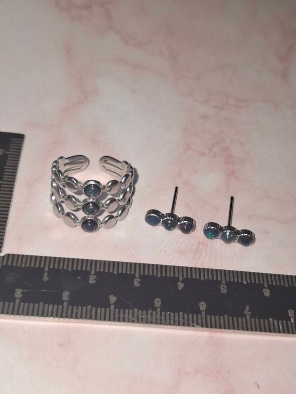 Parure et boucle d'oreilles opales noires Éthiopiennes Véritables