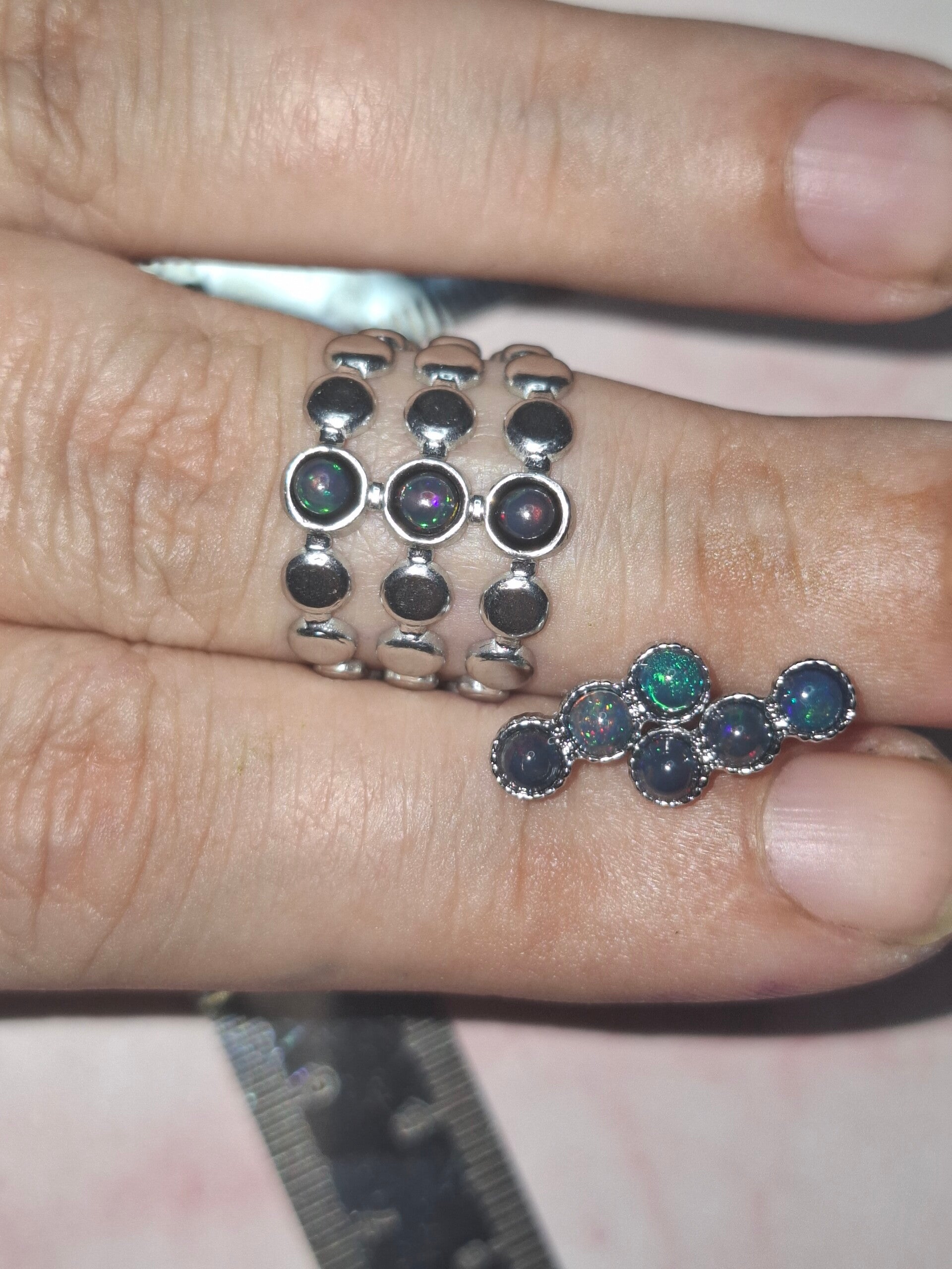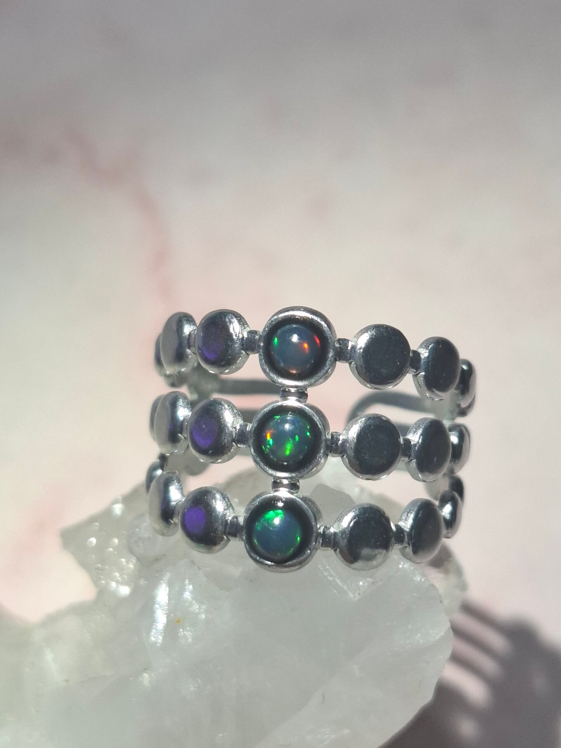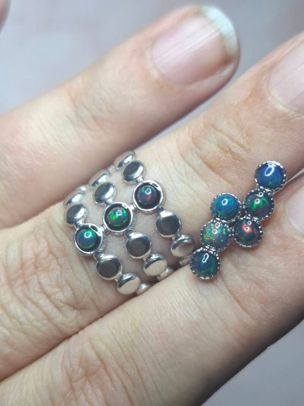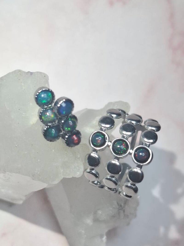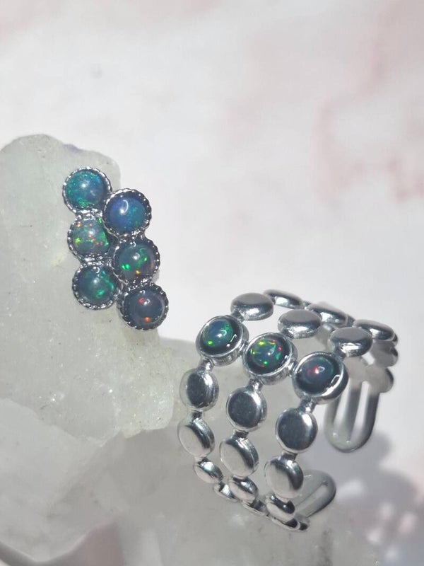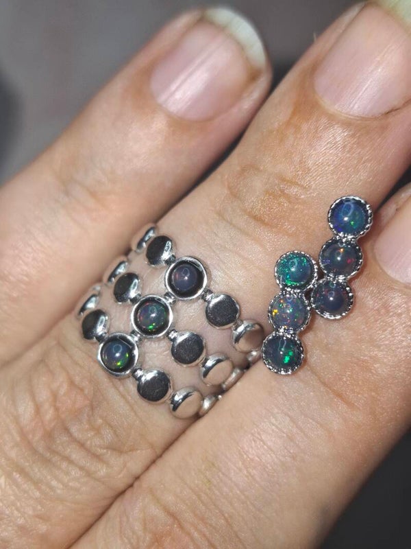 Bague ajustable 3 opales noires