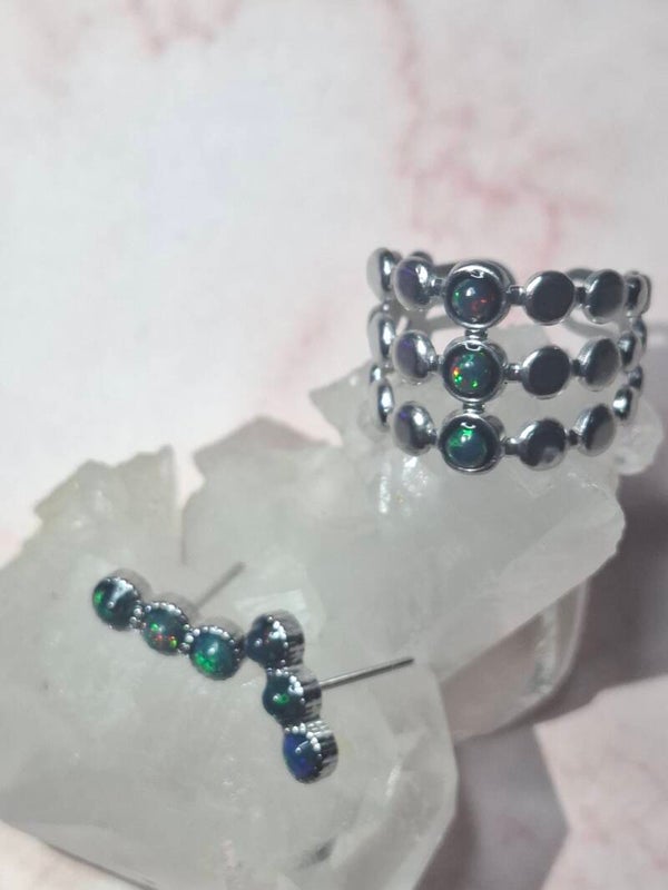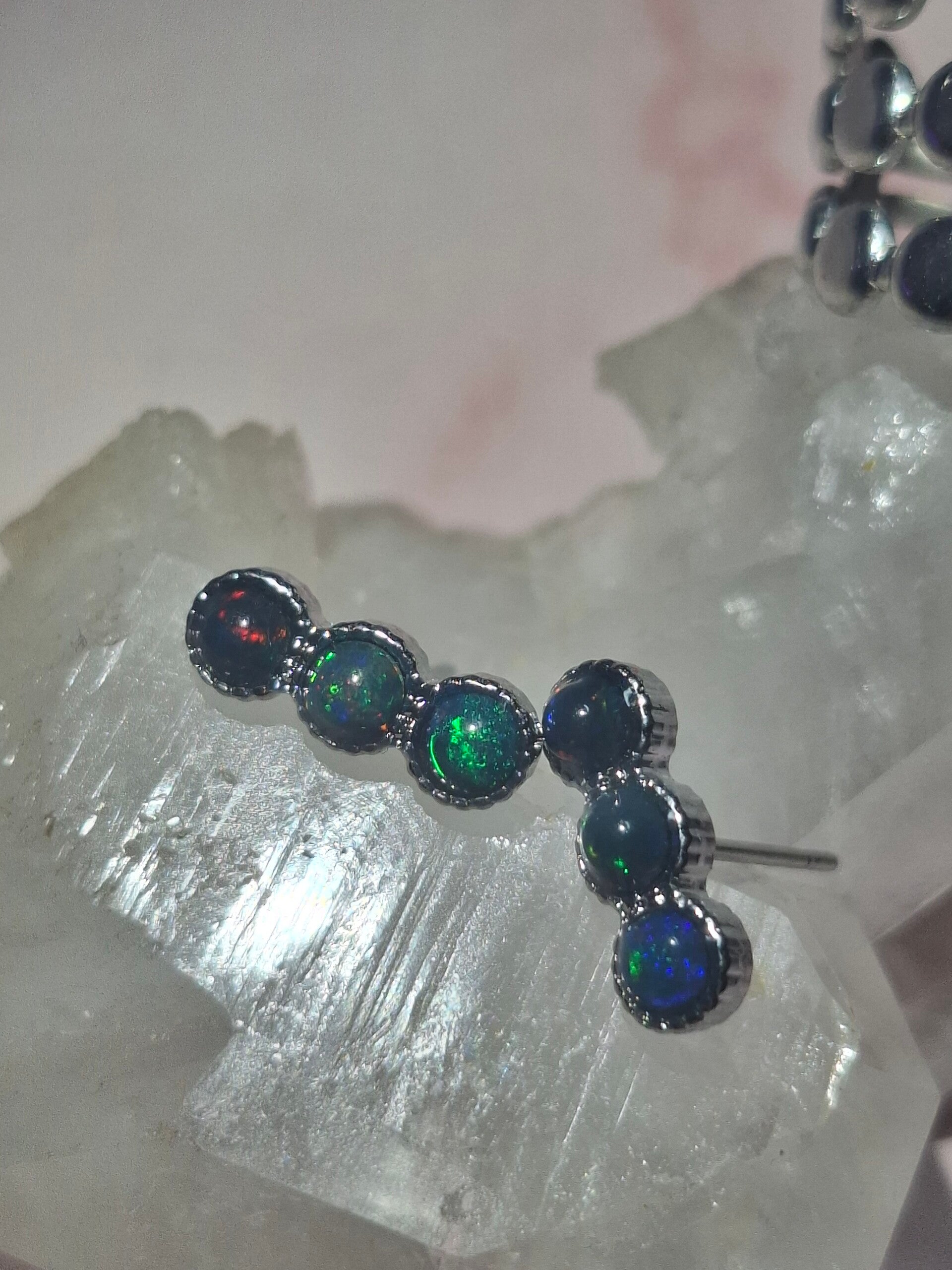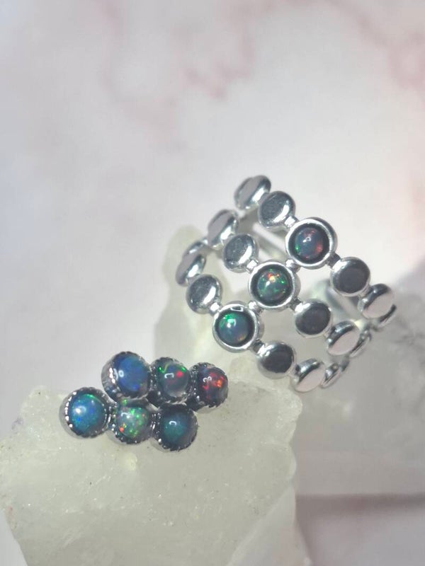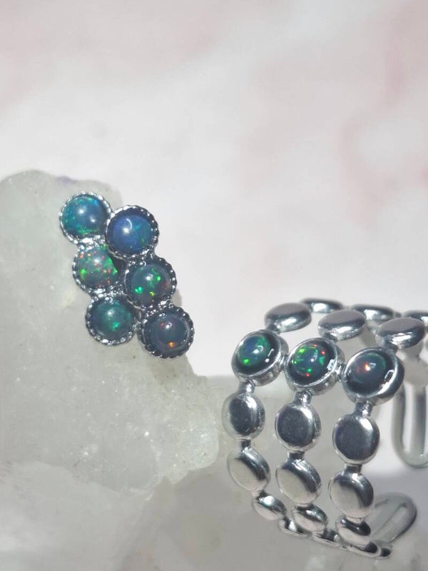 Boucle d'oreille 6 opales noires