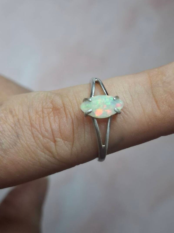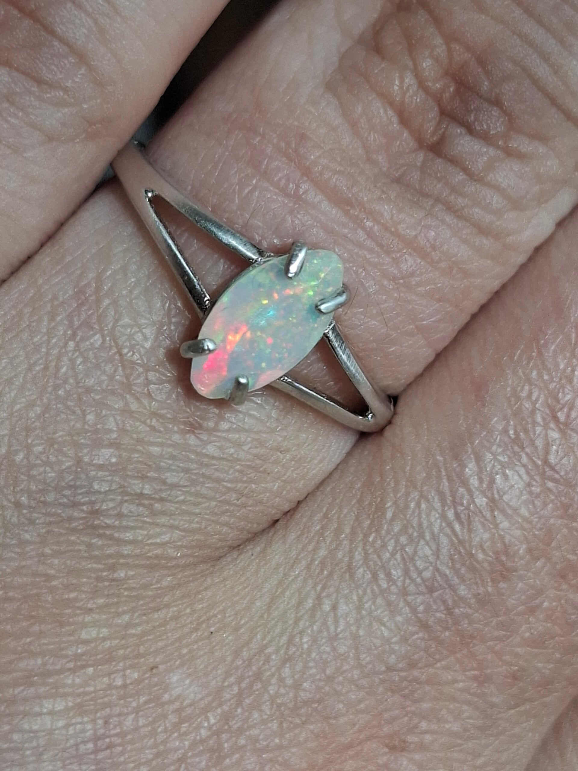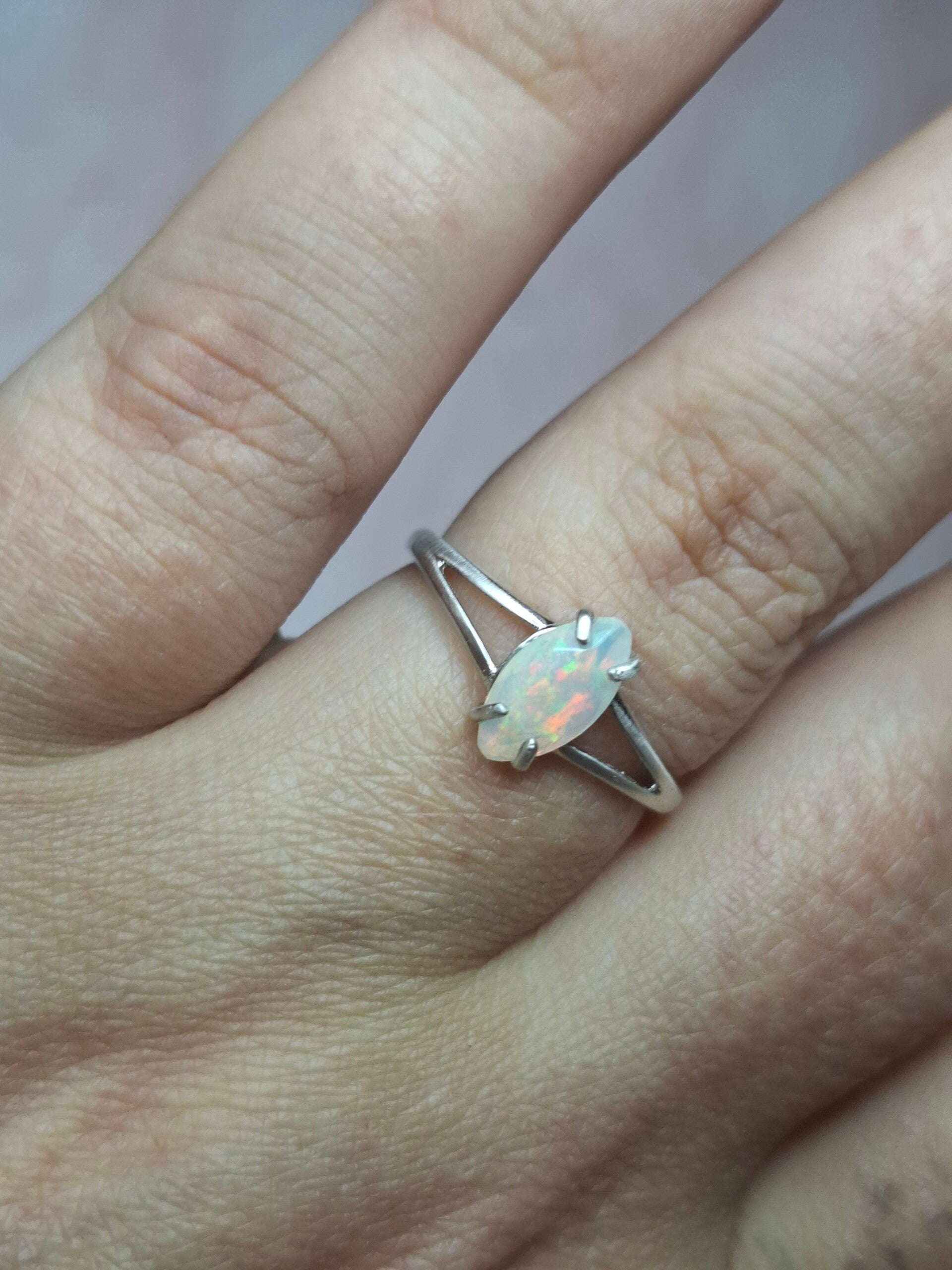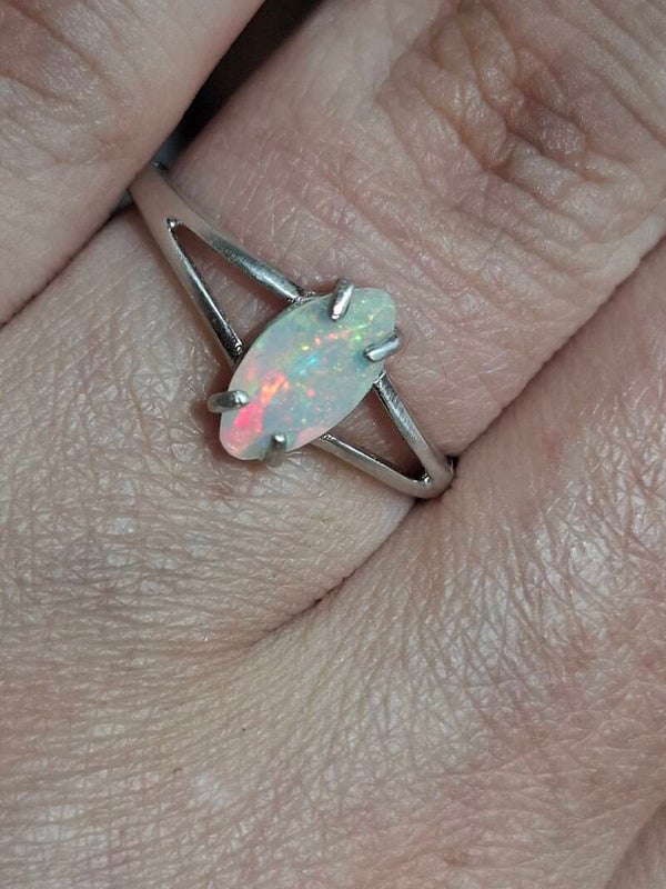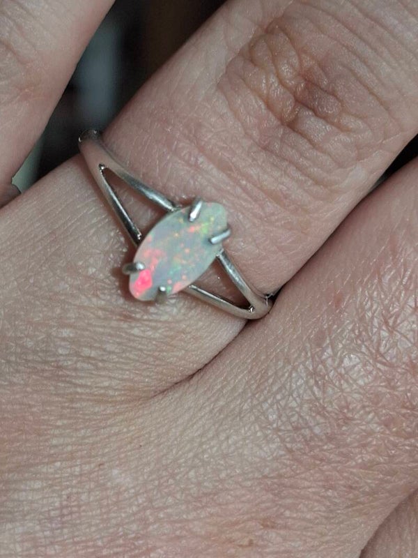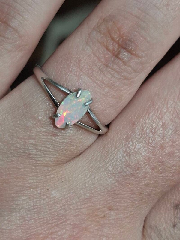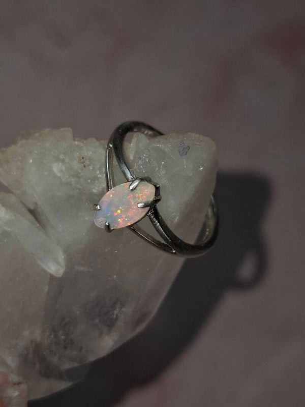 Bague argent opale 9x5mm marquise pailleté multicolore