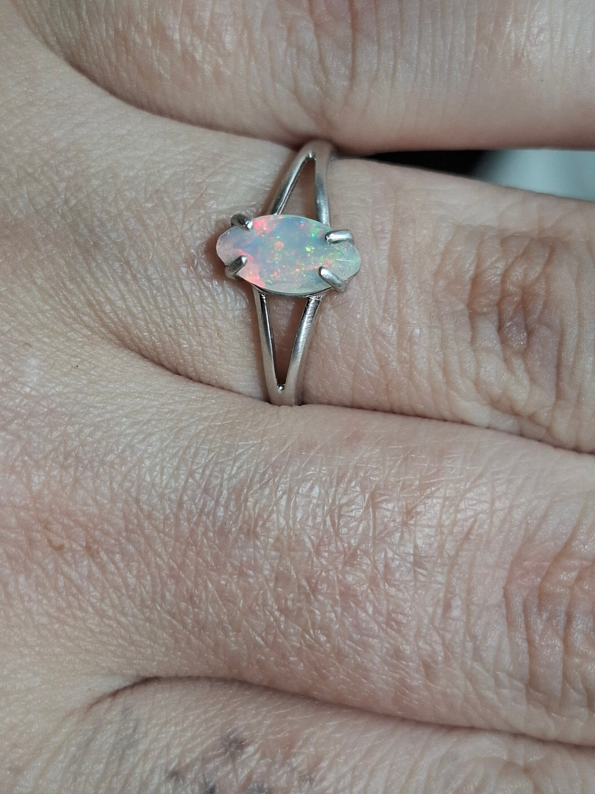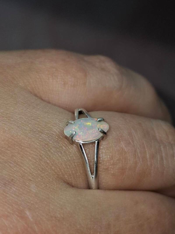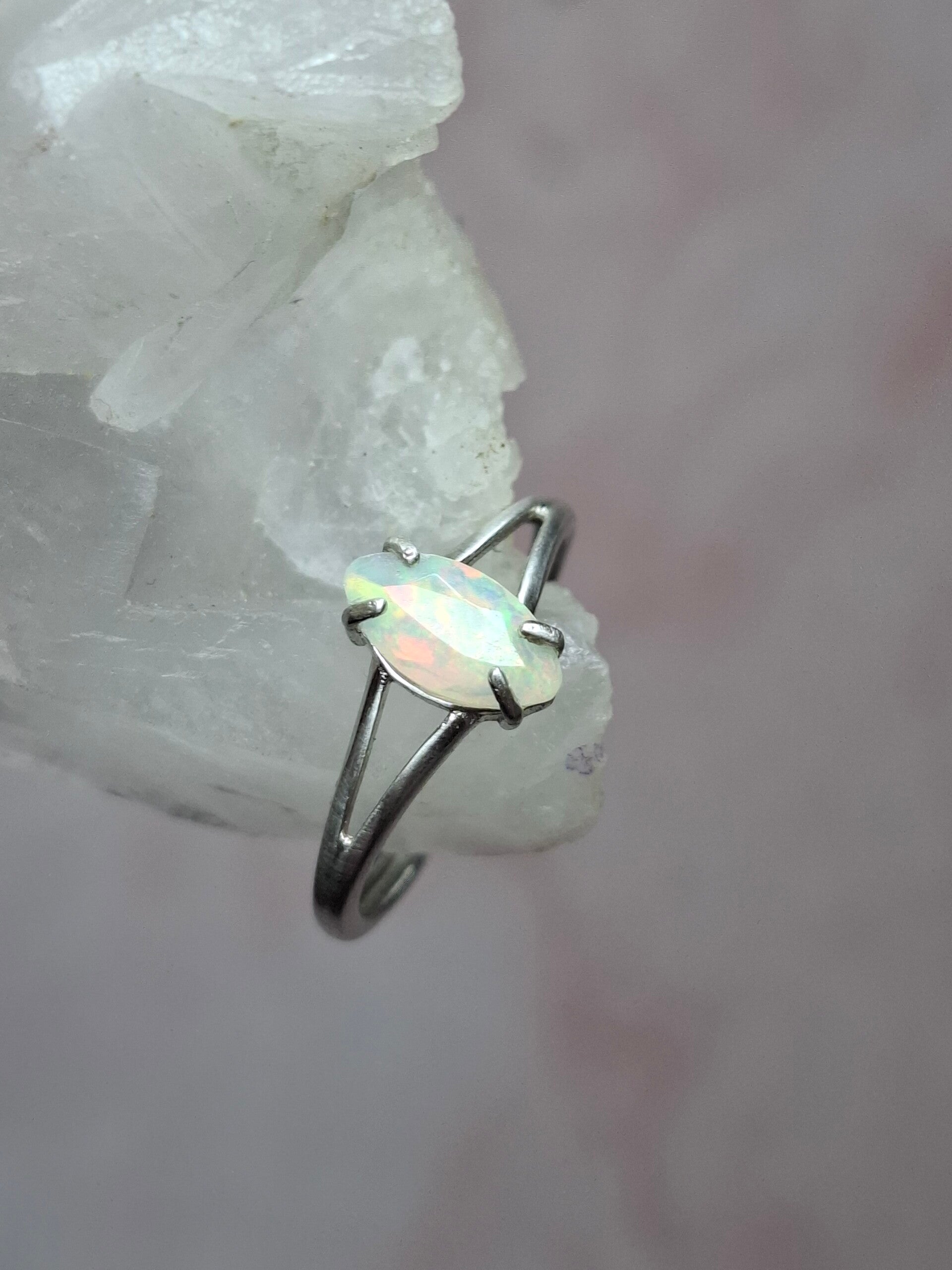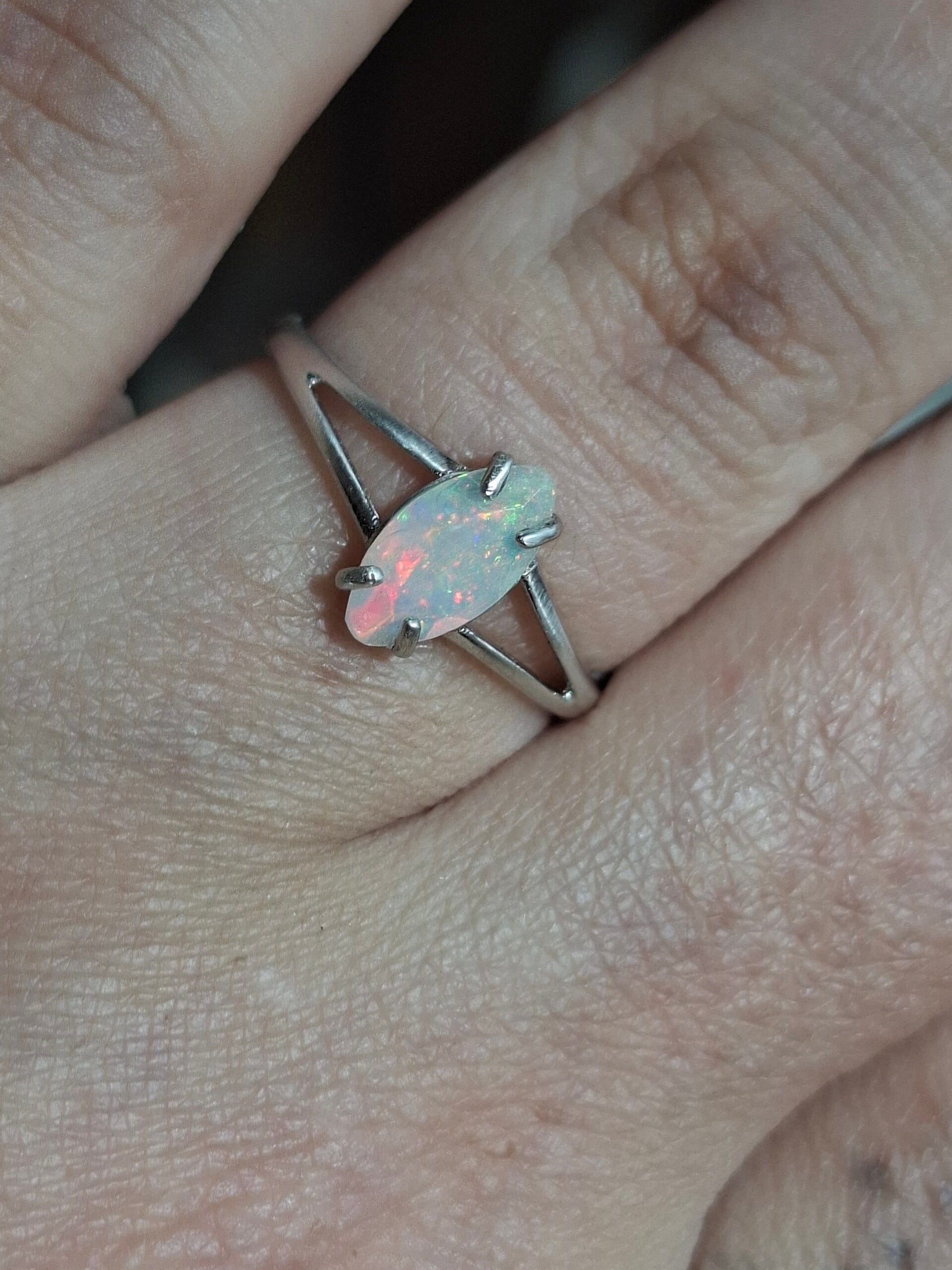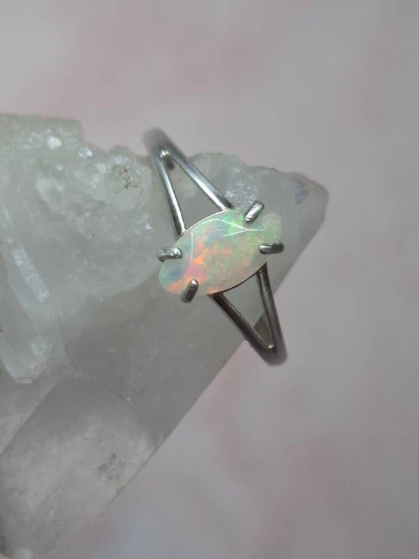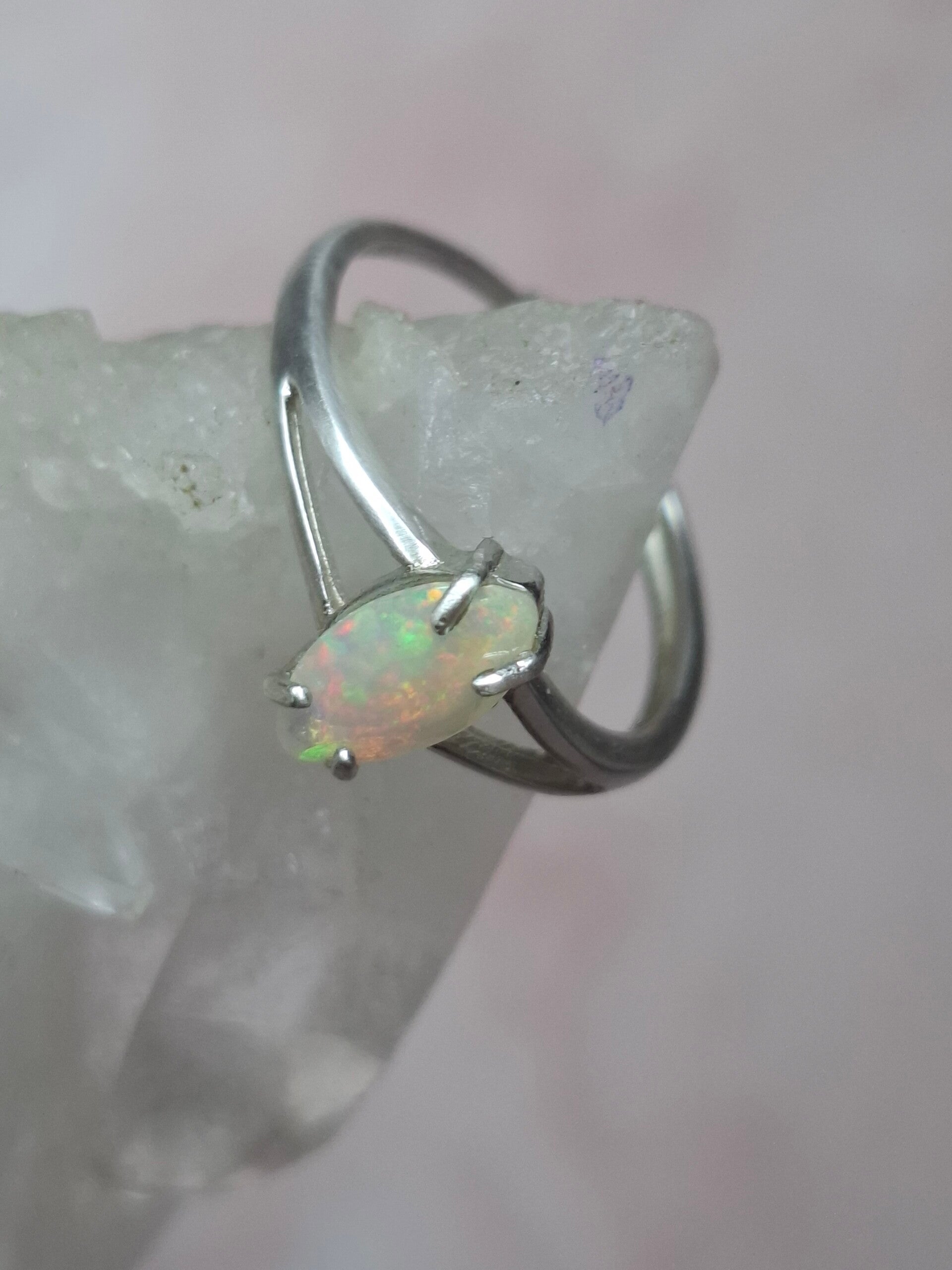 Bague argent opale 9x5mm marquise pailleté multicolore