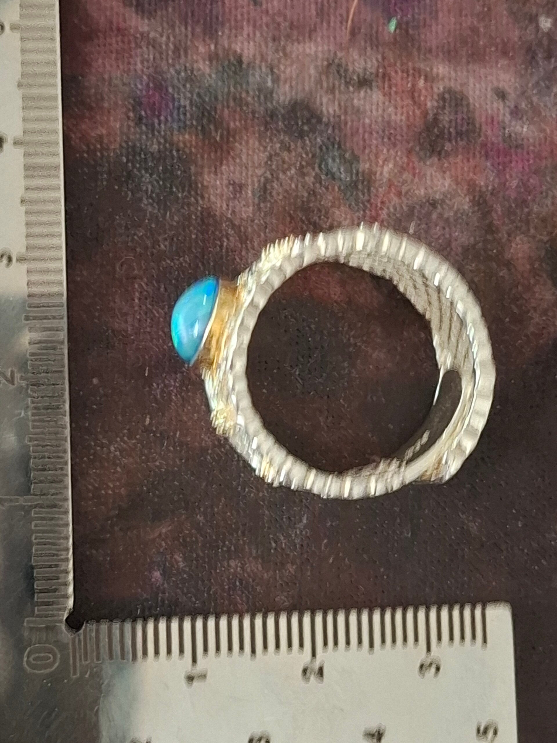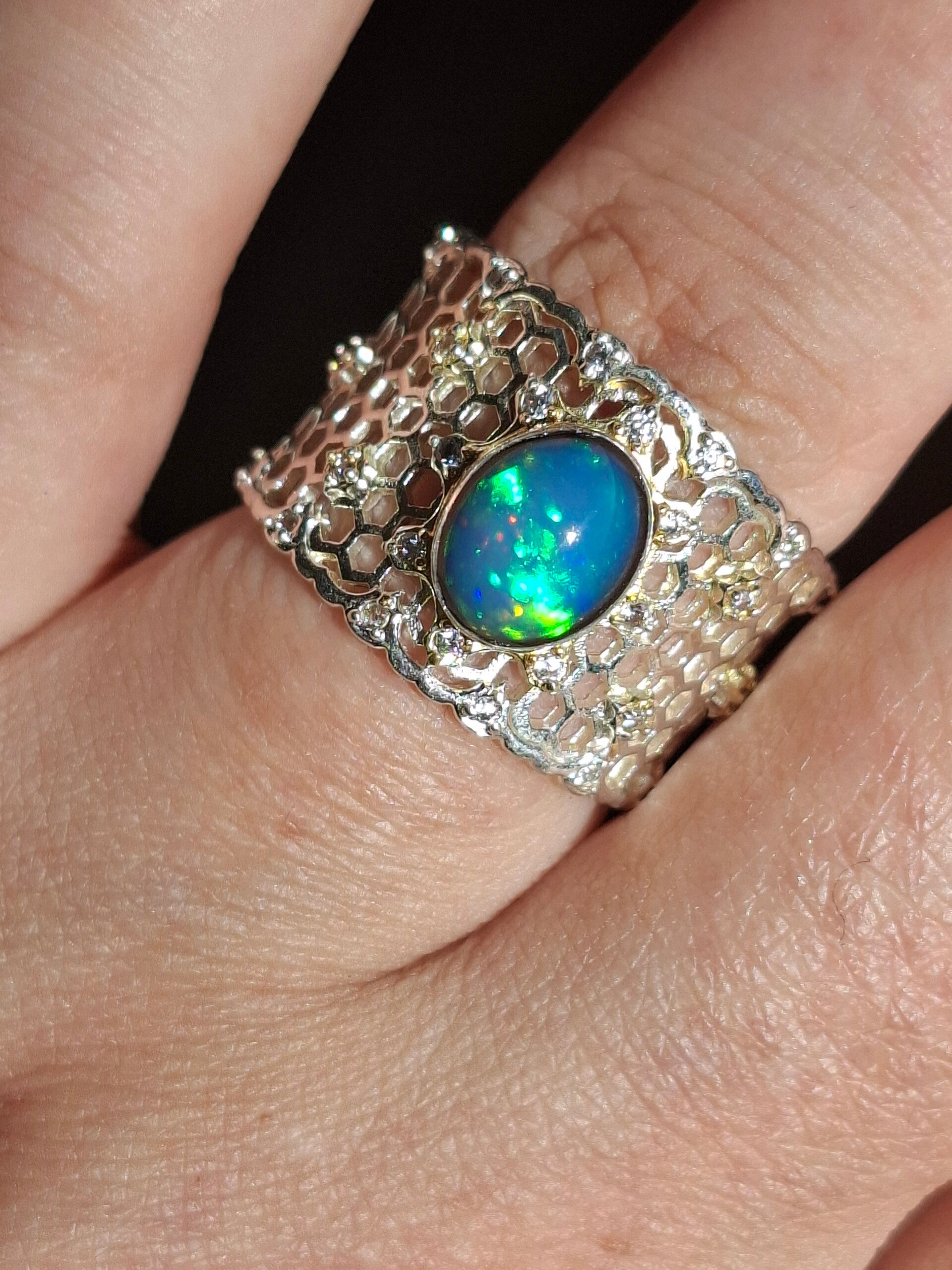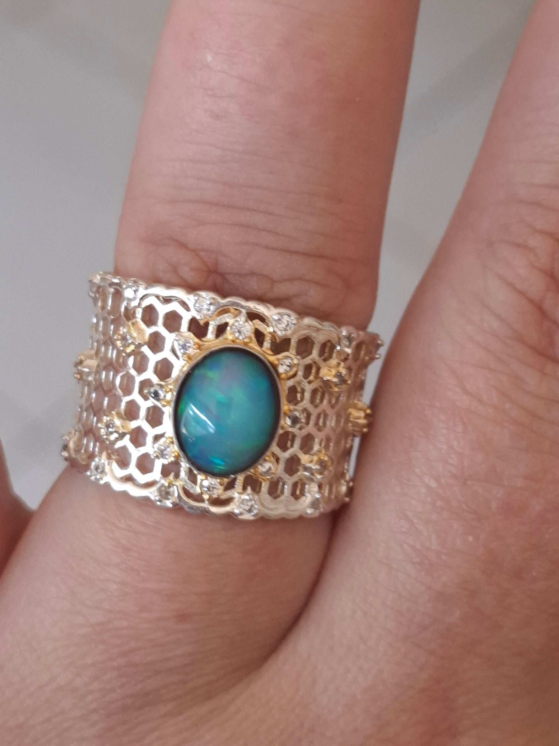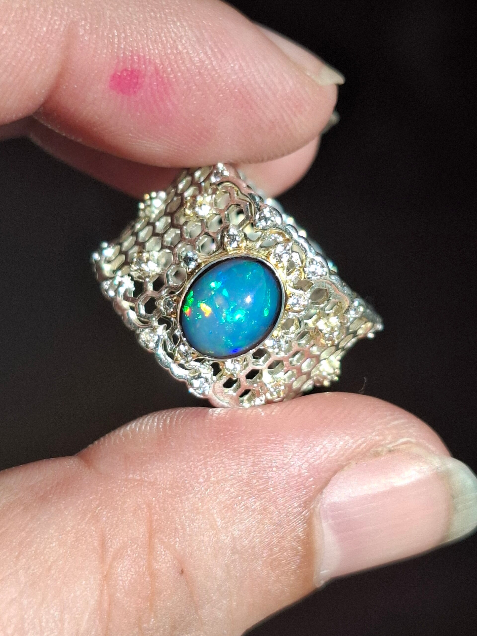 Bague ajustable opale 8x6mm welo pailleté arc en ciel