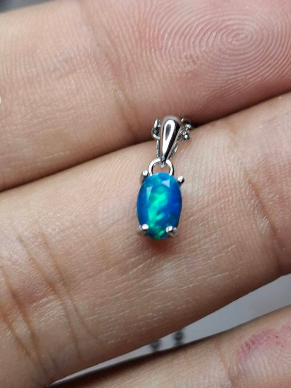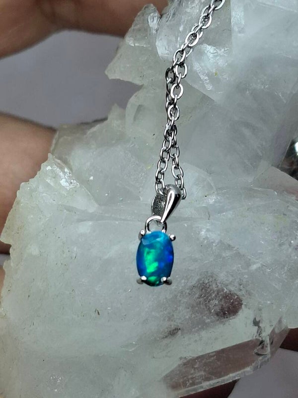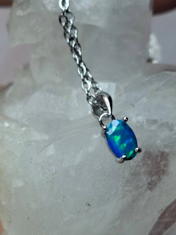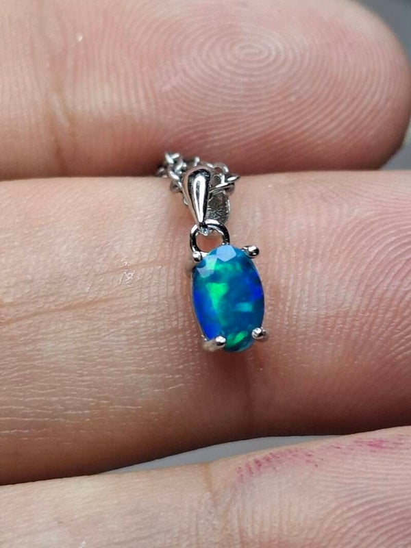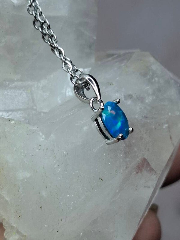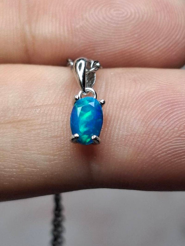 Pendentif opale bleu paraiba 6x4mm éthiopienne