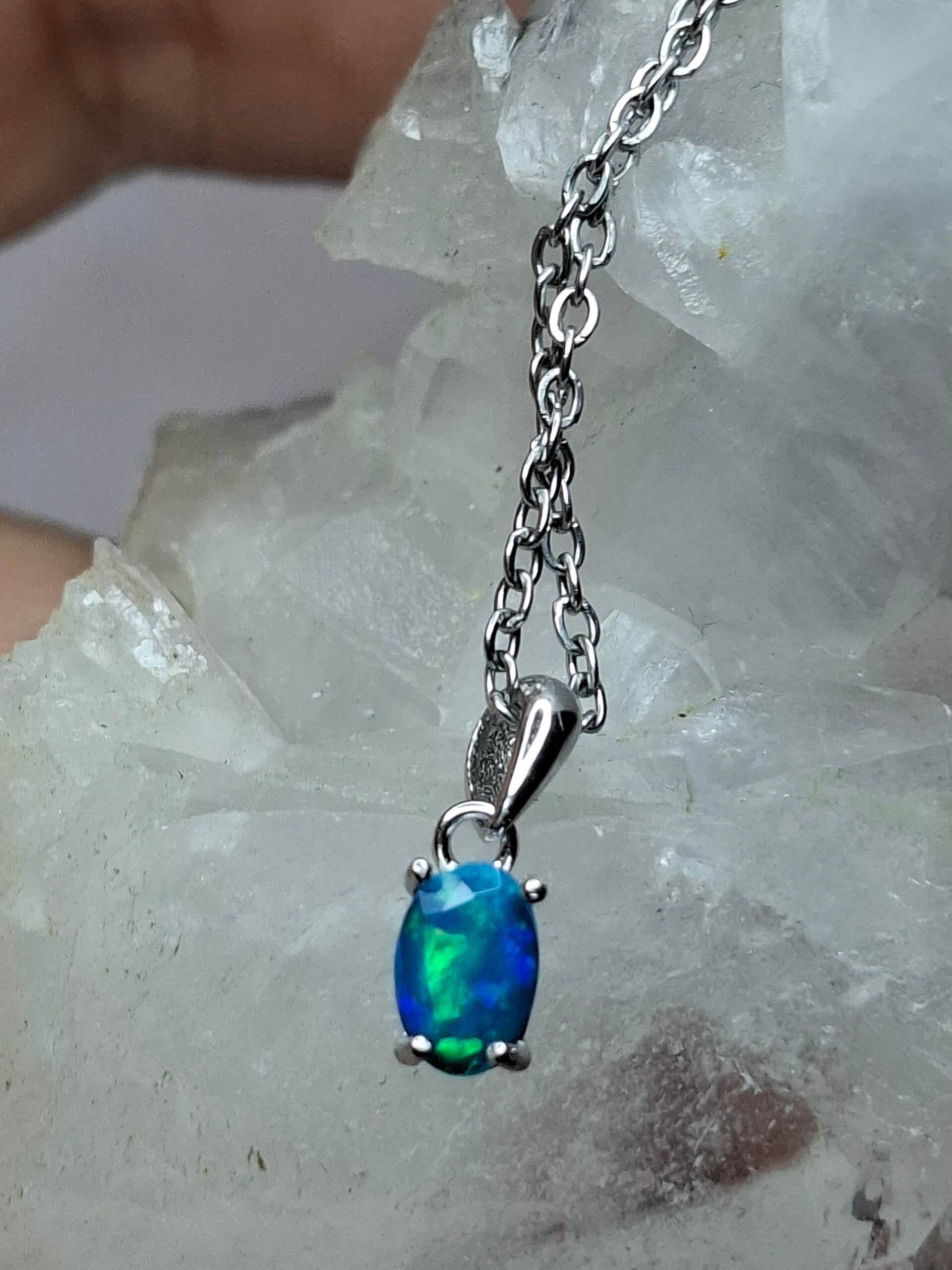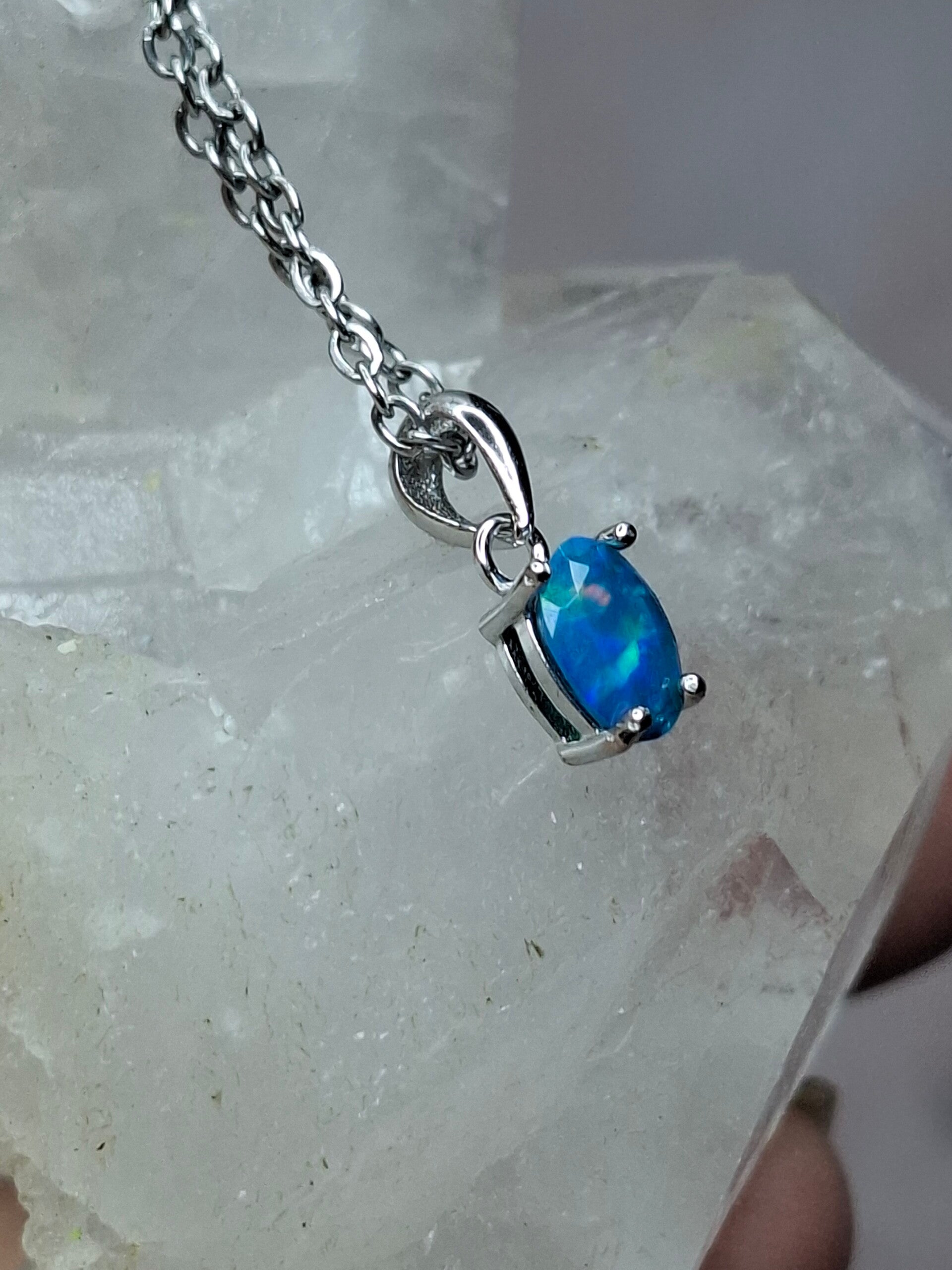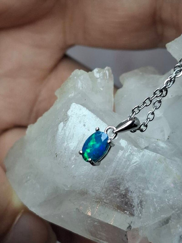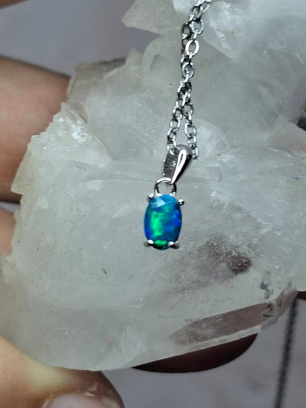 Pendentif opale bleu paraiba 6x4mm éthiopienne