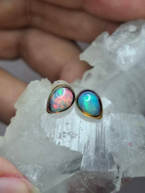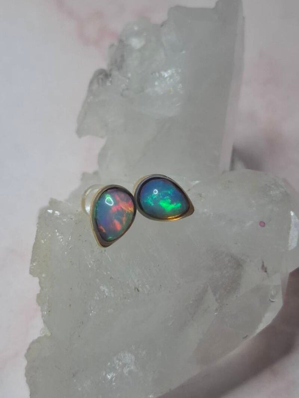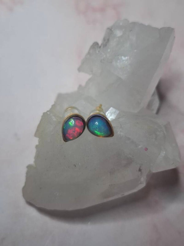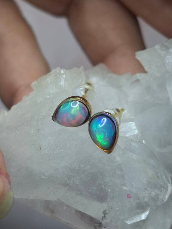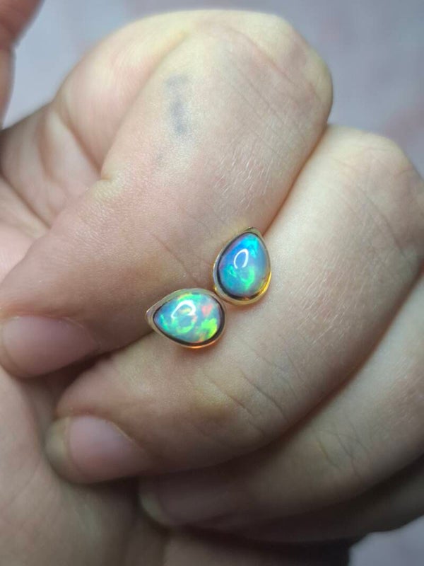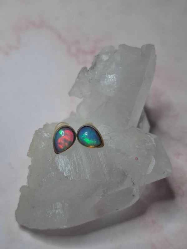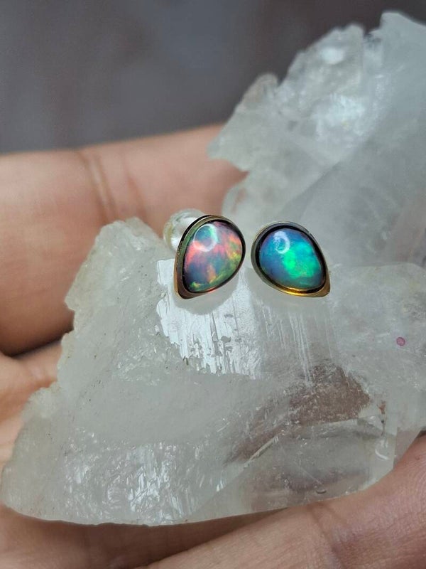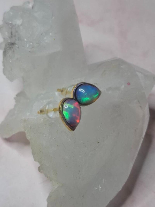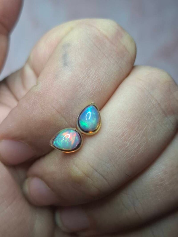 Boucles doreille doré opale 7x5mm éthiopienne