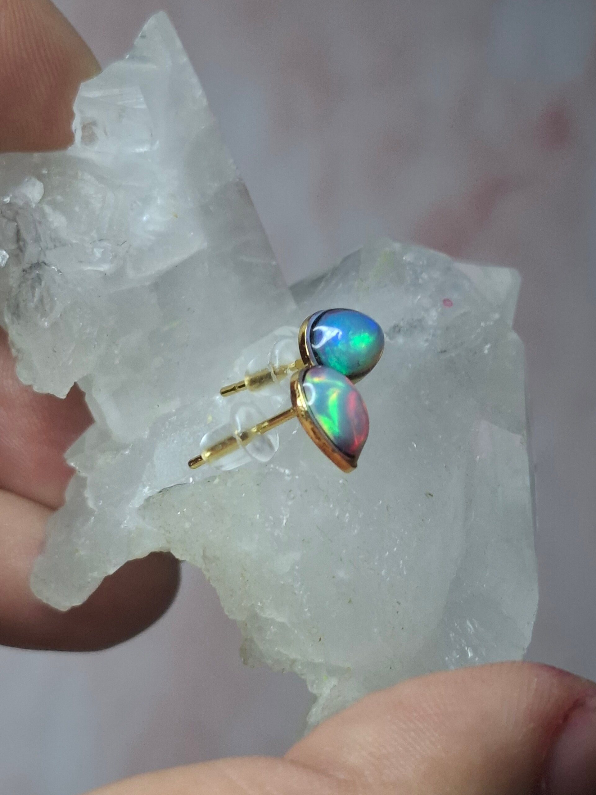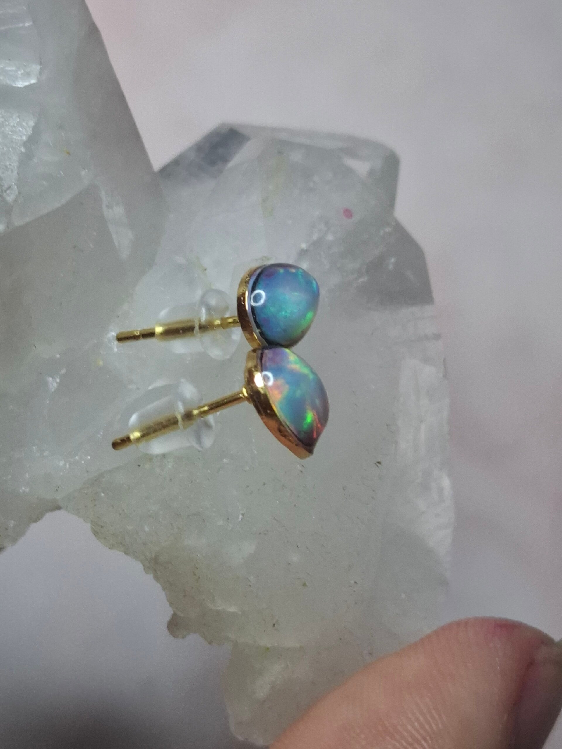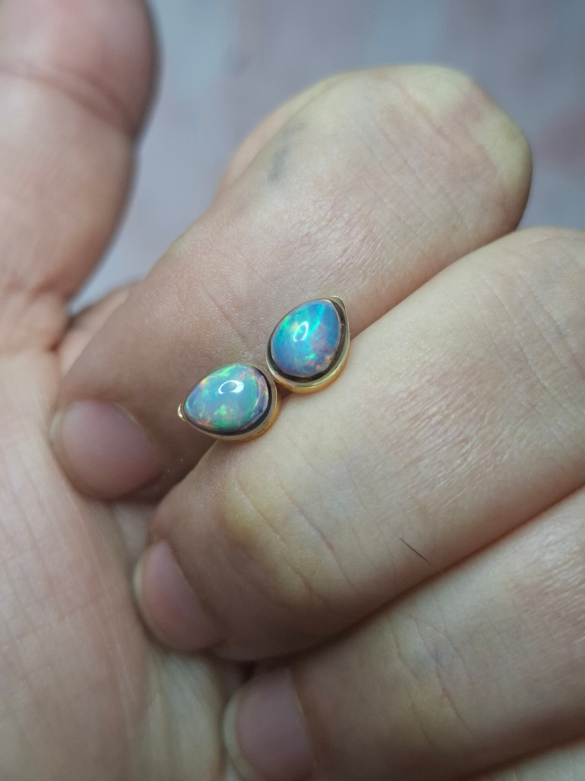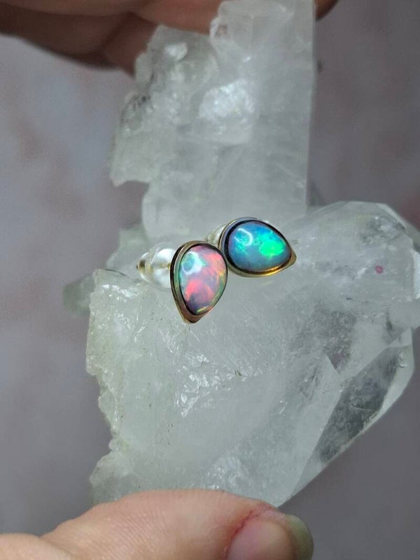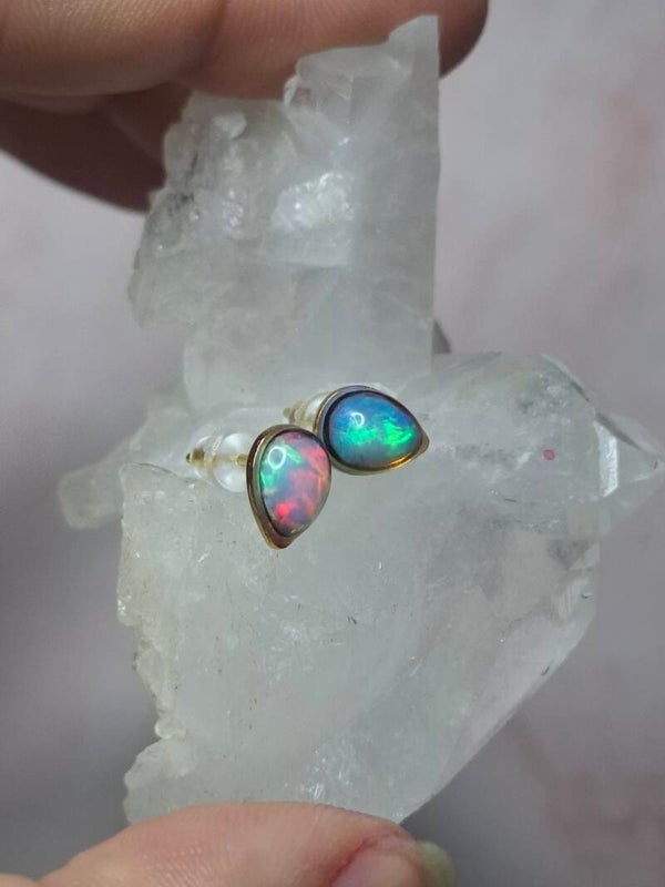 Boucles doreille doré opale 7x5mm éthiopienne