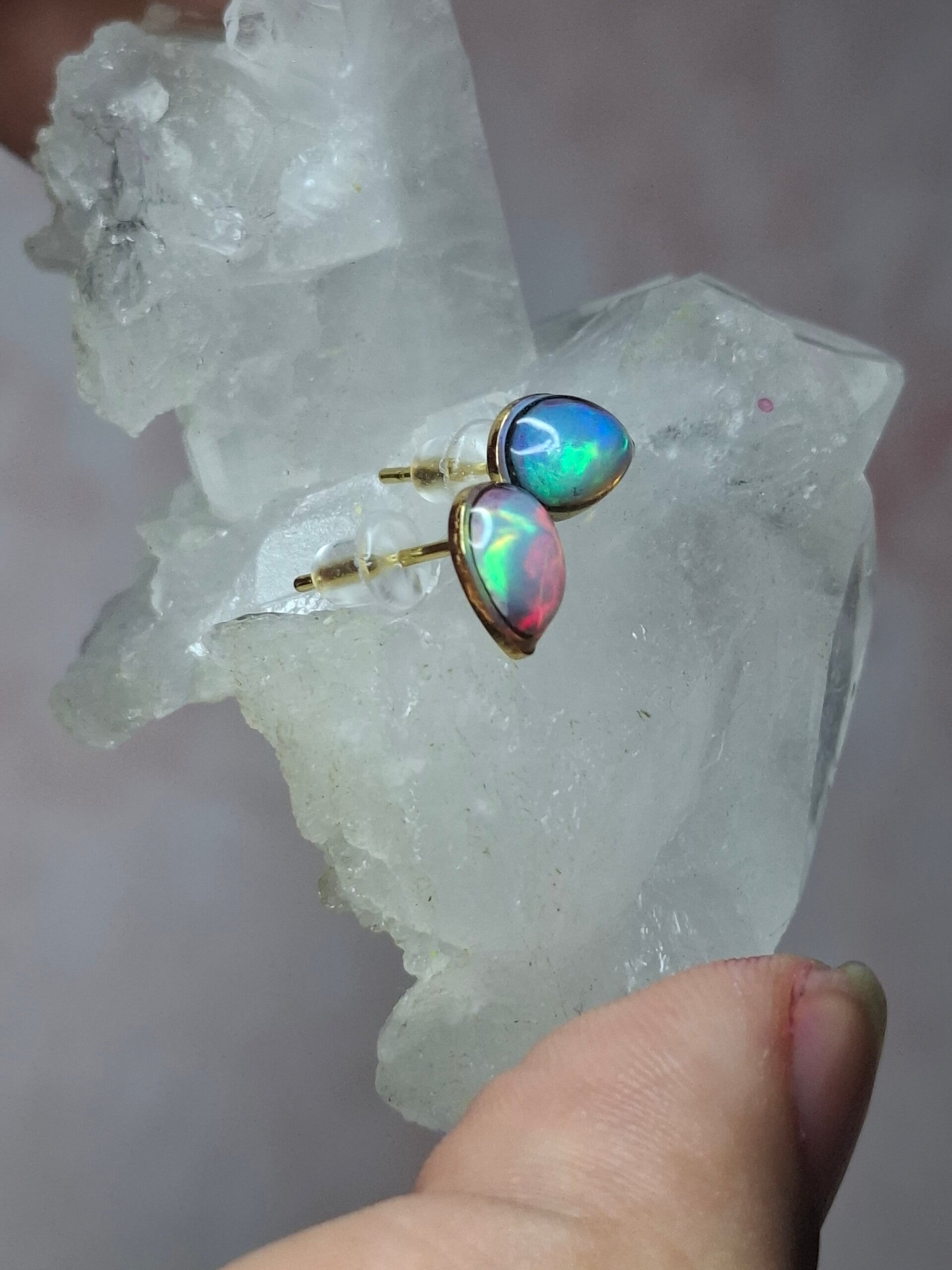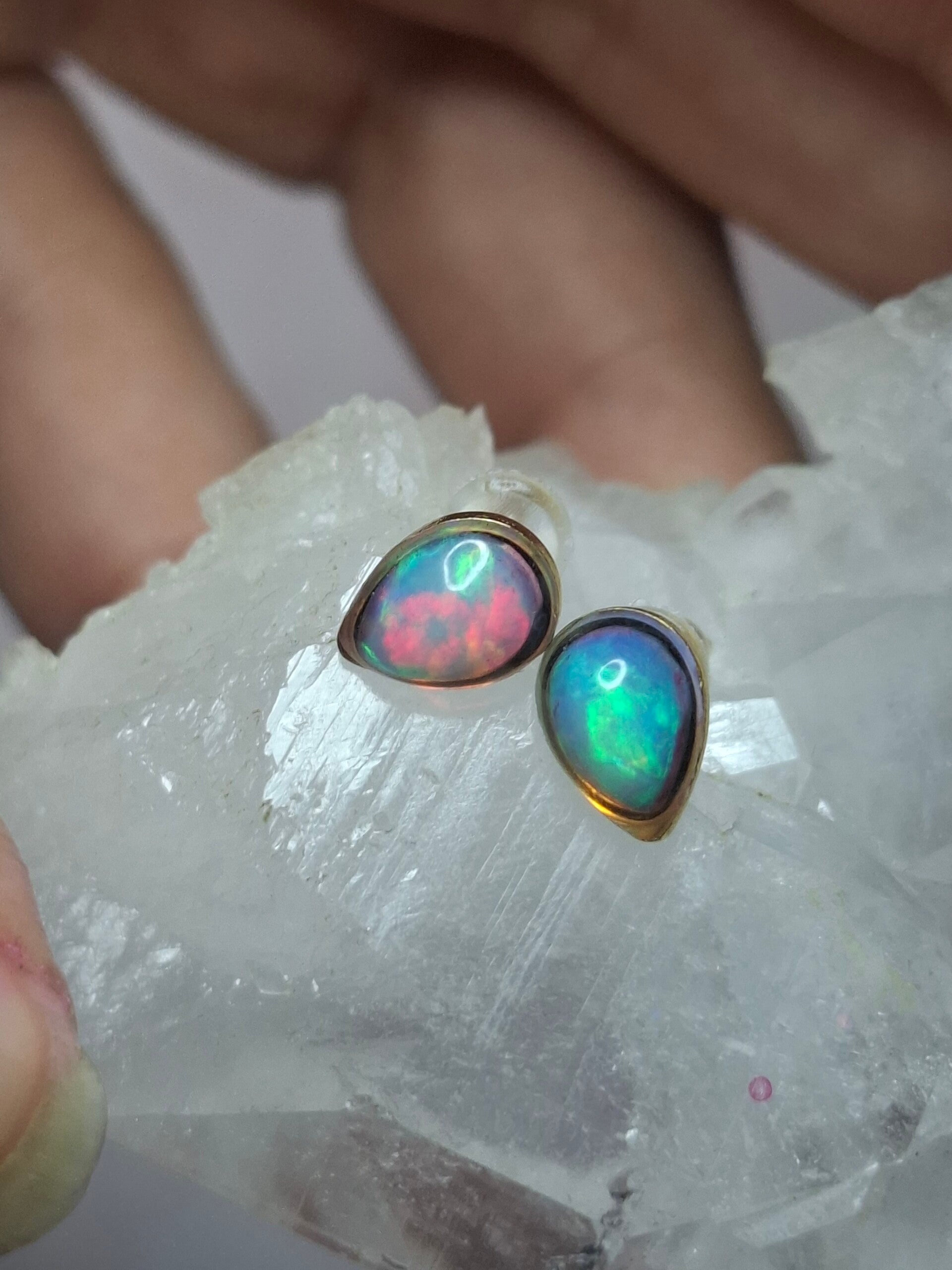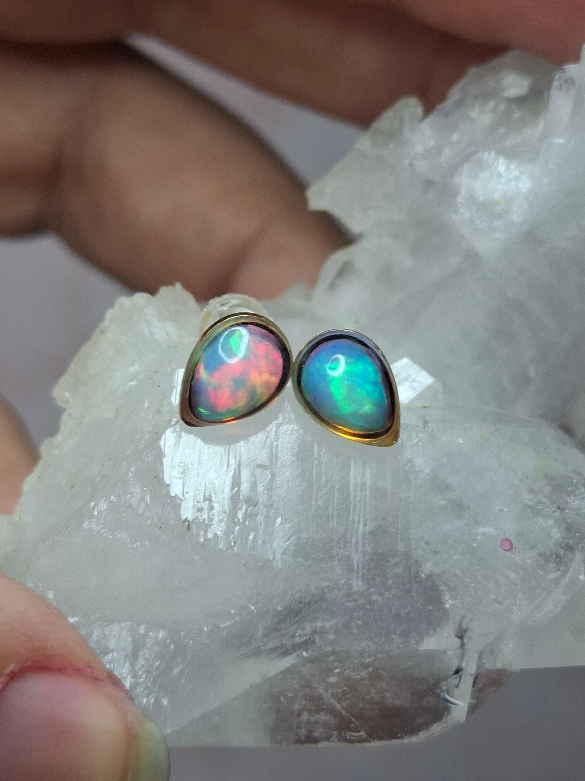 Boucles doreille doré opale 7x5mm éthiopienne