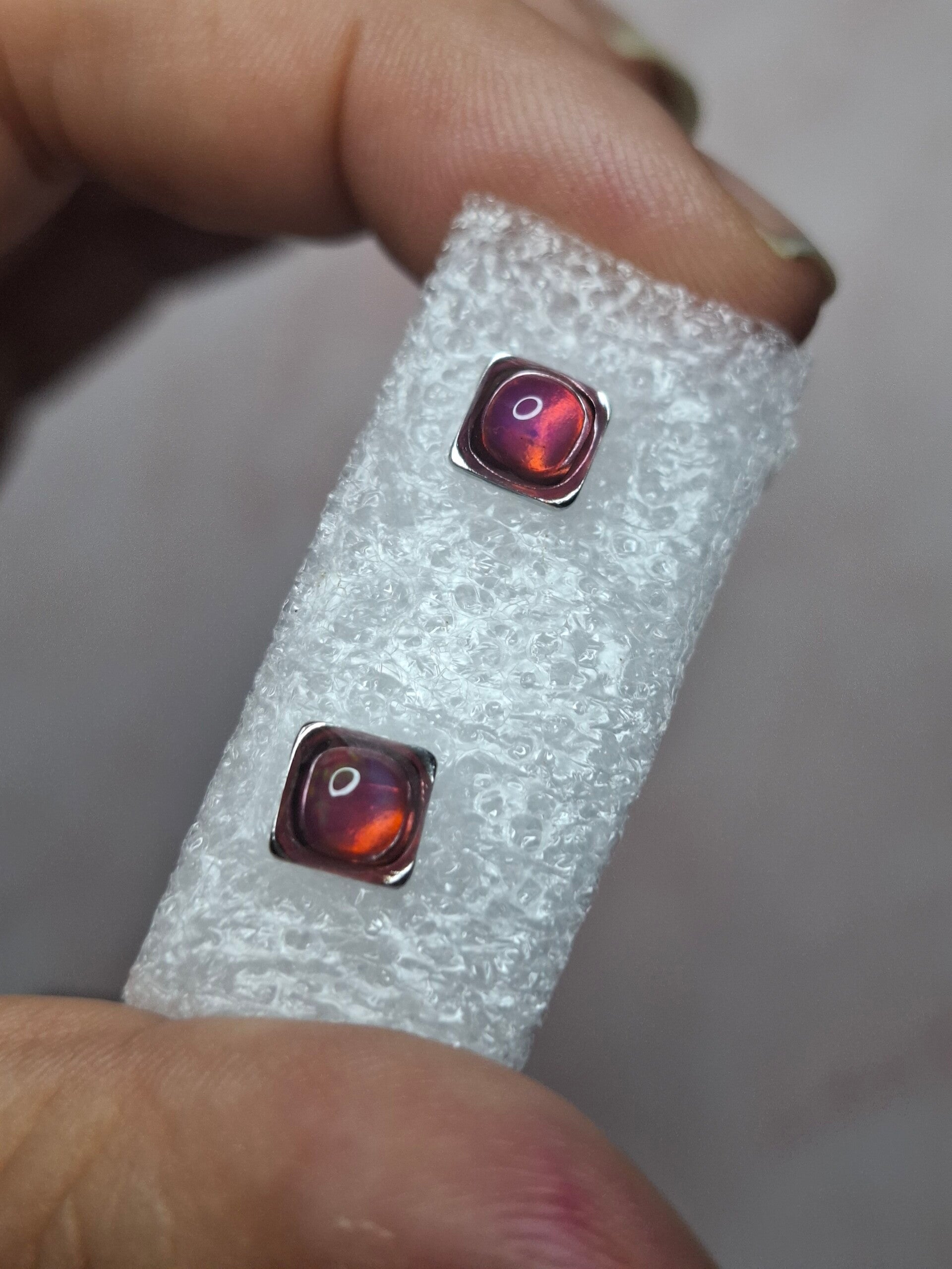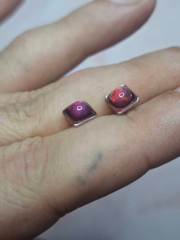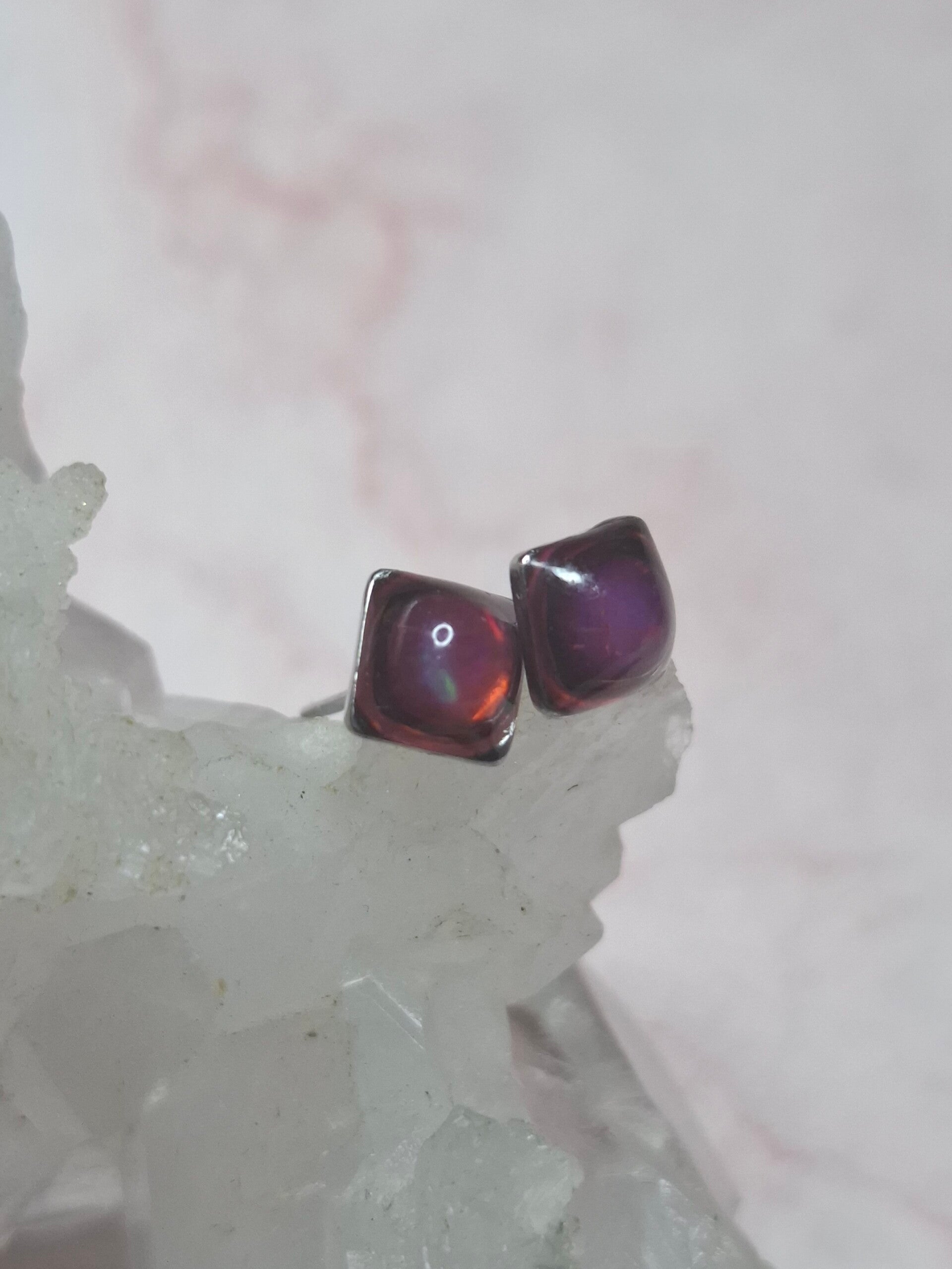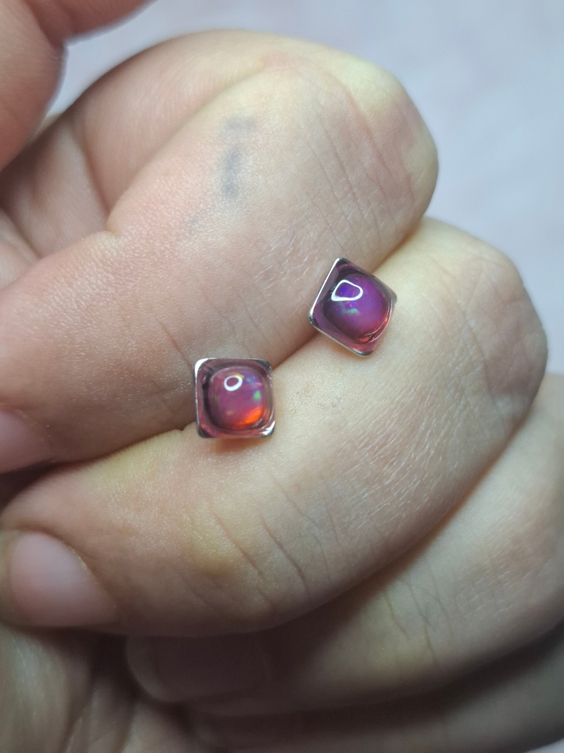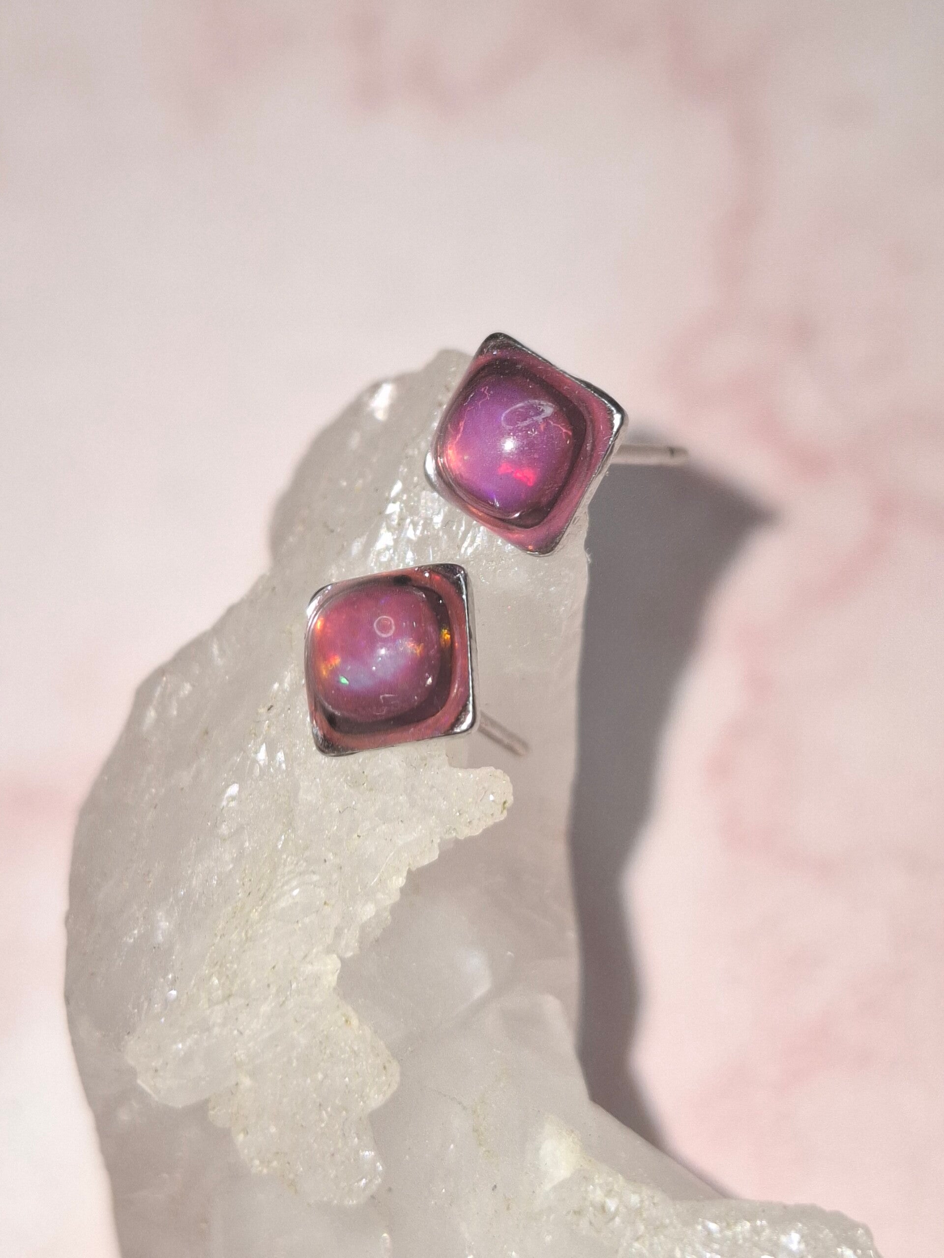 Boucles doreille opale 5mm carré fushia éthiopienne