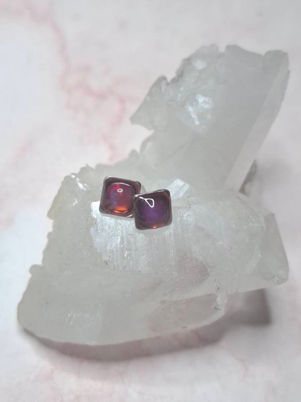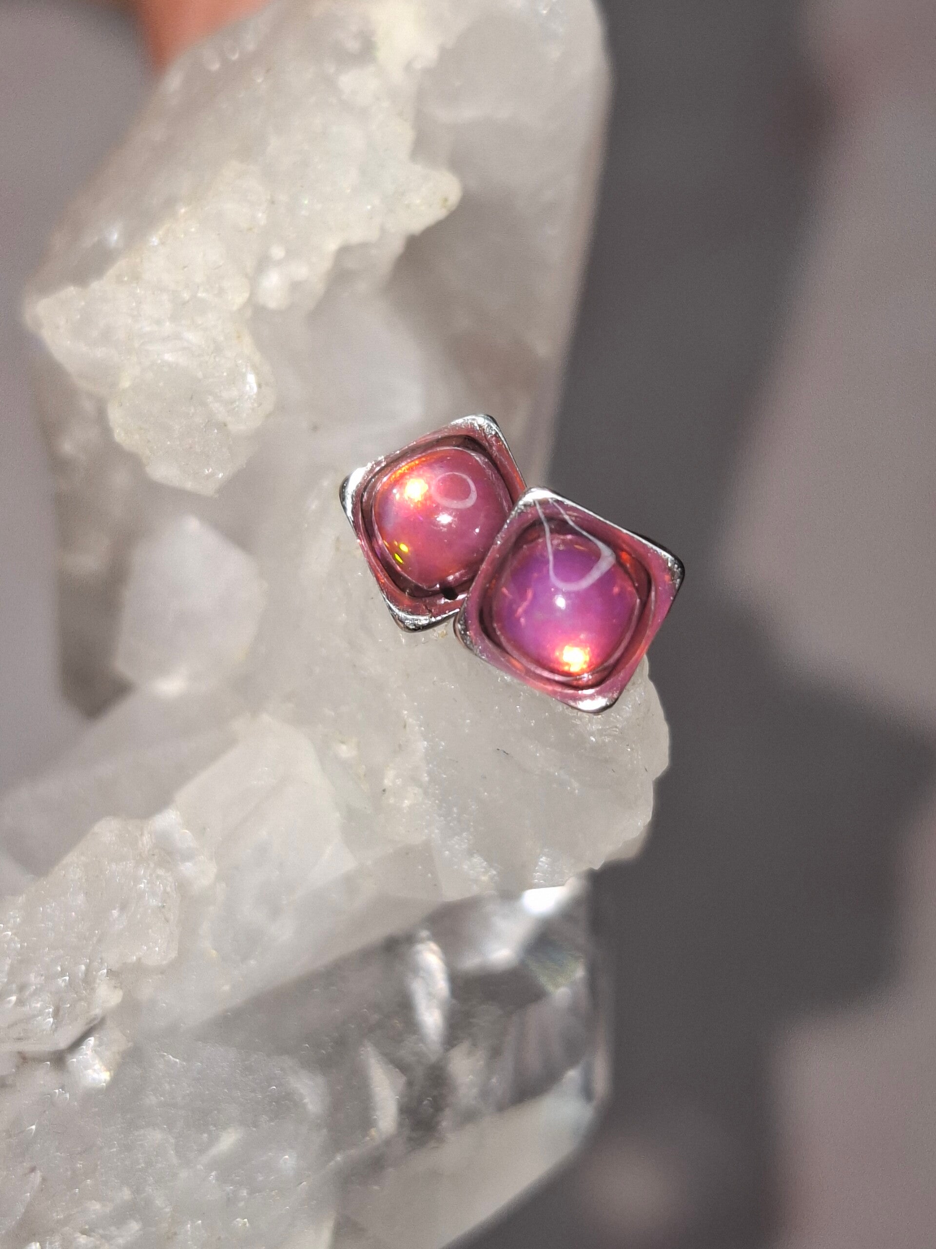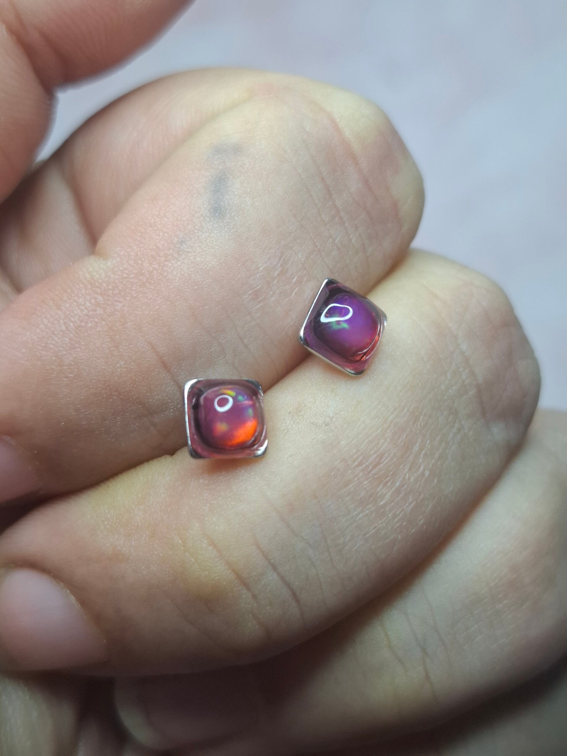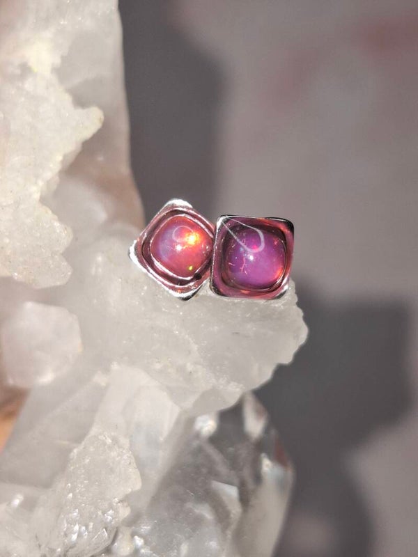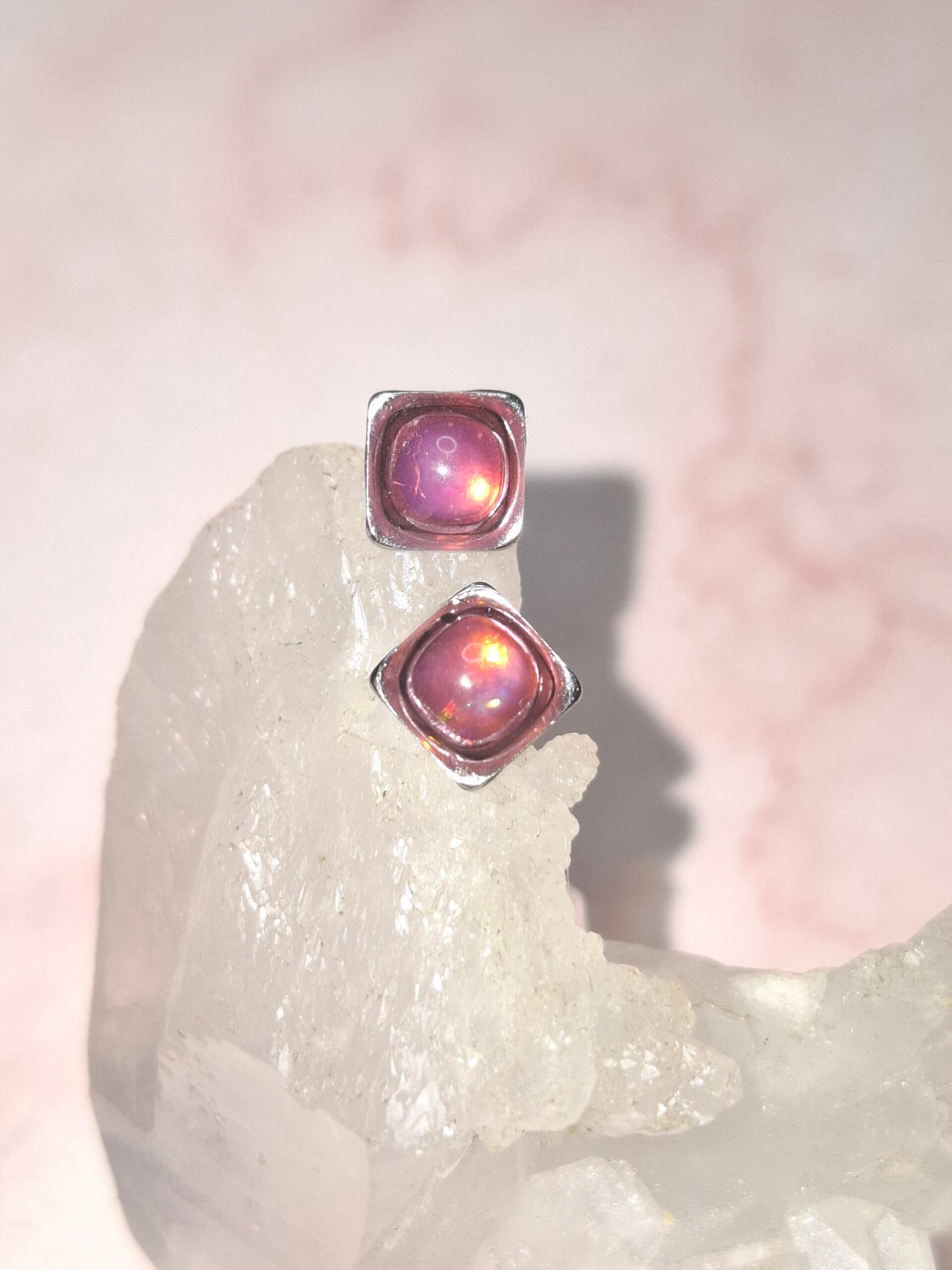 Boucles doreille opale 5mm carré fushia éthiopienne