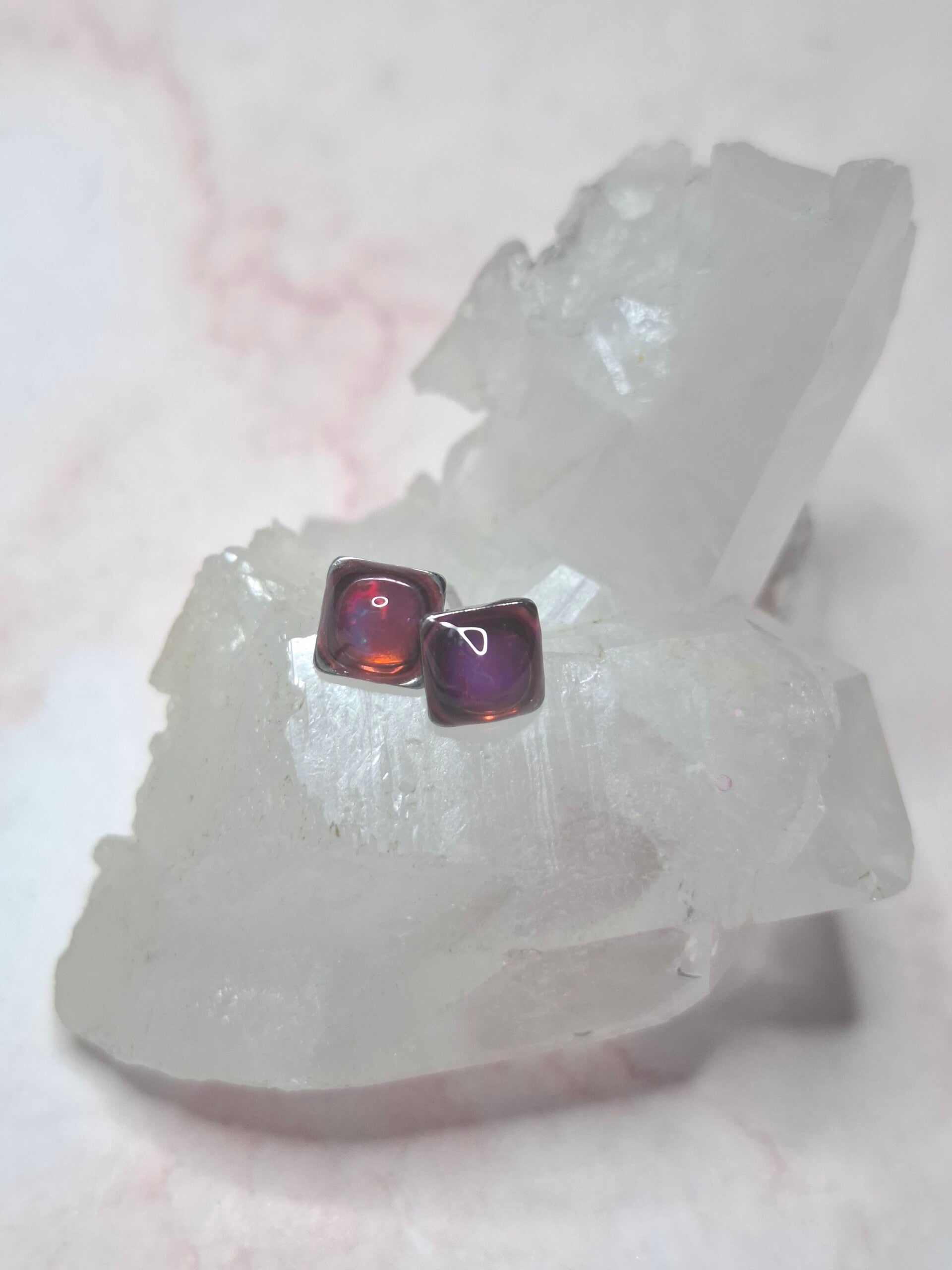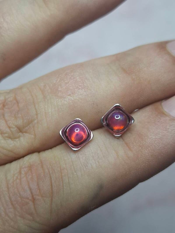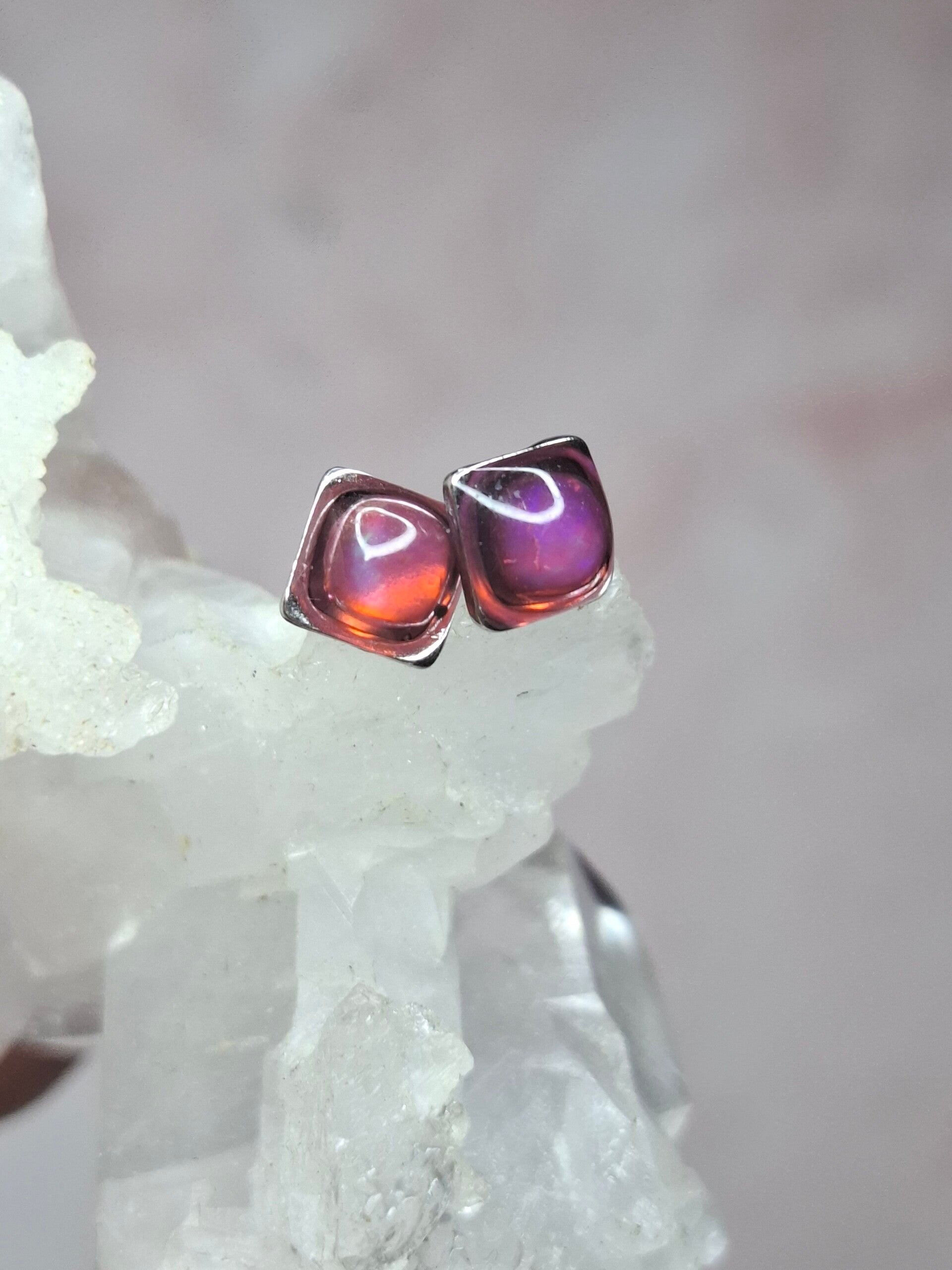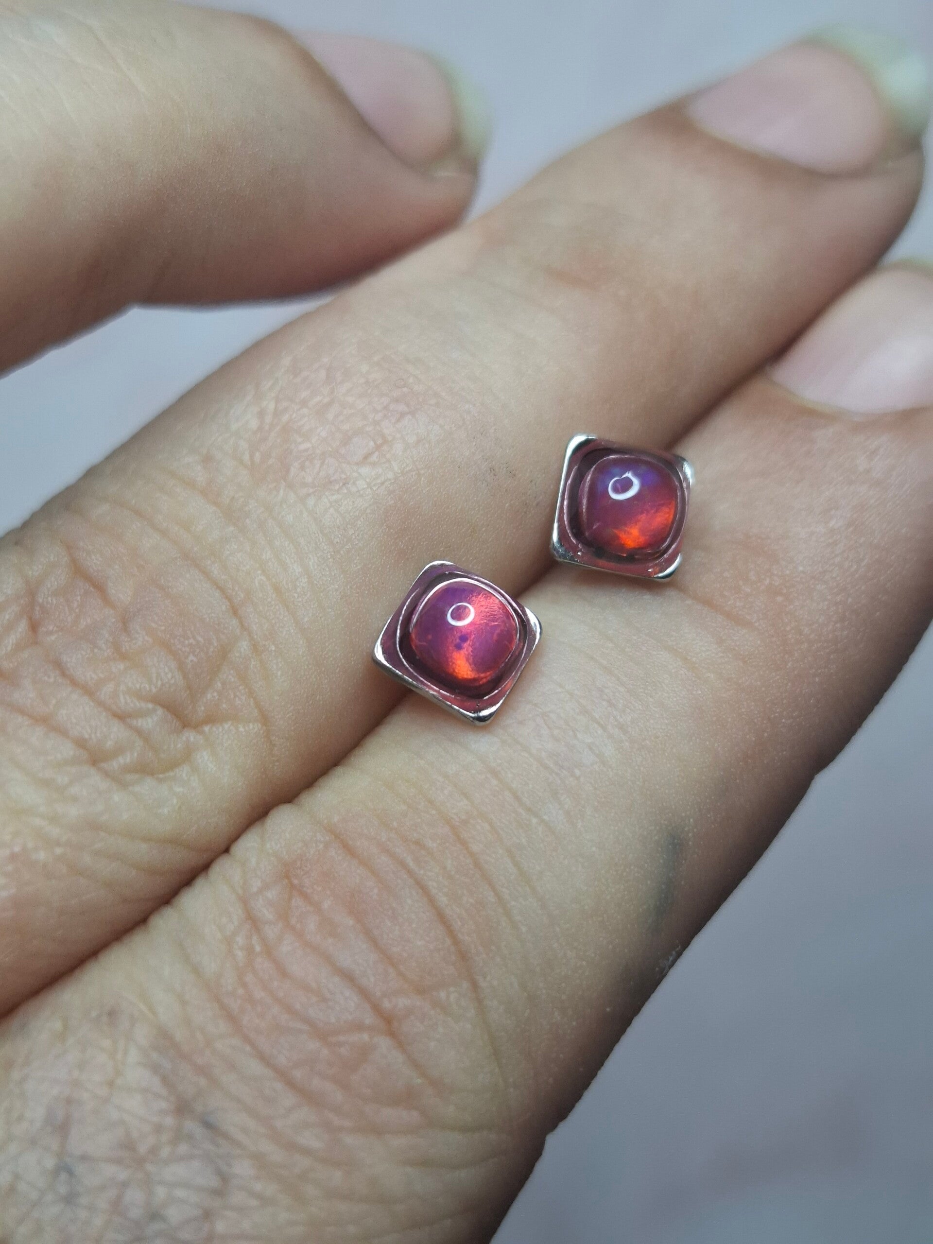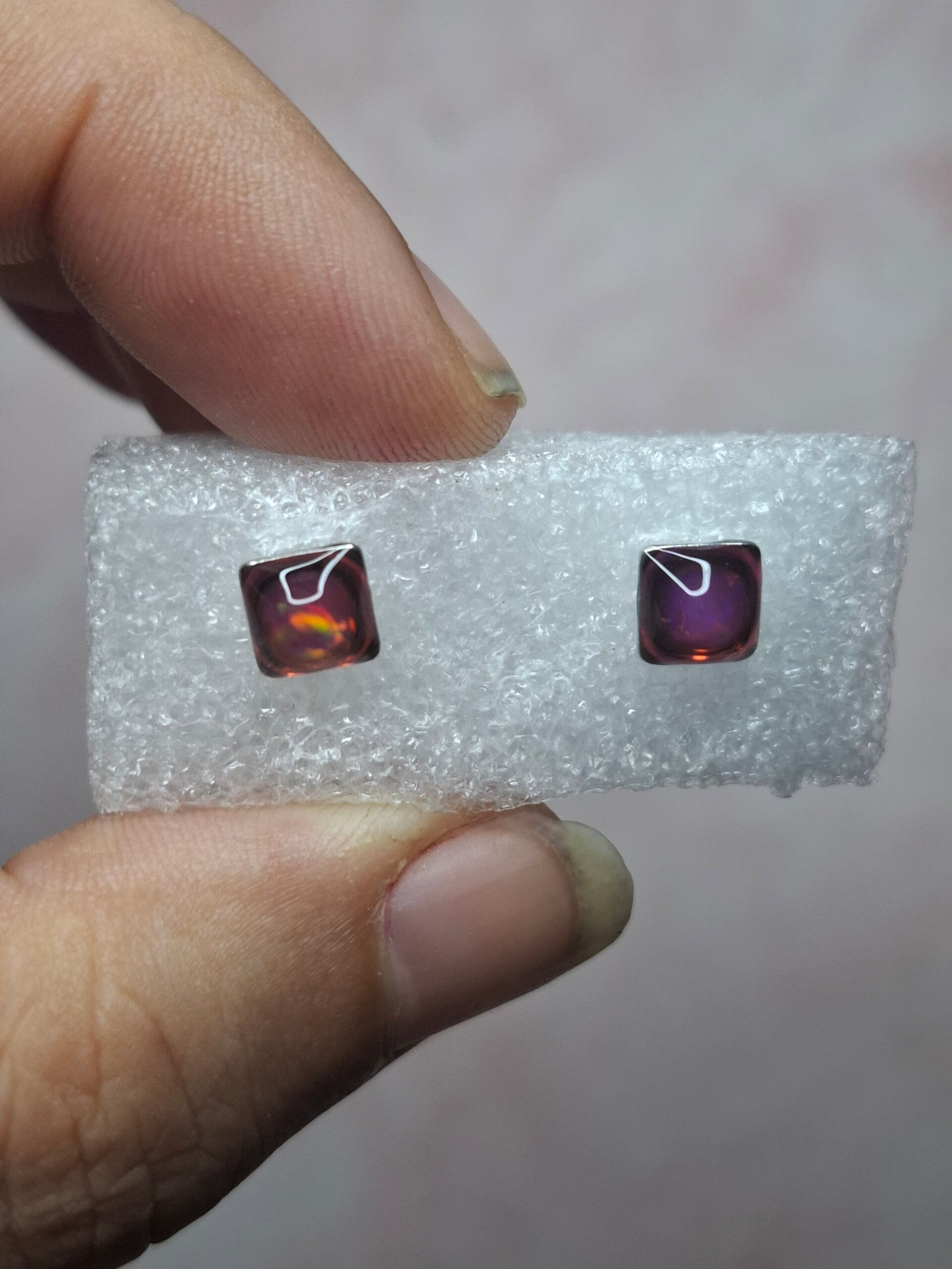Boucles doreille opale 5mm carré fushia éthiopienne
