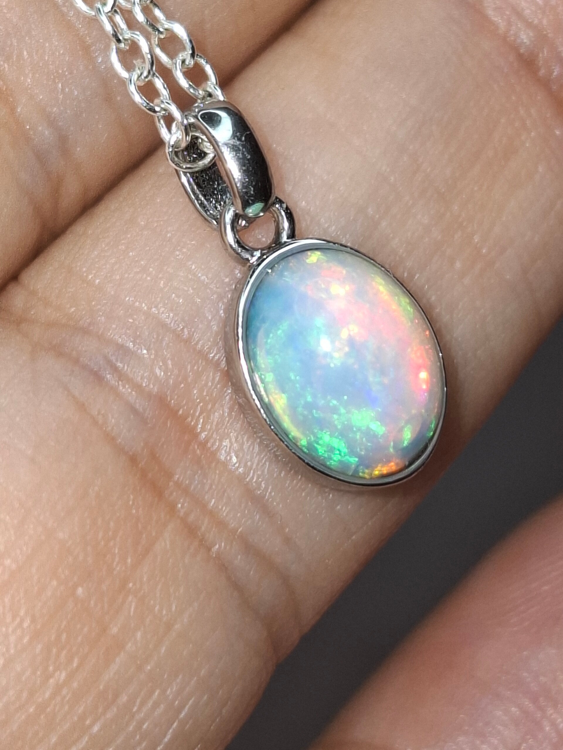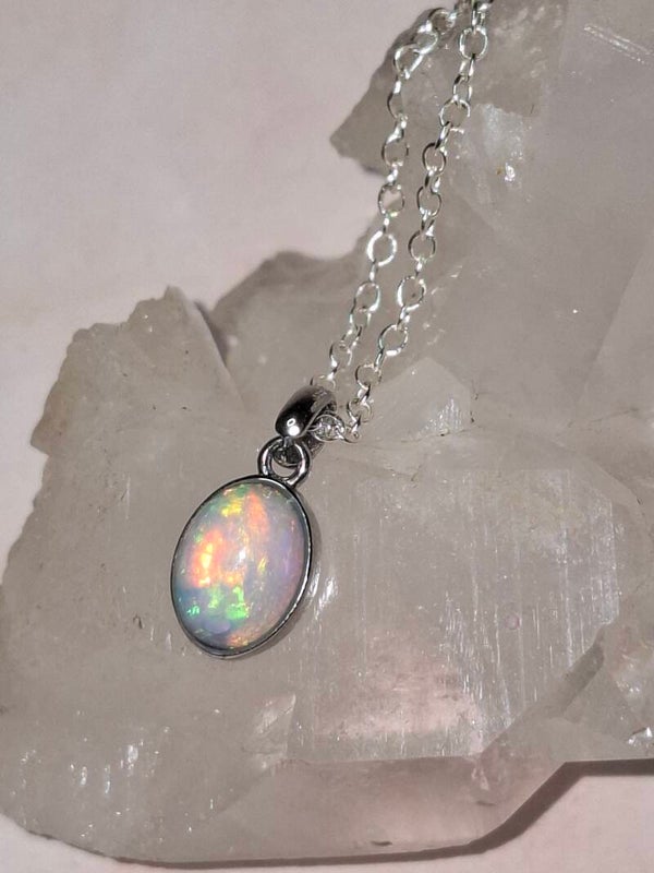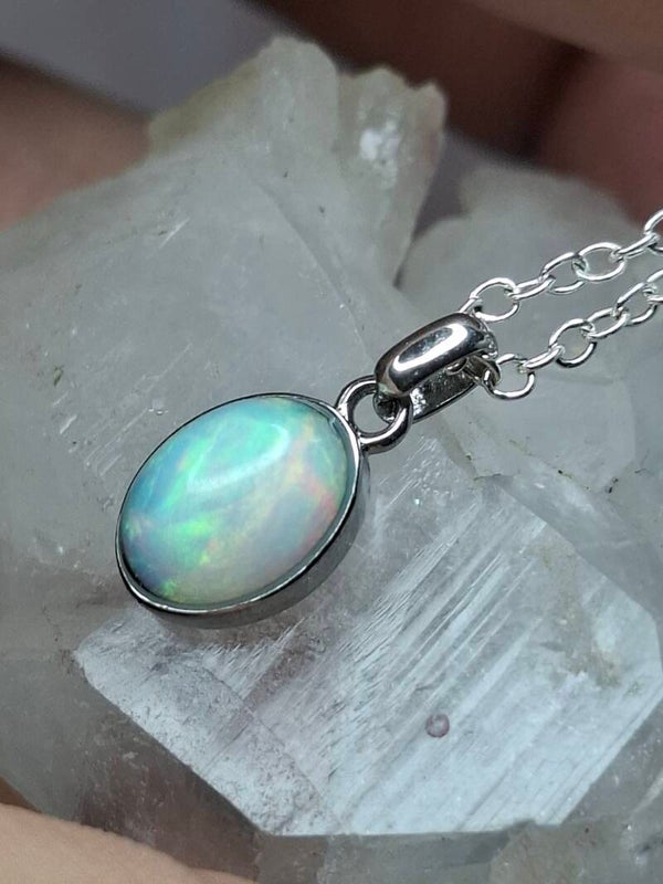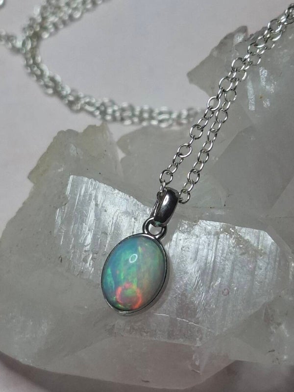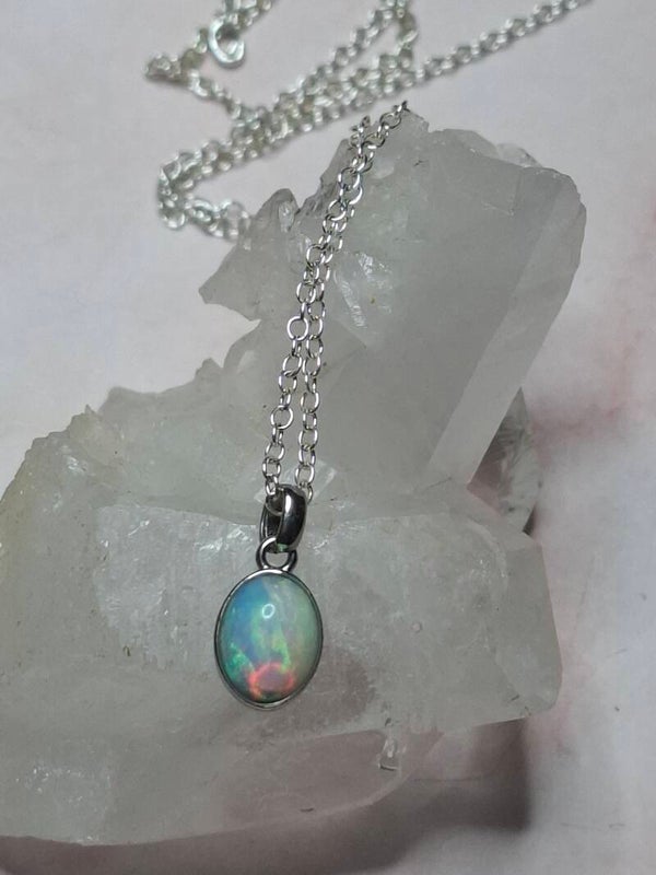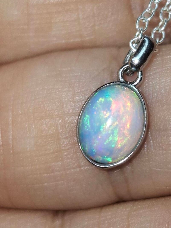 Pendentif opale 8x6mm éthiopienne reflet multicolore Authentique