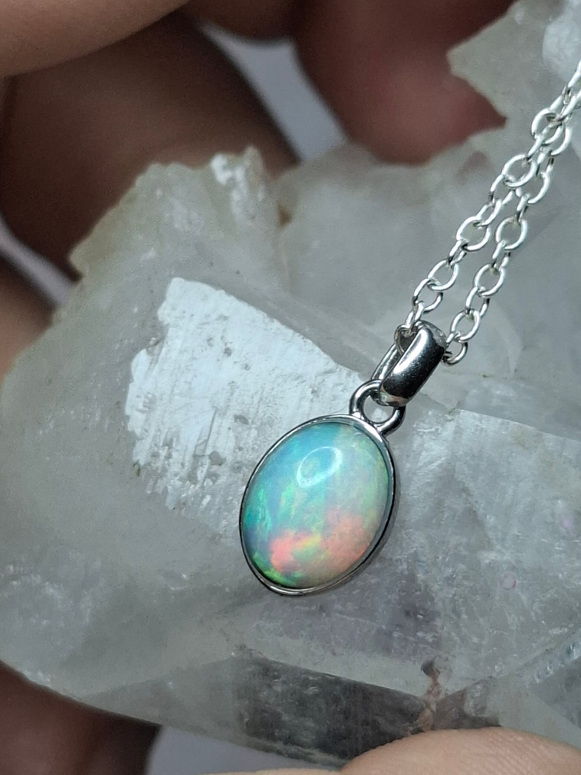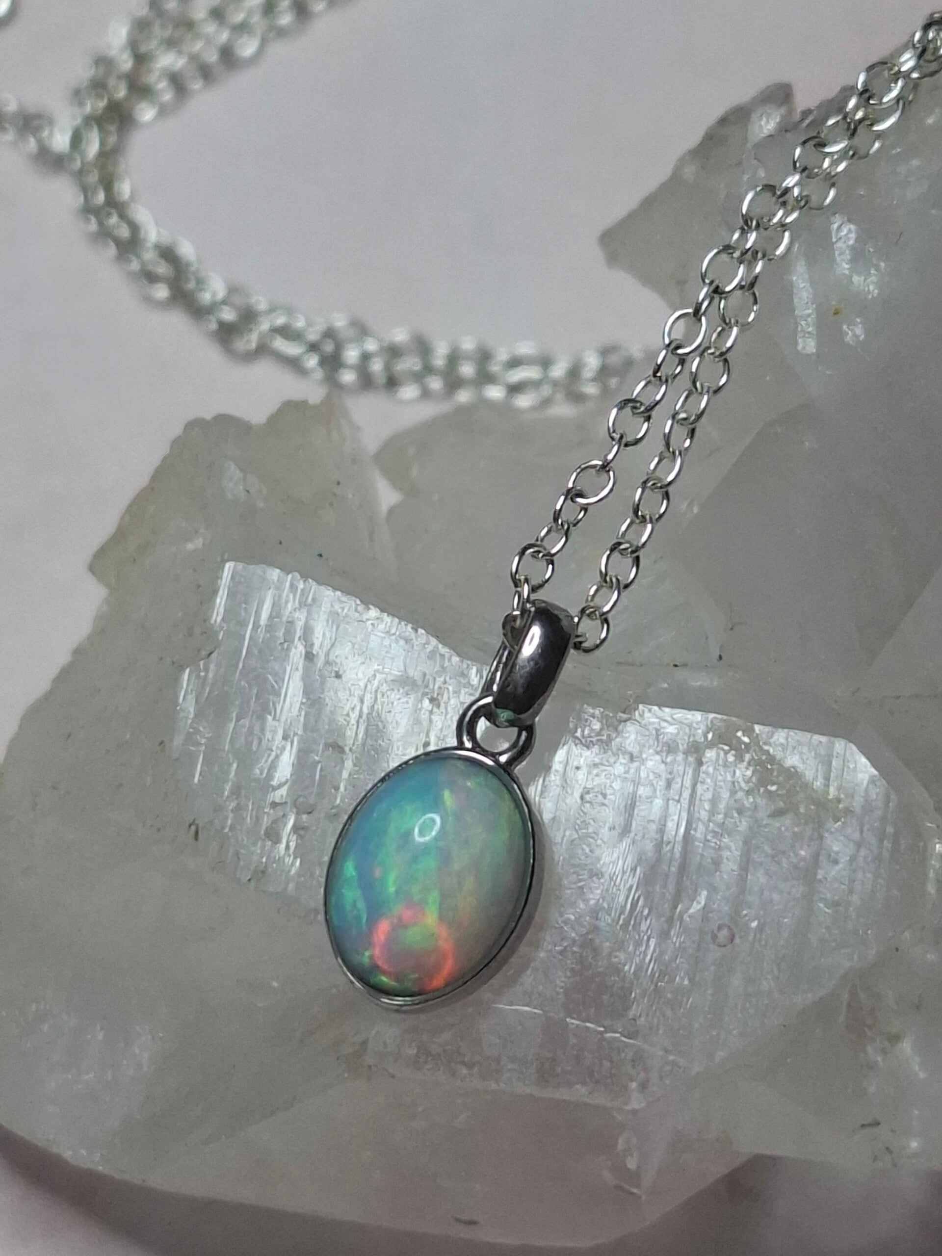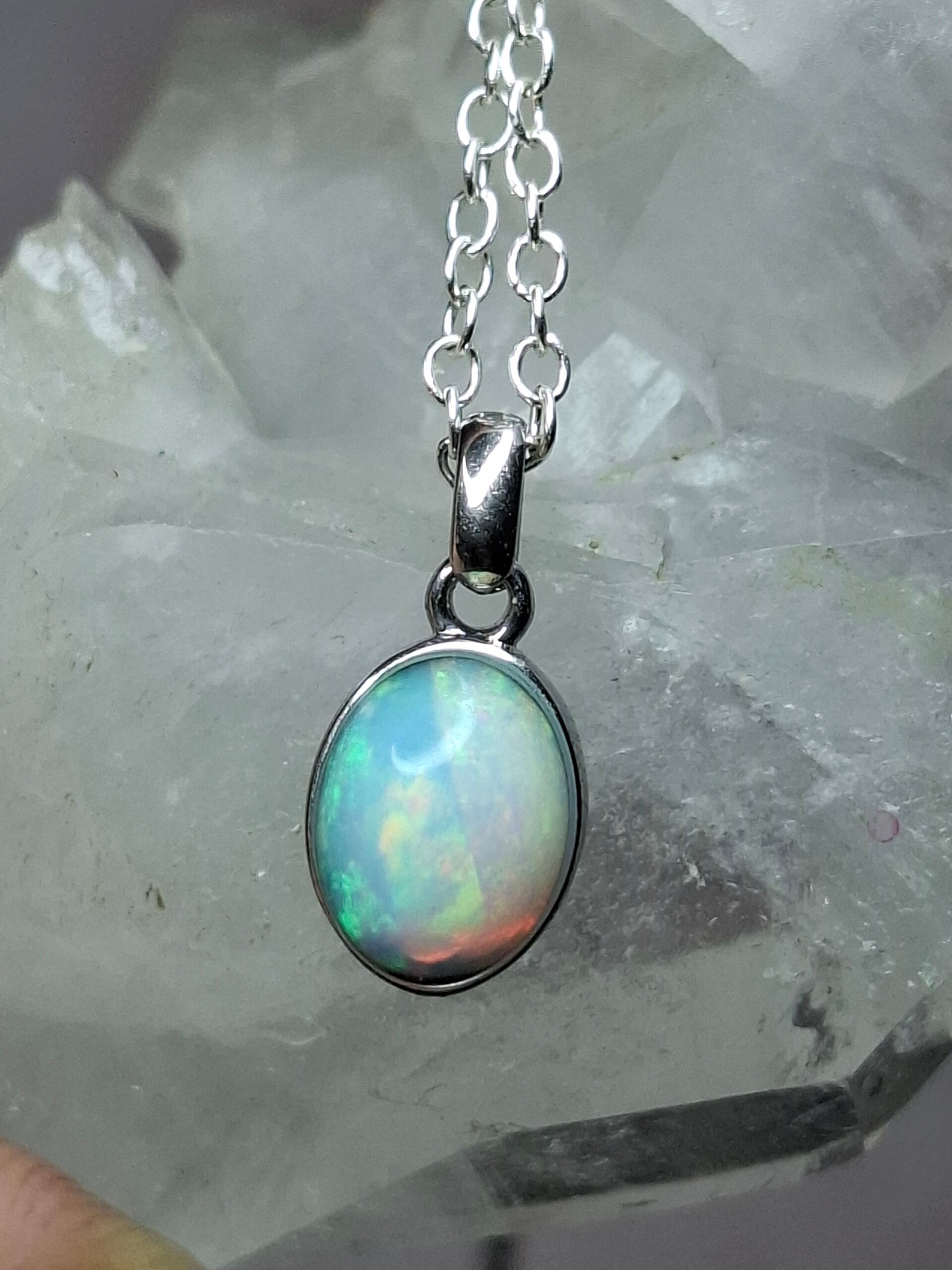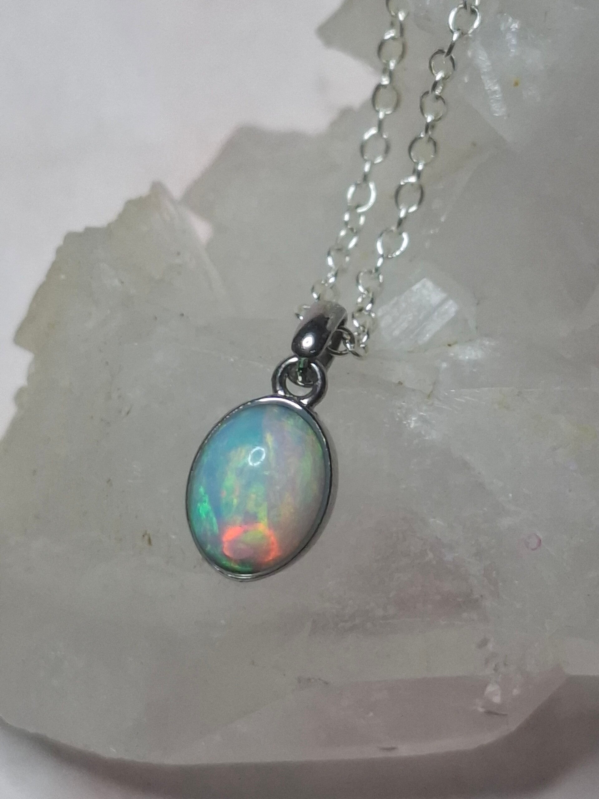 Pendentif opale 8x6mm éthiopienne reflet multicolore Authentique