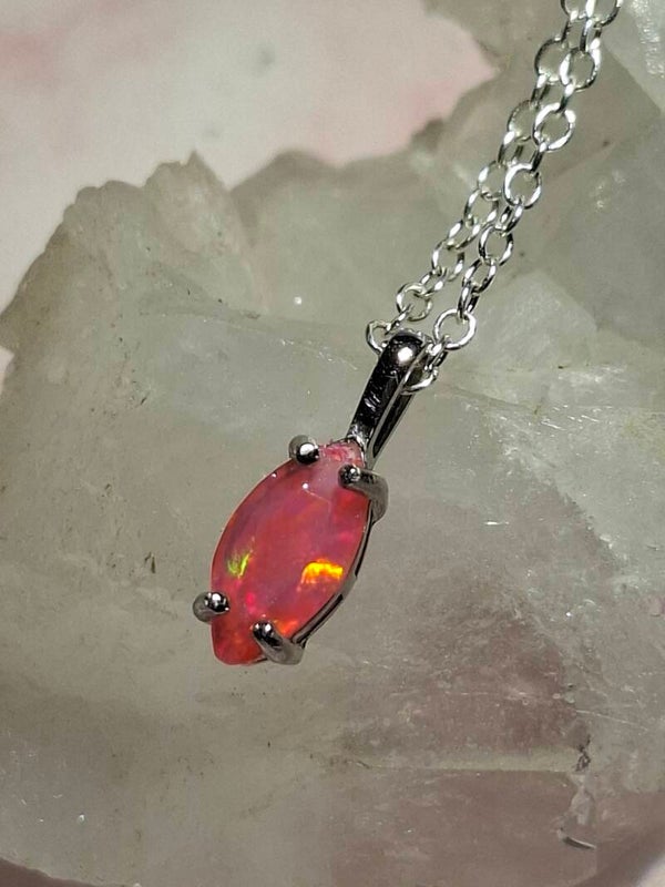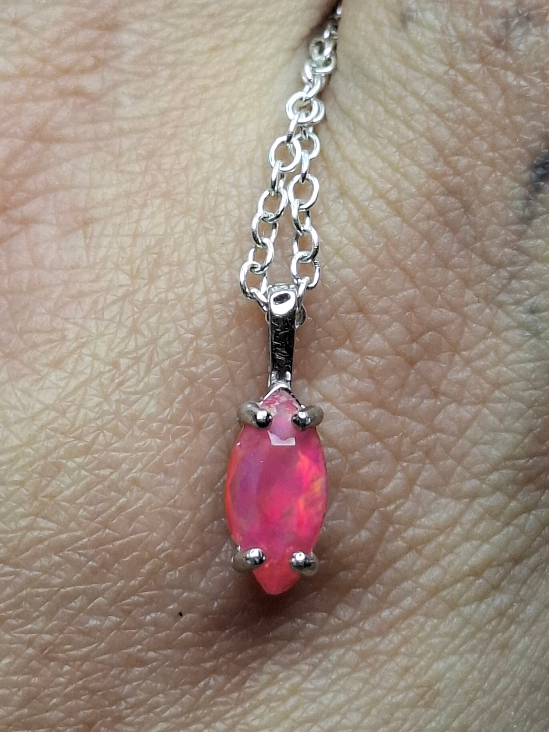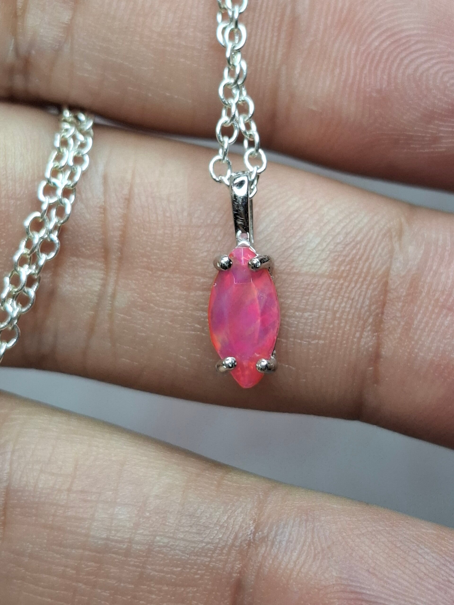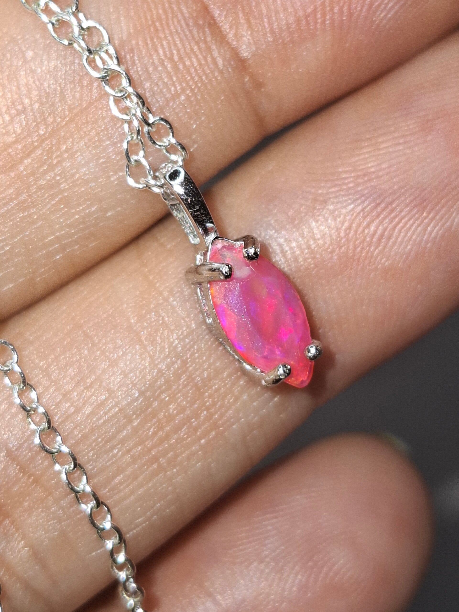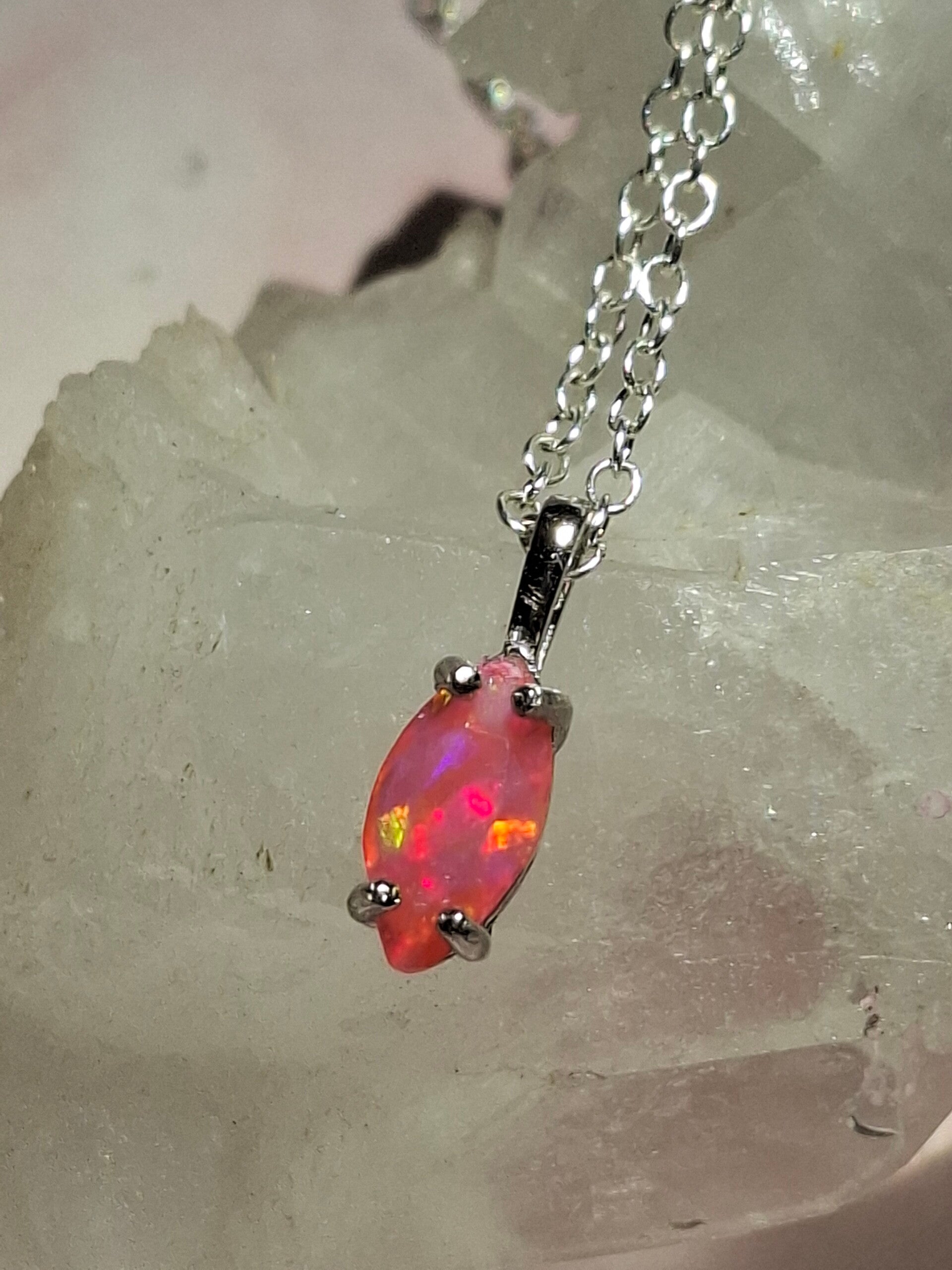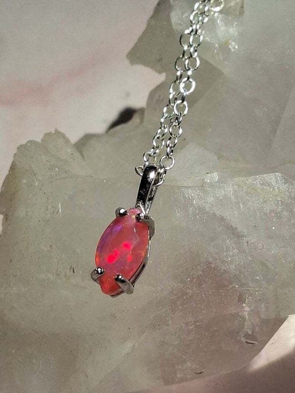 Pendentif argent opale 10x5mm rose orangé multi 🔥 éthiopienne