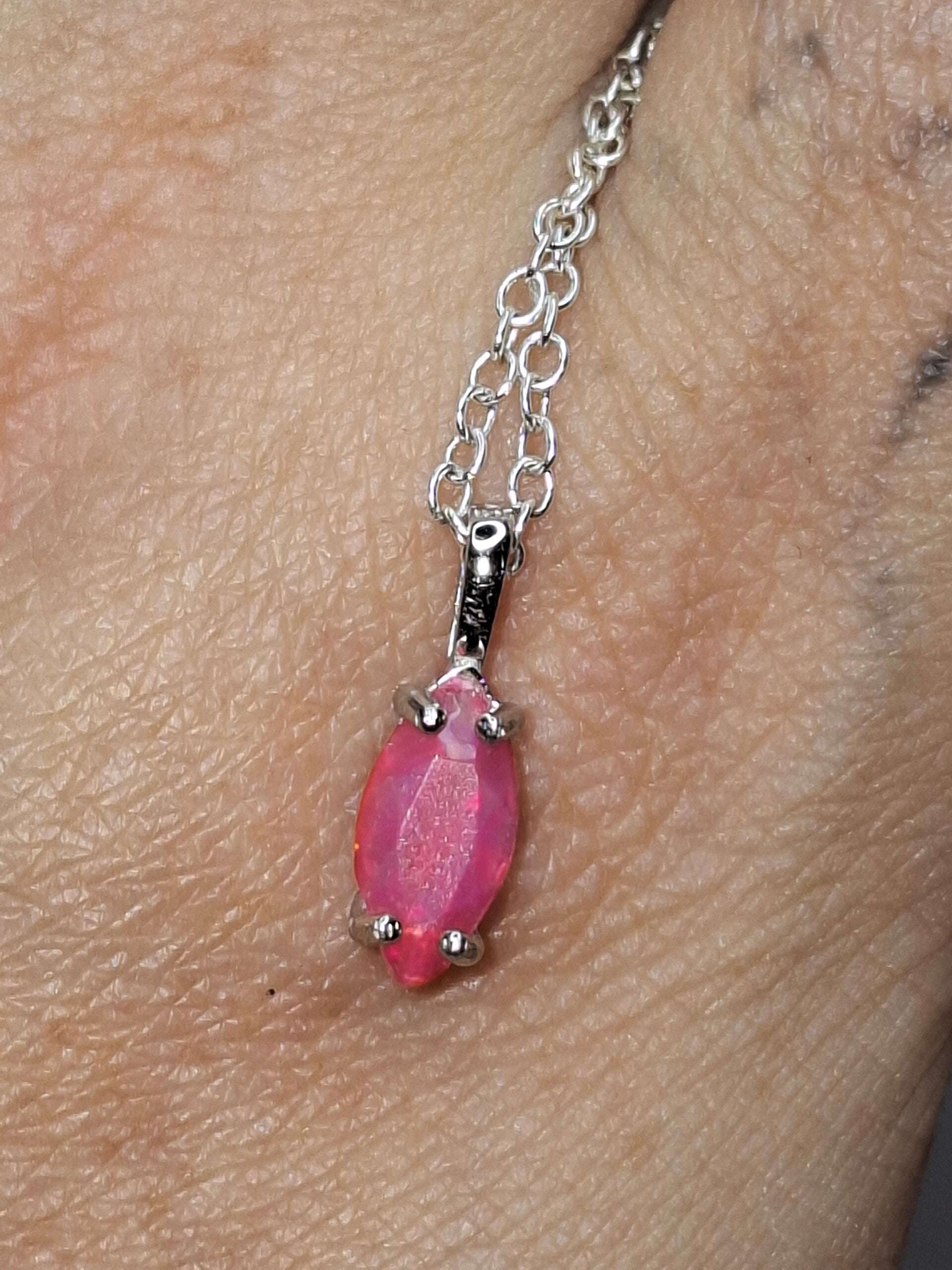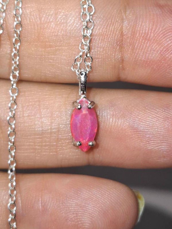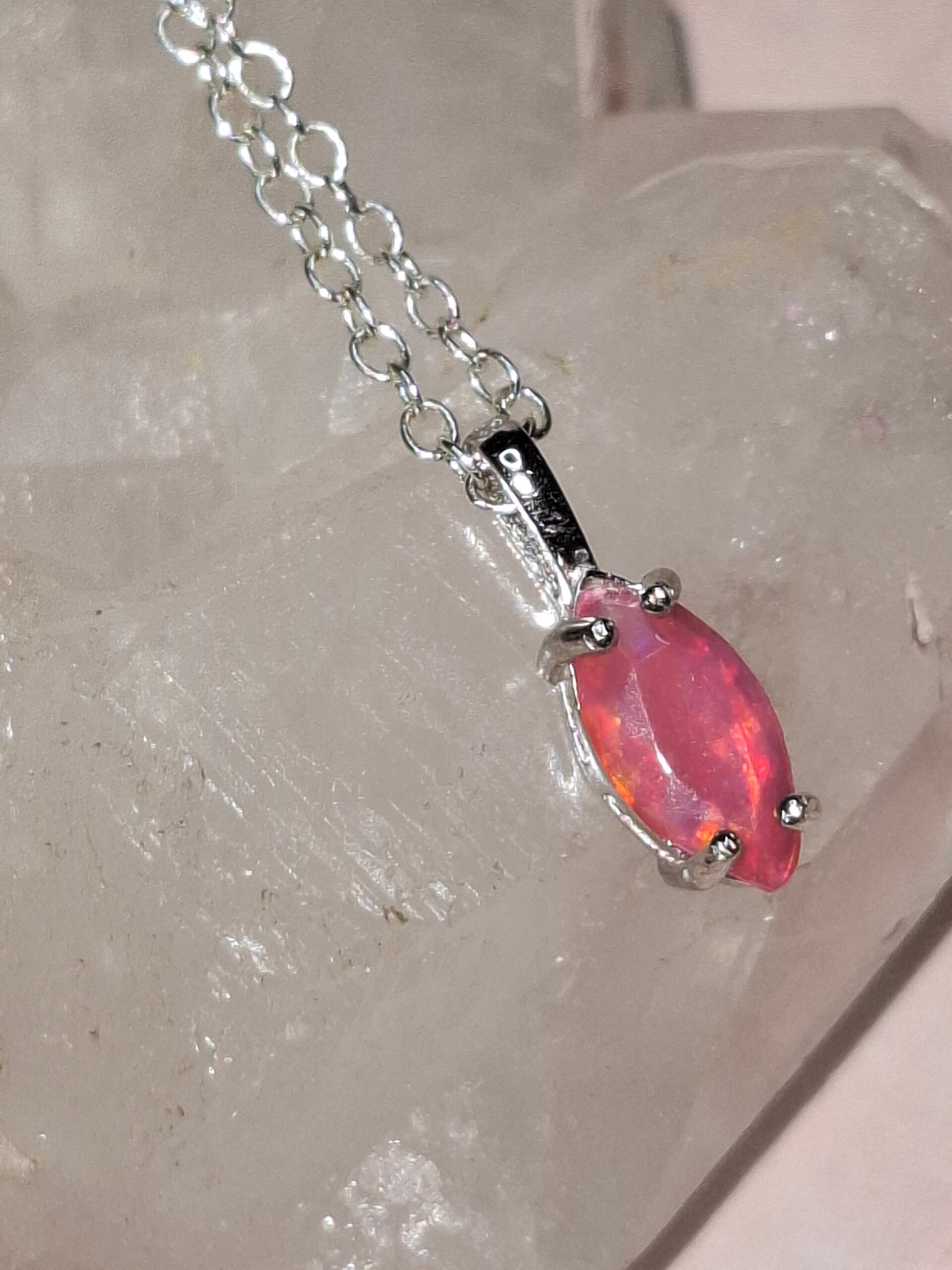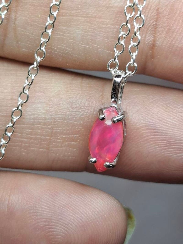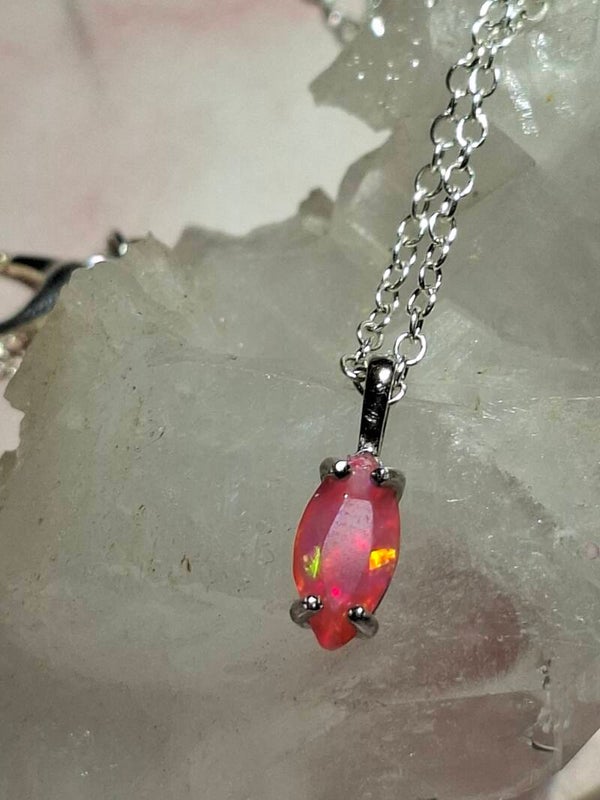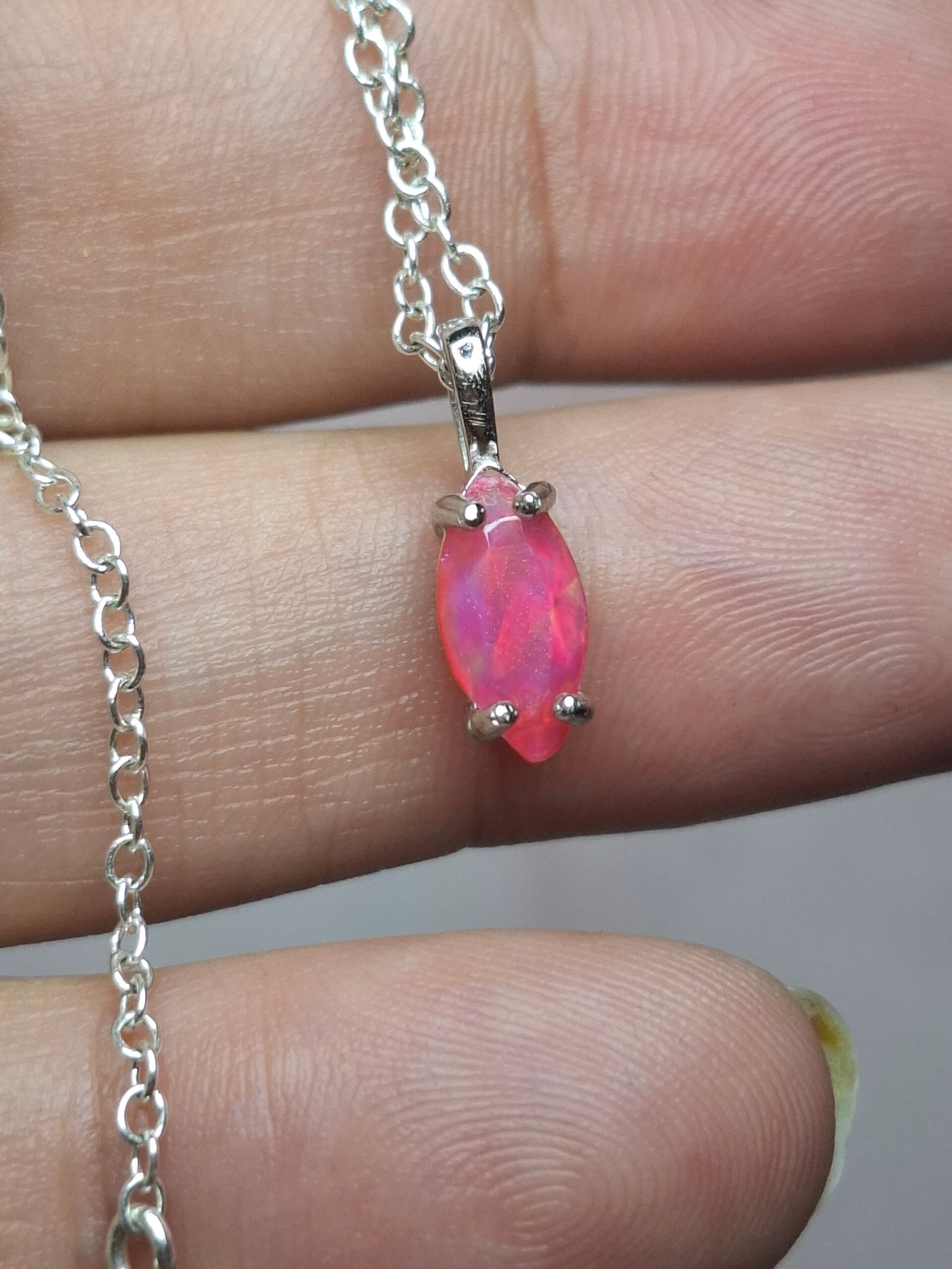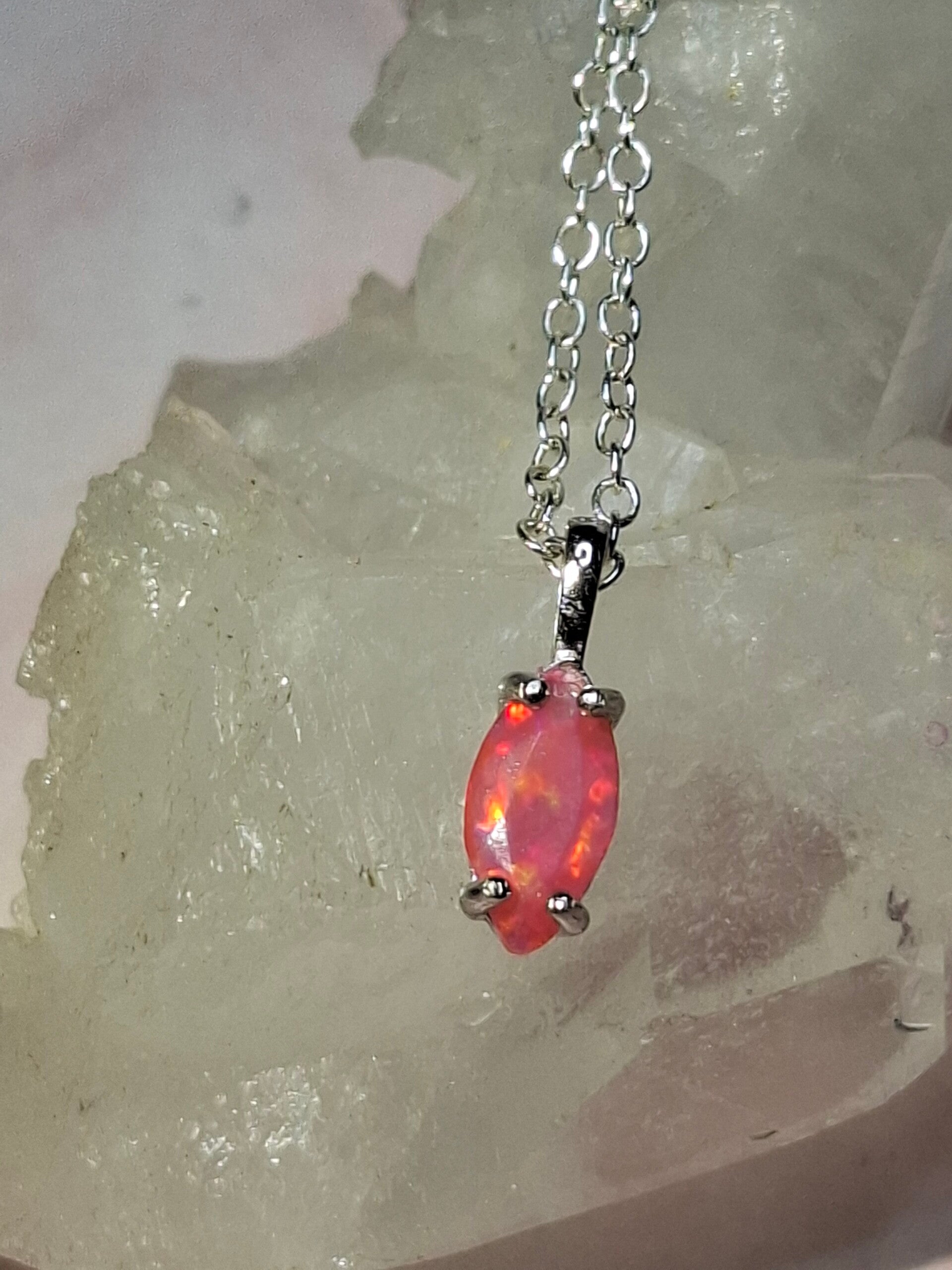 Pendentif argent opale 10x5mm rose orangé multi 🔥 éthiopienne