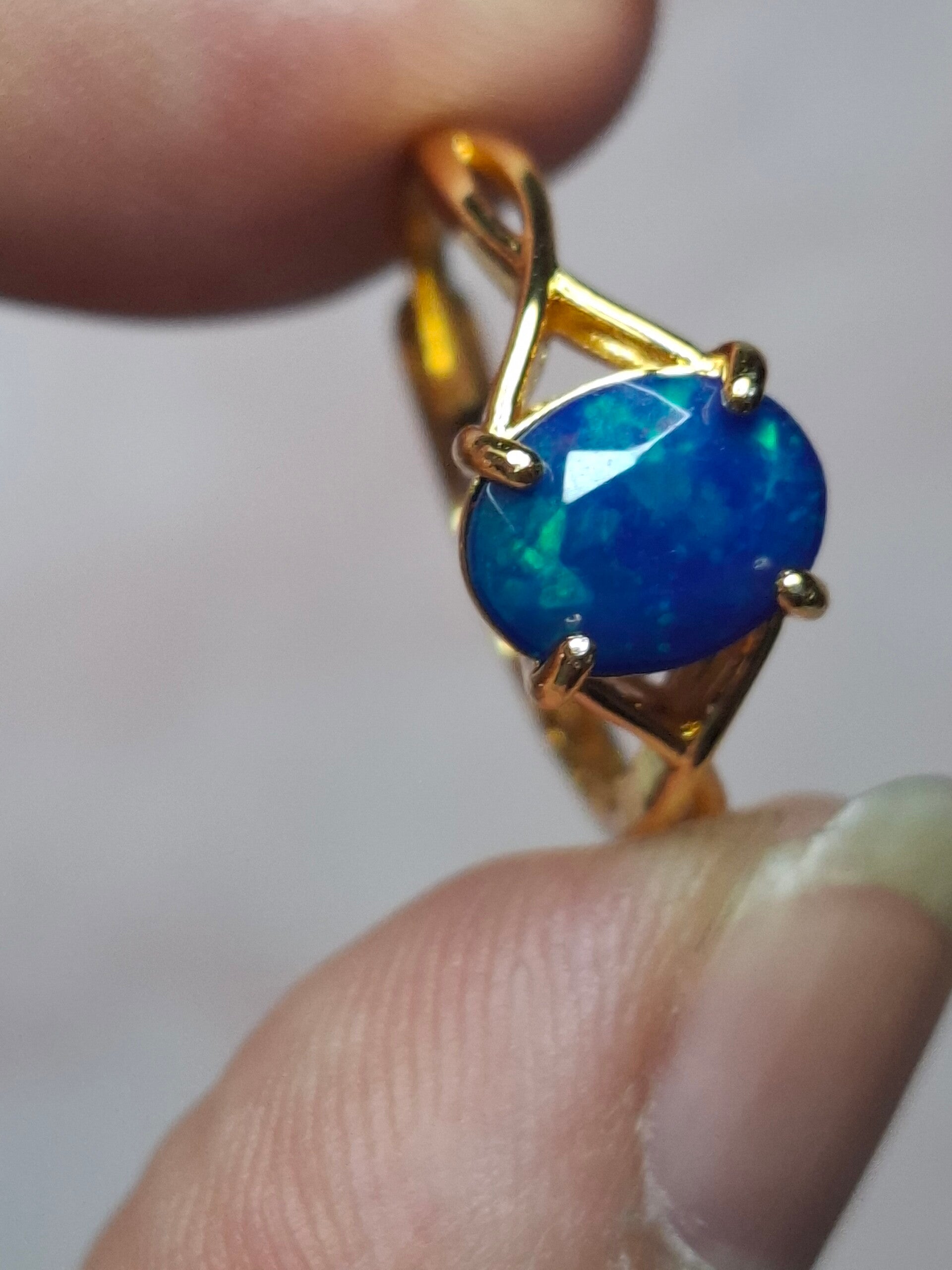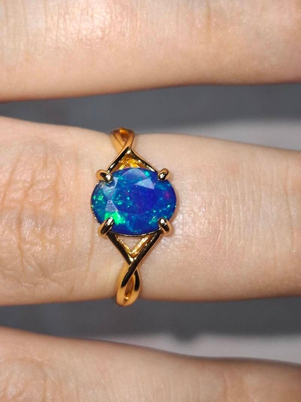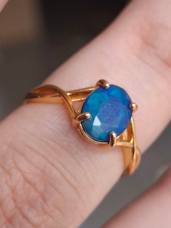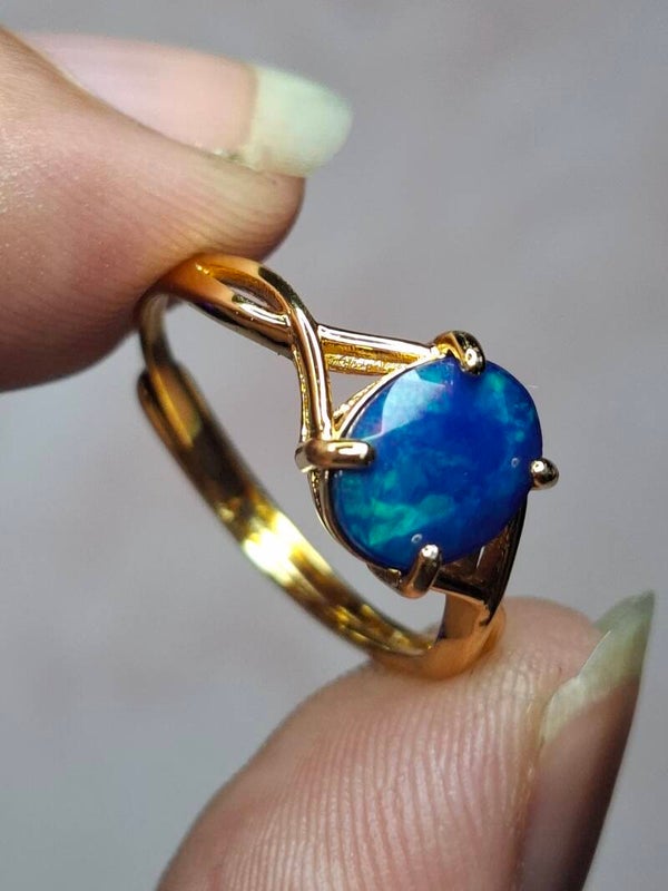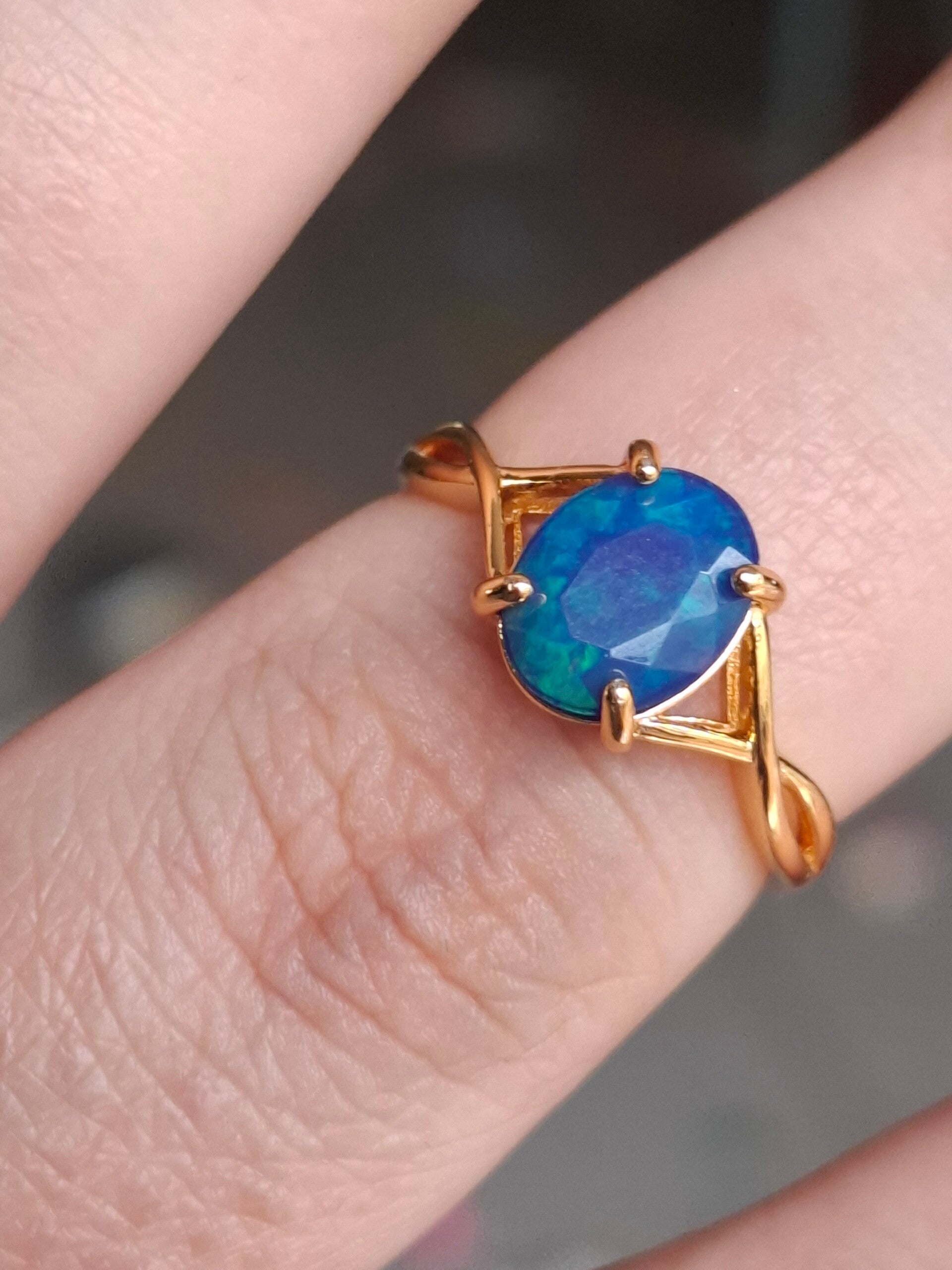 Bague ajustable opale 9x7mm paraiba flash vert éthiopienne lire annonce