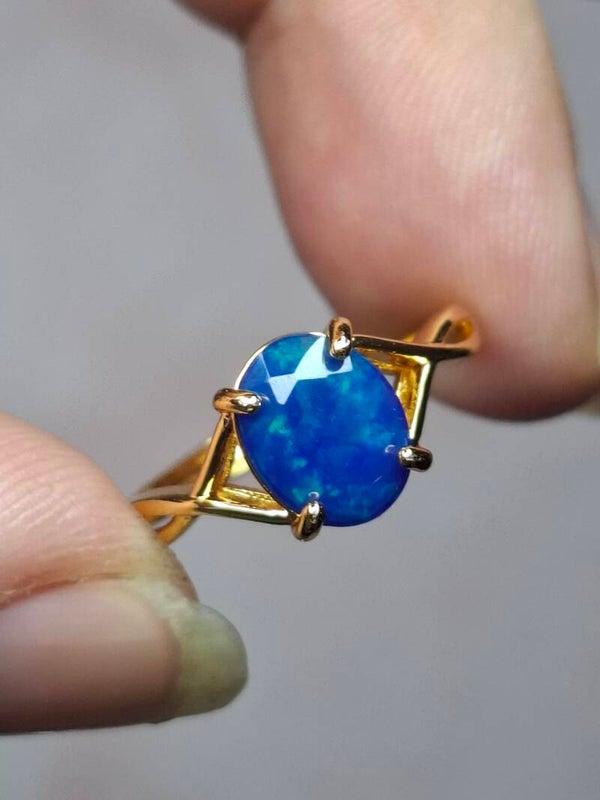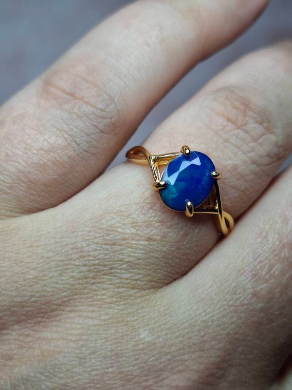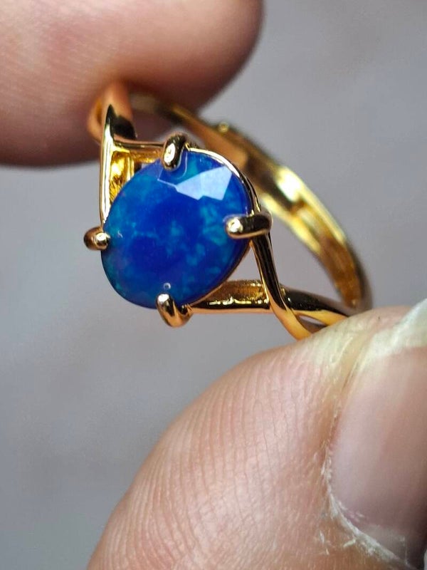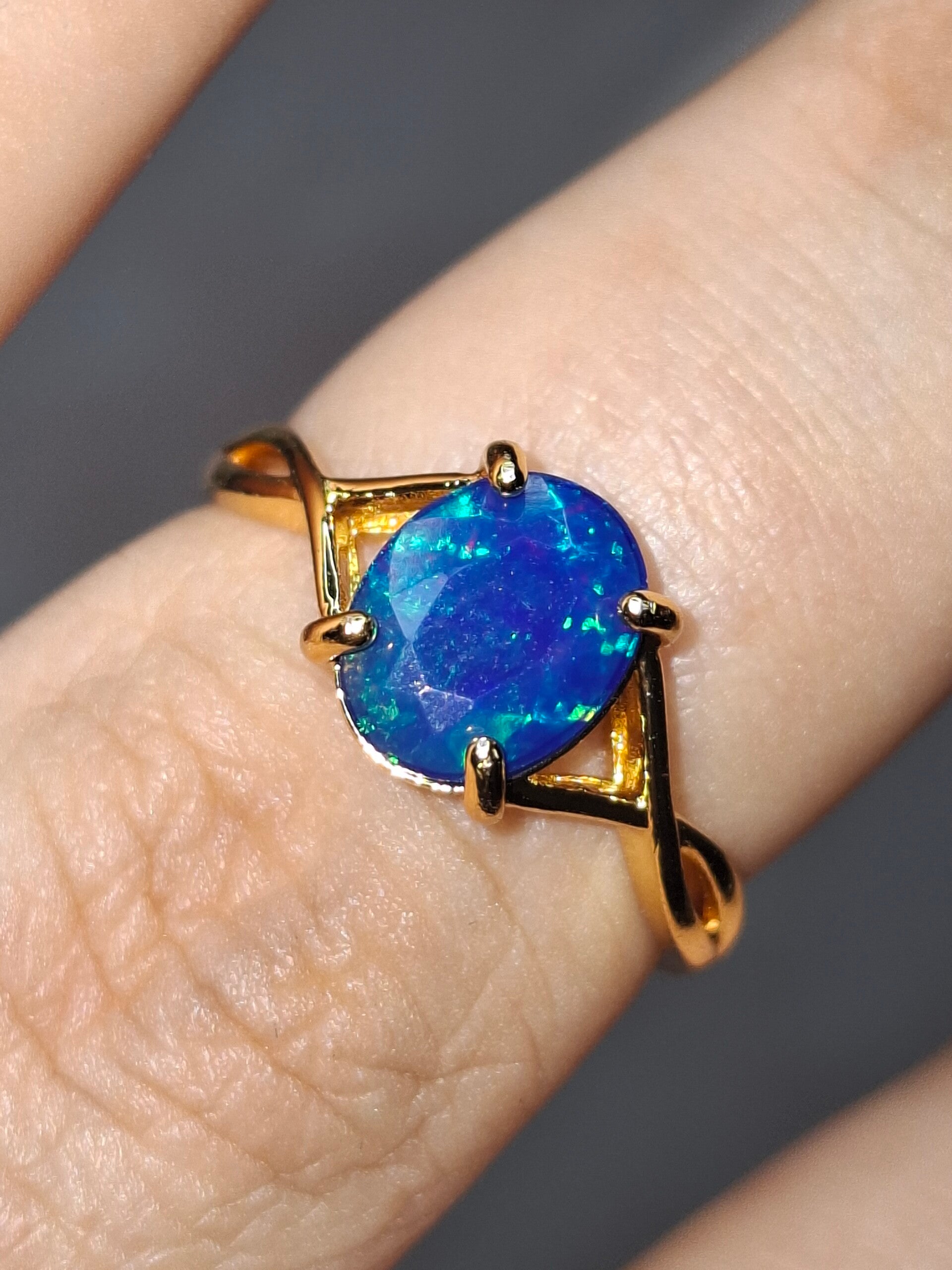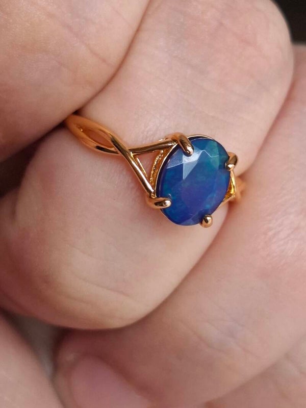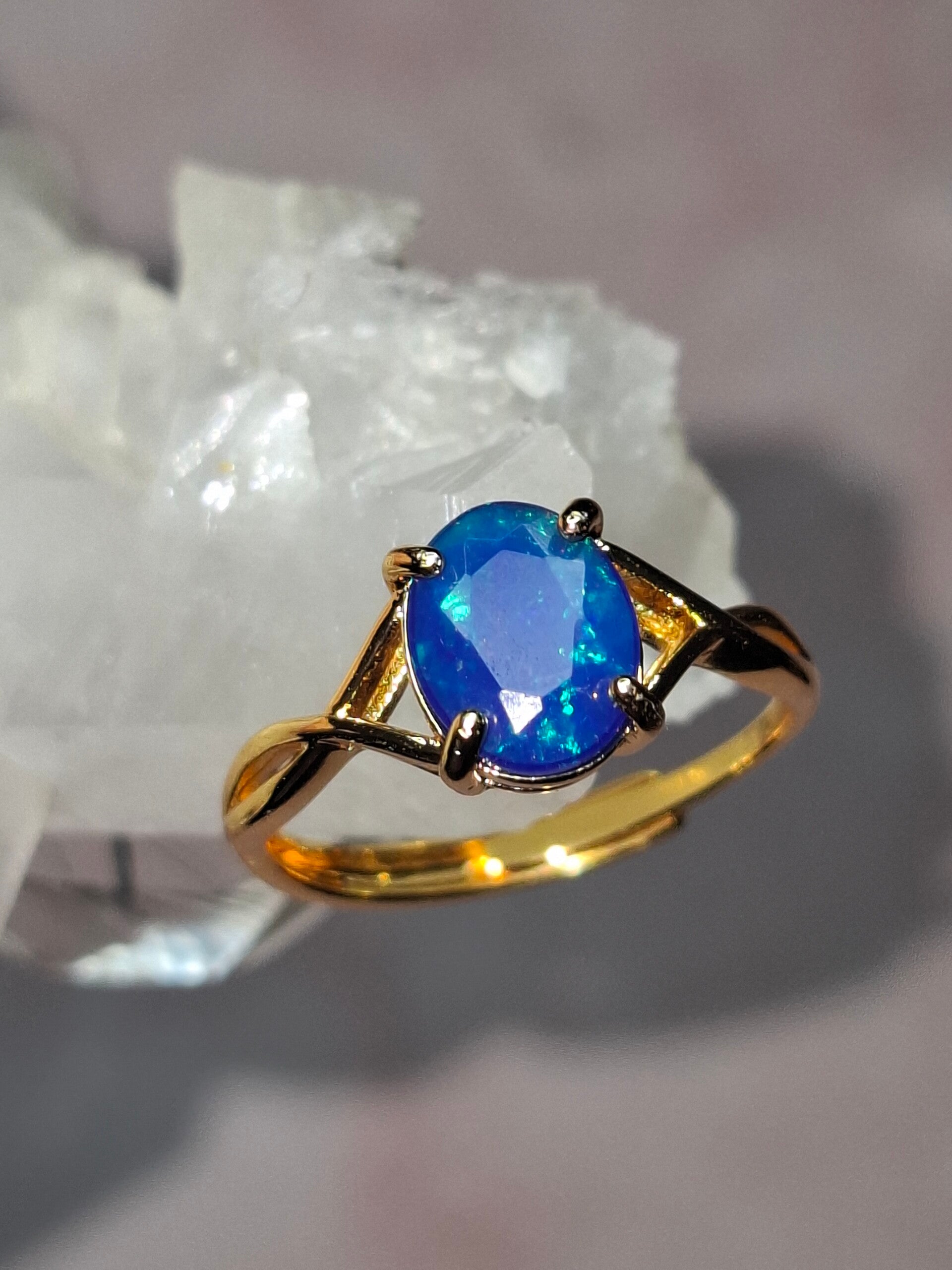 Bague ajustable opale 9x7mm paraiba flash vert éthiopienne lire annonce