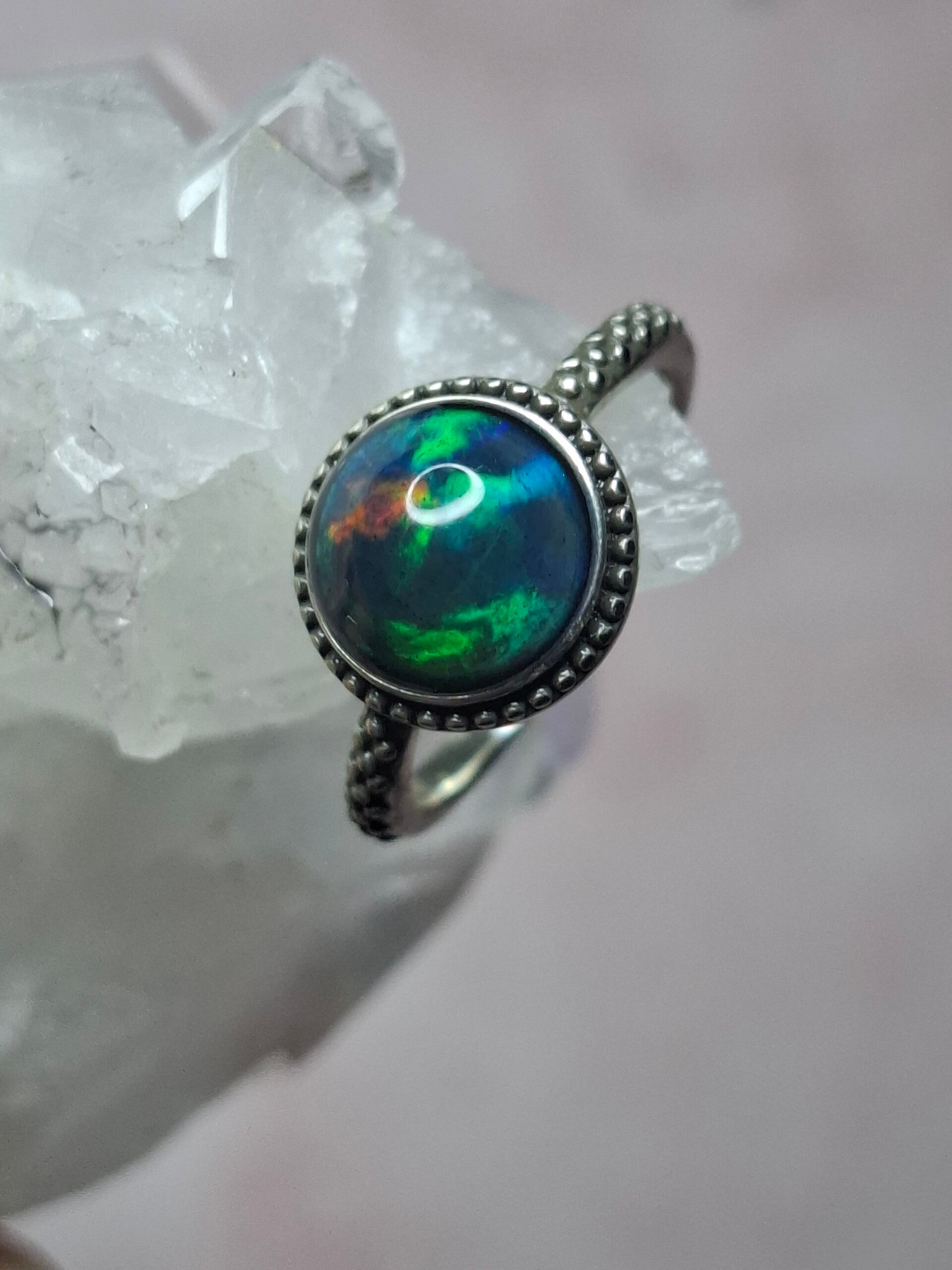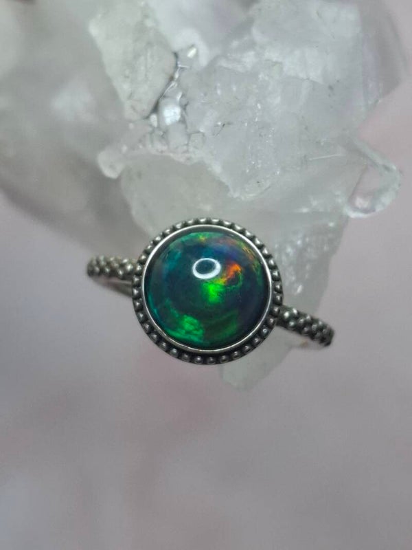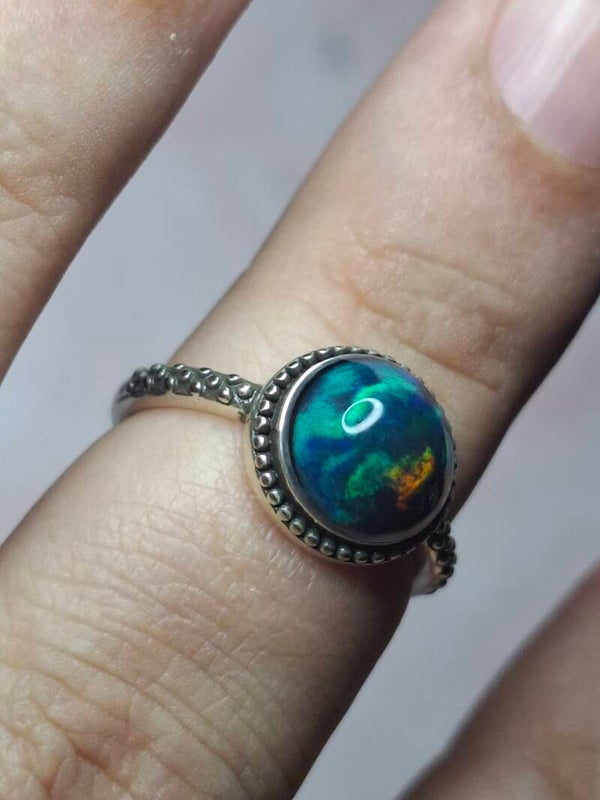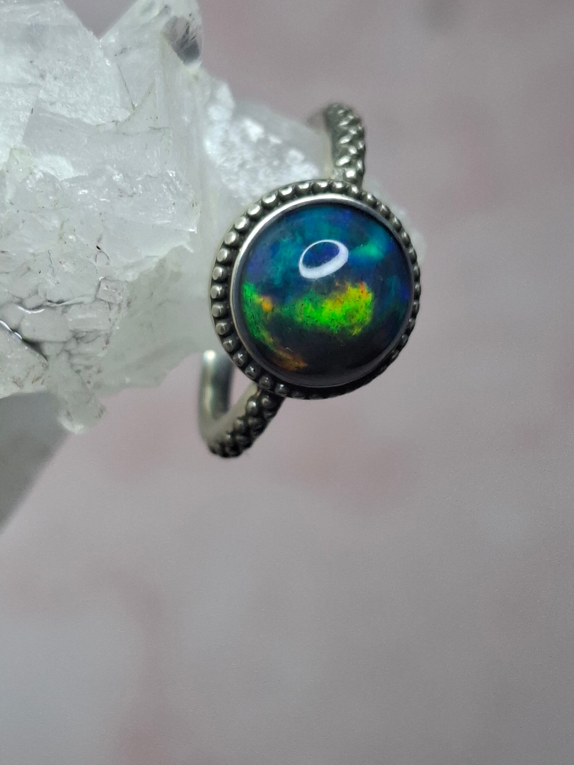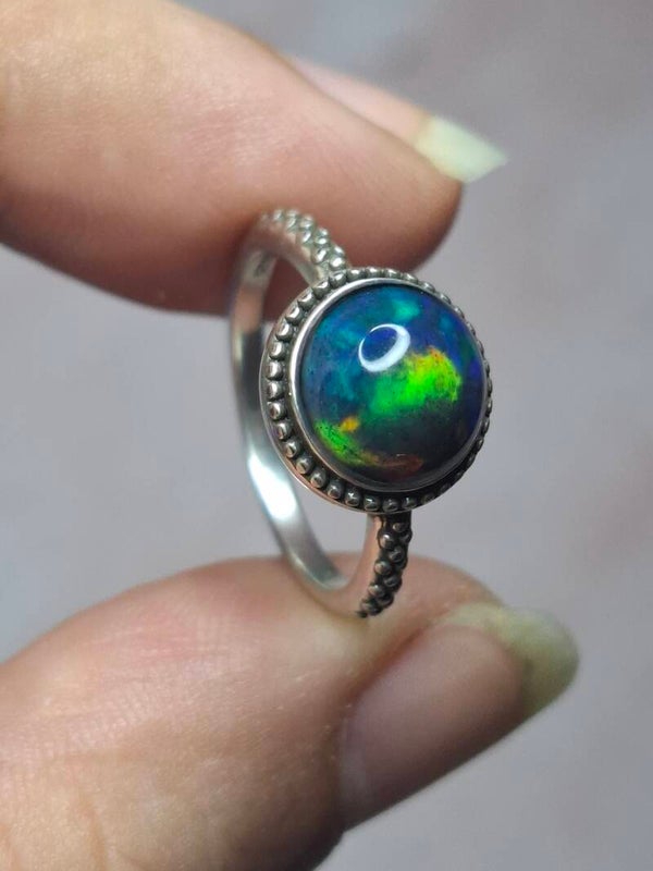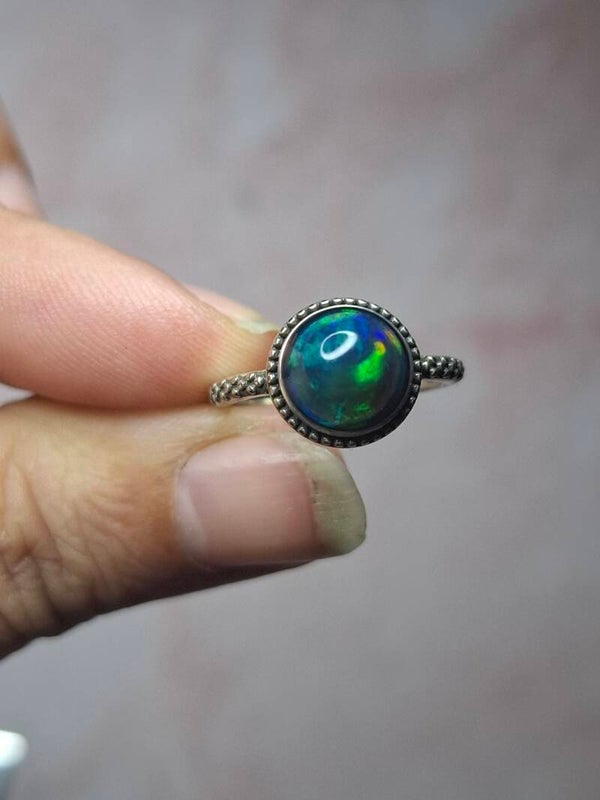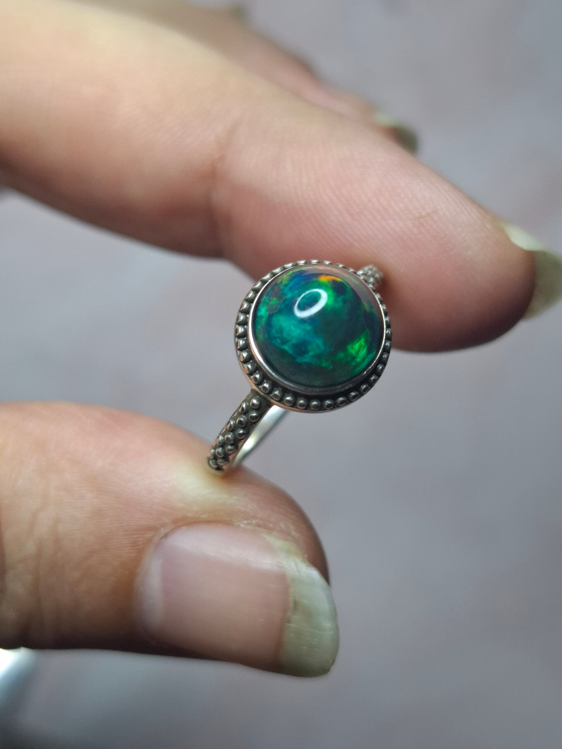 Bague opale 8mm bleuté vert éthiopienne taille 17mm